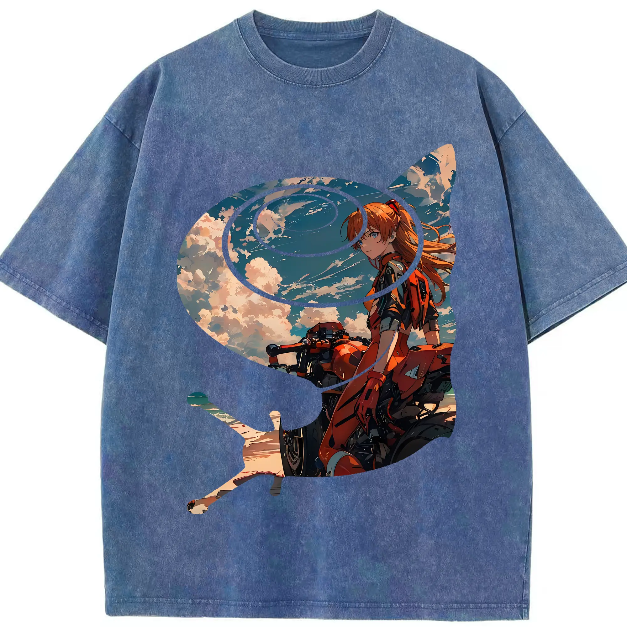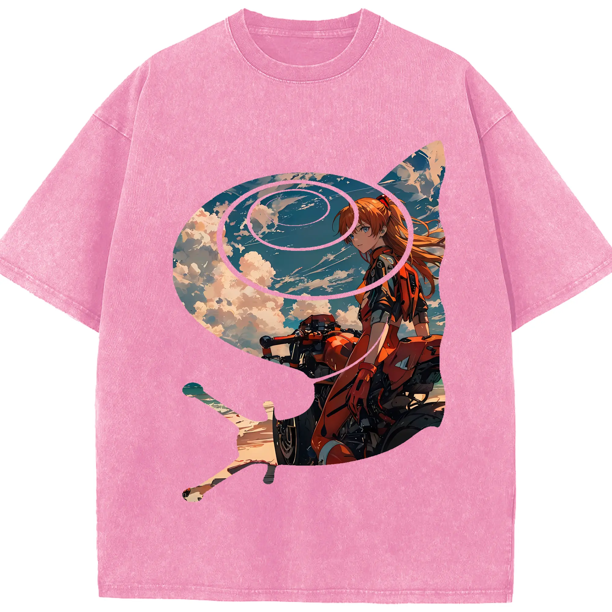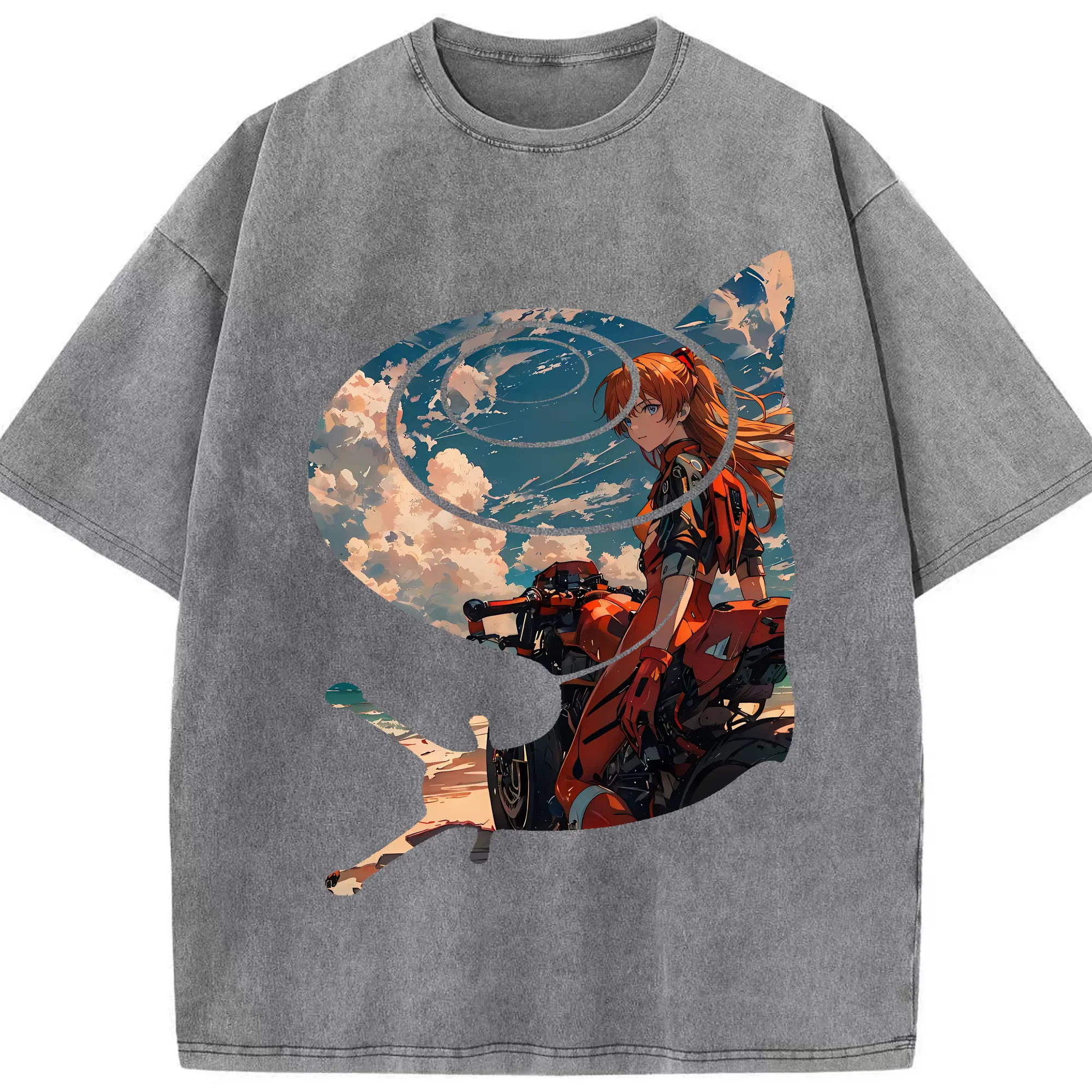 エヴァンゲリオン グッズ,アスカ·ラングレー - 綿100% ヴィンテージ風 半袖Tシャツ ・ 背面プリント ・ 柔らか肌触り ・ 通気性 快適 ・ スポーツ カジュアル 外出用