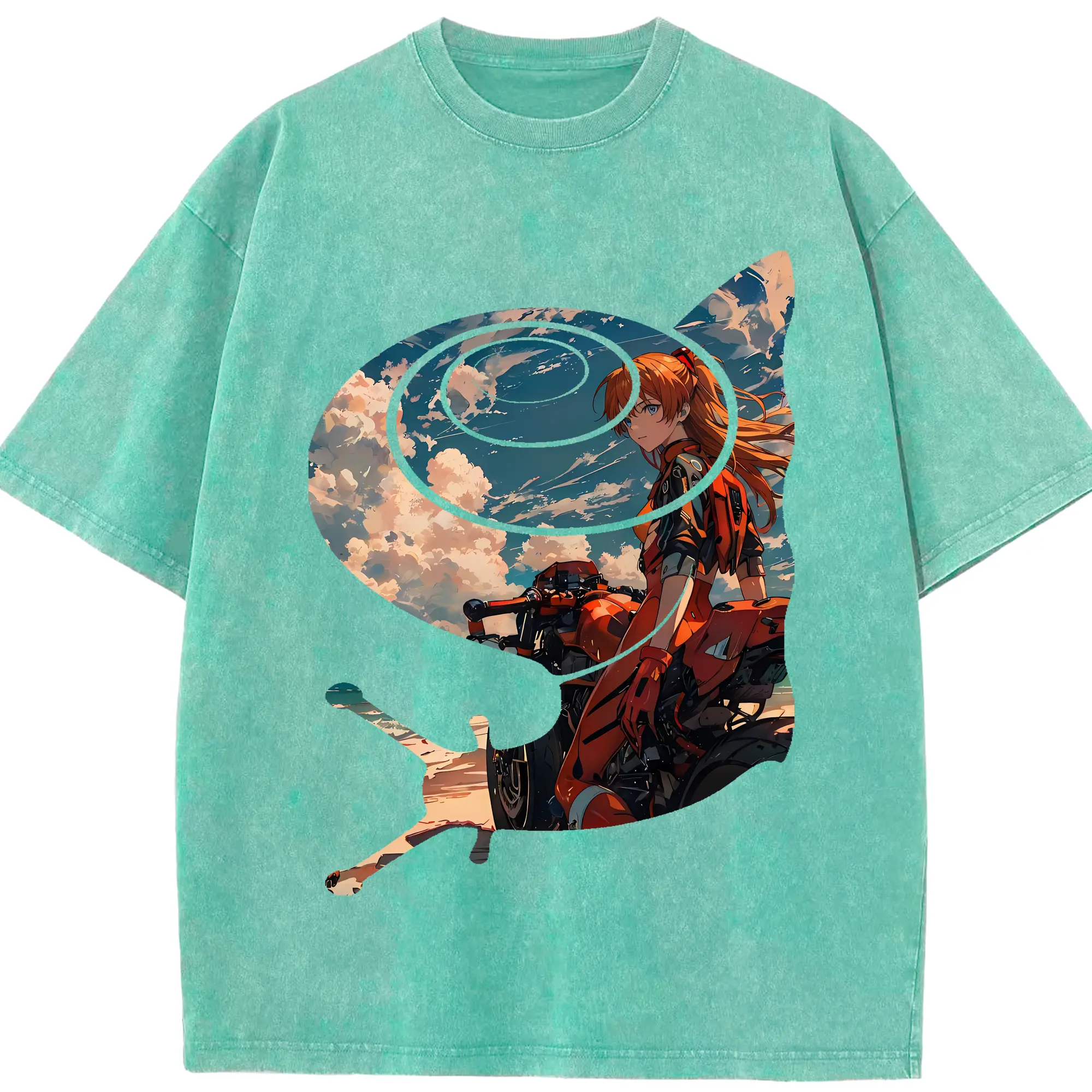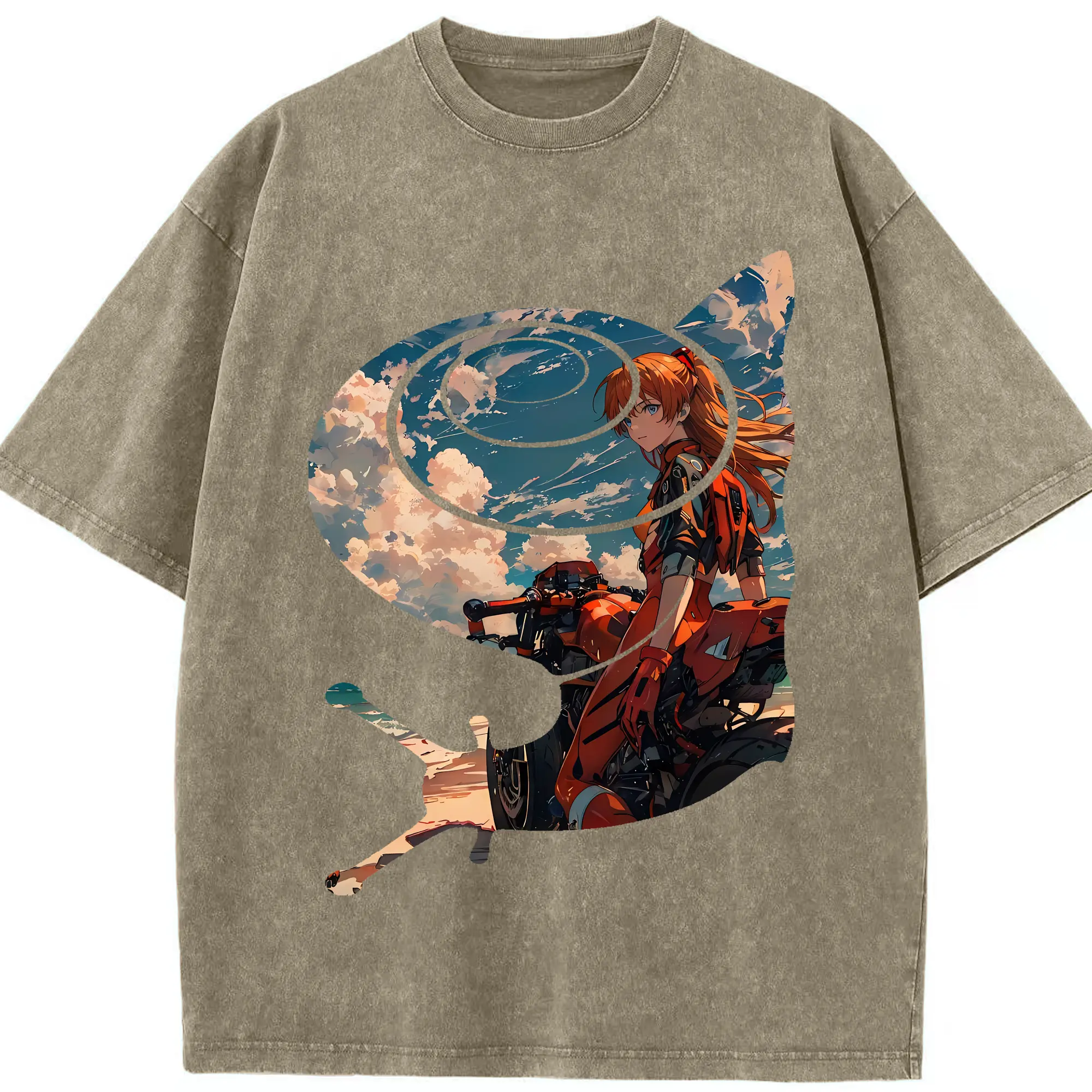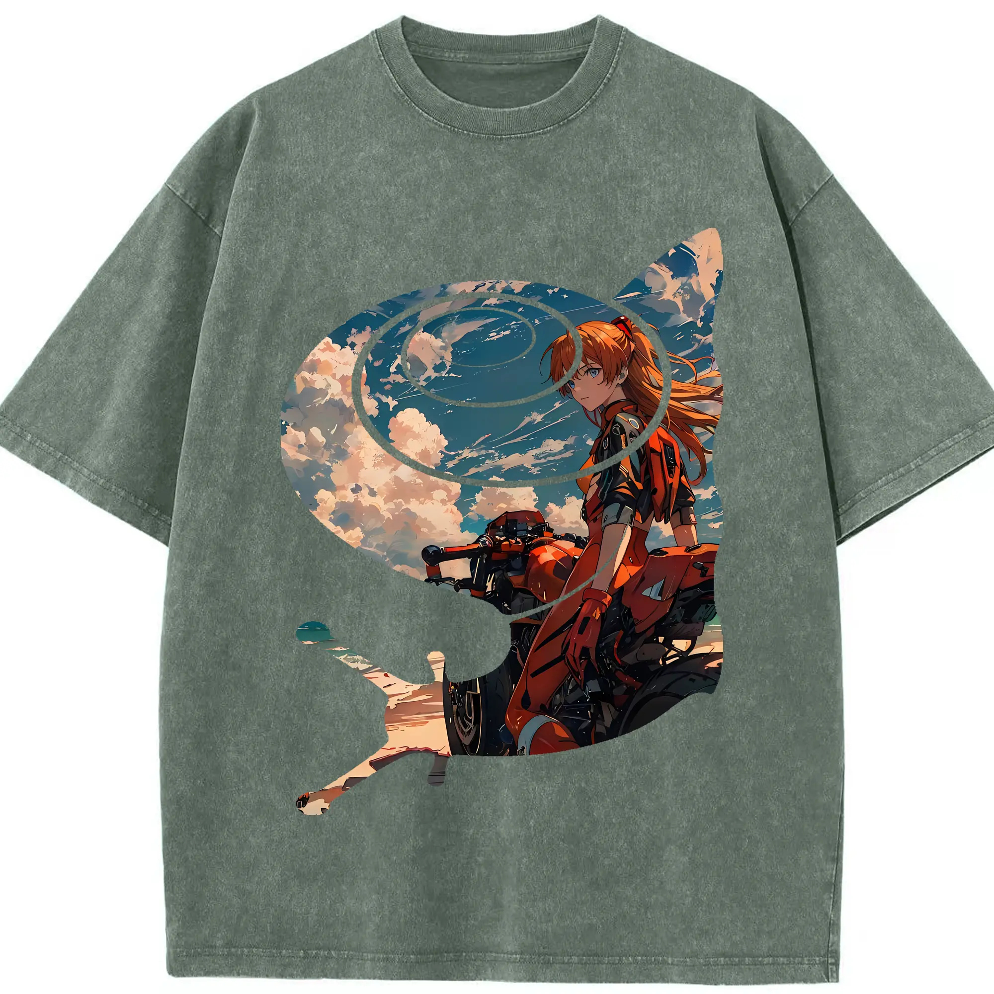 エヴァンゲリオン グッズ,アスカ·ラングレー - 綿100% ヴィンテージ風 半袖Tシャツ ・ 背面プリント ・ 柔らか肌触り ・ 通気性 快適 ・ スポーツ カジュアル 外出用