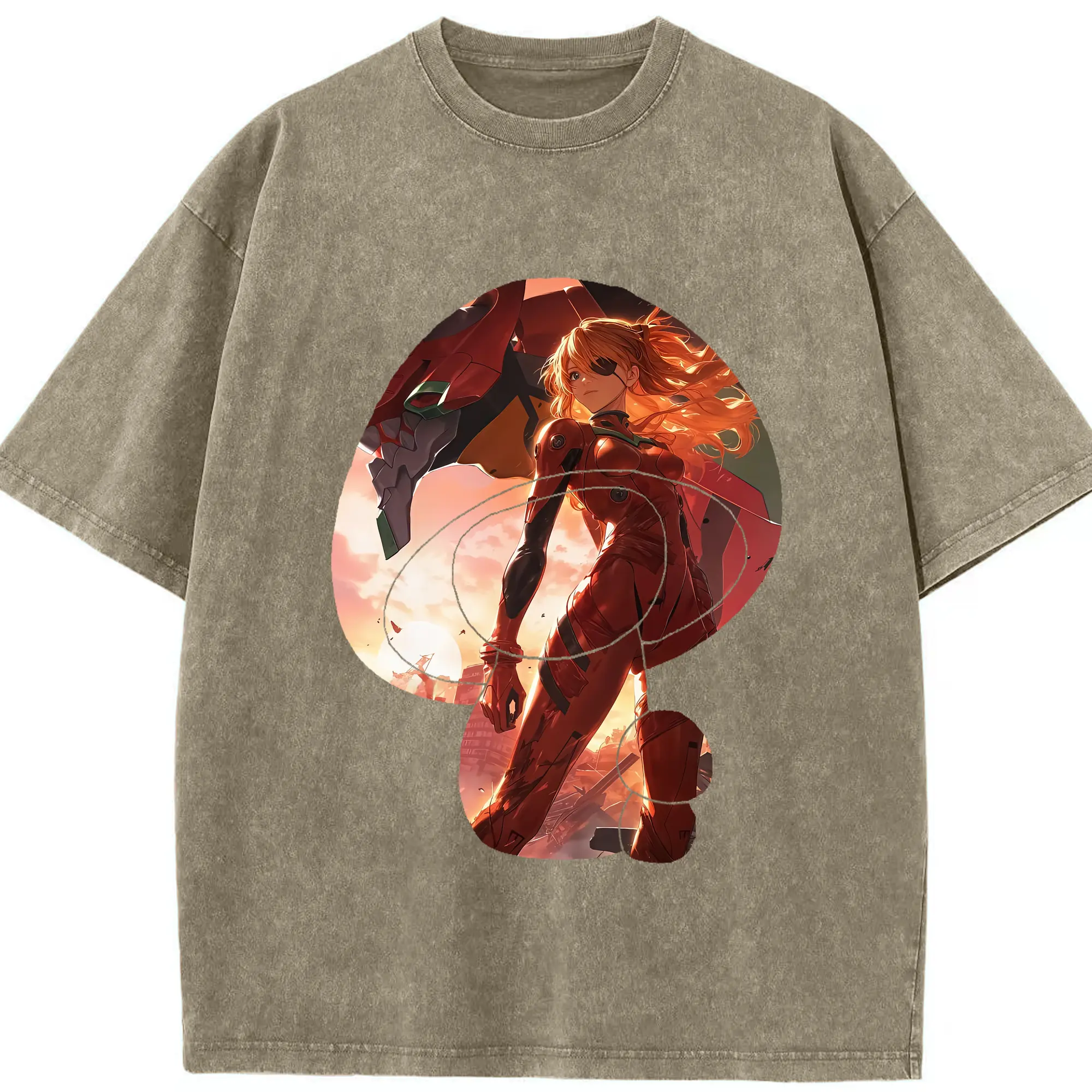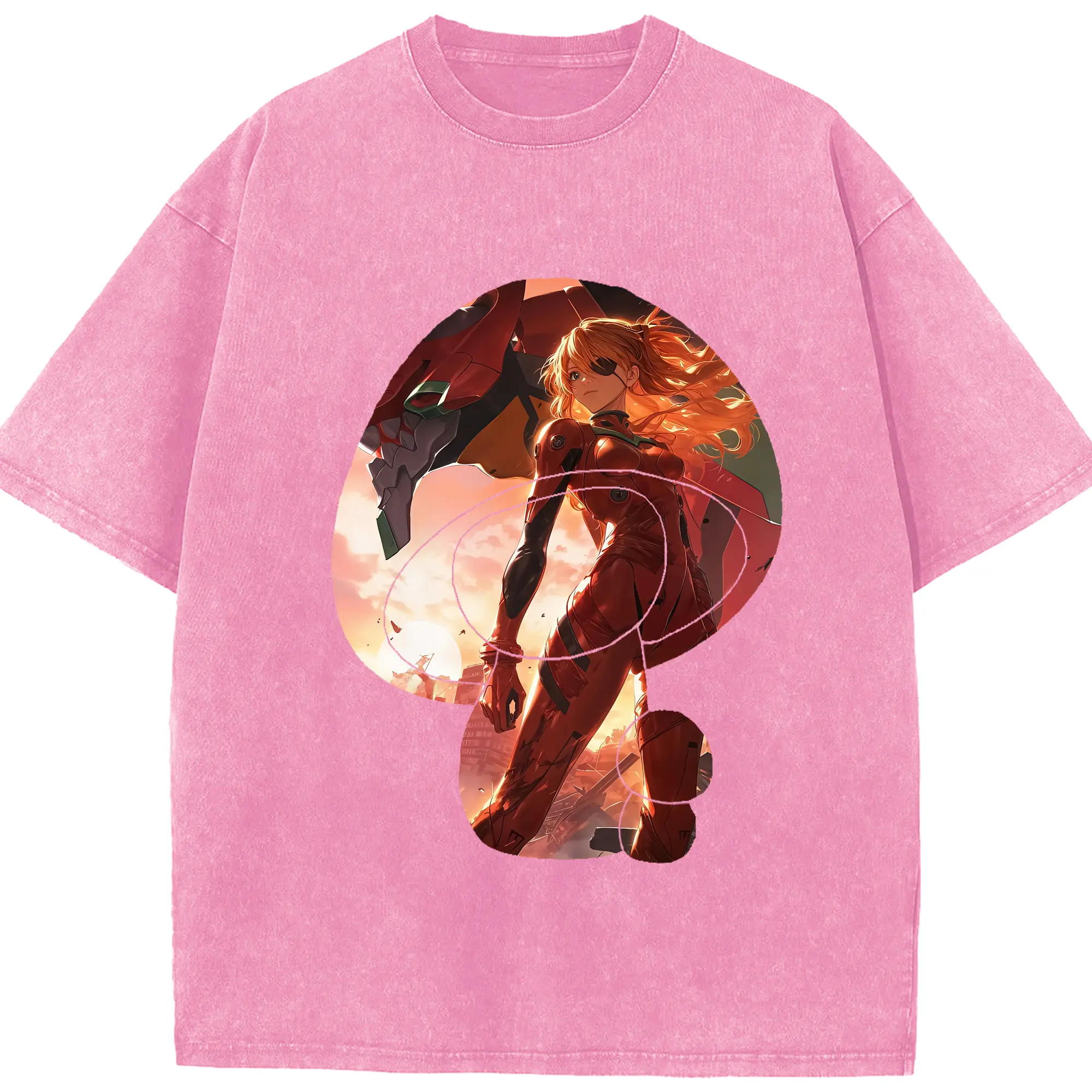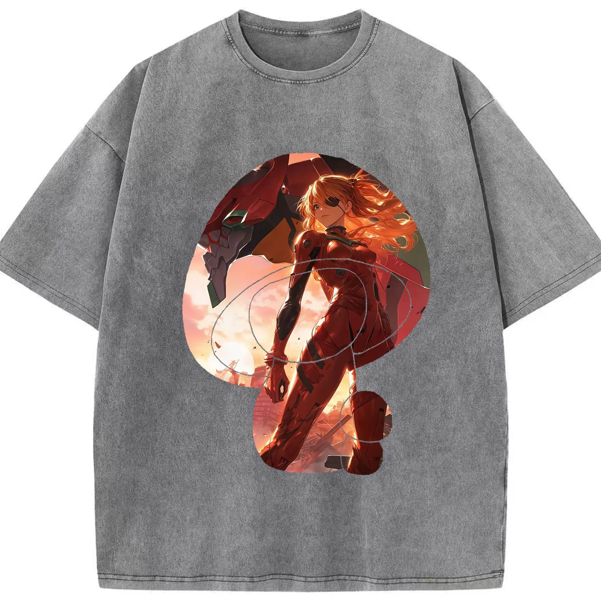 エヴァンゲリオン グッズ,アスカ·ラングレー - 綿100% ヴィンテージ風 半袖Tシャツ ・ 背面プリント ・ 柔らか肌触り ・ 通気性 快適 ・ スポーツ カジュアル 外出用