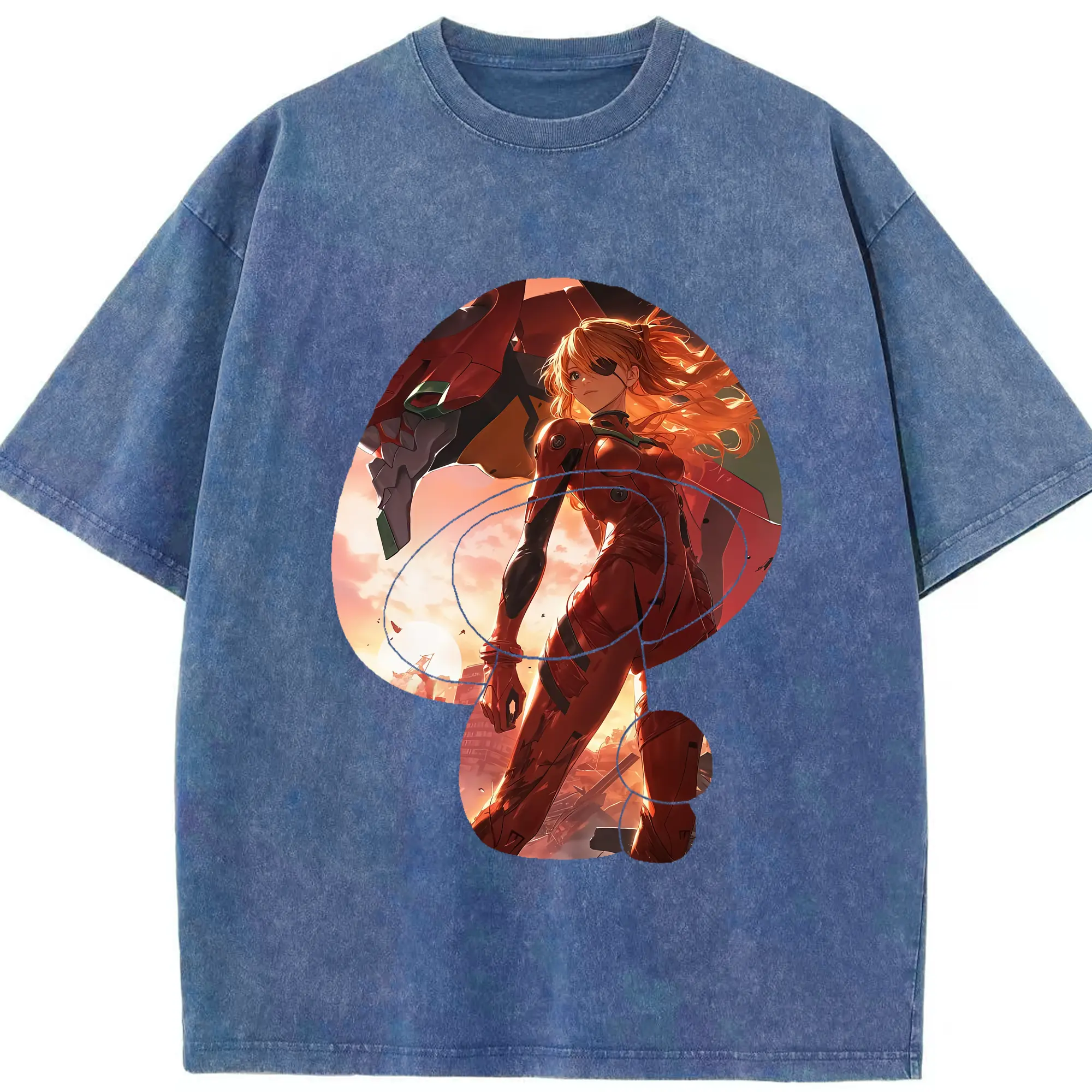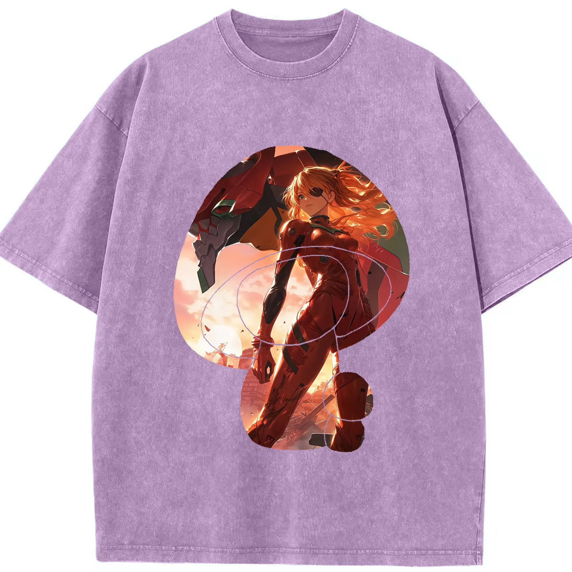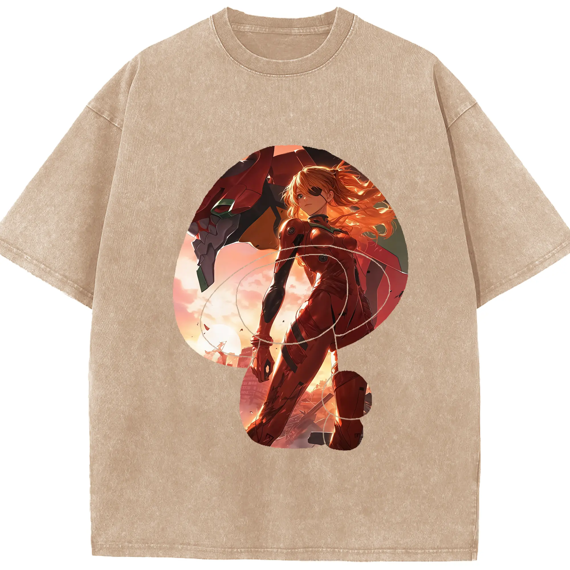 エヴァンゲリオン グッズ,アスカ·ラングレー - 綿100% ヴィンテージ風 半袖Tシャツ ・ 背面プリント ・ 柔らか肌触り ・ 通気性 快適 ・ スポーツ カジュアル 外出用