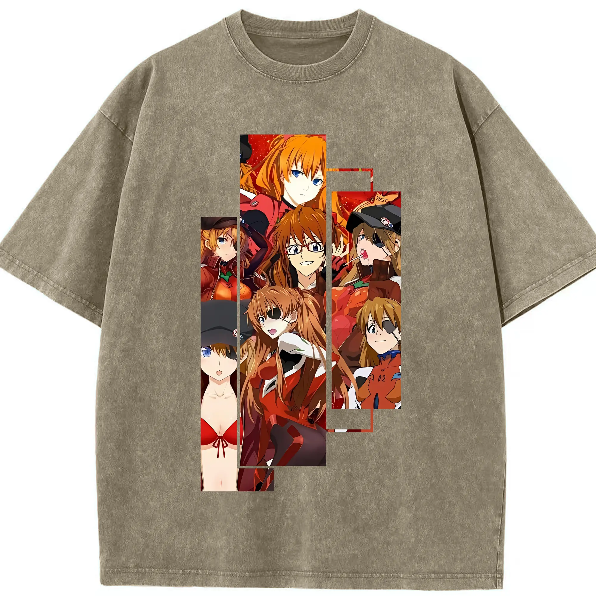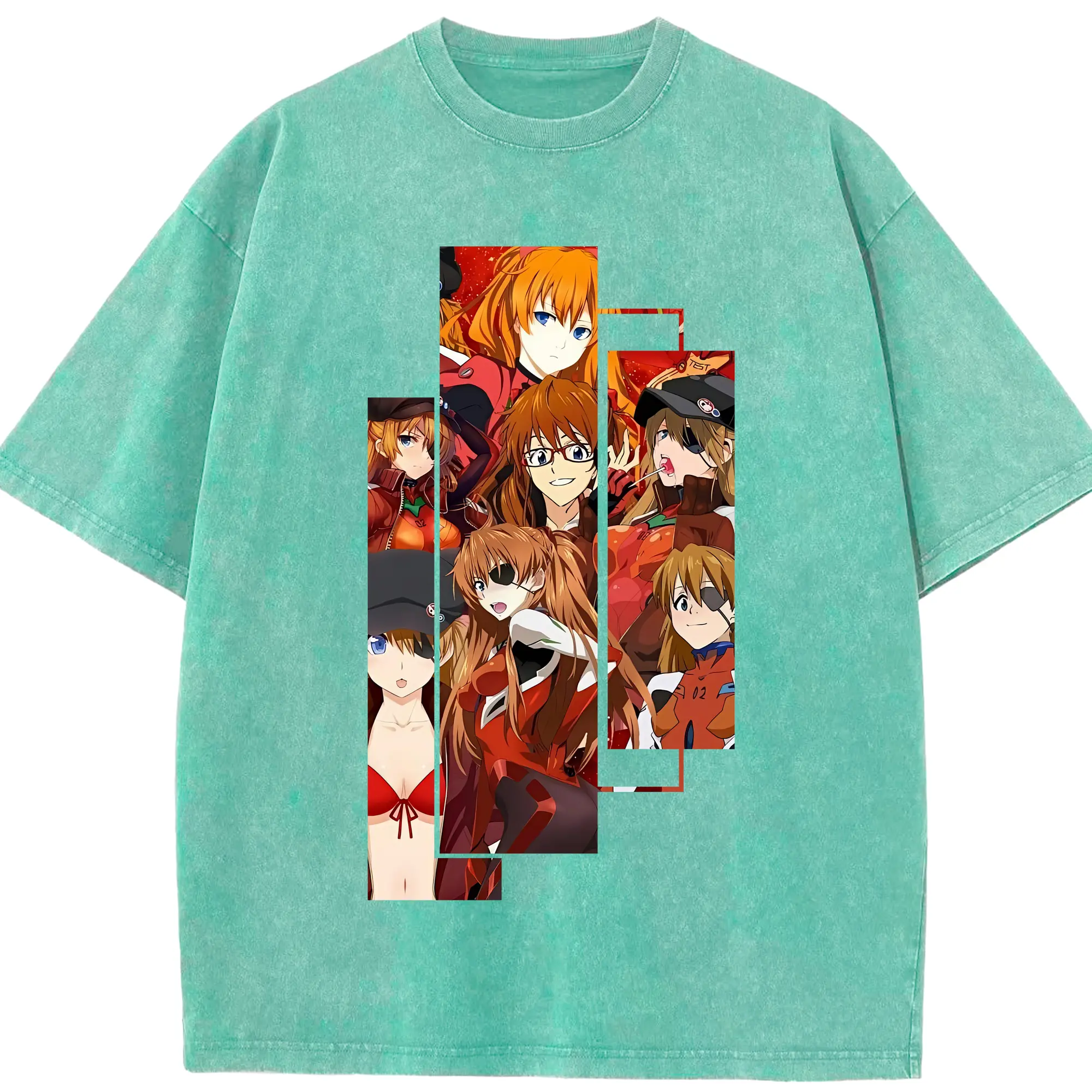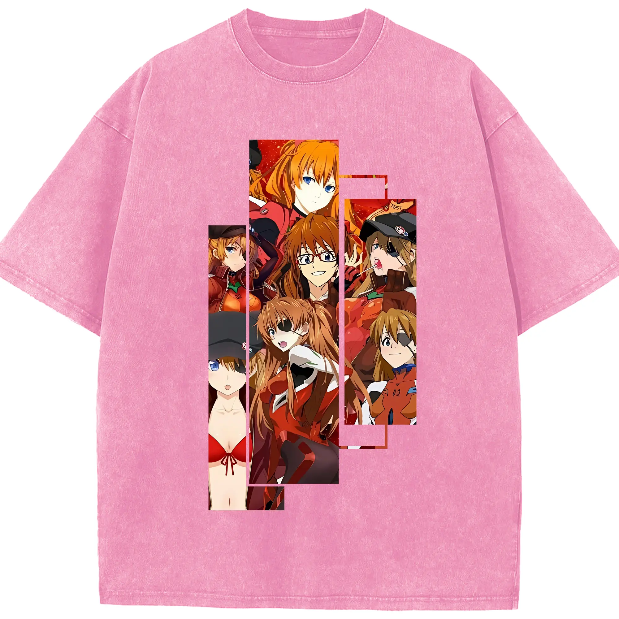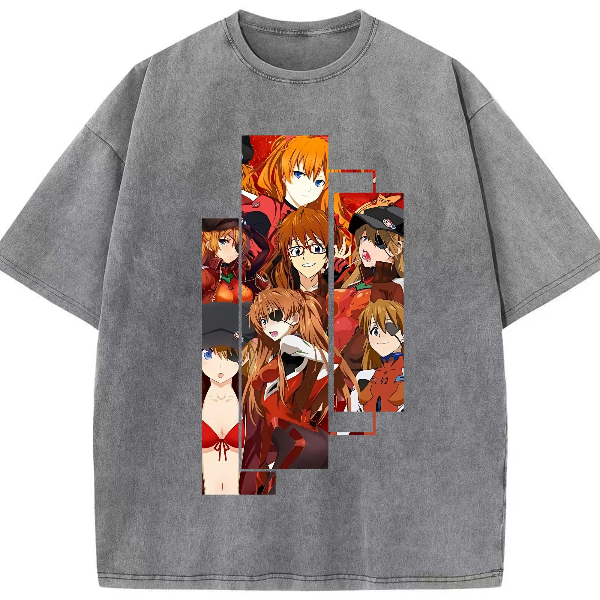 エヴァンゲリオン グッズ,アスカ·ラングレー - 綿100% ヴィンテージ風 半袖Tシャツ ・ 背面プリント ・ 柔らか肌触り ・ 通気性 快適 ・ スポーツ カジュアル 外出用