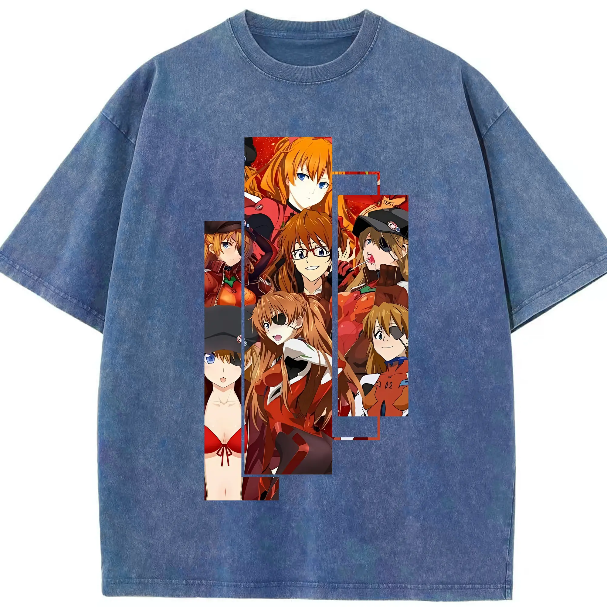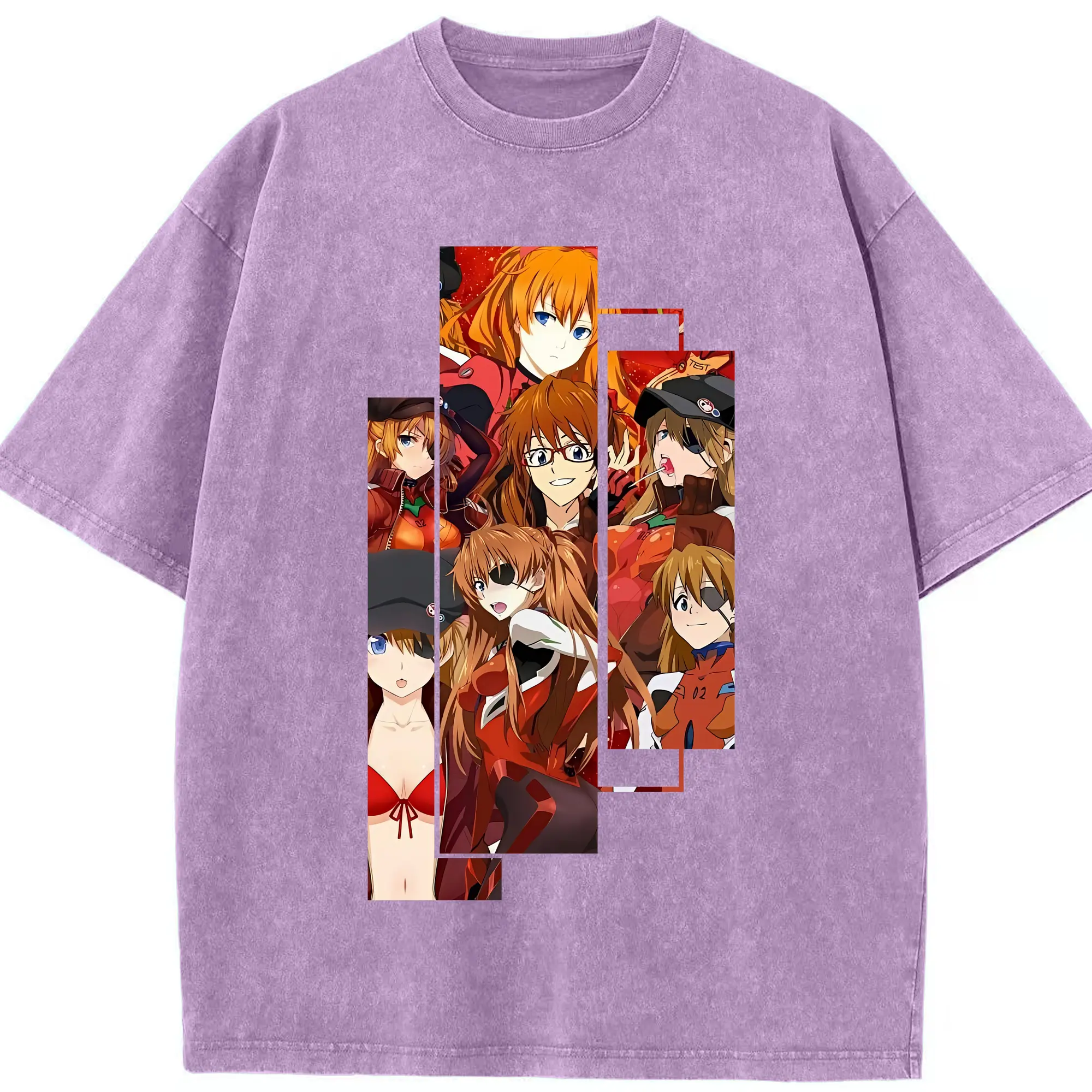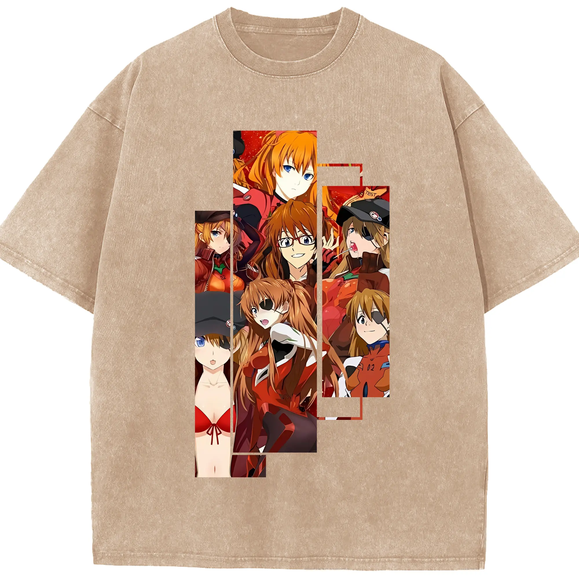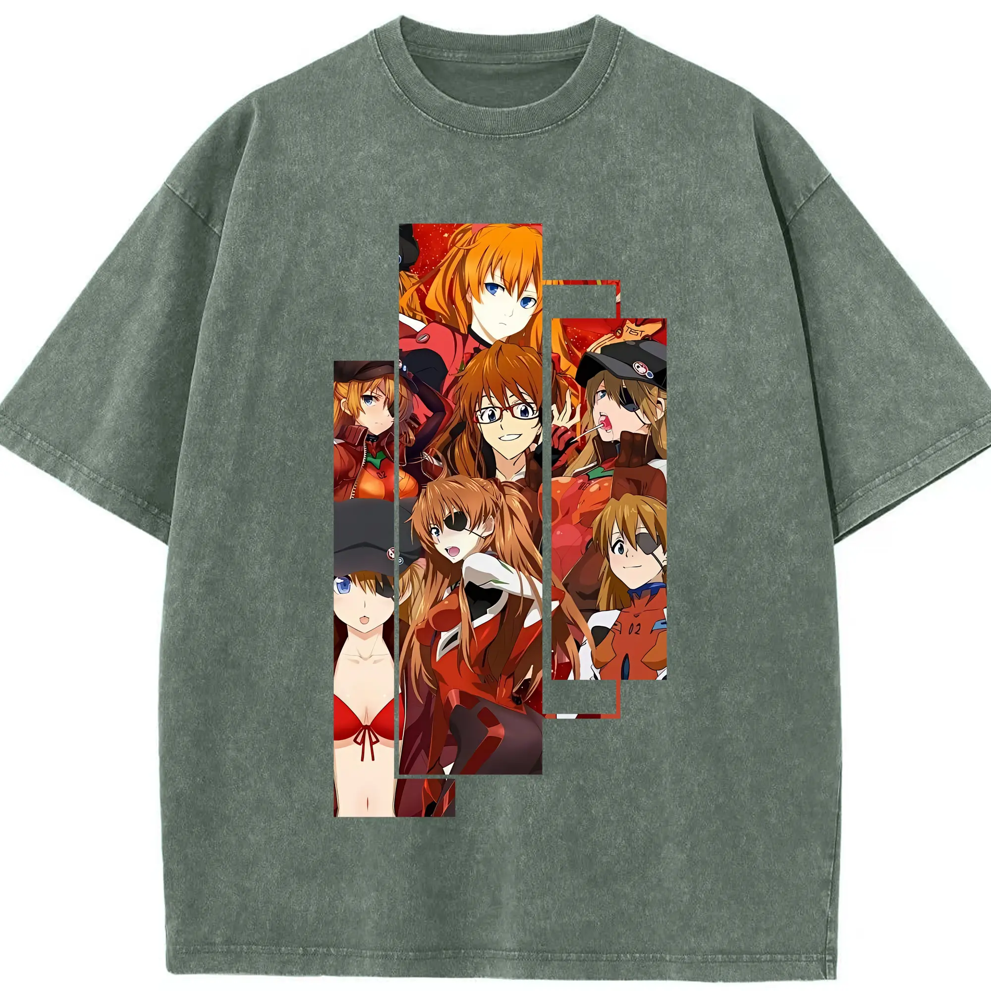 エヴァンゲリオン グッズ,アスカ·ラングレー - 綿100% ヴィンテージ風 半袖Tシャツ ・ 背面プリント ・ 柔らか肌触り ・ 通気性 快適 ・ スポーツ カジュアル 外出用