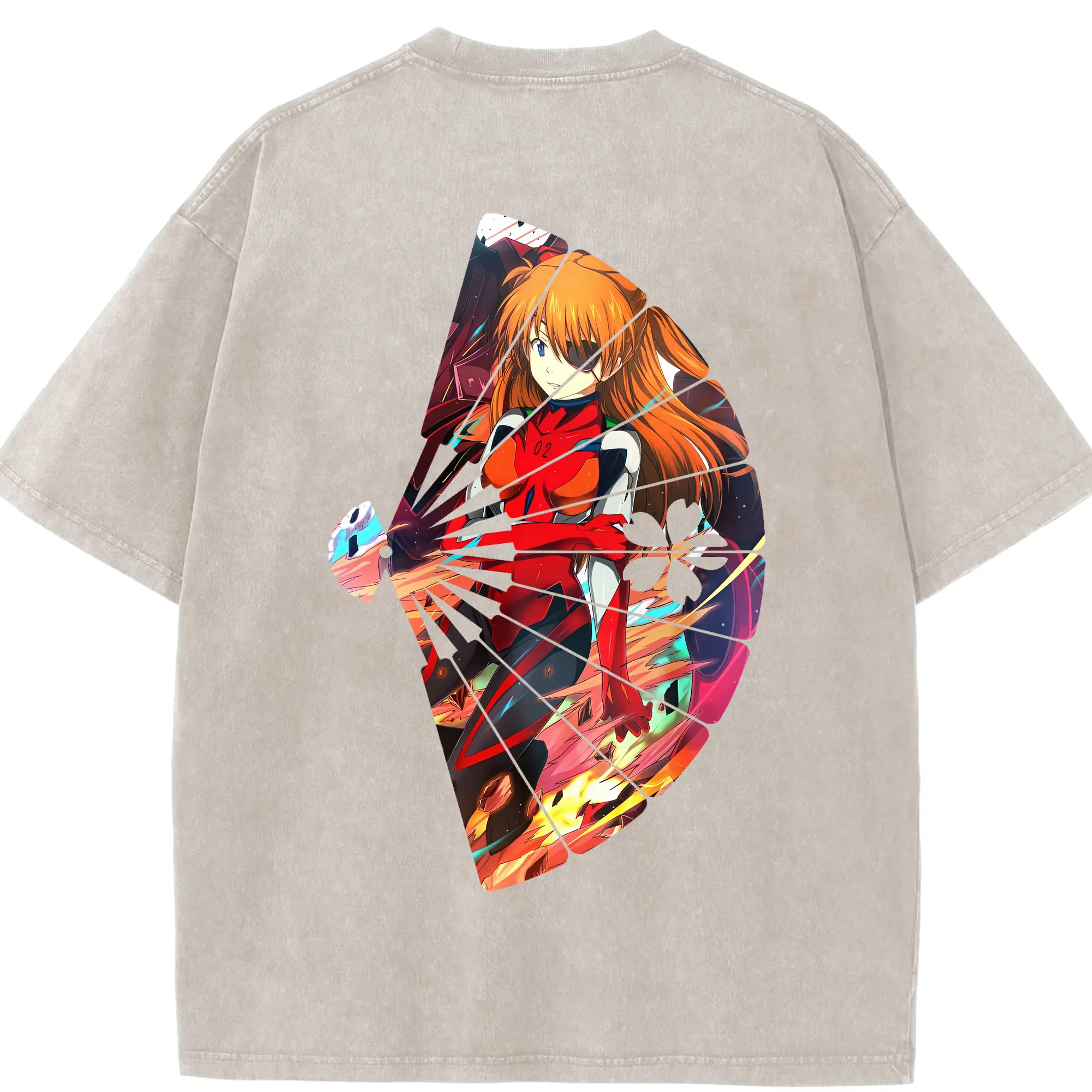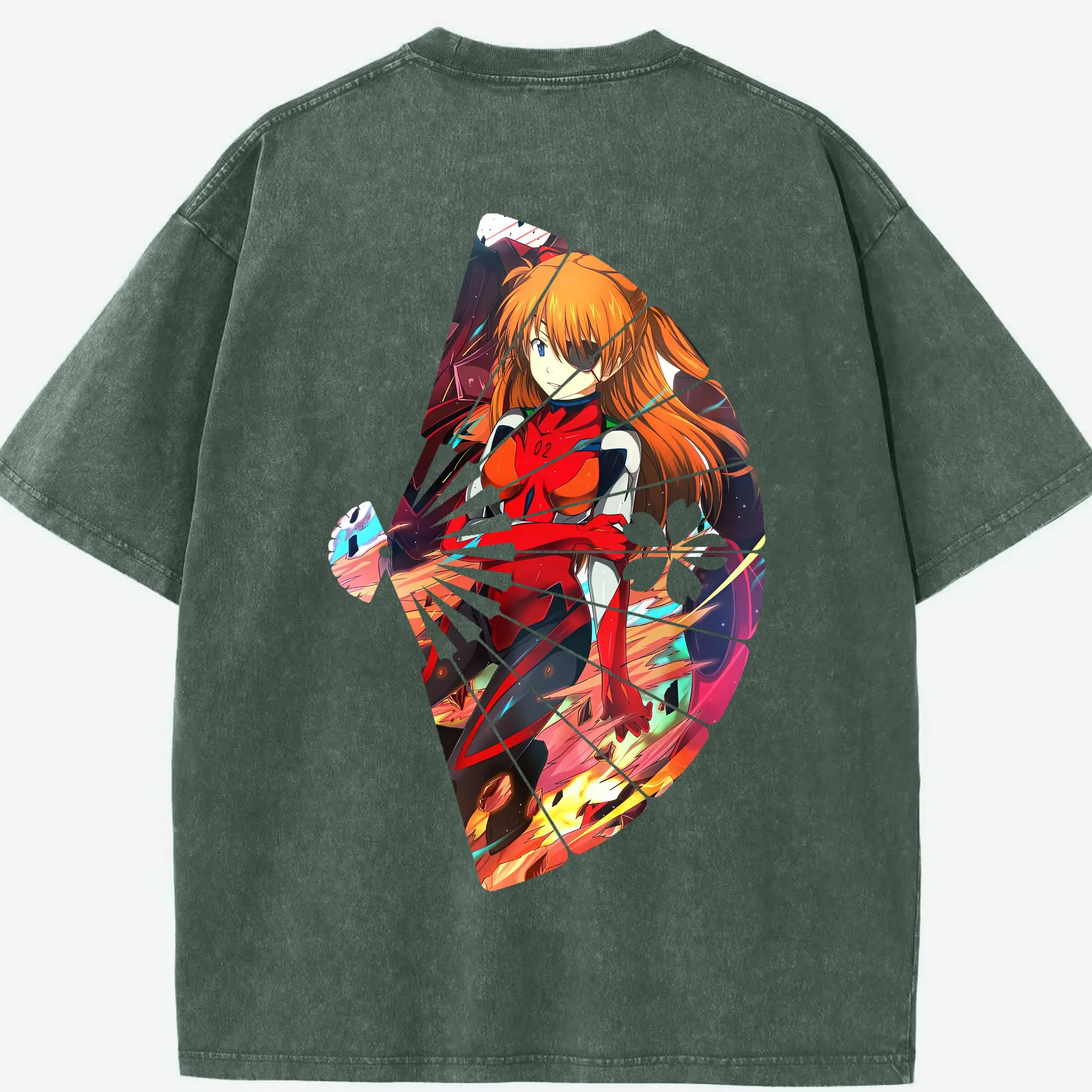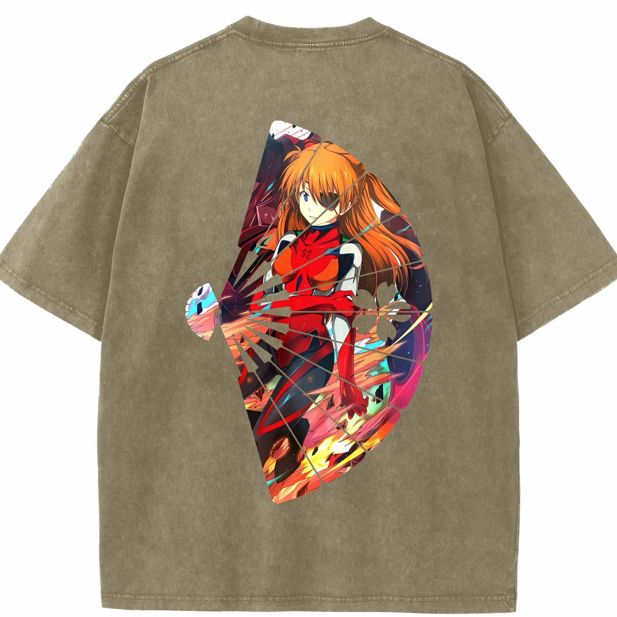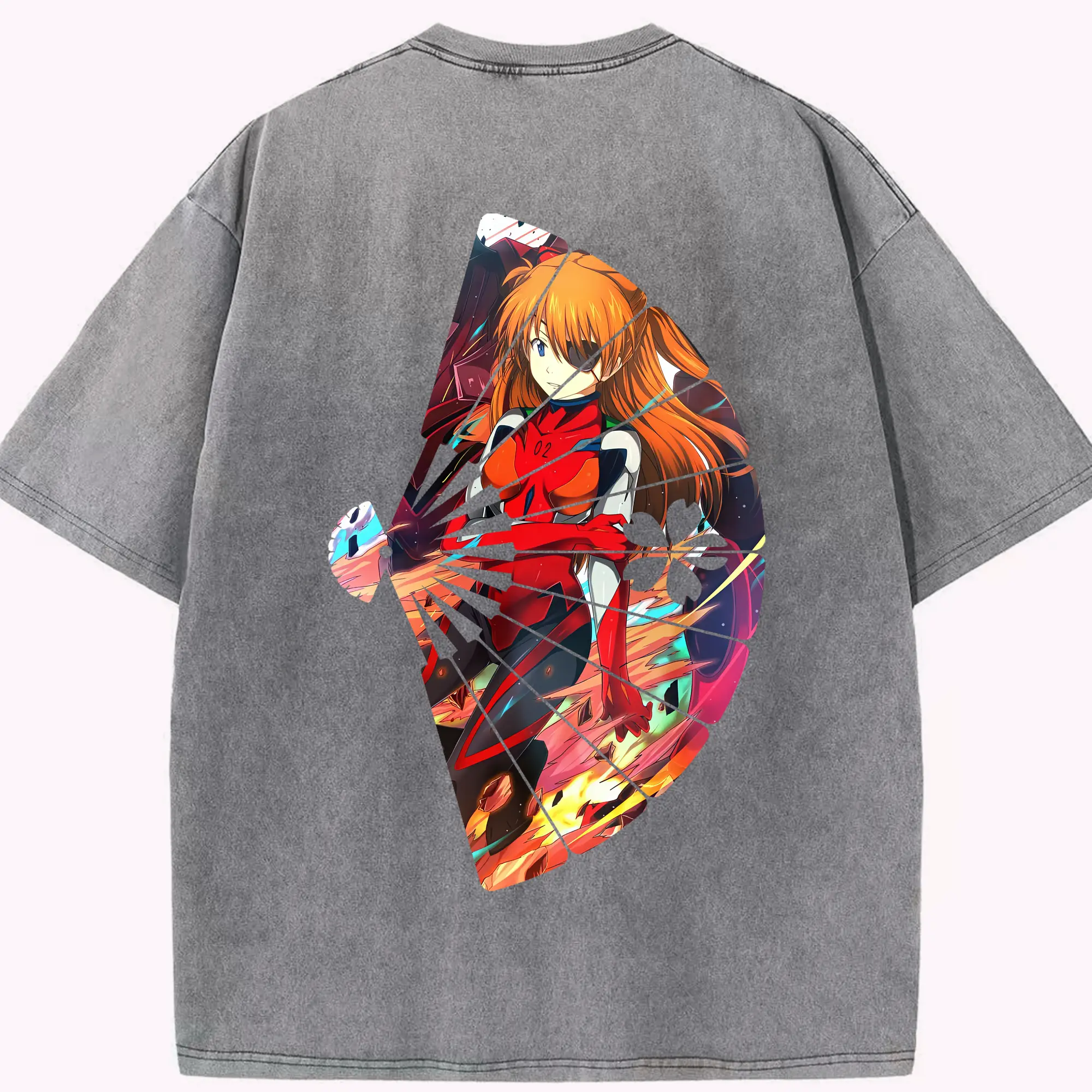 エヴァンゲリオン グッズ,アスカ·ラングレー - 綿100% ヴィンテージ風 半袖Tシャツ ・ フロントプリント ・ 柔らか肌触り ・ 通気性 快適 ・ スポーツ カジュアル 外出用
