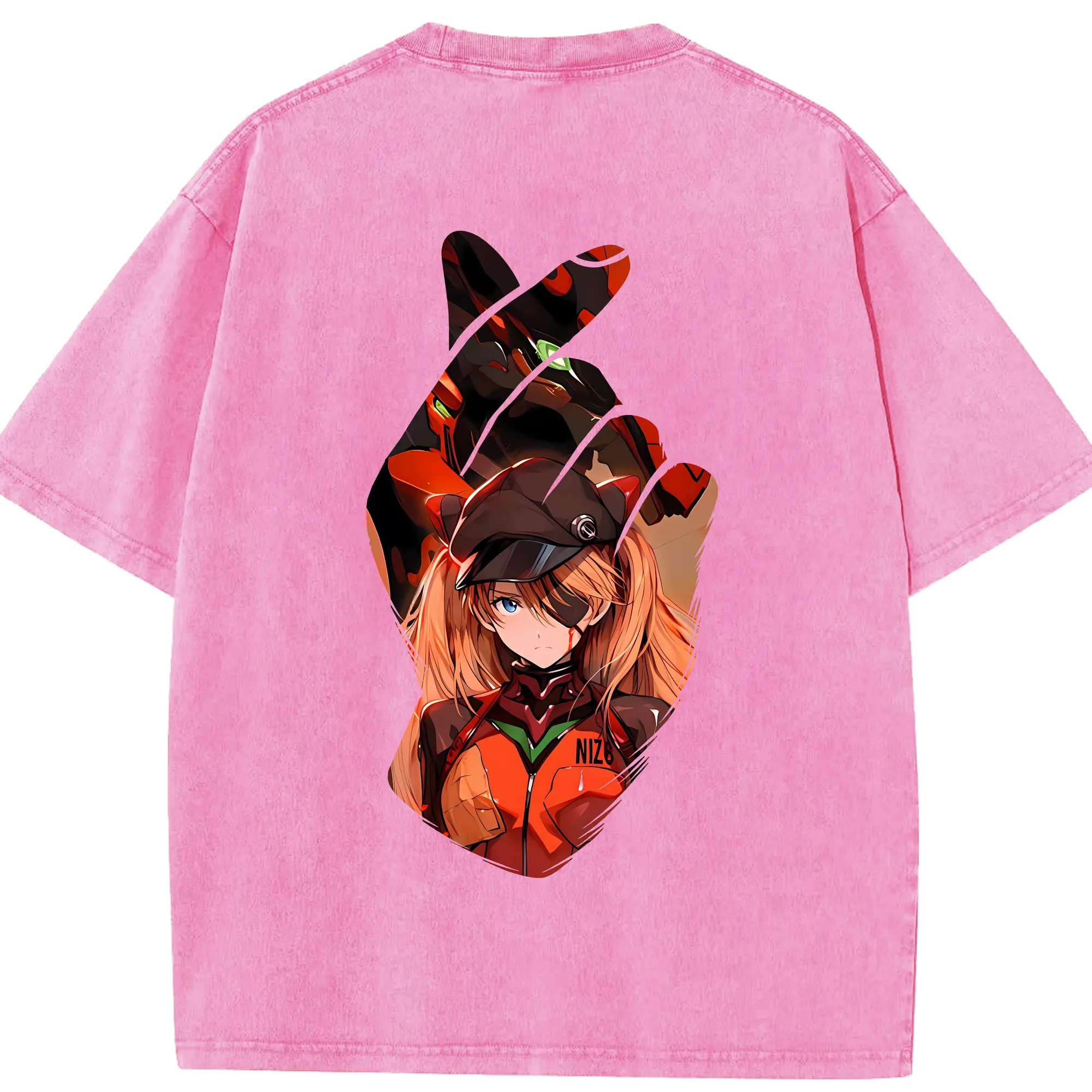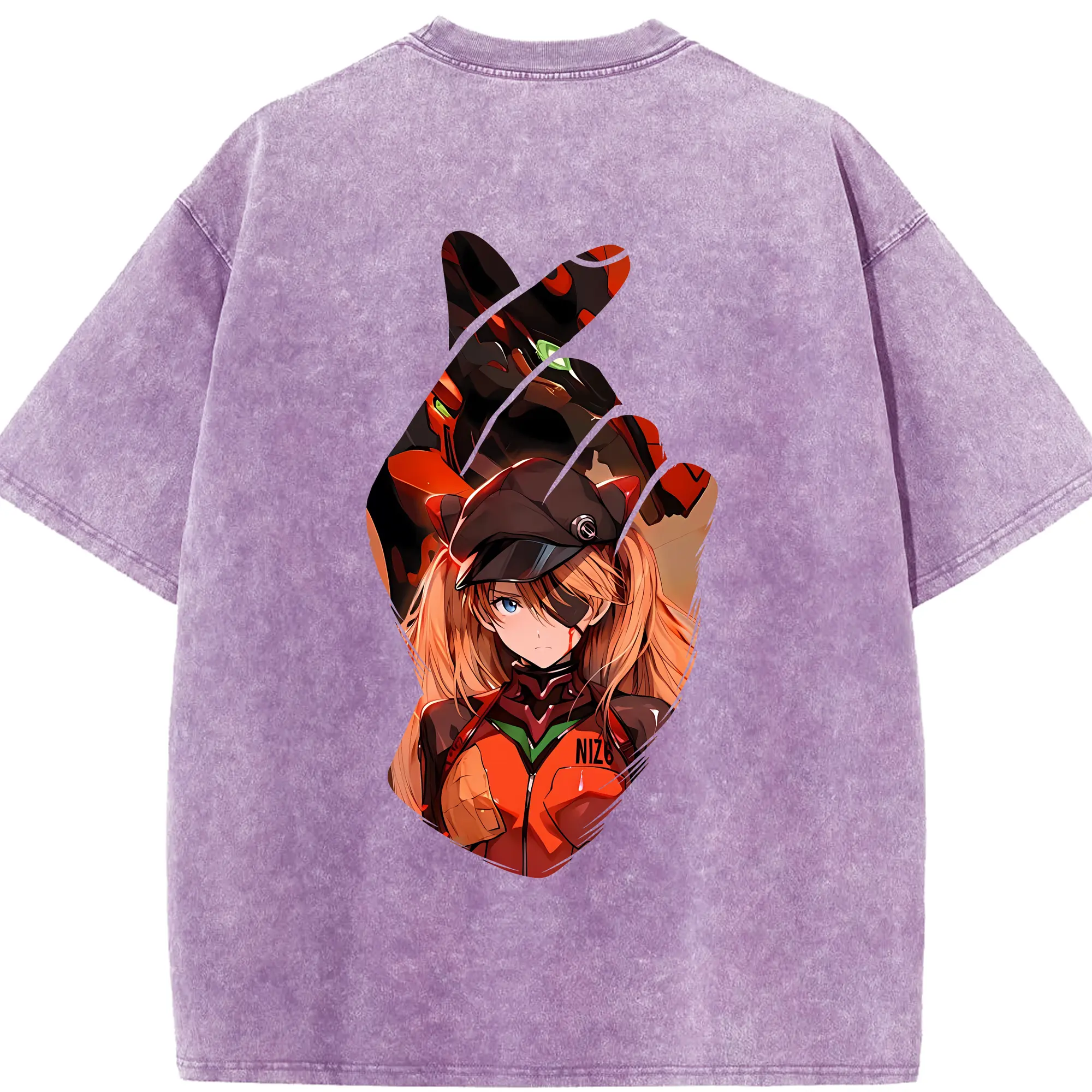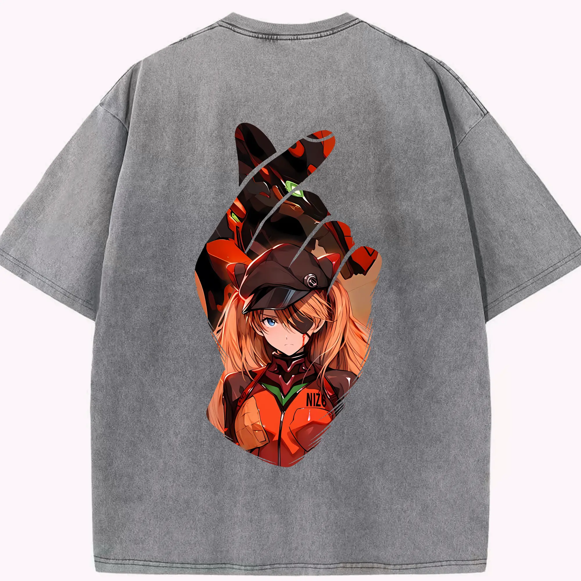 エヴァンゲリオン グッズ,アスカ·ラングレー - 綿100% ヴィンテージ風 半袖Tシャツ ・ フロントプリント ・ 柔らか肌触り ・ 通気性 快適 ・ スポーツ カジュアル 外出用