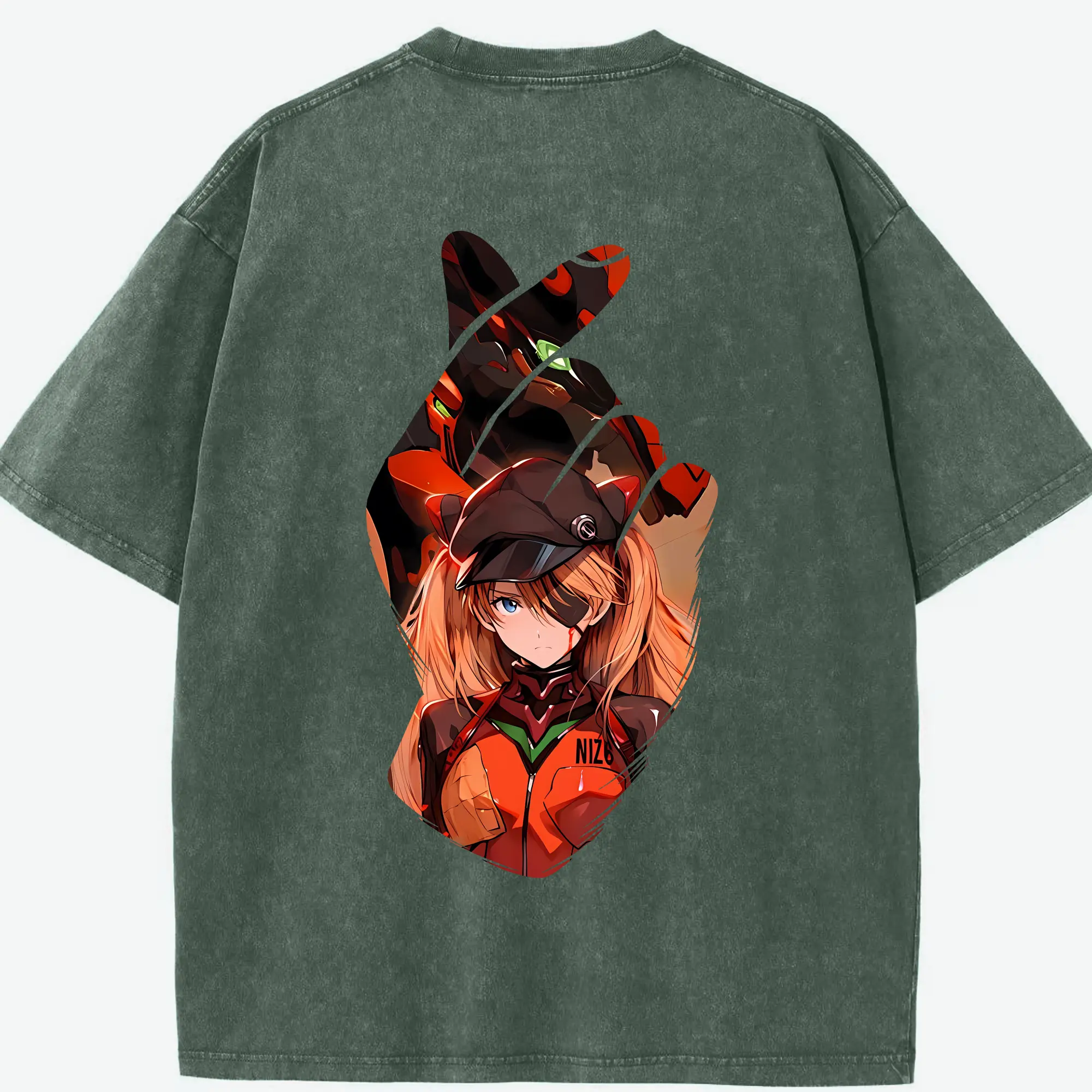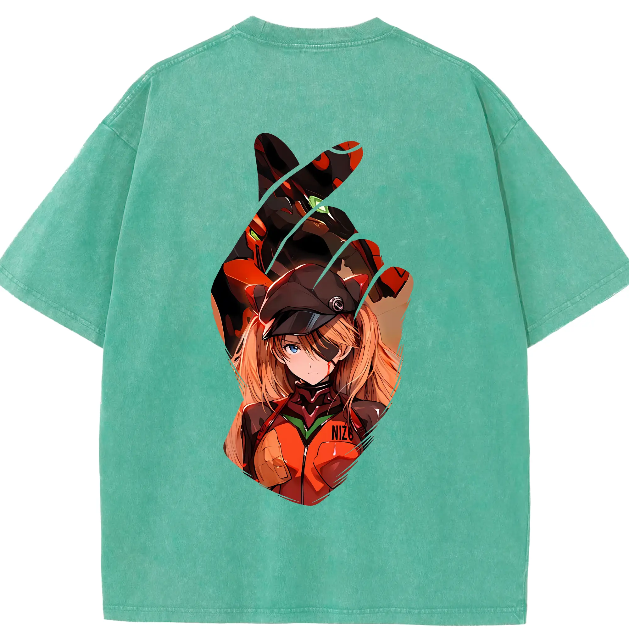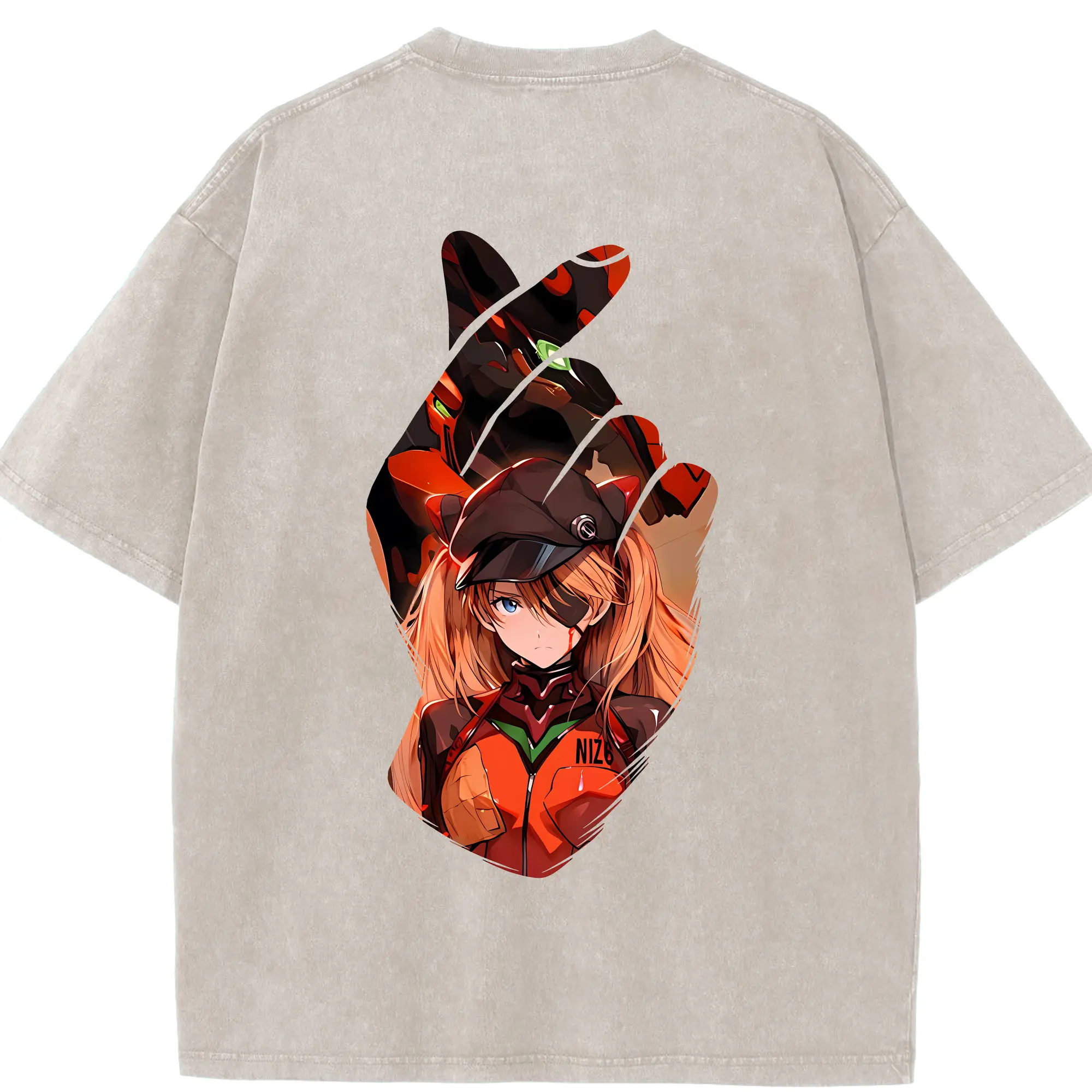 エヴァンゲリオン グッズ,アスカ·ラングレー - 綿100% ヴィンテージ風 半袖Tシャツ ・ フロントプリント ・ 柔らか肌触り ・ 通気性 快適 ・ スポーツ カジュアル 外出用