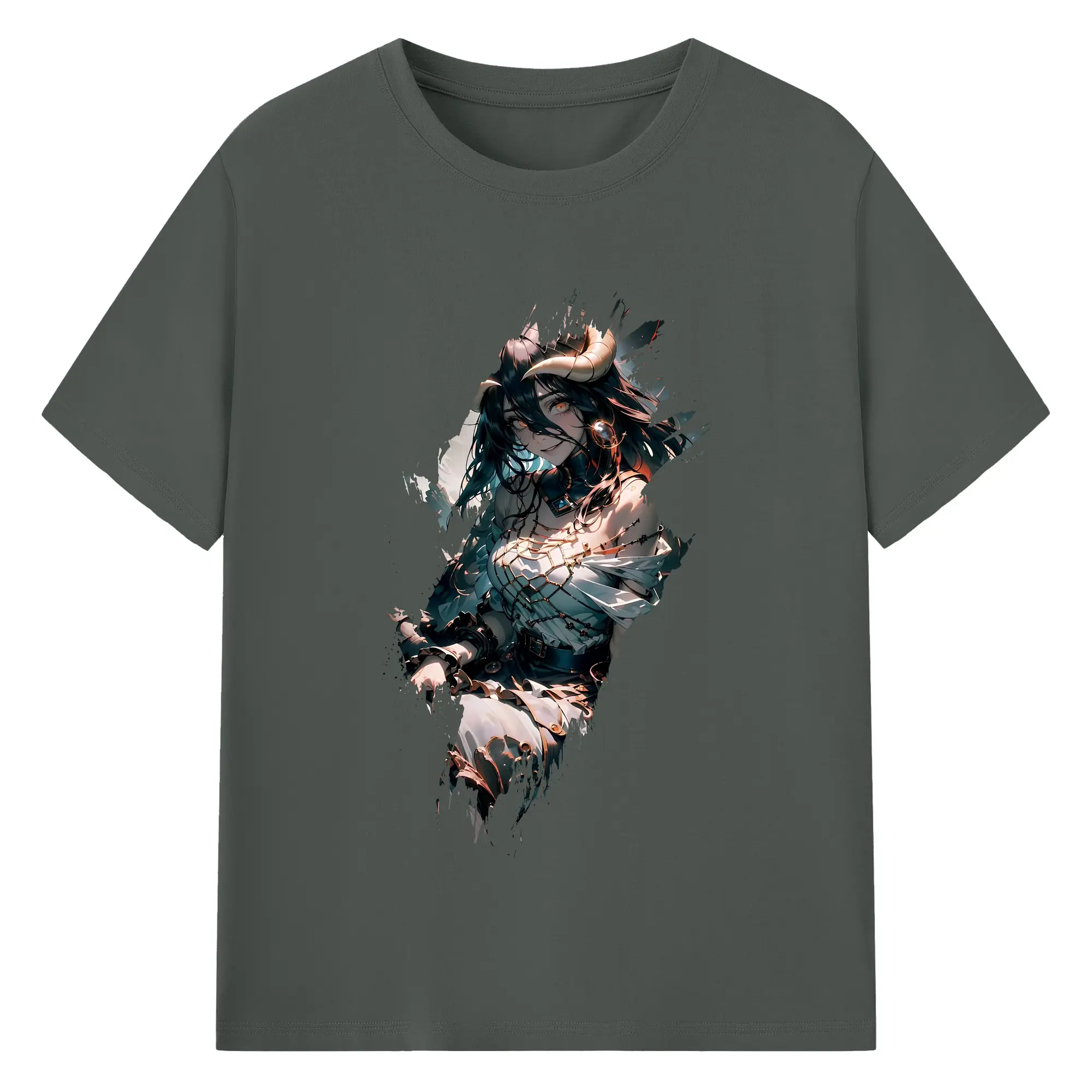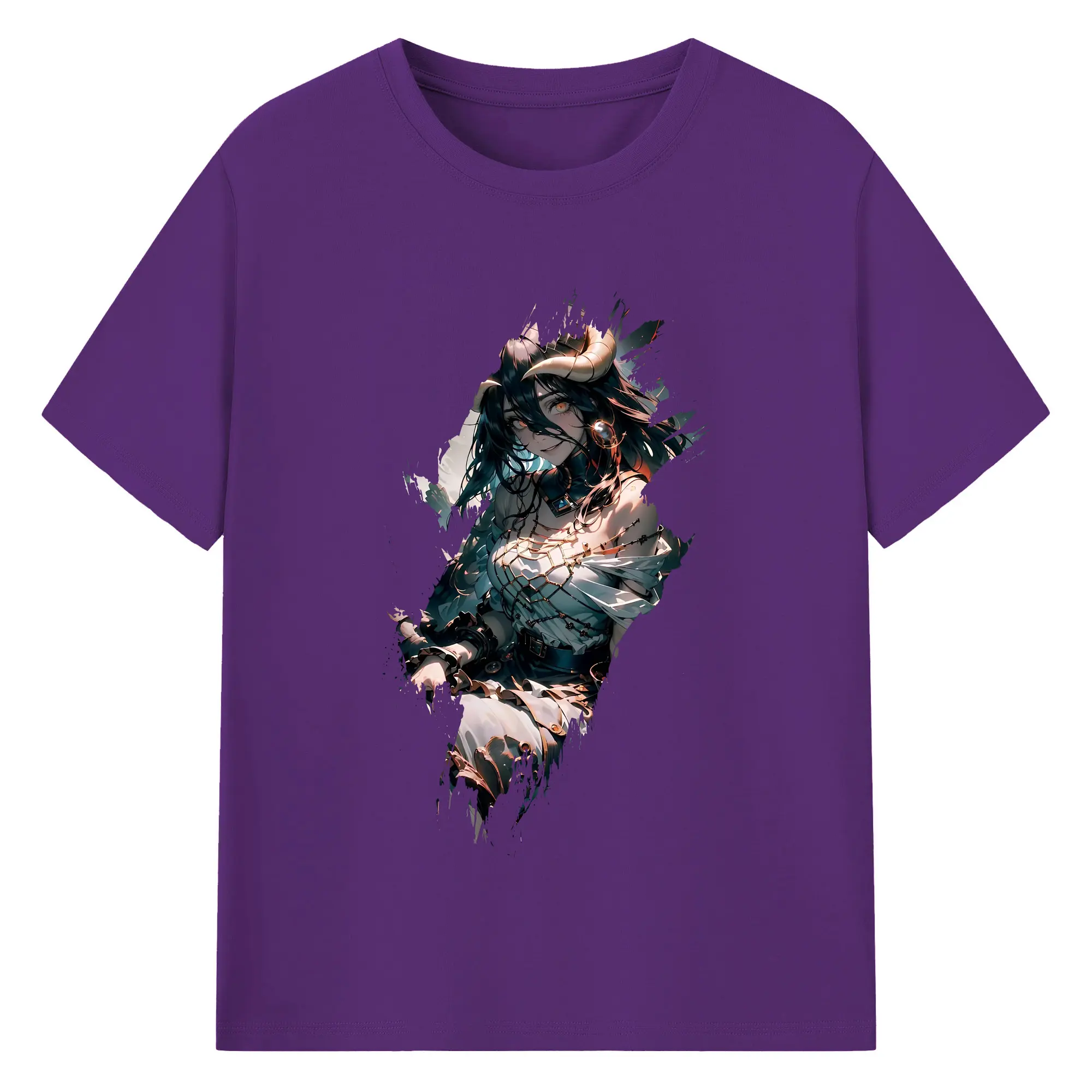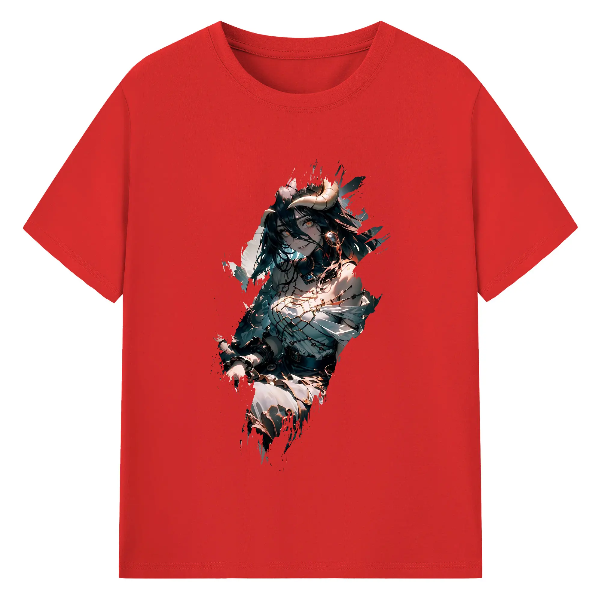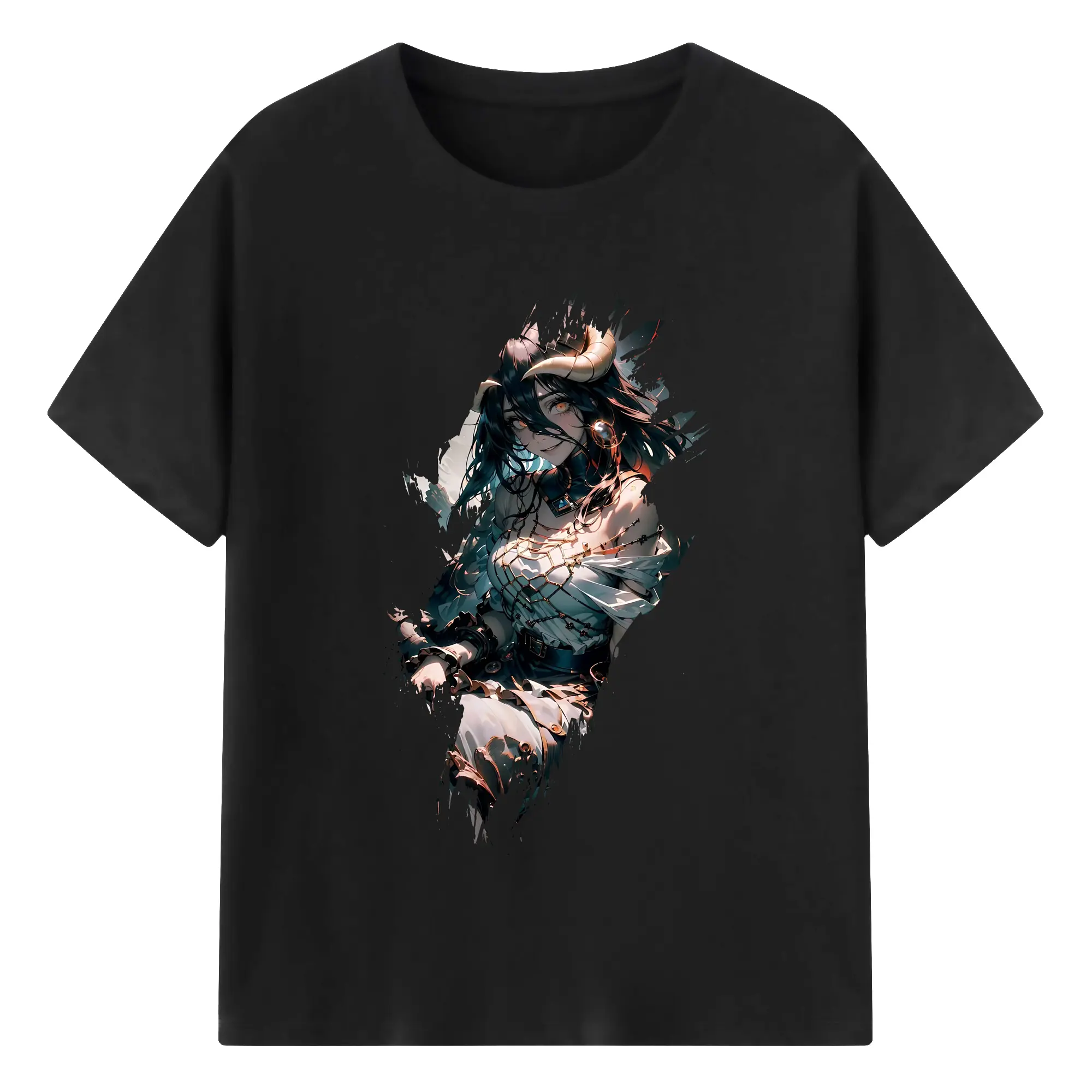 オーバーロード グッズ アルベド - 綿100% ヴィンテージ風 半袖Tシャツ ・ フロントプリント ・ 柔らか肌触り ・ 通気性 快適 ・ スポーツ カジュアル 外出用