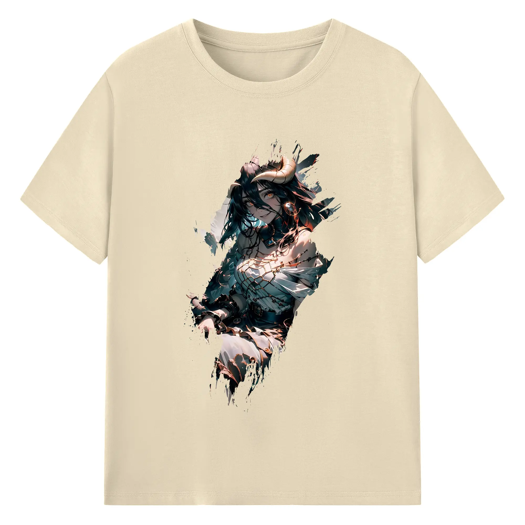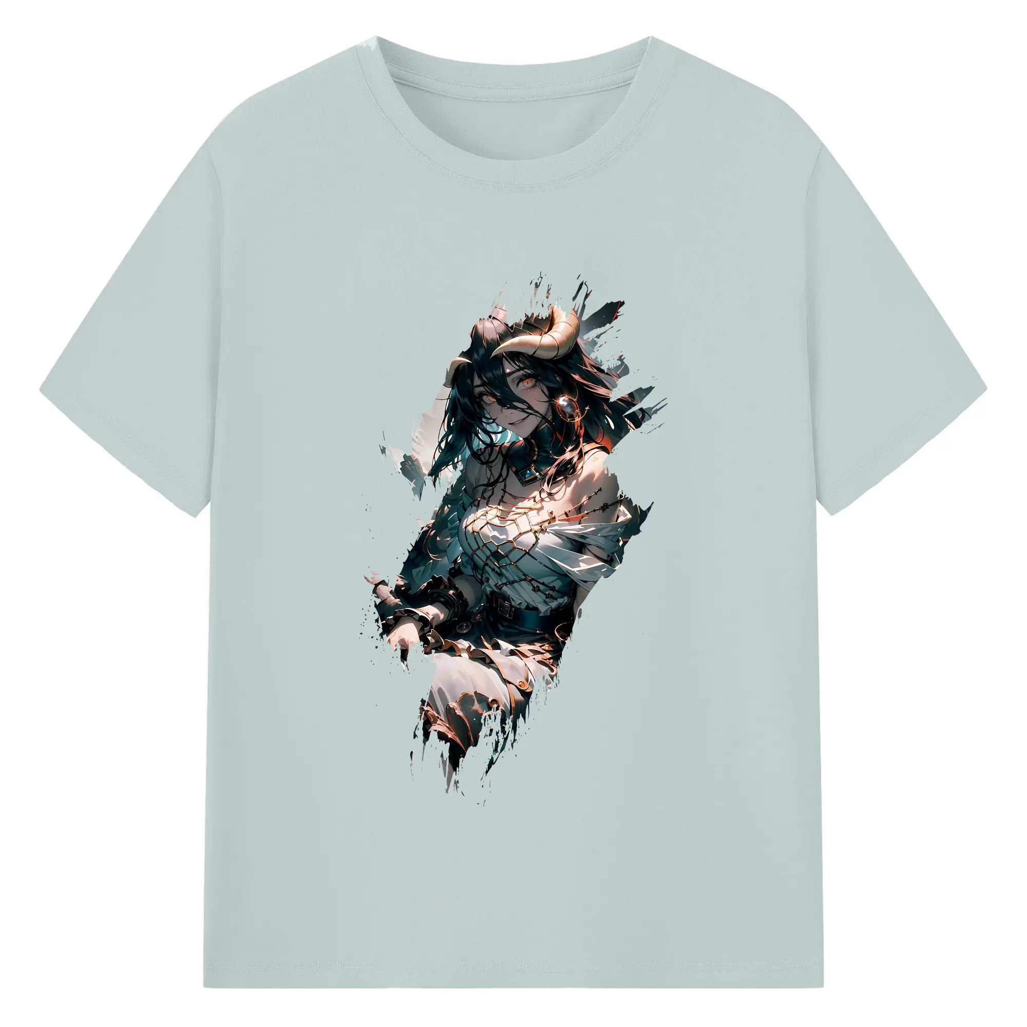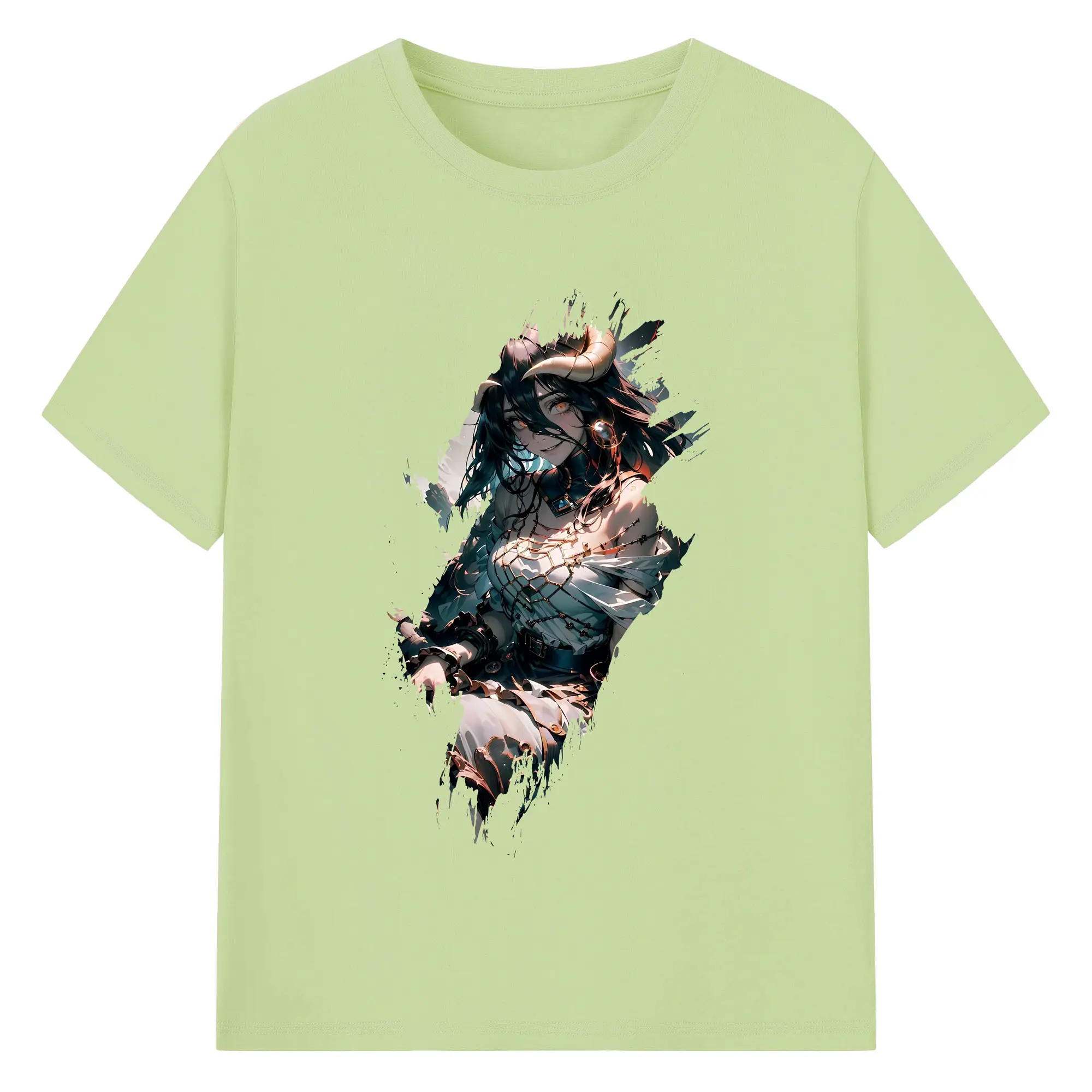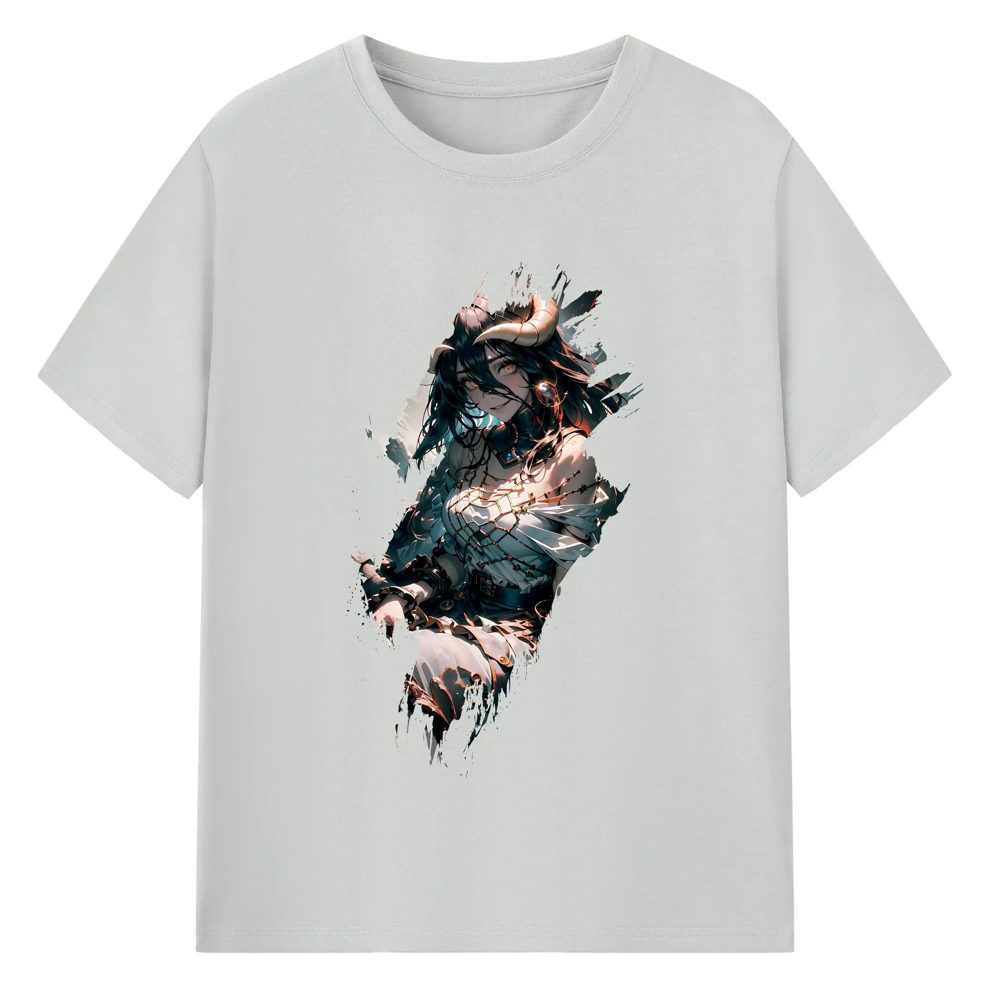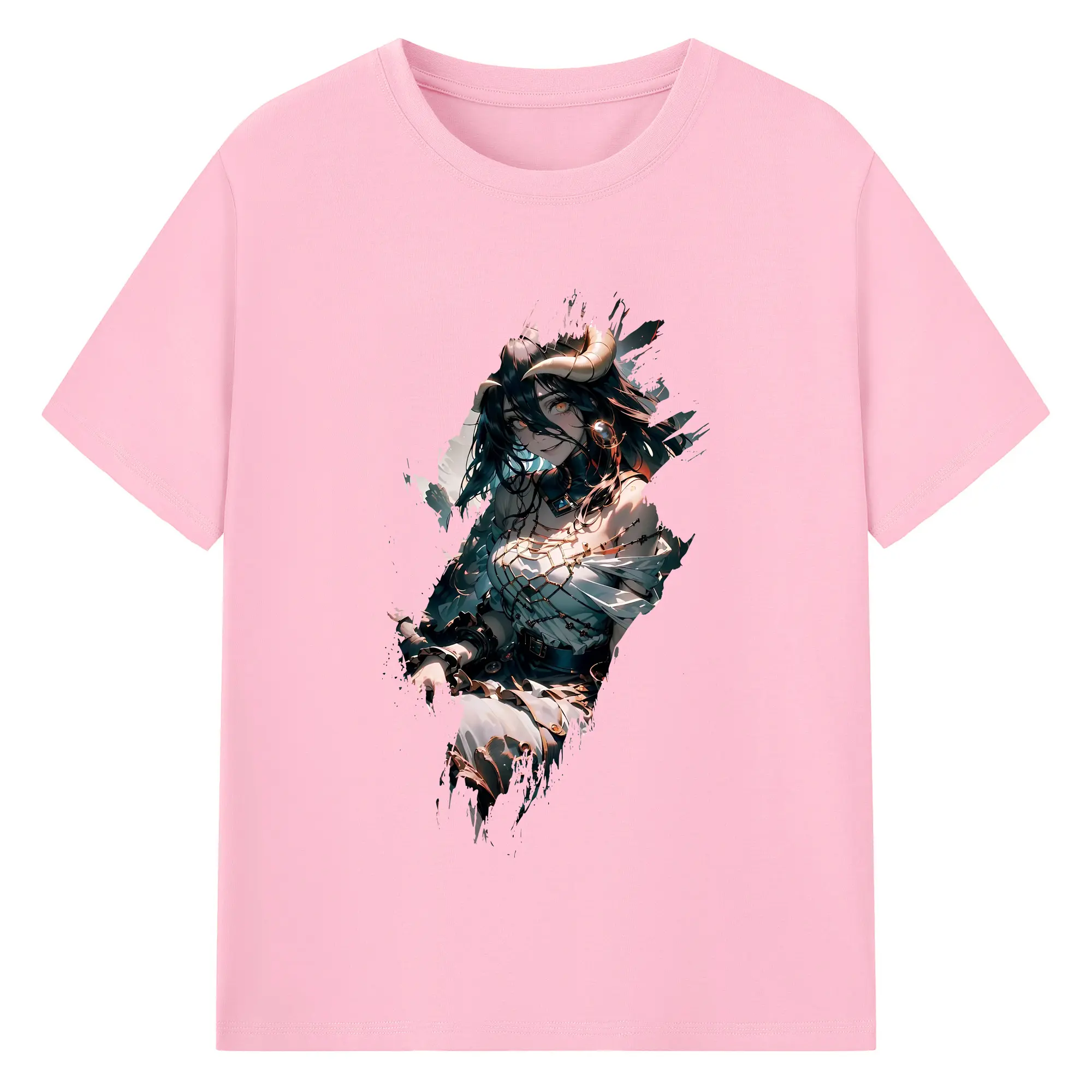 オーバーロード グッズ アルベド - 綿100% ヴィンテージ風 半袖Tシャツ ・ フロントプリント ・ 柔らか肌触り ・ 通気性 快適 ・ スポーツ カジュアル 外出用