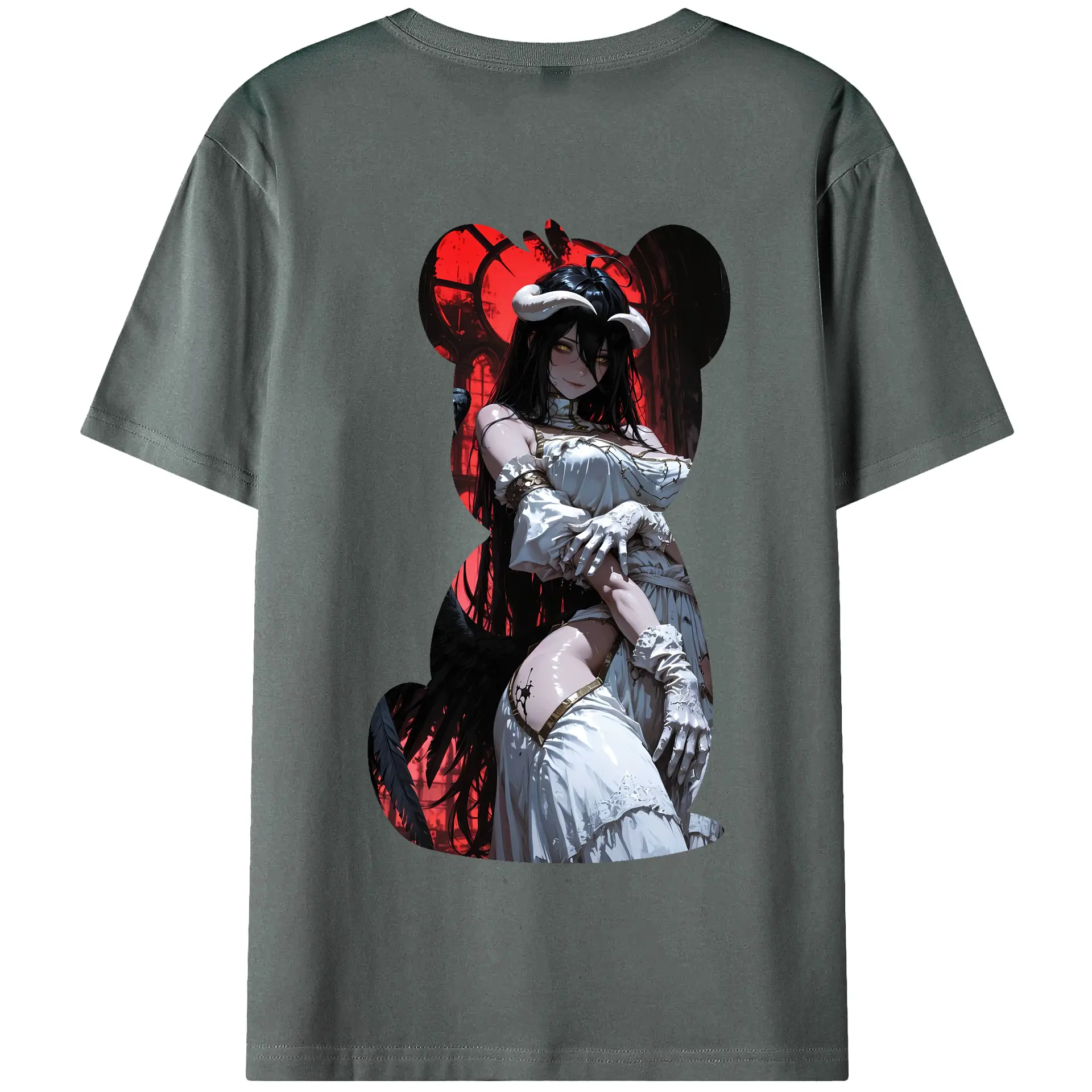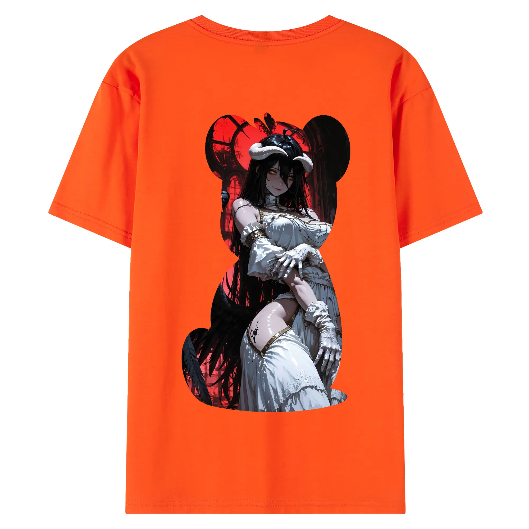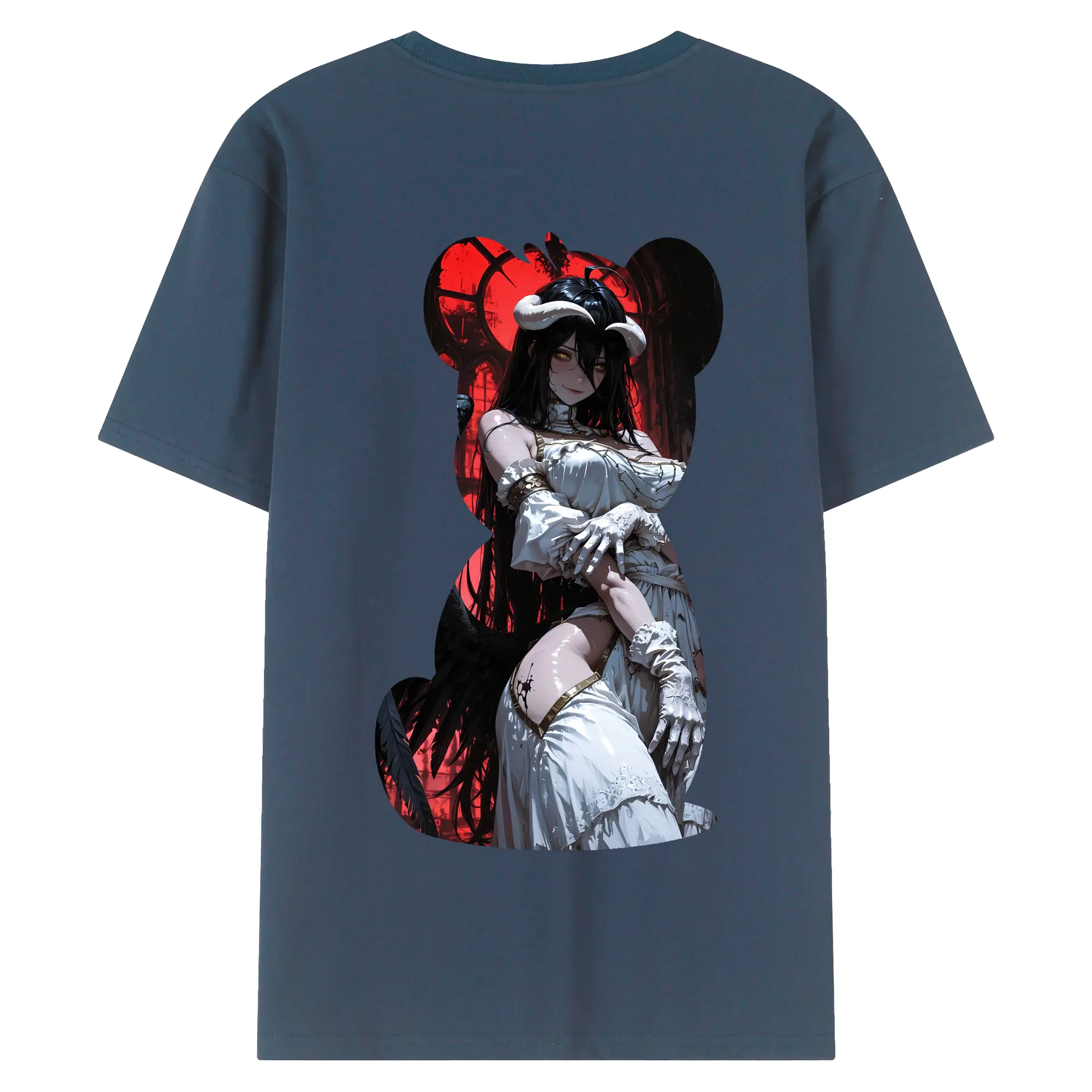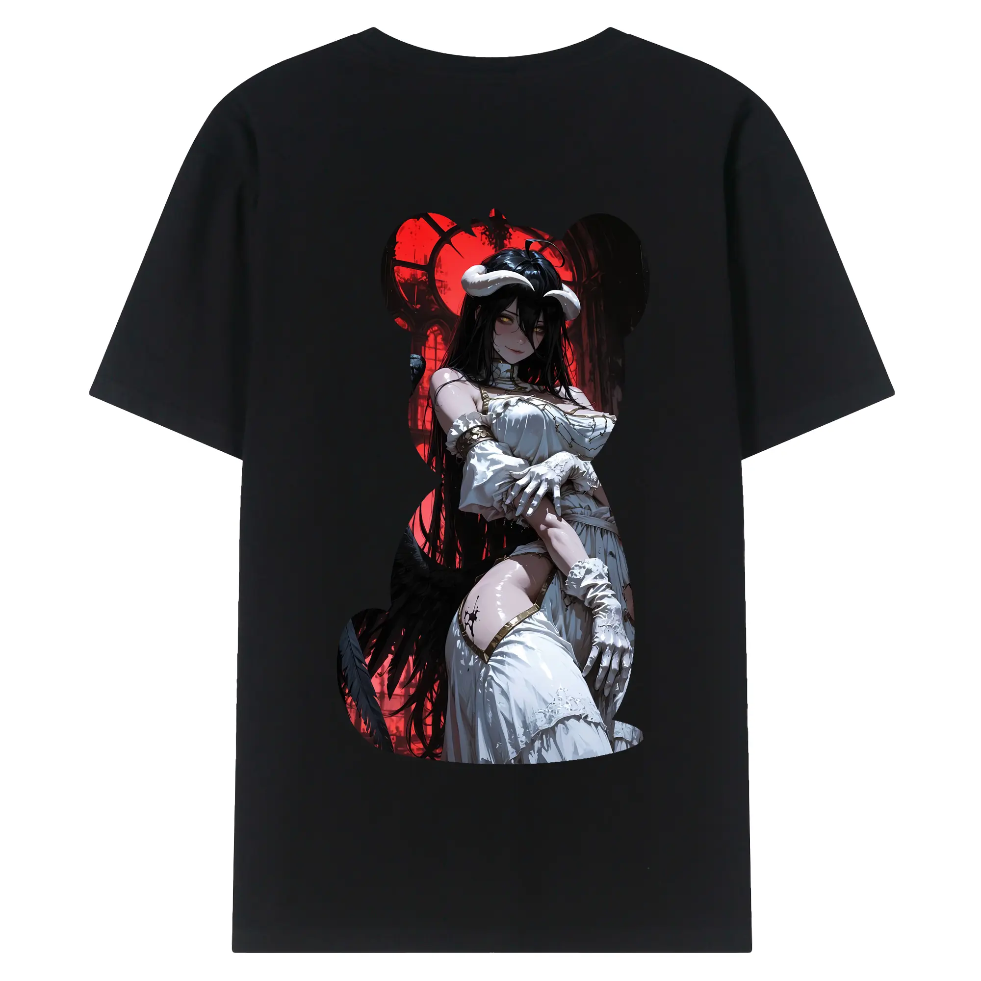 オーバーロード グッズ アルベド - 綿100% ヴィンテージ風 半袖Tシャツ ・ 背面プリント ・ 柔らか肌触り ・ 通気性 快適 ・ スポーツ カジュアル 外出用