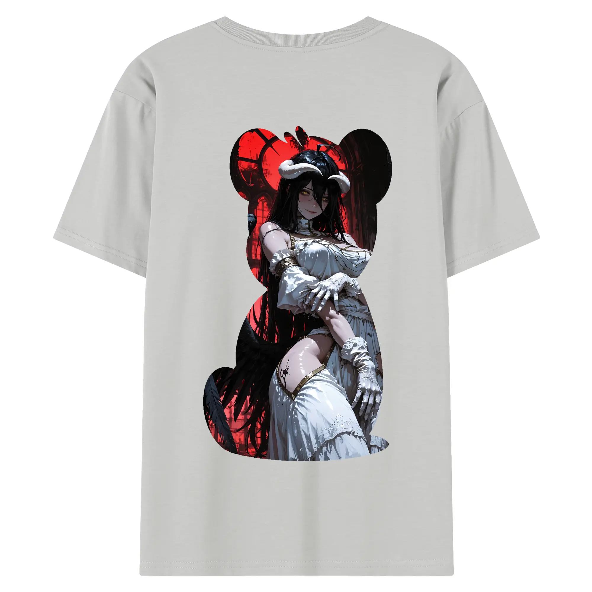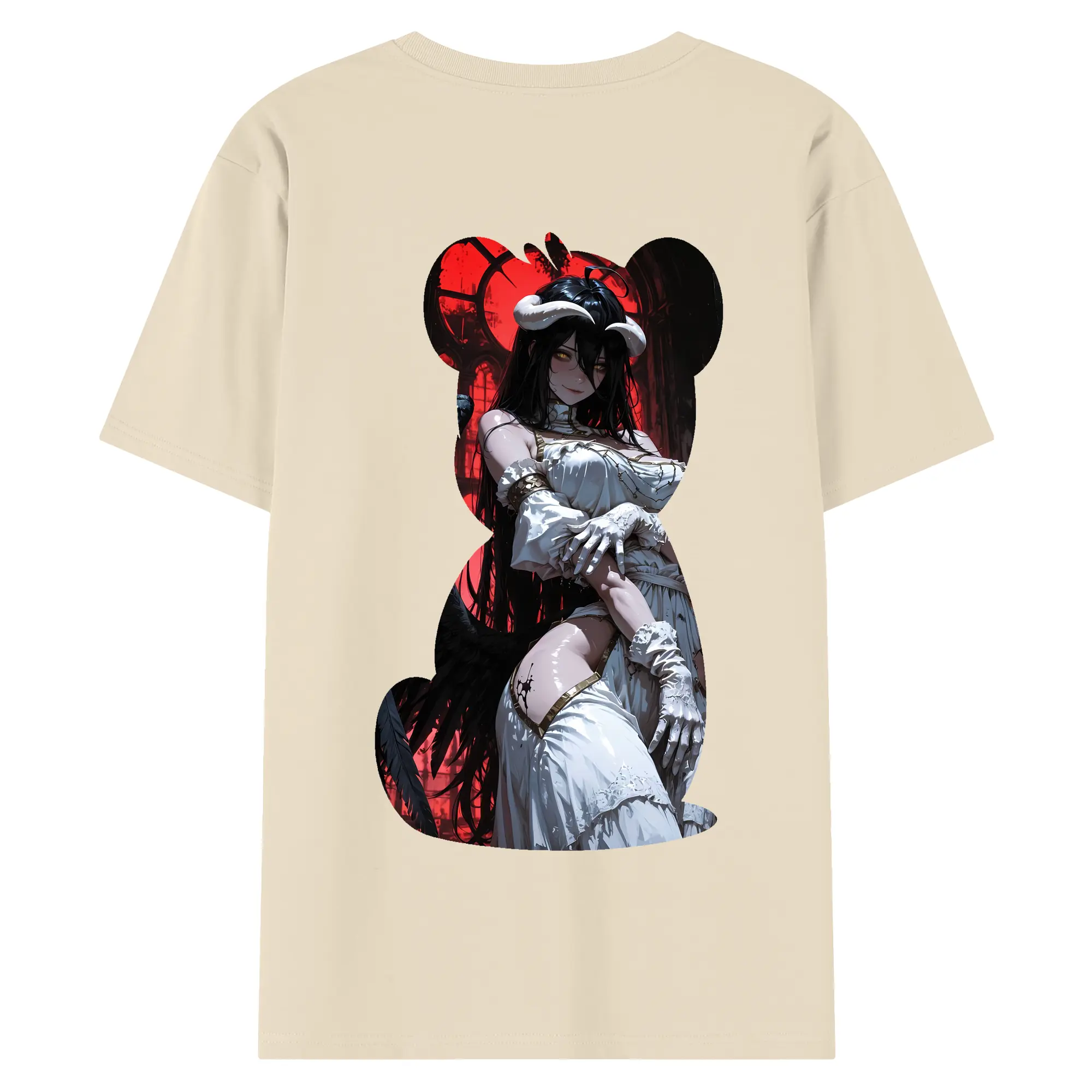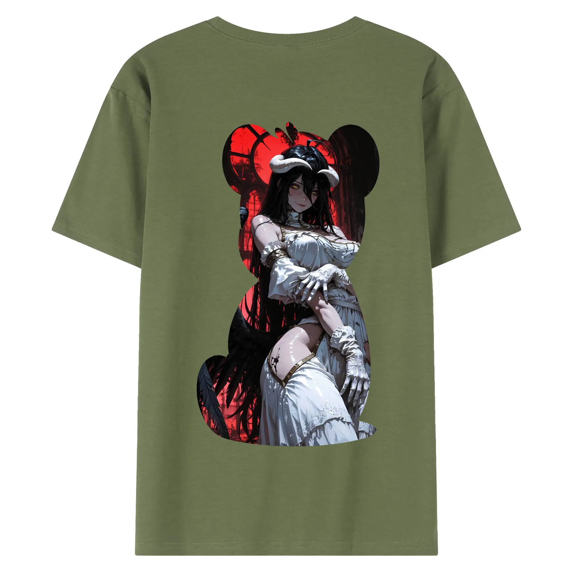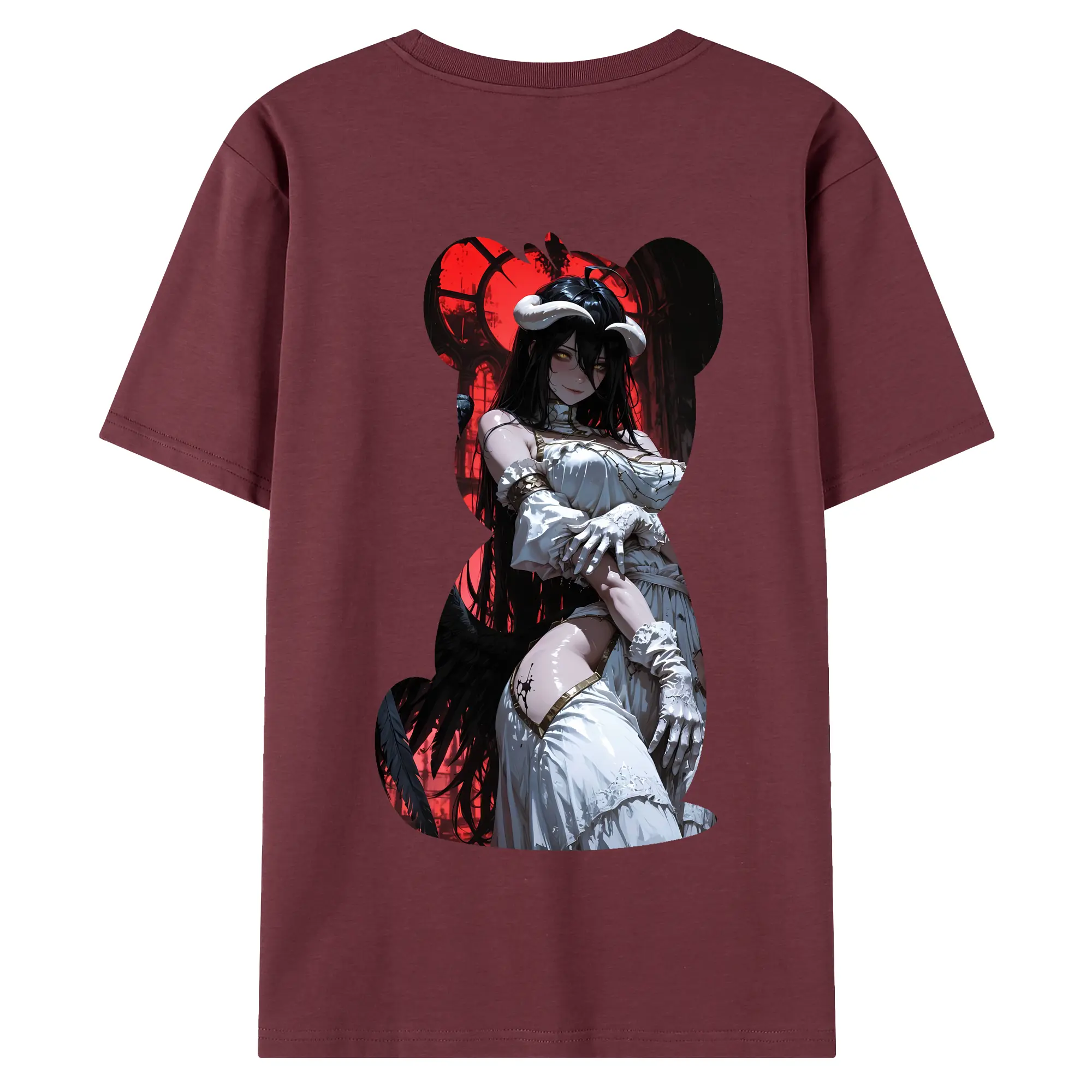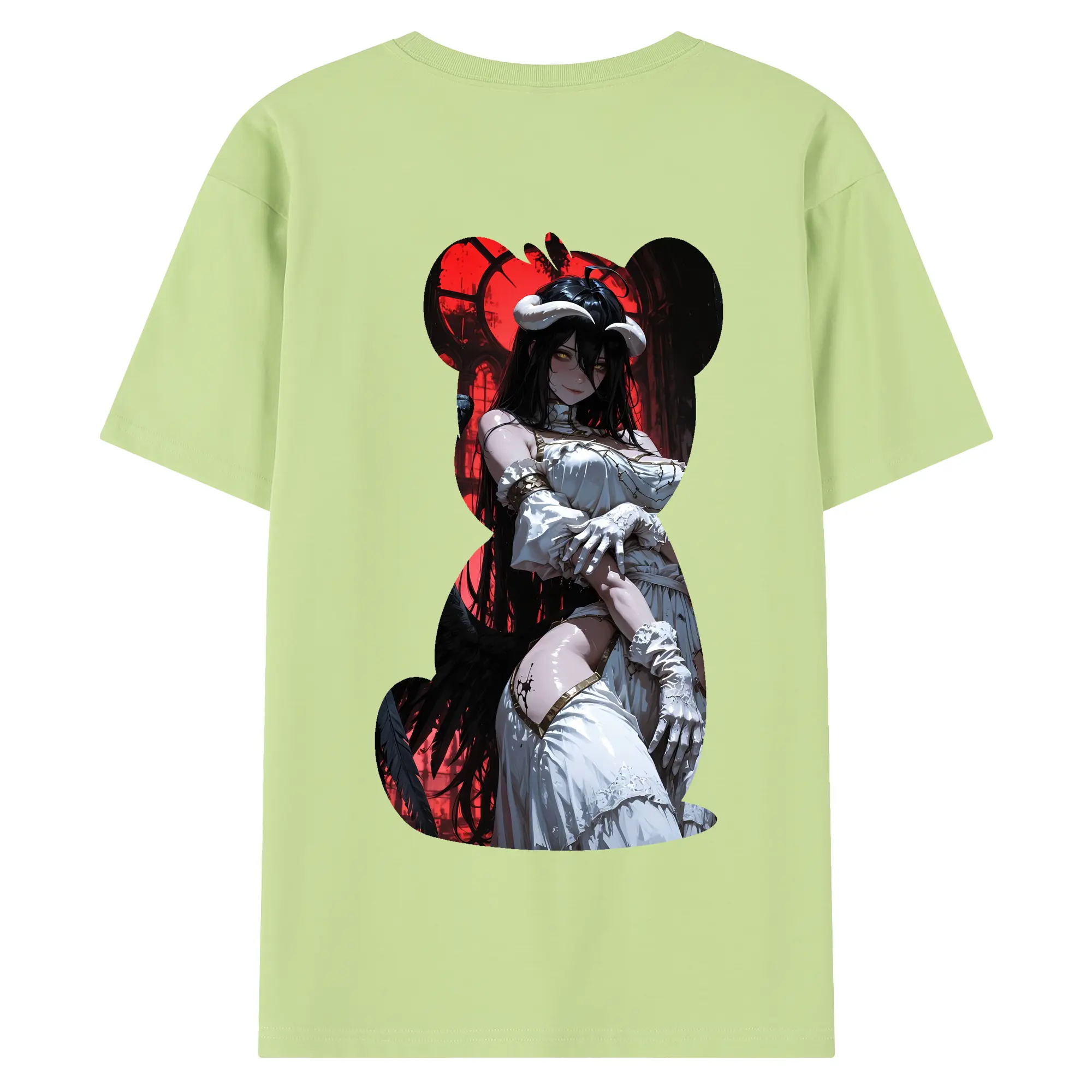 オーバーロード グッズ アルベド - 綿100% ヴィンテージ風 半袖Tシャツ ・ 背面プリント ・ 柔らか肌触り ・ 通気性 快適 ・ スポーツ カジュアル 外出用