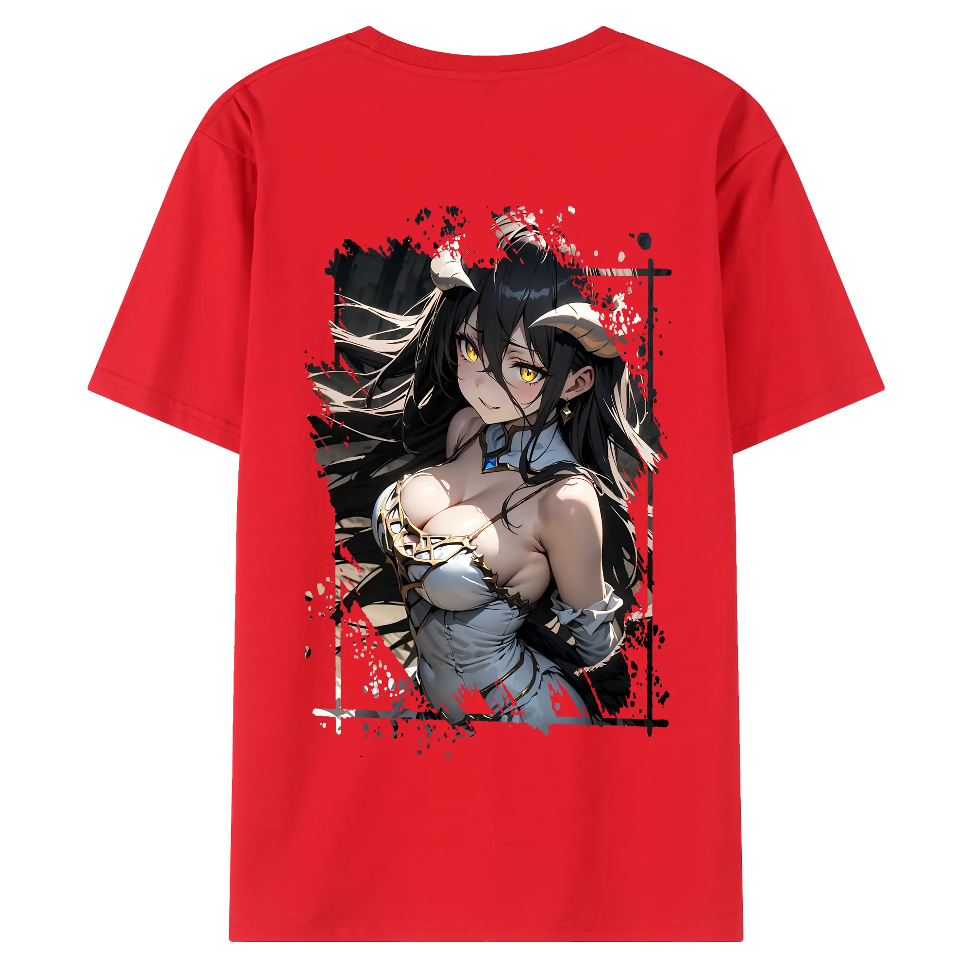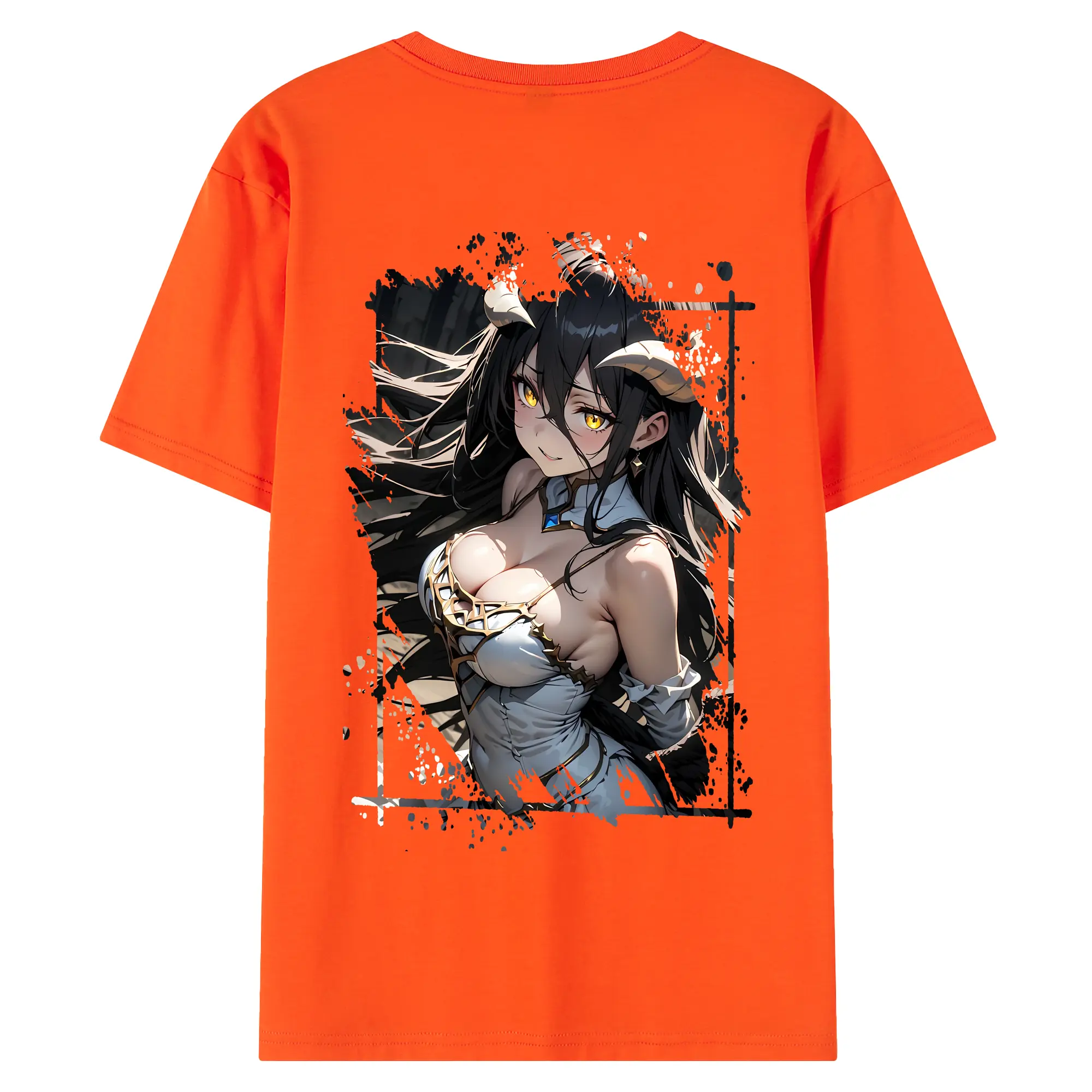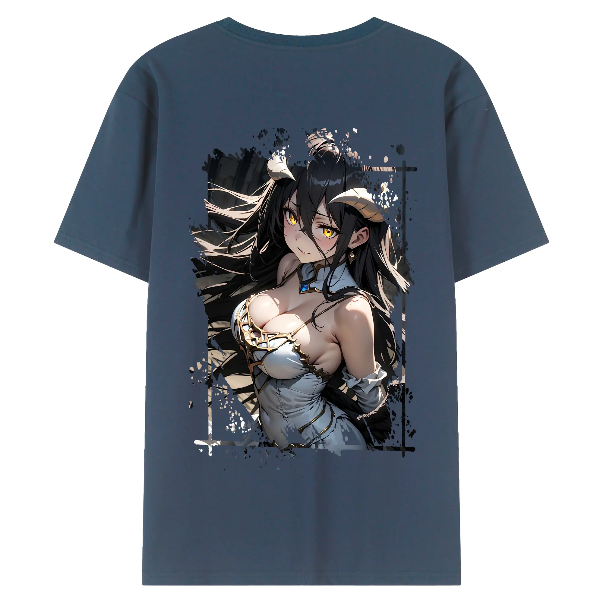 オーバーロード グッズ アルベド - 綿100% ヴィンテージ風 半袖Tシャツ ・ 背面プリント ・ 柔らか肌触り ・ 通気性 快適 ・ スポーツ カジュアル 外出用