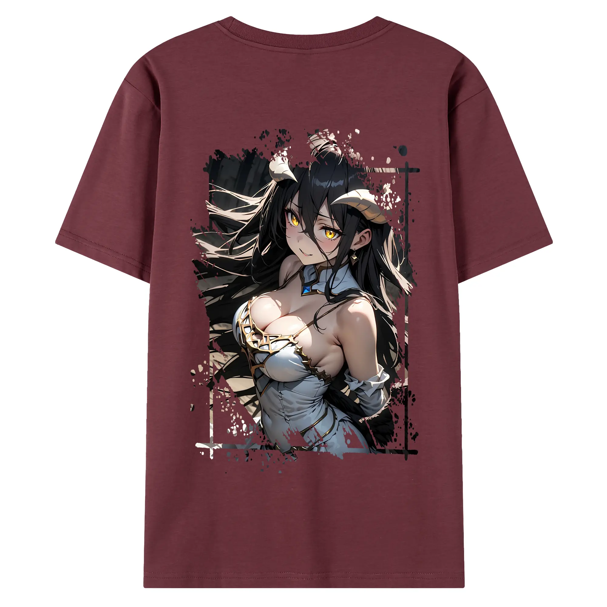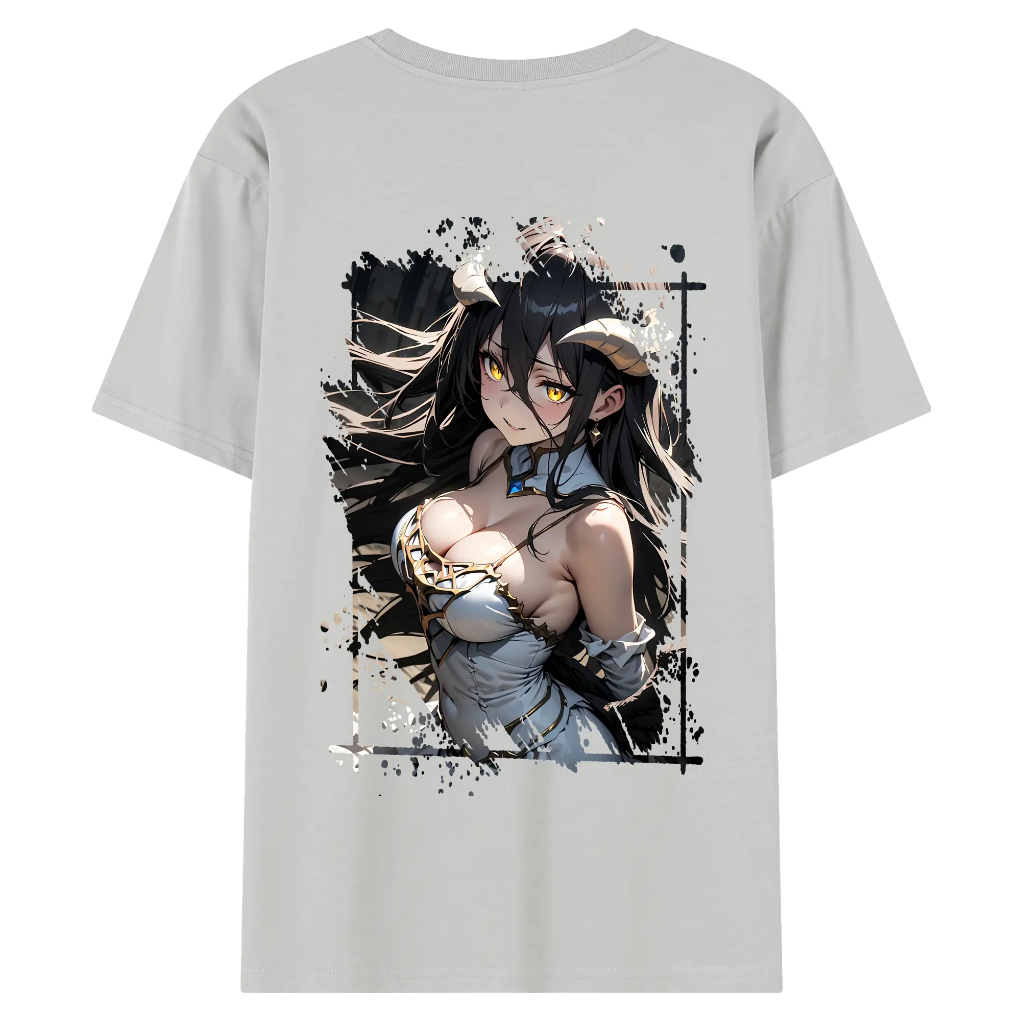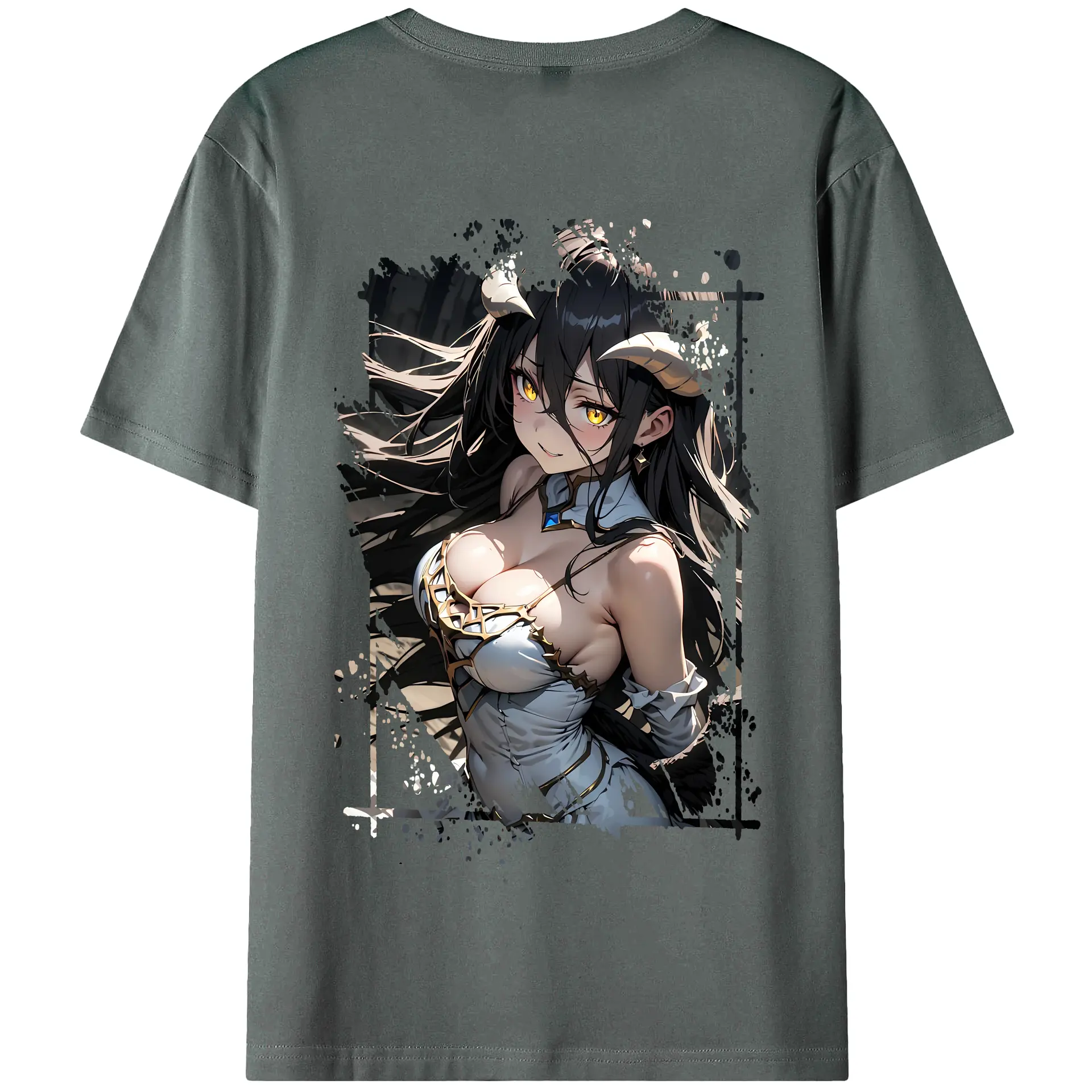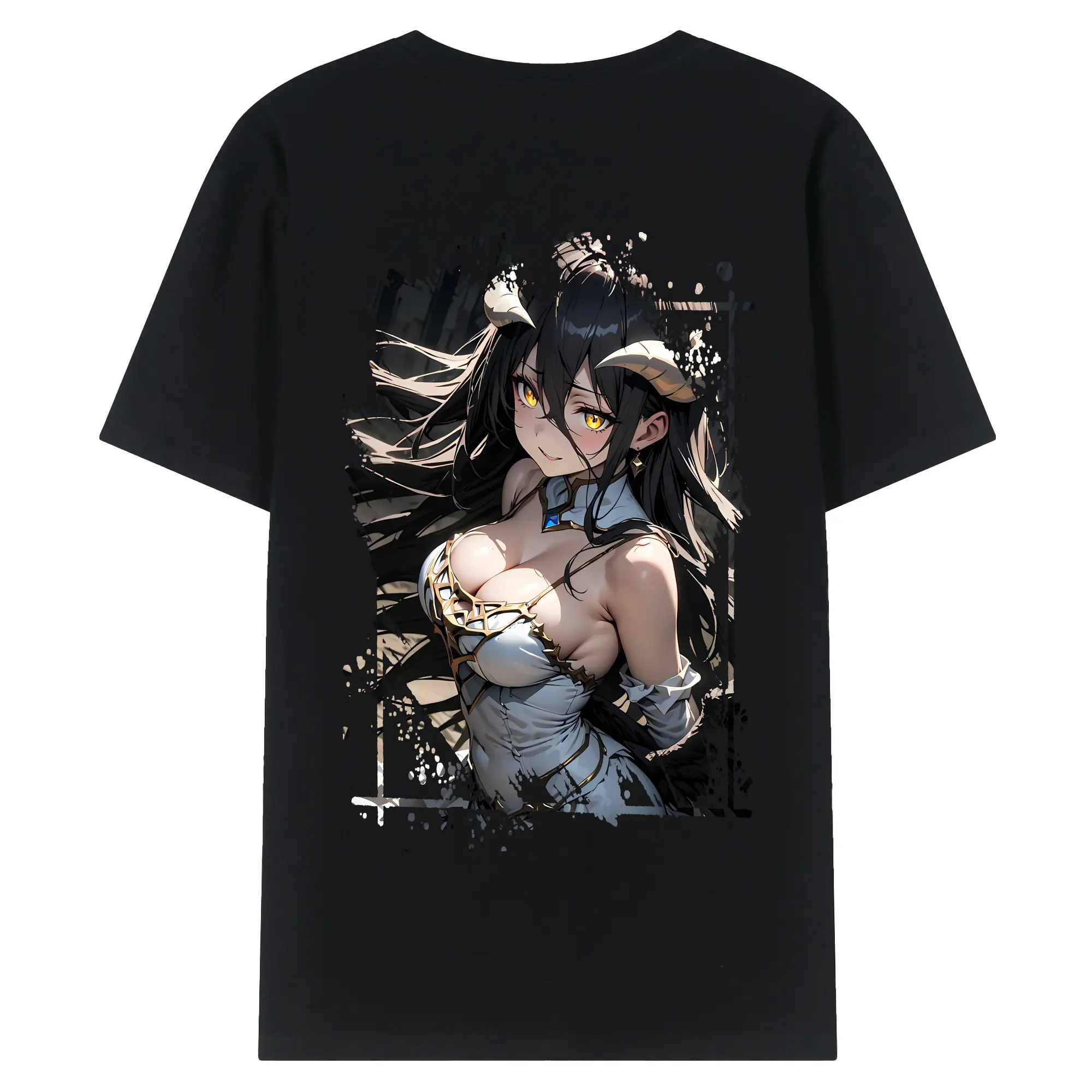 オーバーロード グッズ アルベド - 綿100% ヴィンテージ風 半袖Tシャツ ・ 背面プリント ・ 柔らか肌触り ・ 通気性 快適 ・ スポーツ カジュアル 外出用