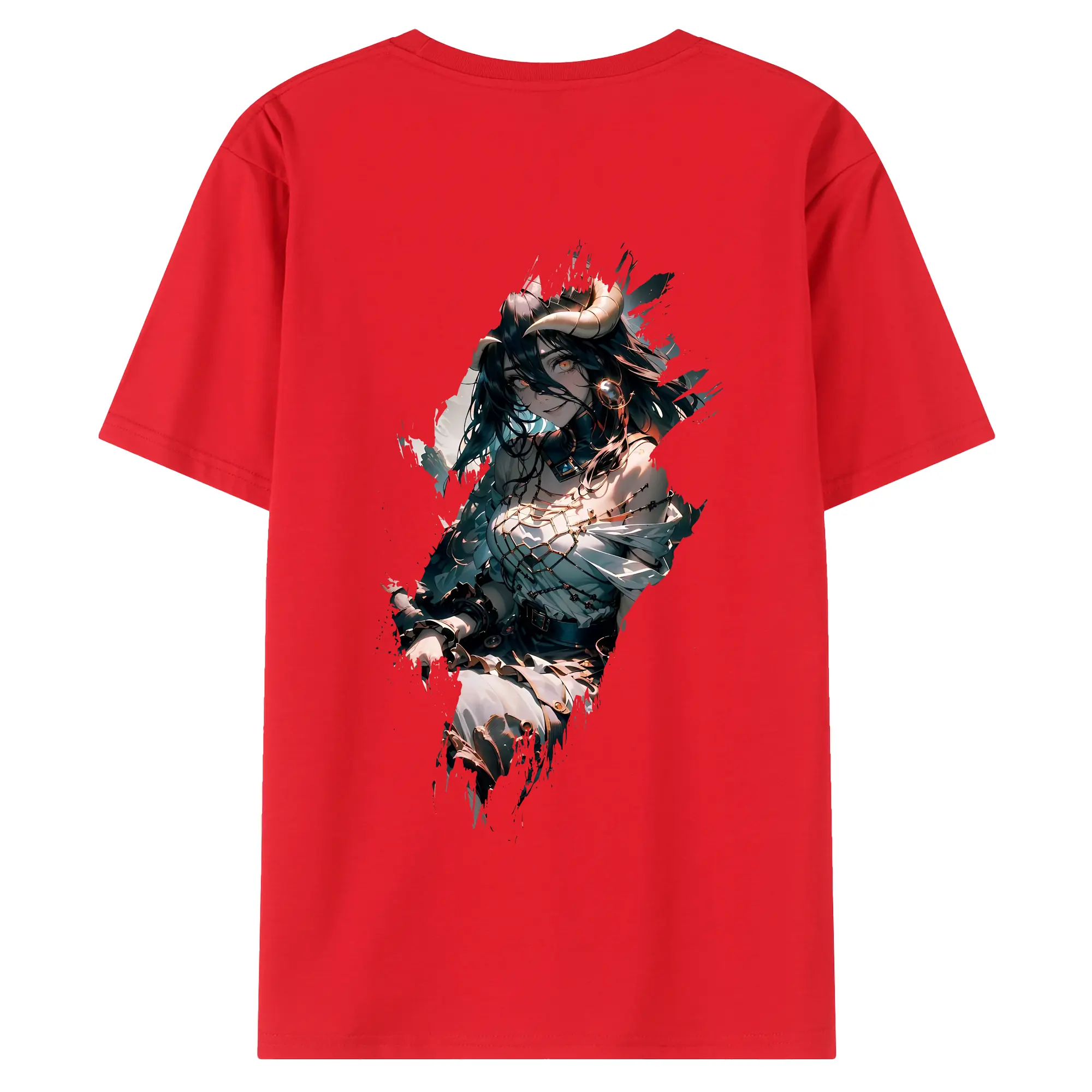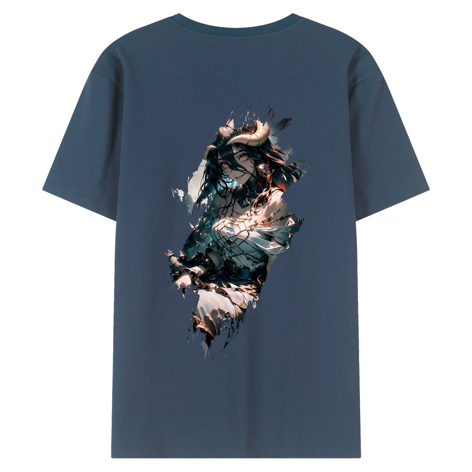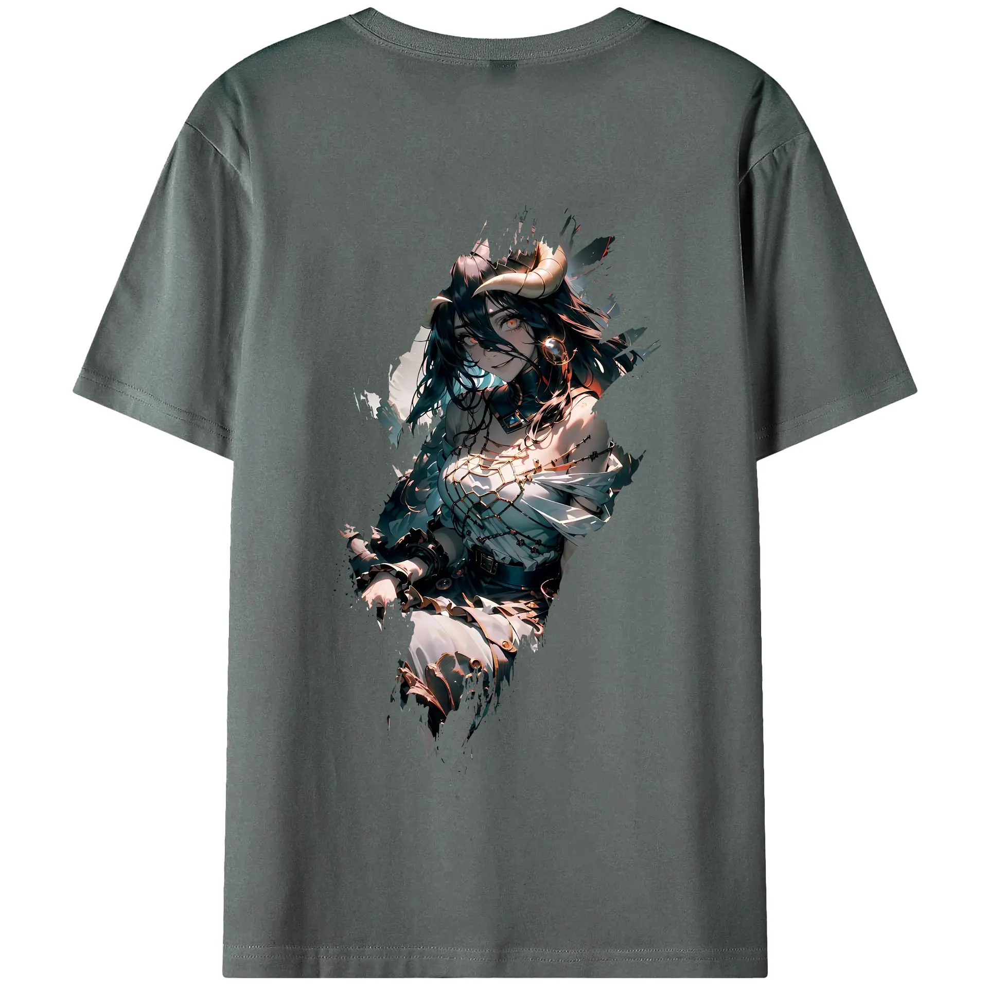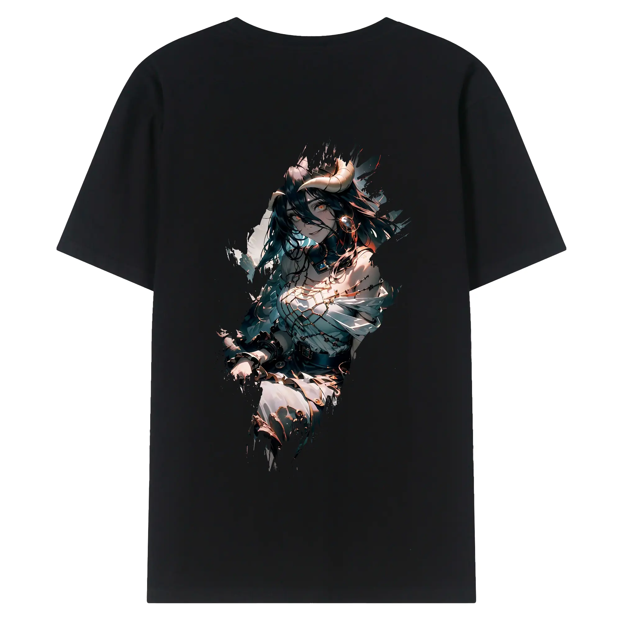 オーバーロード グッズ アルベド - 綿100% ヴィンテージ風 半袖Tシャツ ・ 背面プリント ・ 柔らか肌触り ・ 通気性 快適 ・ スポーツ カジュアル 外出用