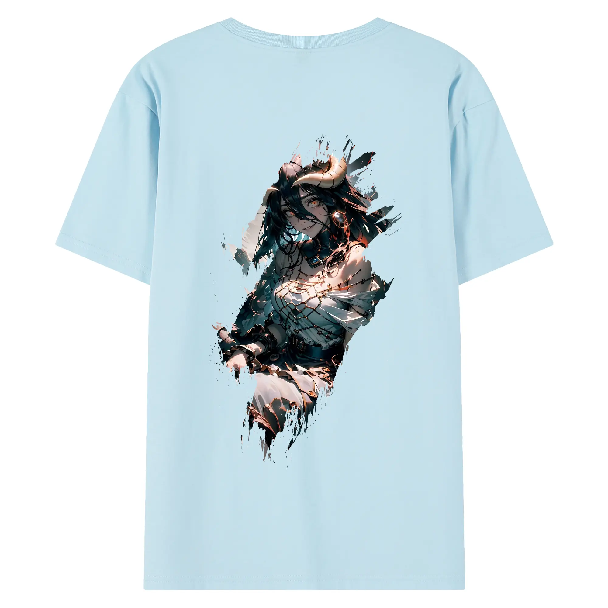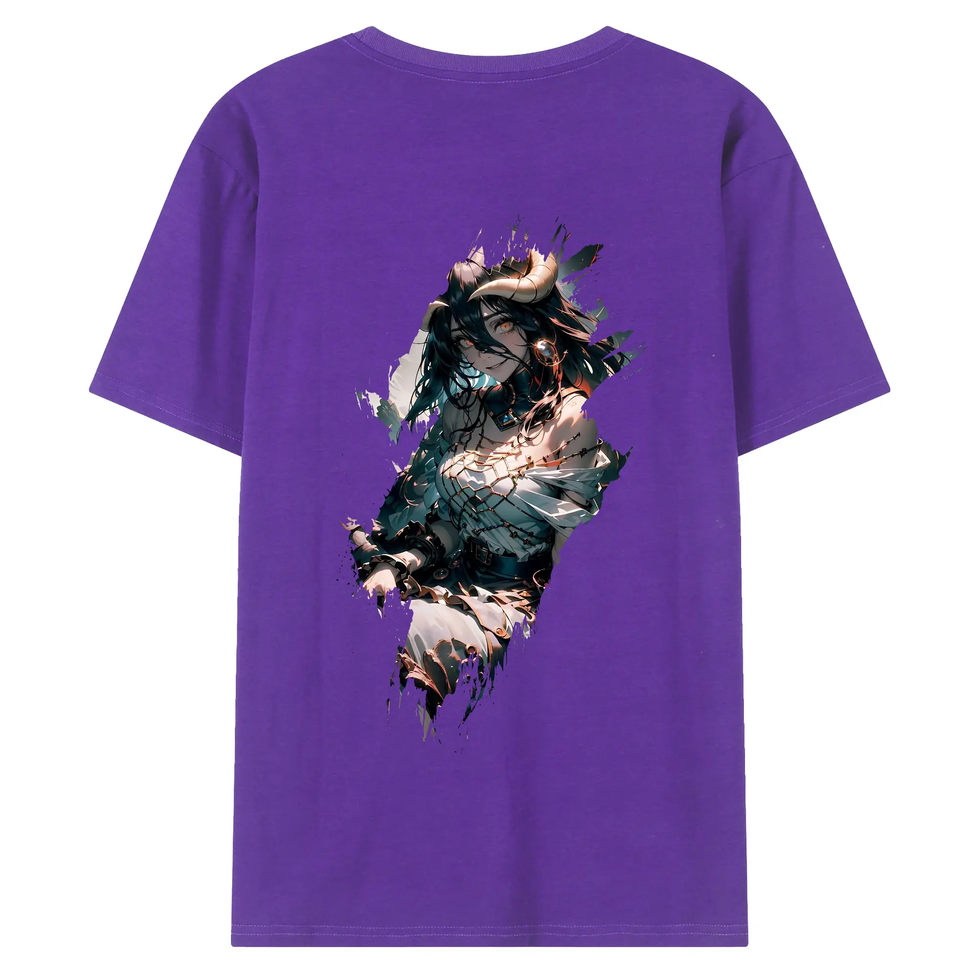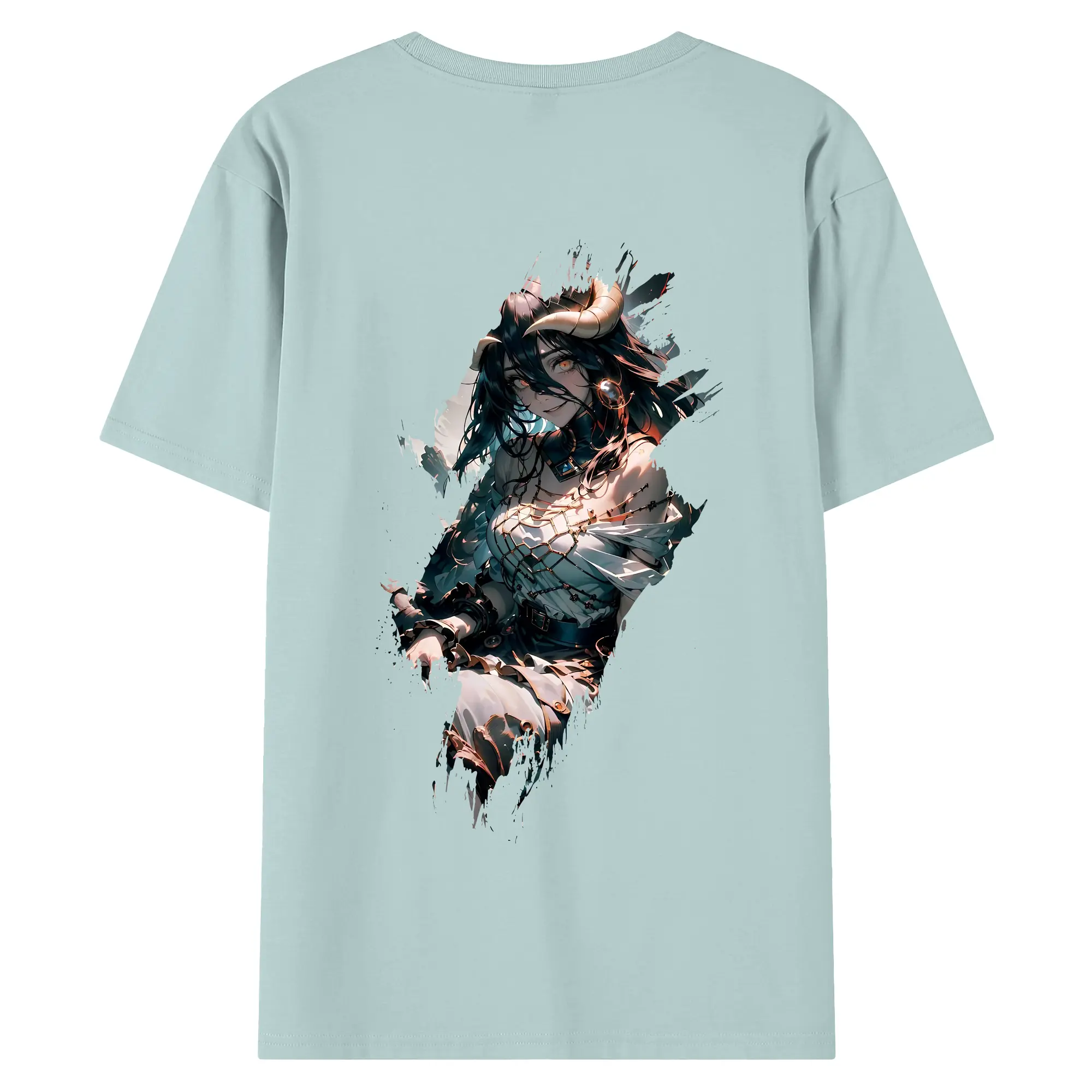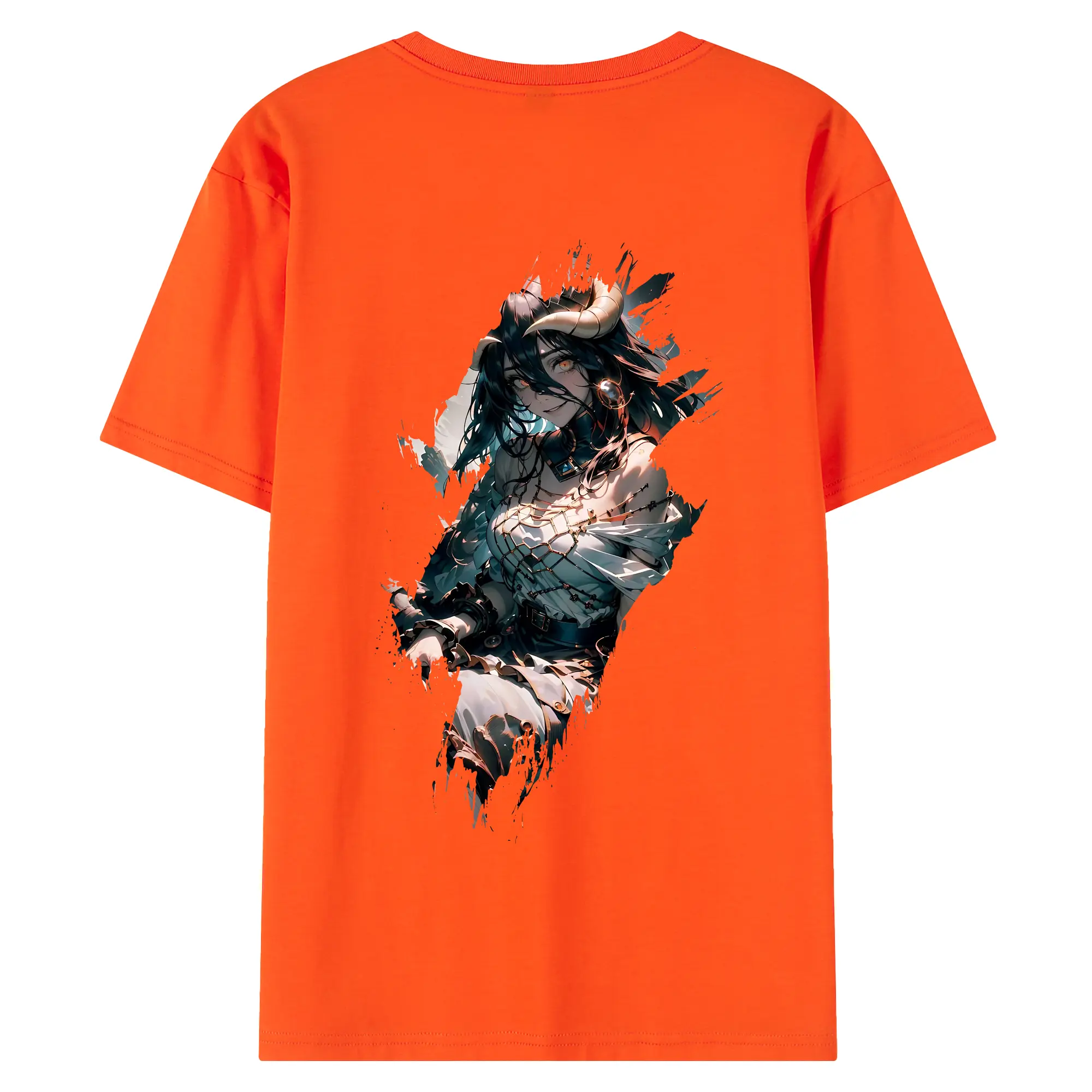 オーバーロード グッズ アルベド - 綿100% ヴィンテージ風 半袖Tシャツ ・ 背面プリント ・ 柔らか肌触り ・ 通気性 快適 ・ スポーツ カジュアル 外出用