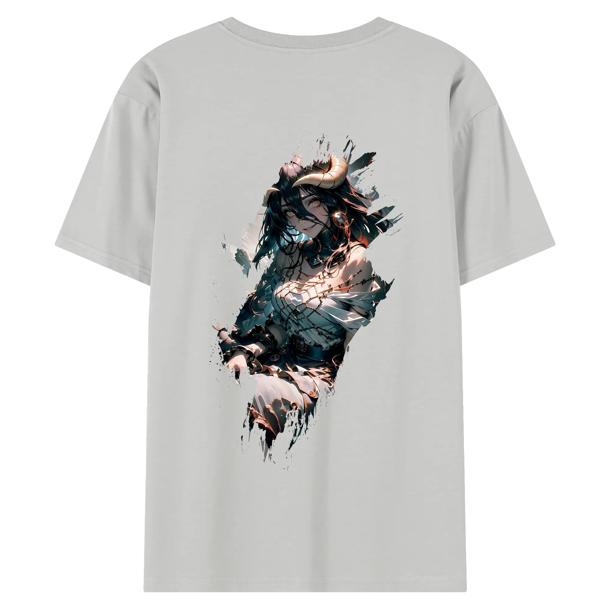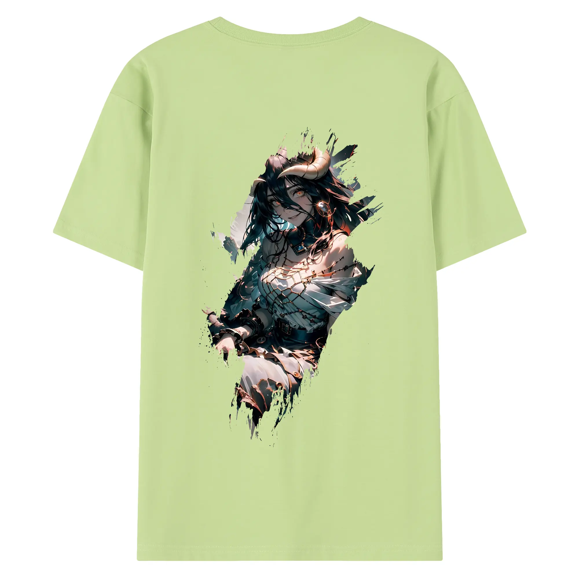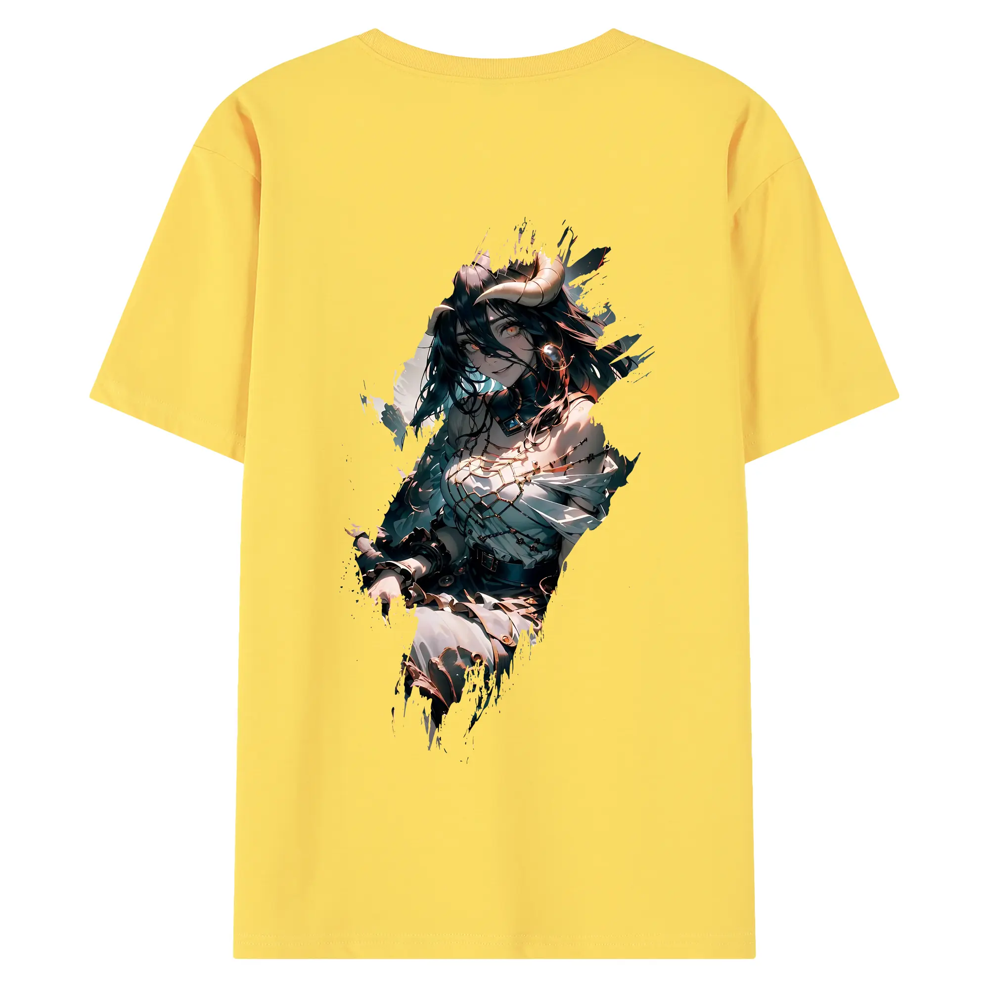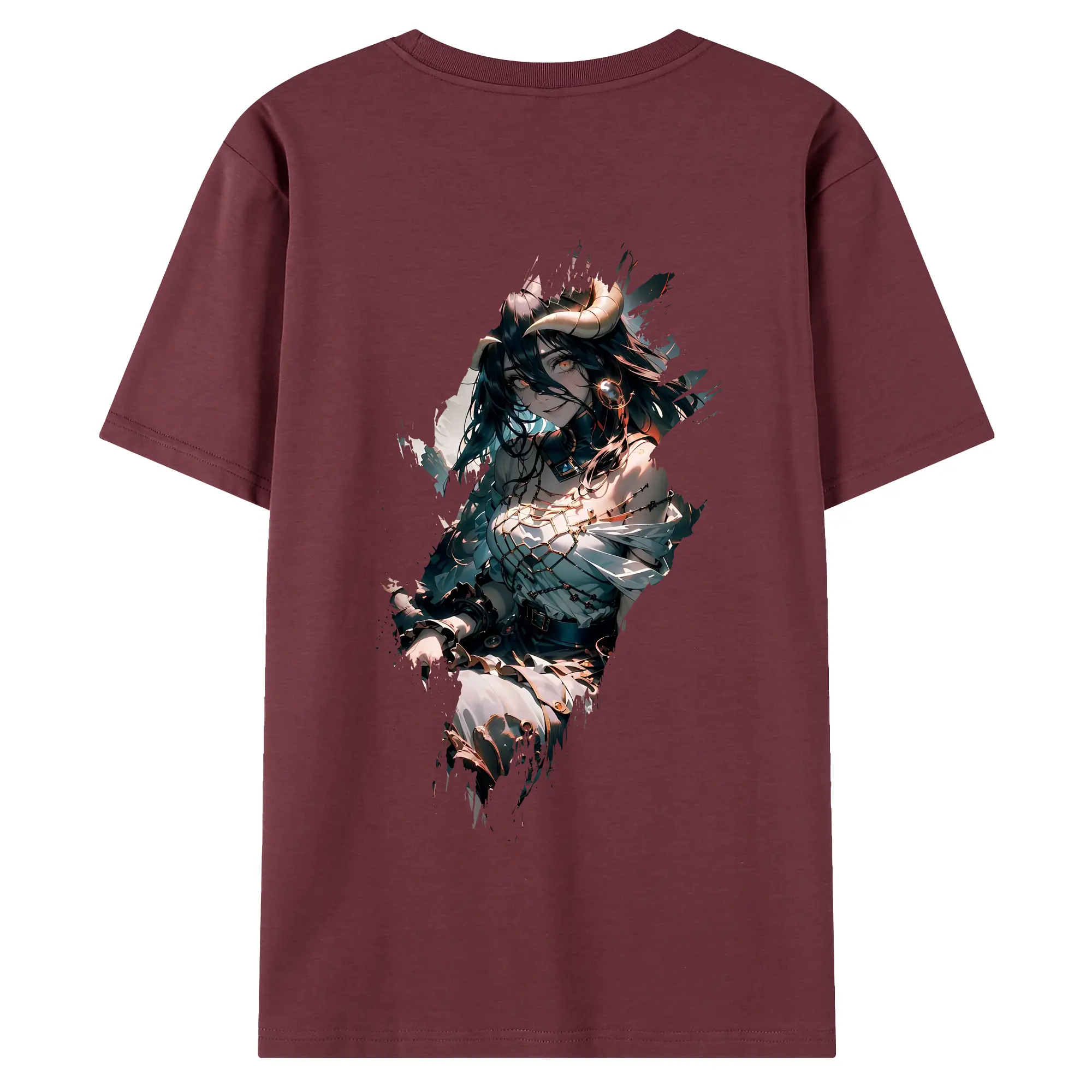 オーバーロード グッズ アルベド - 綿100% ヴィンテージ風 半袖Tシャツ ・ 背面プリント ・ 柔らか肌触り ・ 通気性 快適 ・ スポーツ カジュアル 外出用