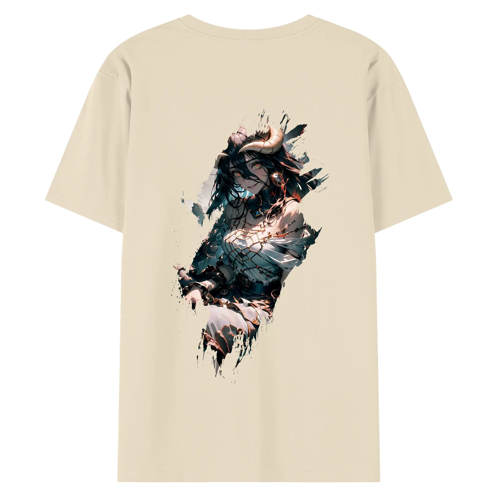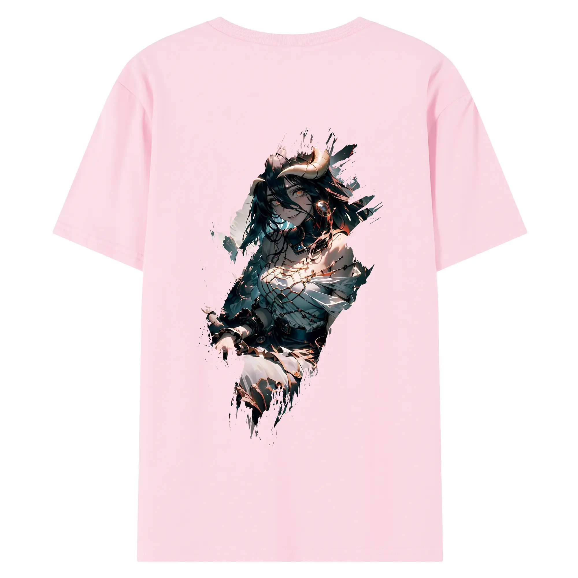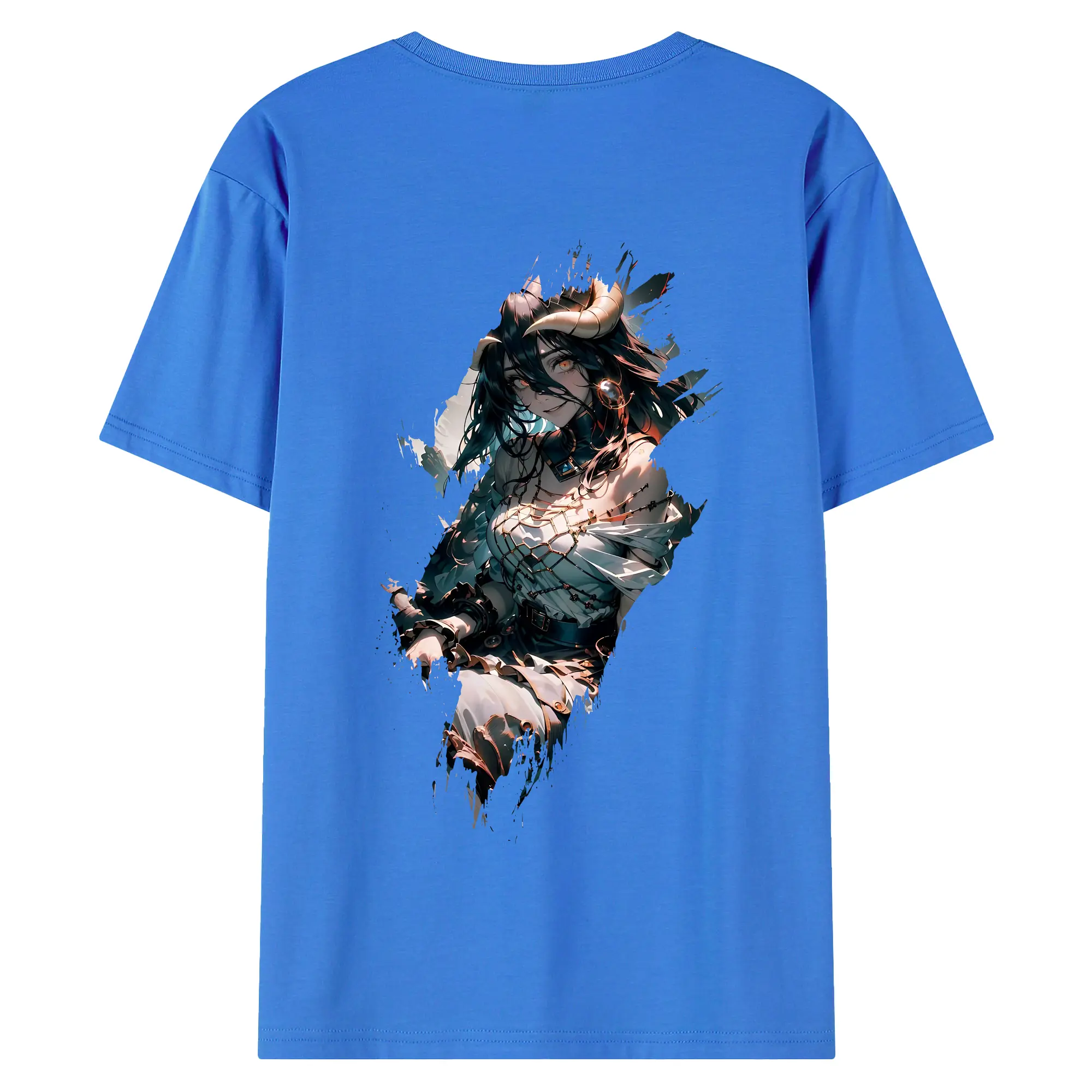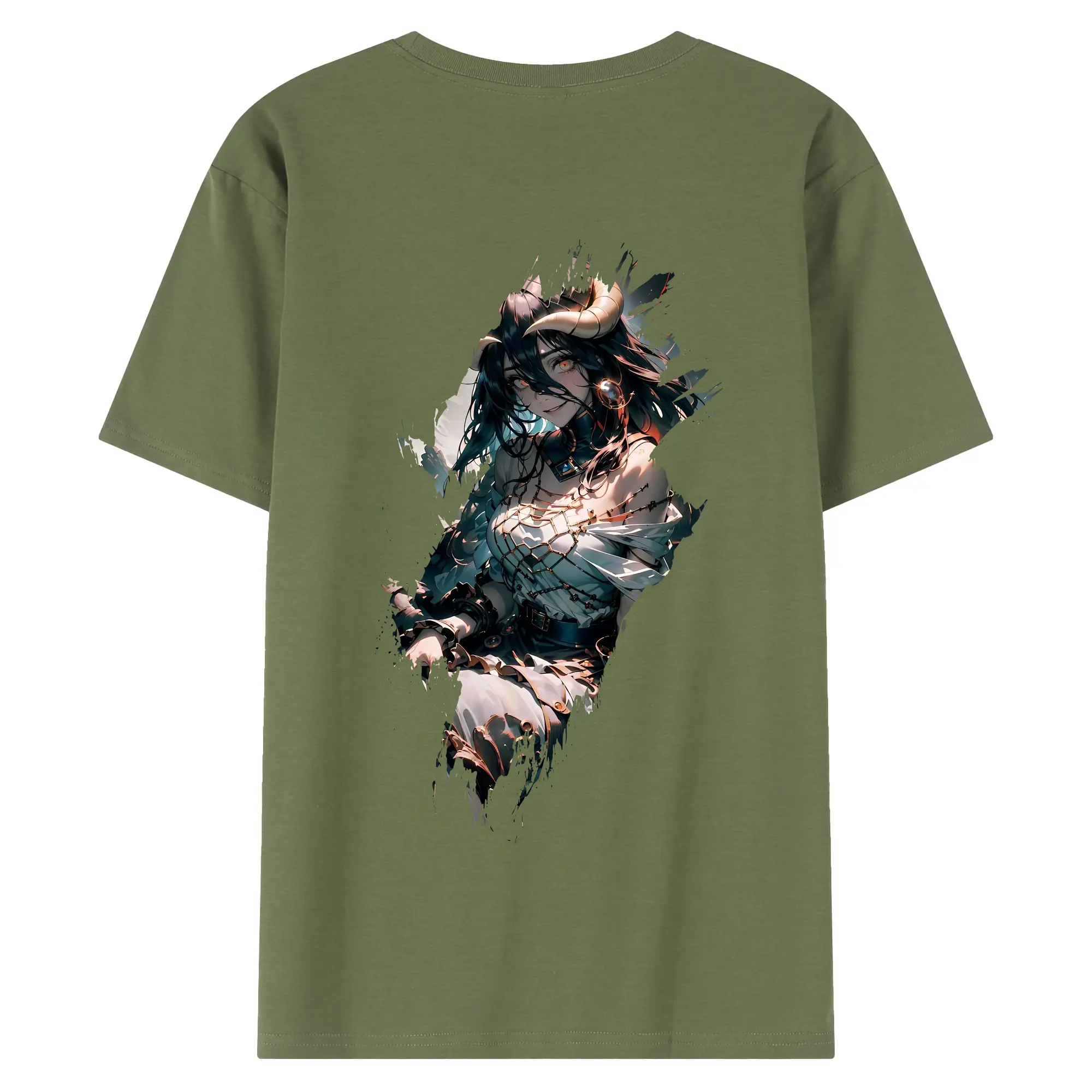 オーバーロード グッズ アルベド - 綿100% ヴィンテージ風 半袖Tシャツ ・ 背面プリント ・ 柔らか肌触り ・ 通気性 快適 ・ スポーツ カジュアル 外出用