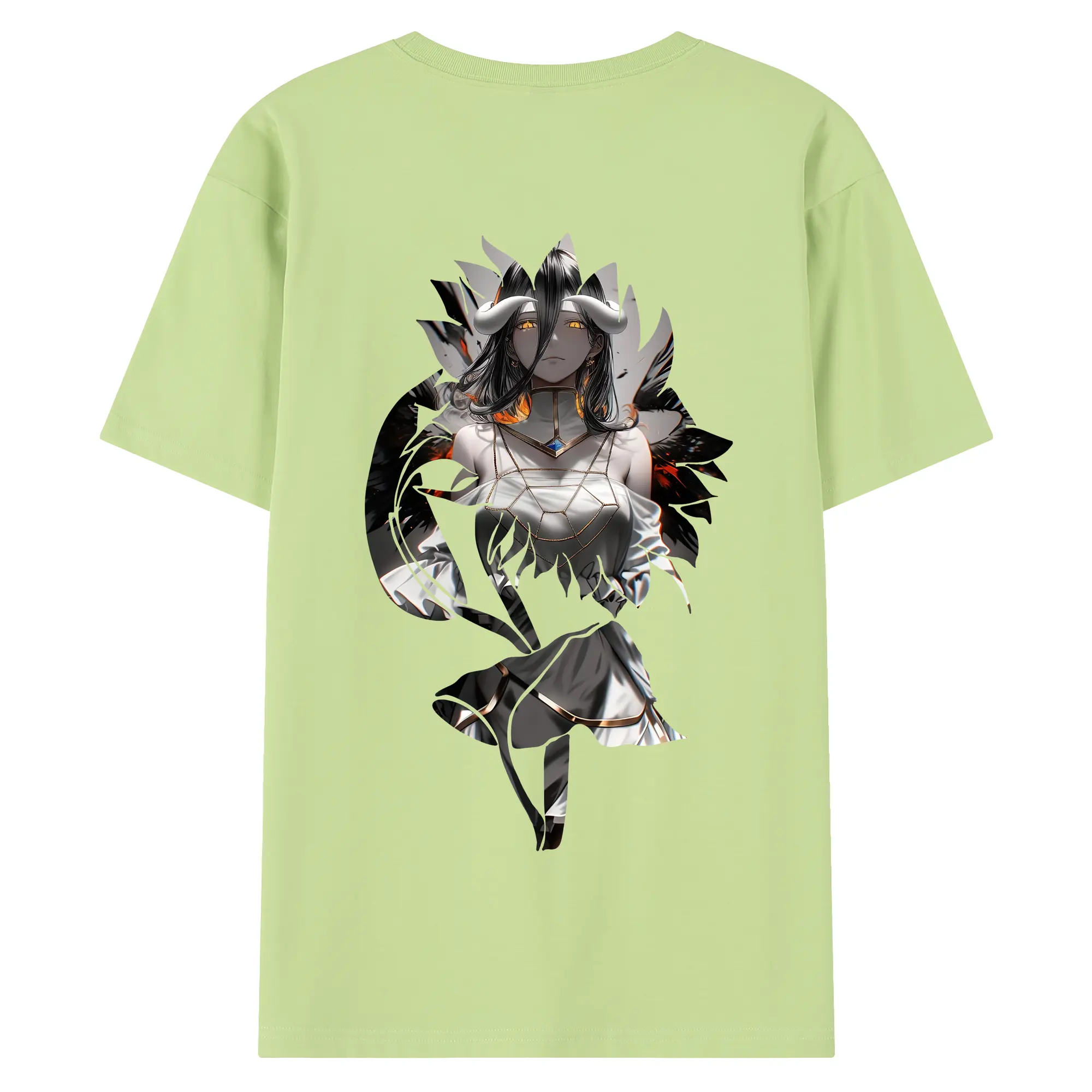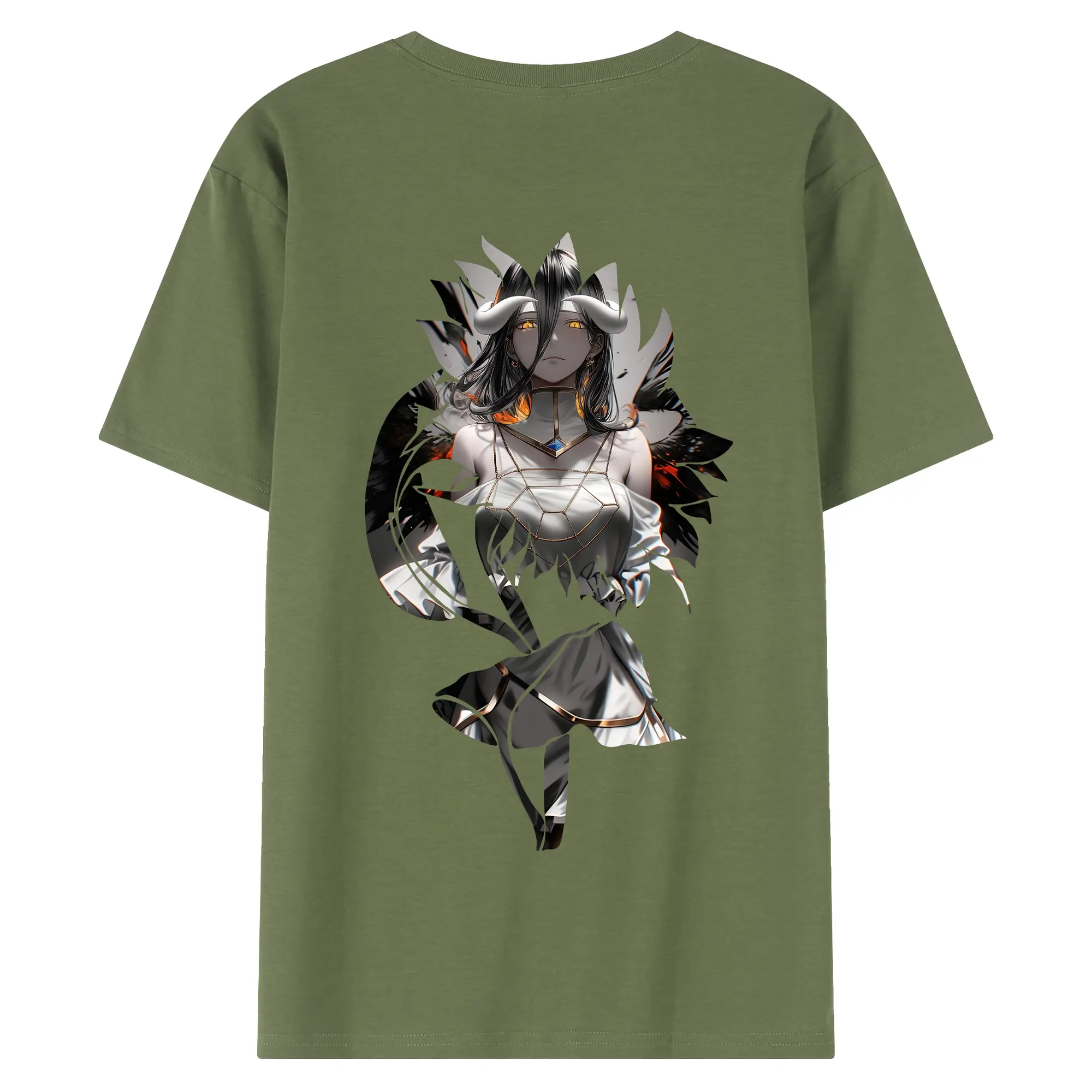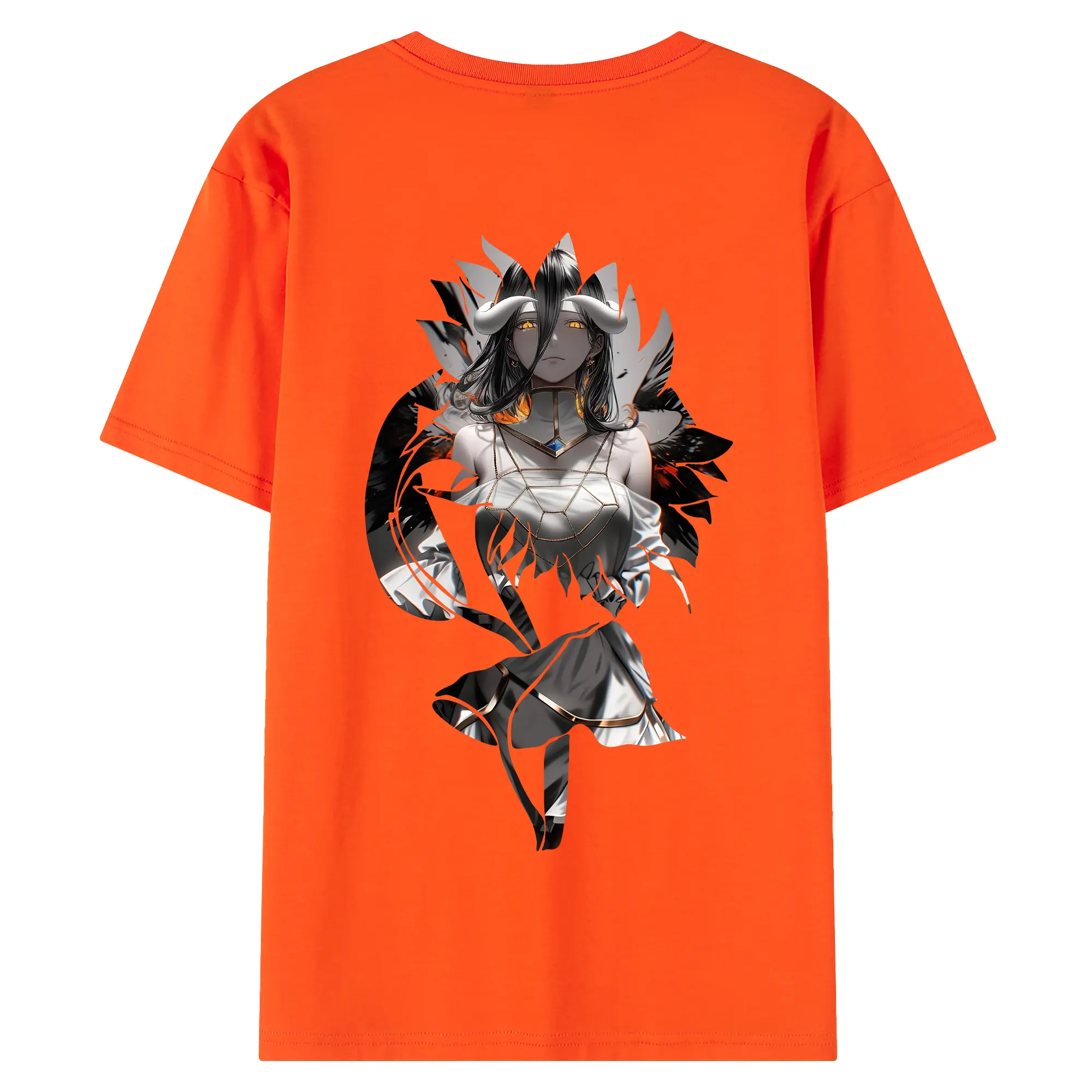 オーバーロード グッズ アルベド - 綿100% ヴィンテージ風 半袖Tシャツ ・ 背面プリント ・ 柔らか肌触り ・ 通気性 快適 ・ スポーツ カジュアル 外出用