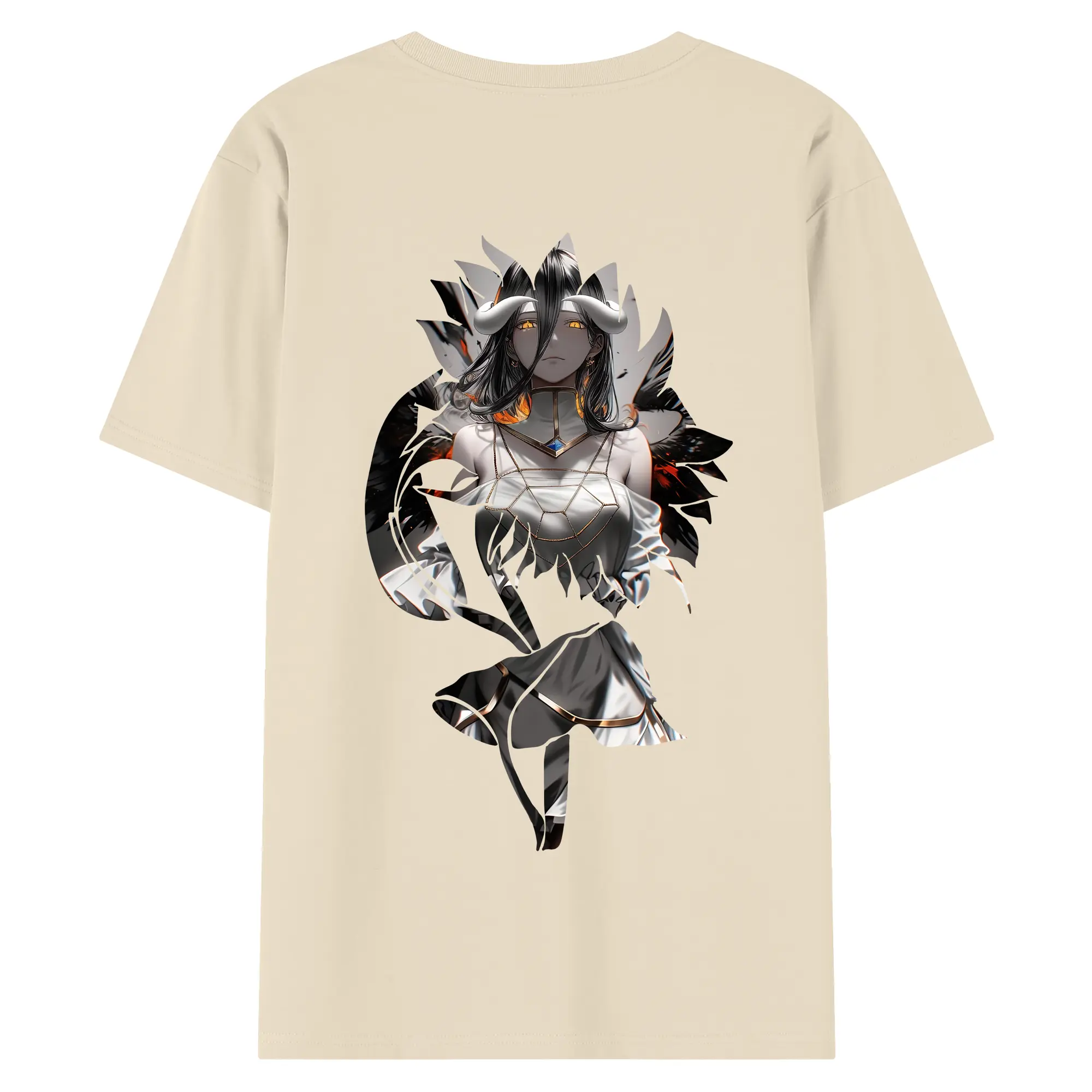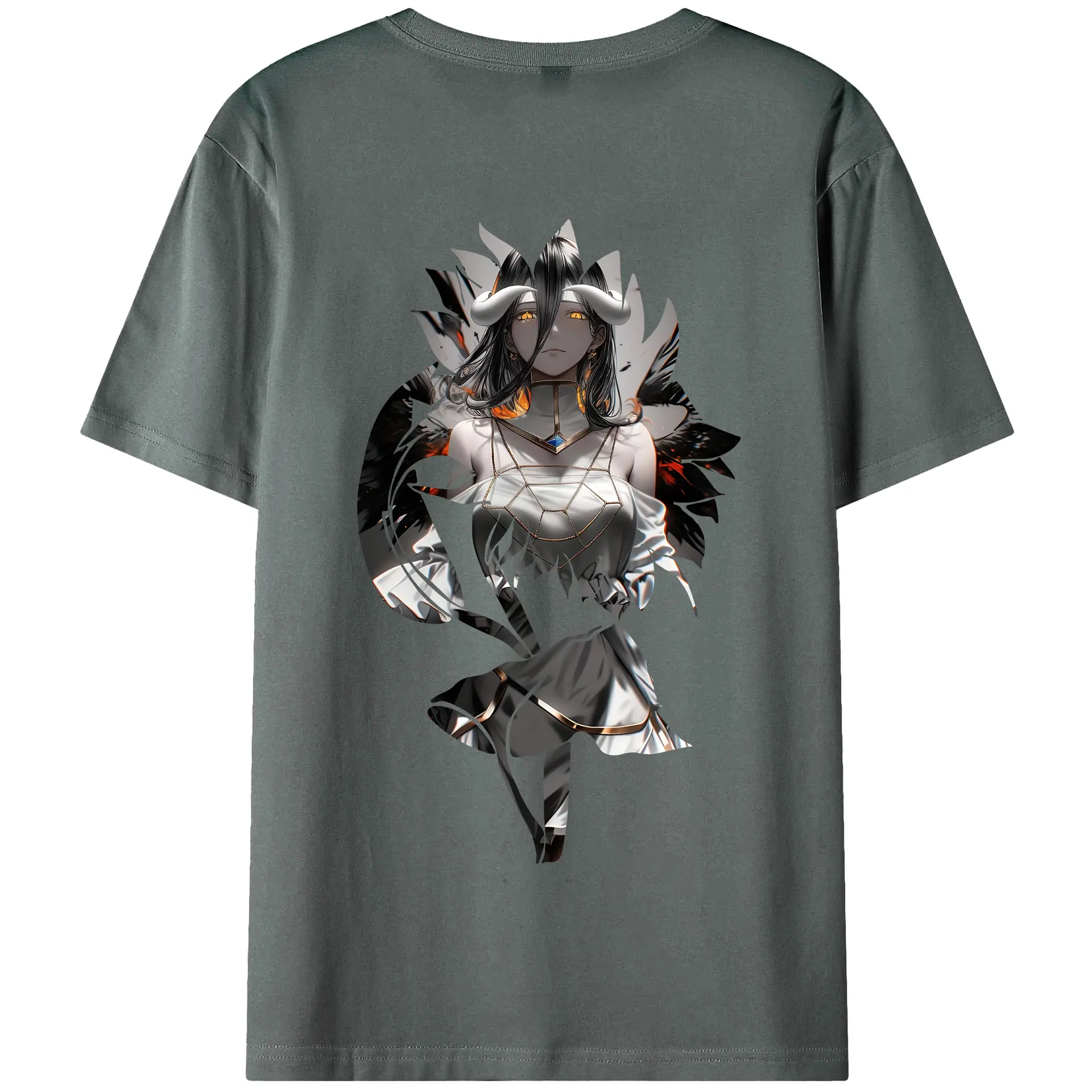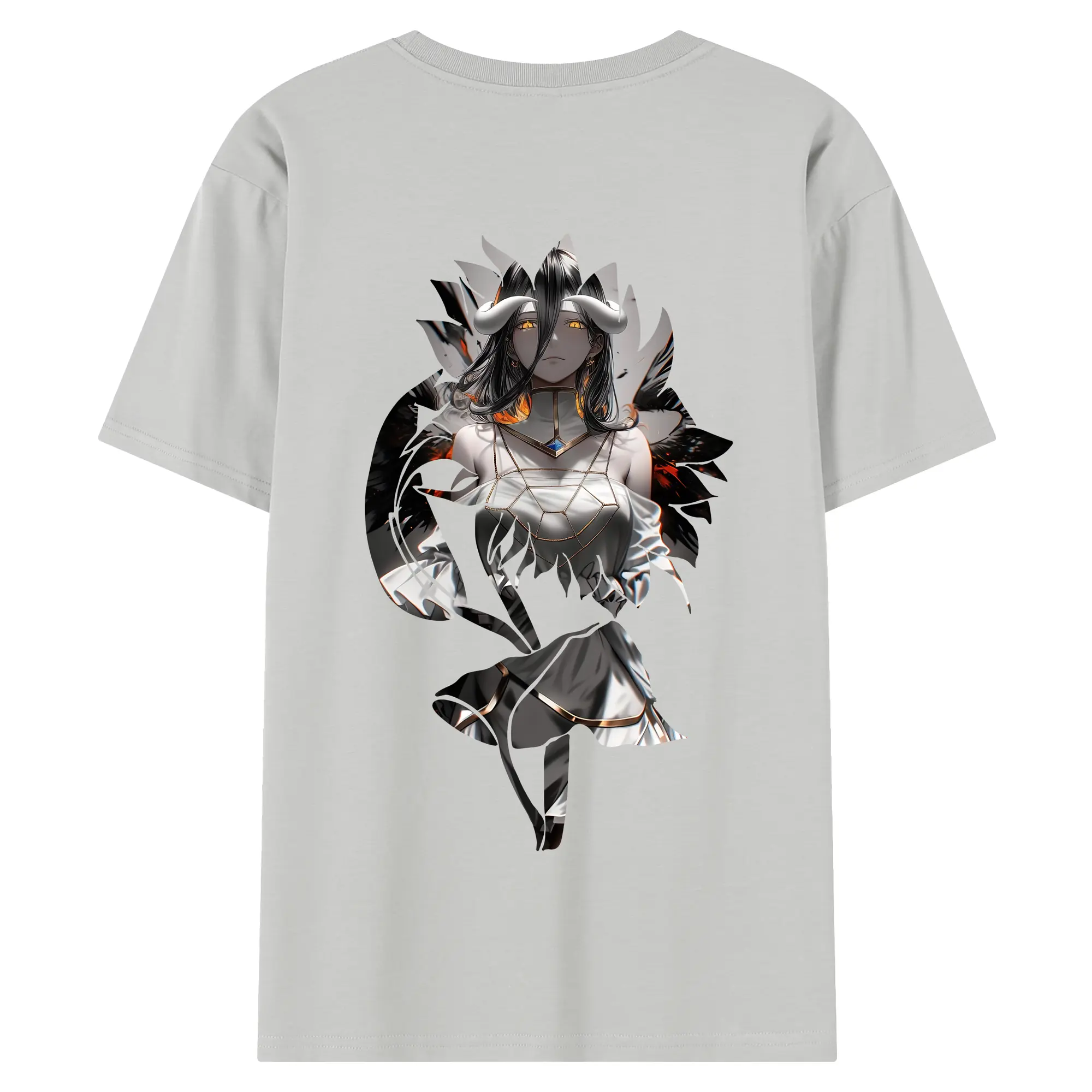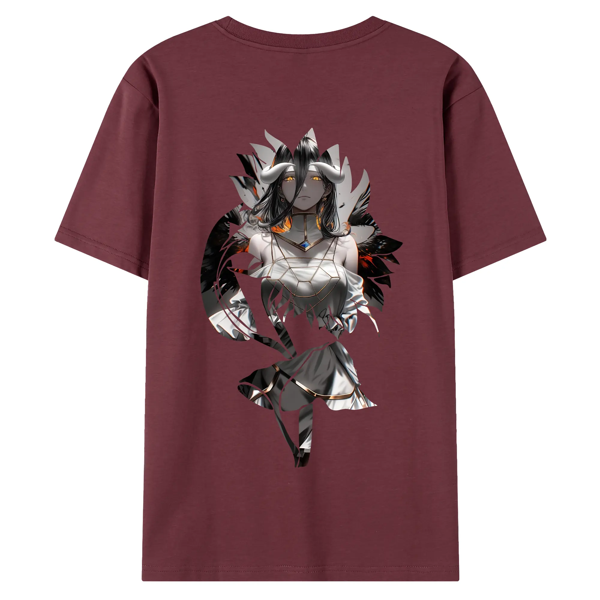 オーバーロード グッズ アルベド - 綿100% ヴィンテージ風 半袖Tシャツ ・ 背面プリント ・ 柔らか肌触り ・ 通気性 快適 ・ スポーツ カジュアル 外出用