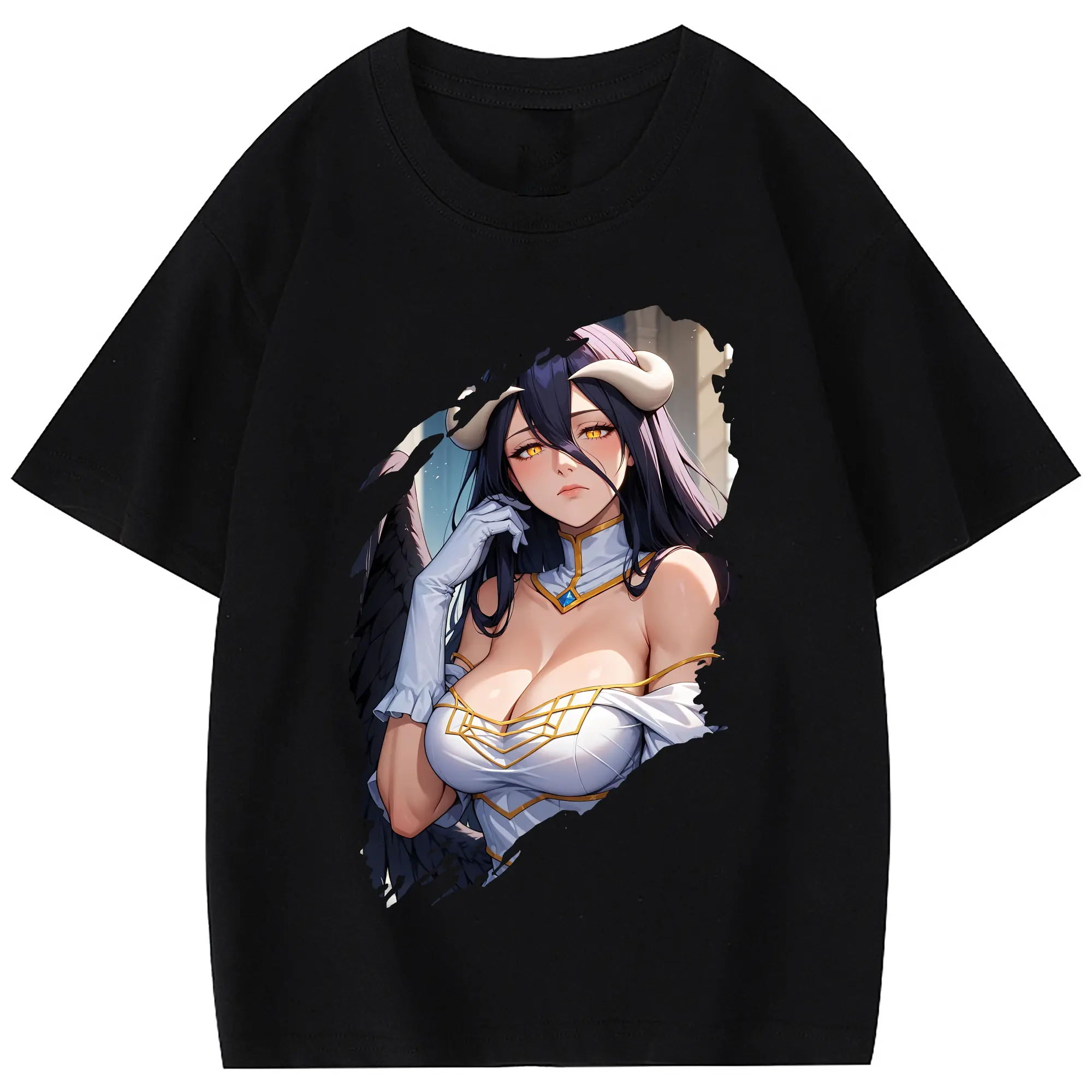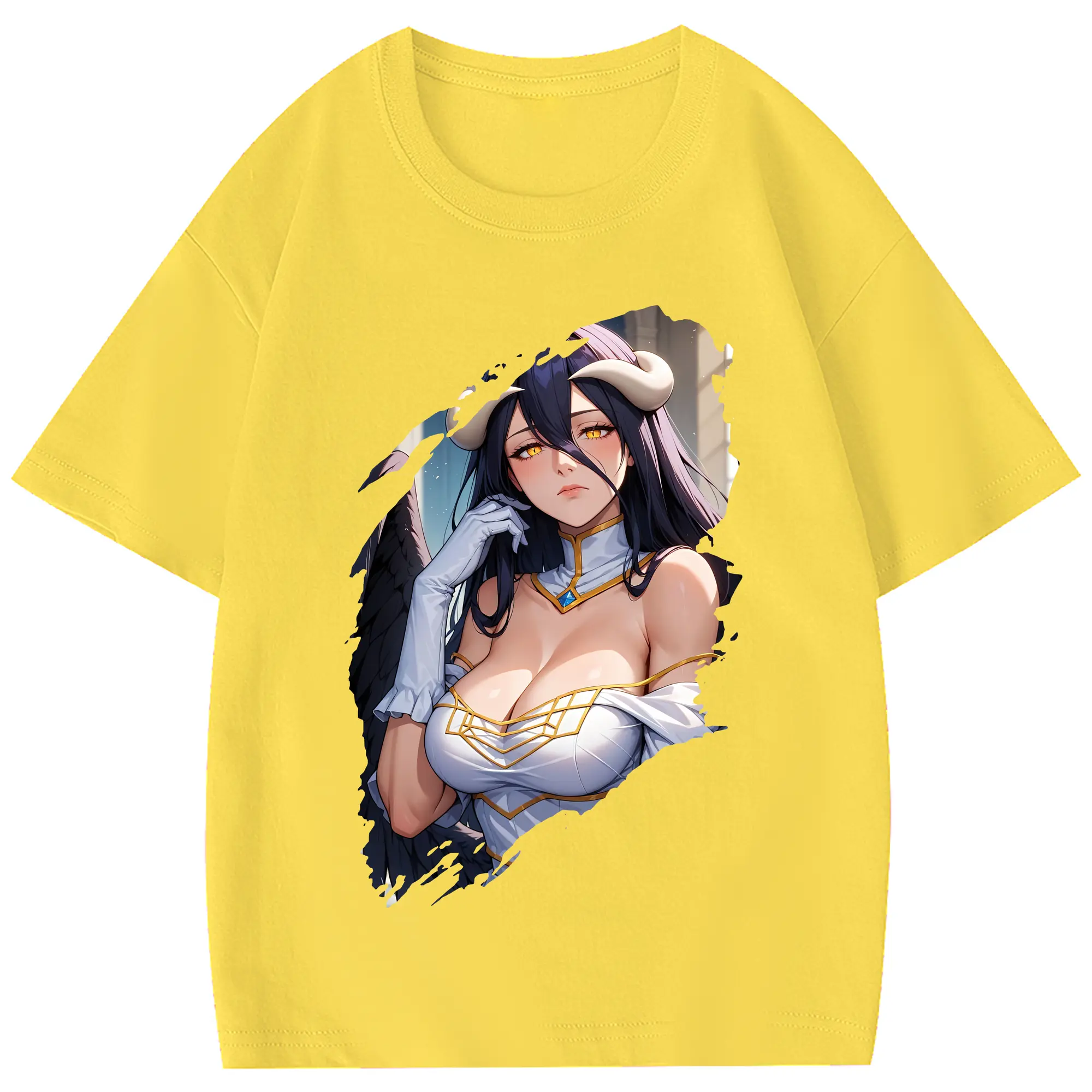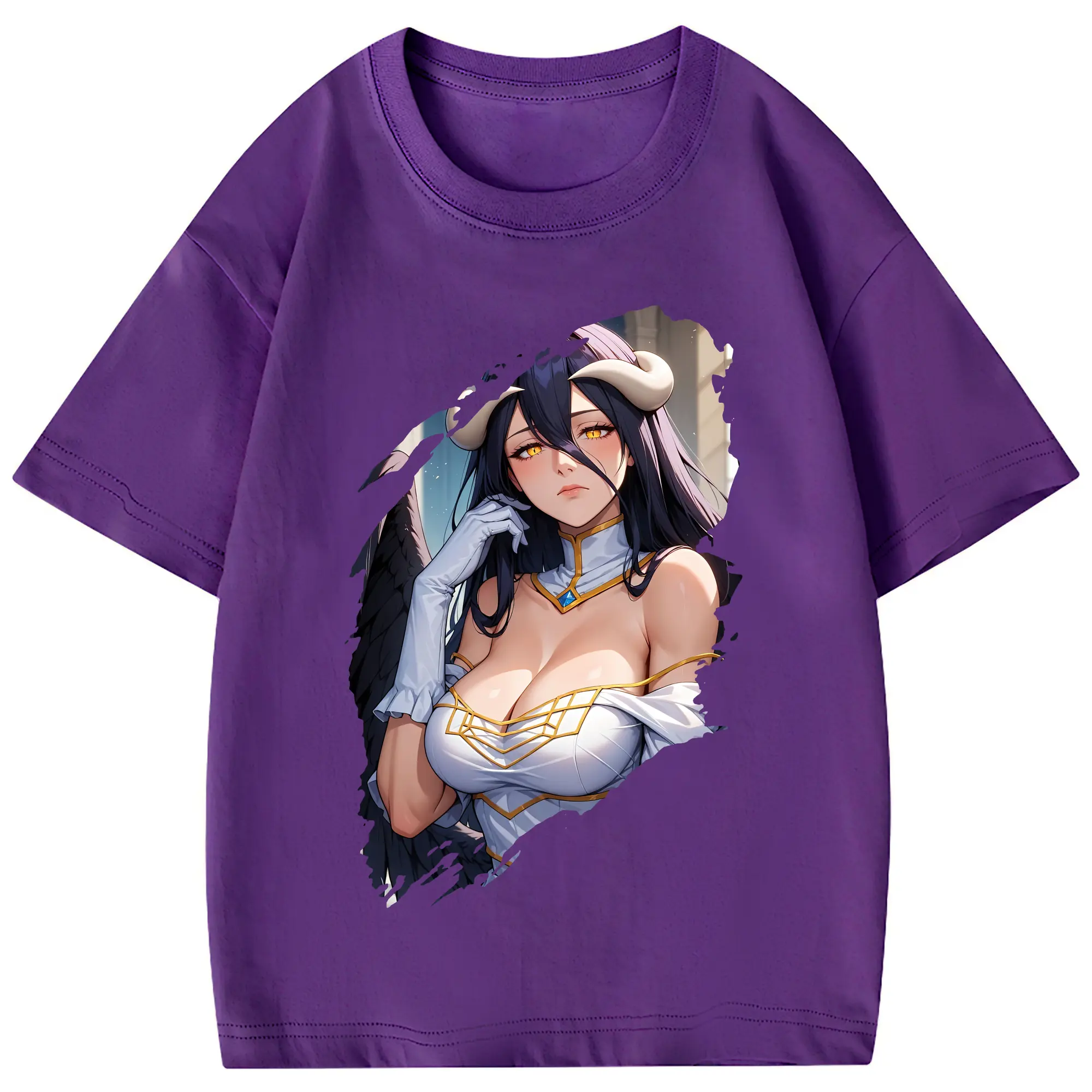 オーバーロード グッズ アルベド - 綿100% 半袖Tシャツ ・ フロントプリント ・ 快適 通気性 ・ 日常使い 散歩 スポーツ用