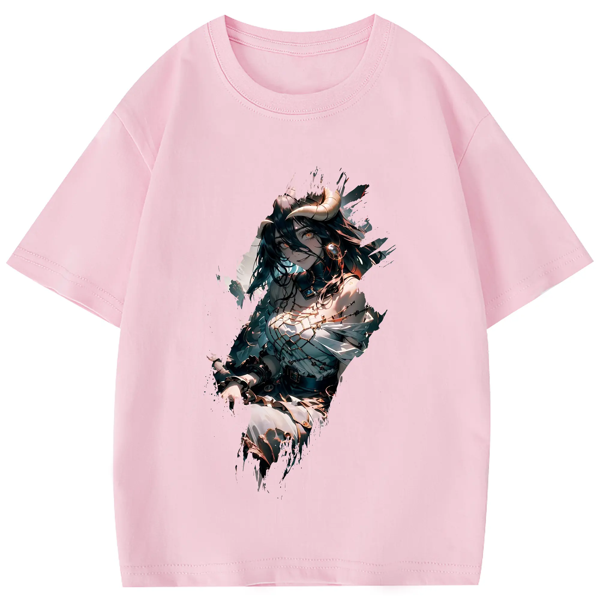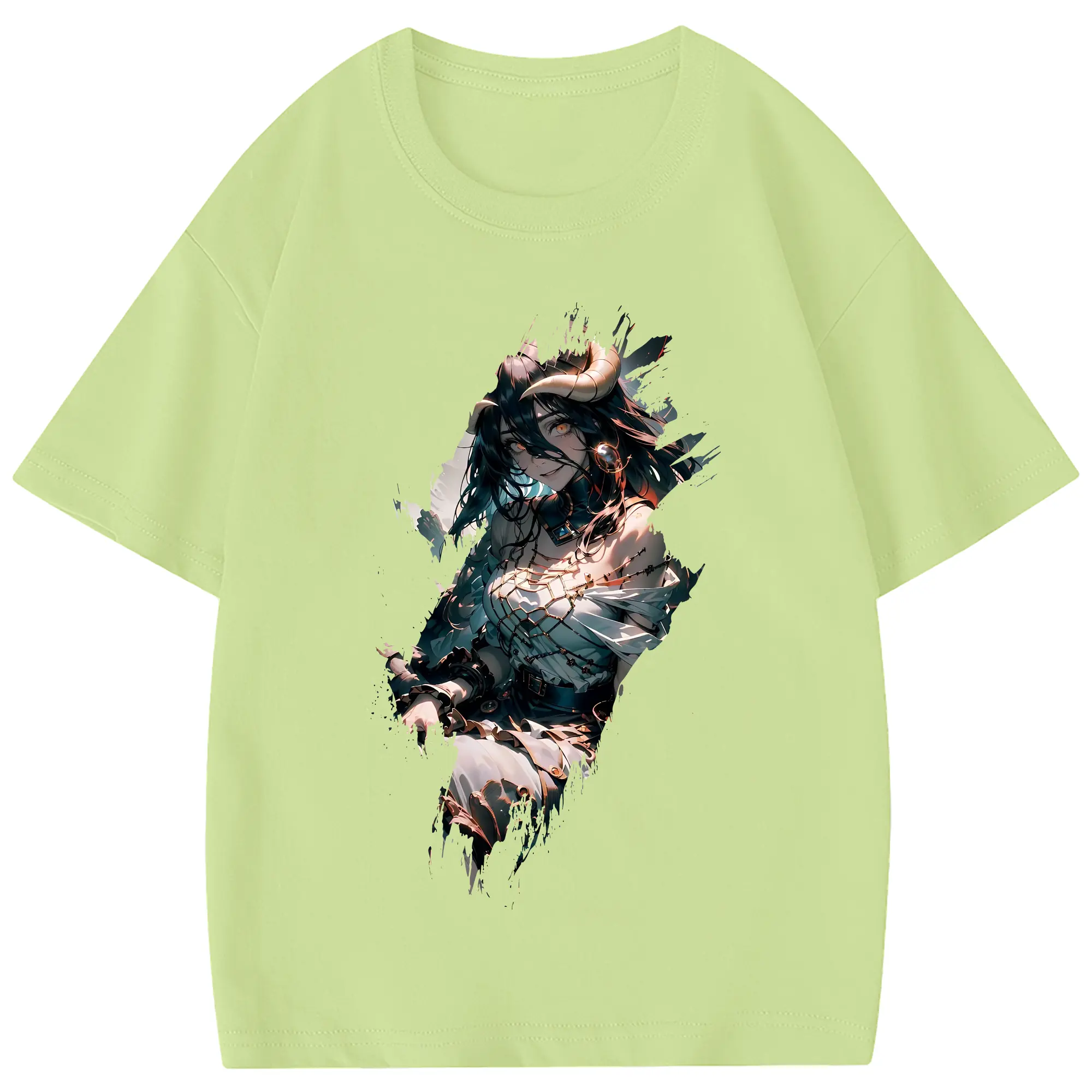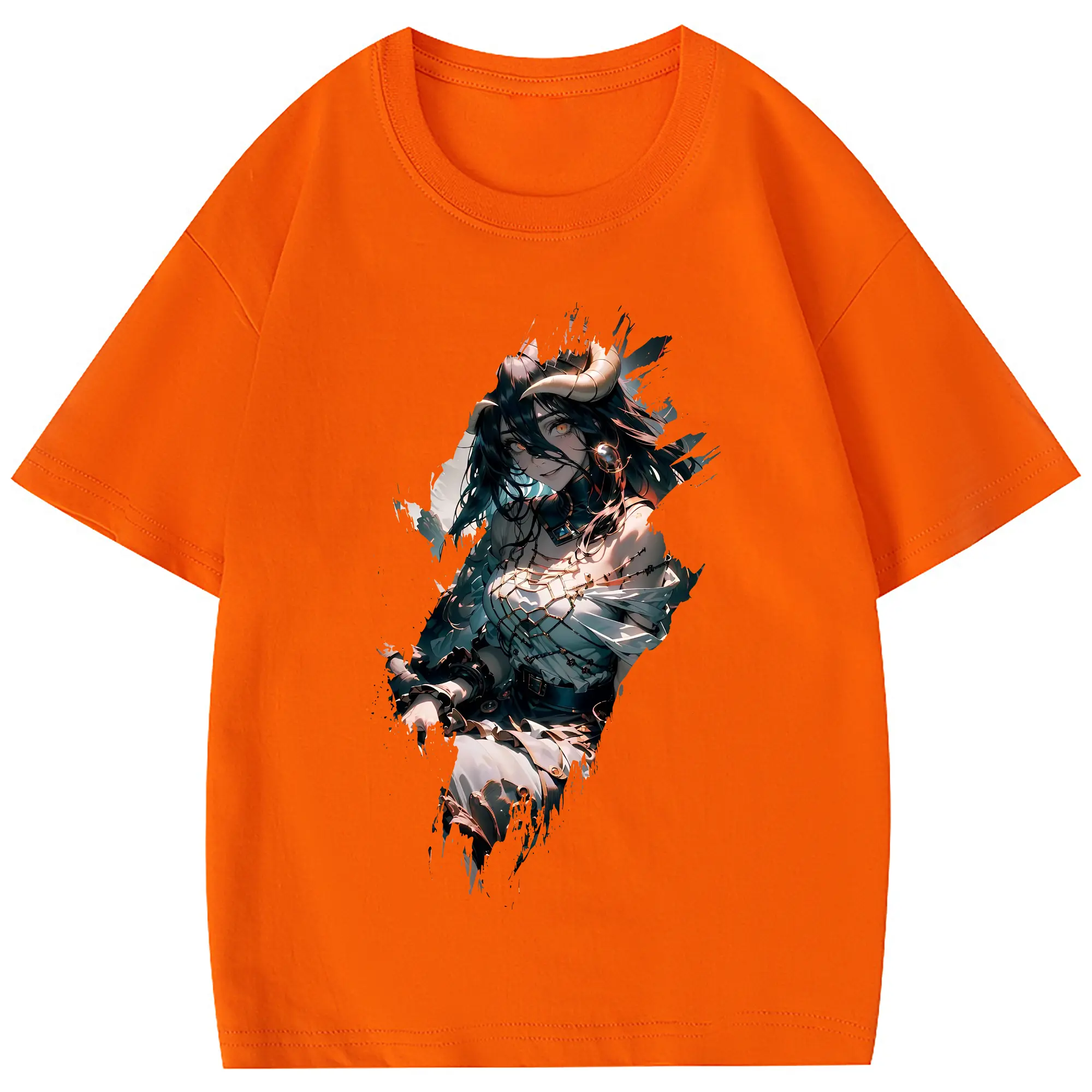 オーバーロード グッズ アルベド - 綿100% ヴィンテージ風 半袖Tシャツ ・ フロントプリント ・ 柔らか肌触り ・ 通気性 快適 ・ スポーツ カジュアル 外出用