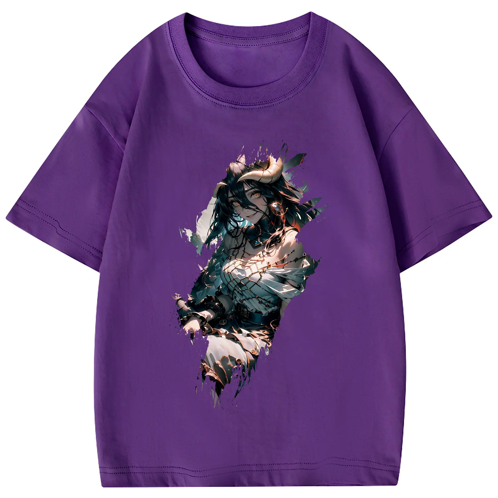 オーバーロード グッズ アルベド - 綿100% 半袖Tシャツ ・ フロントプリント ・ 快適 通気性 ・ 日常使い 散歩 スポーツ用