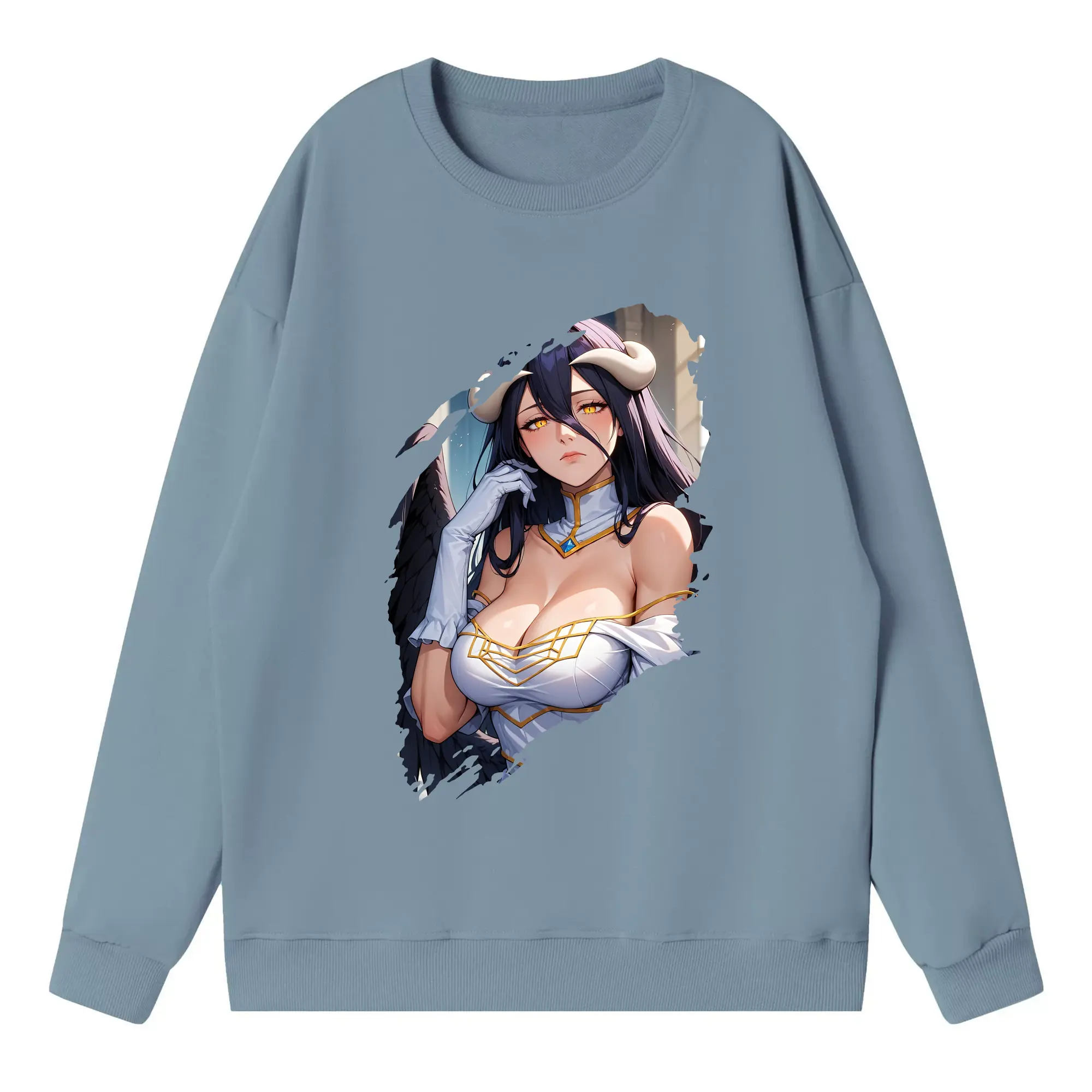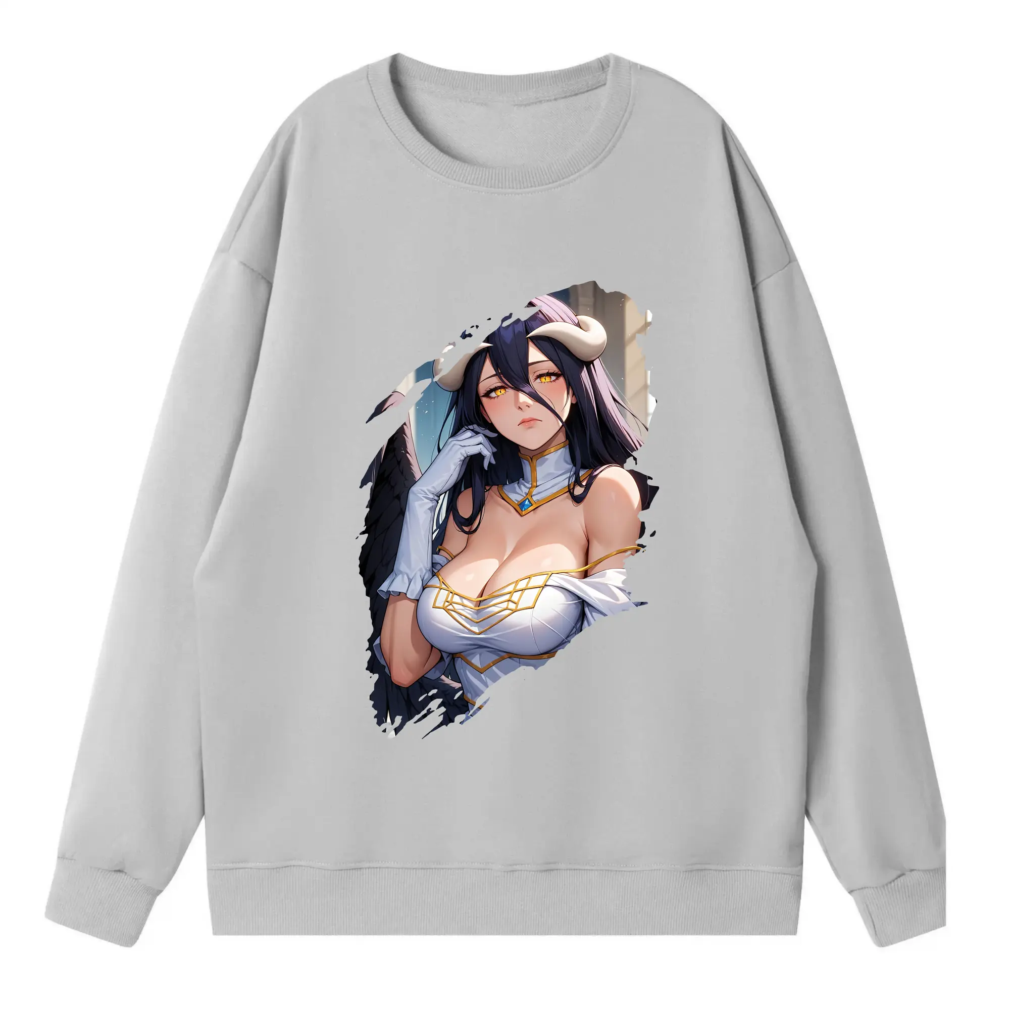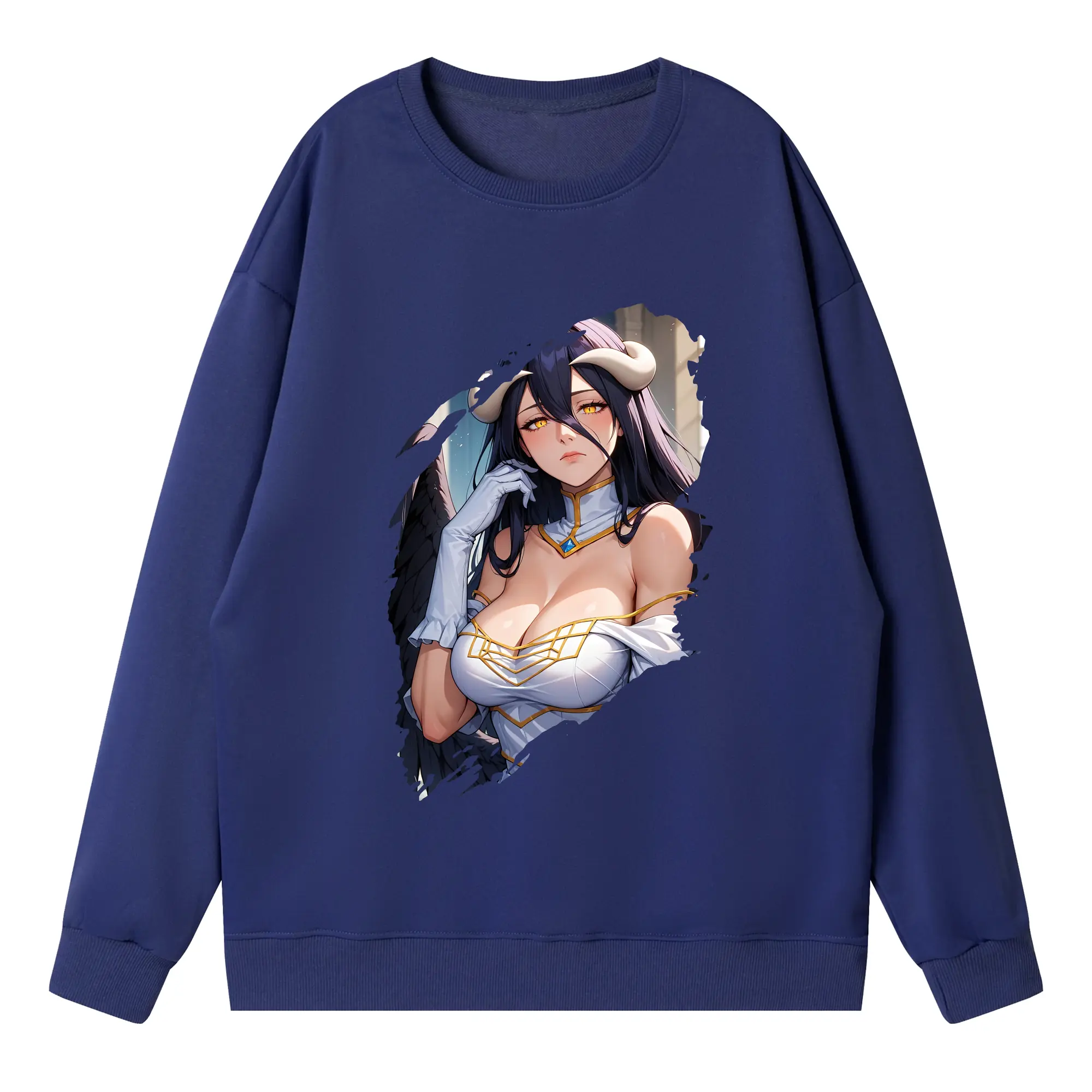 オーバーロード グッズ アルベド - 高品質 クルーネック スウェット ・ コットン59% ポリエステル41% ・ ユニセックス 長袖 トレーナー ・ カジュアル デイリー スポーツ 散歩用