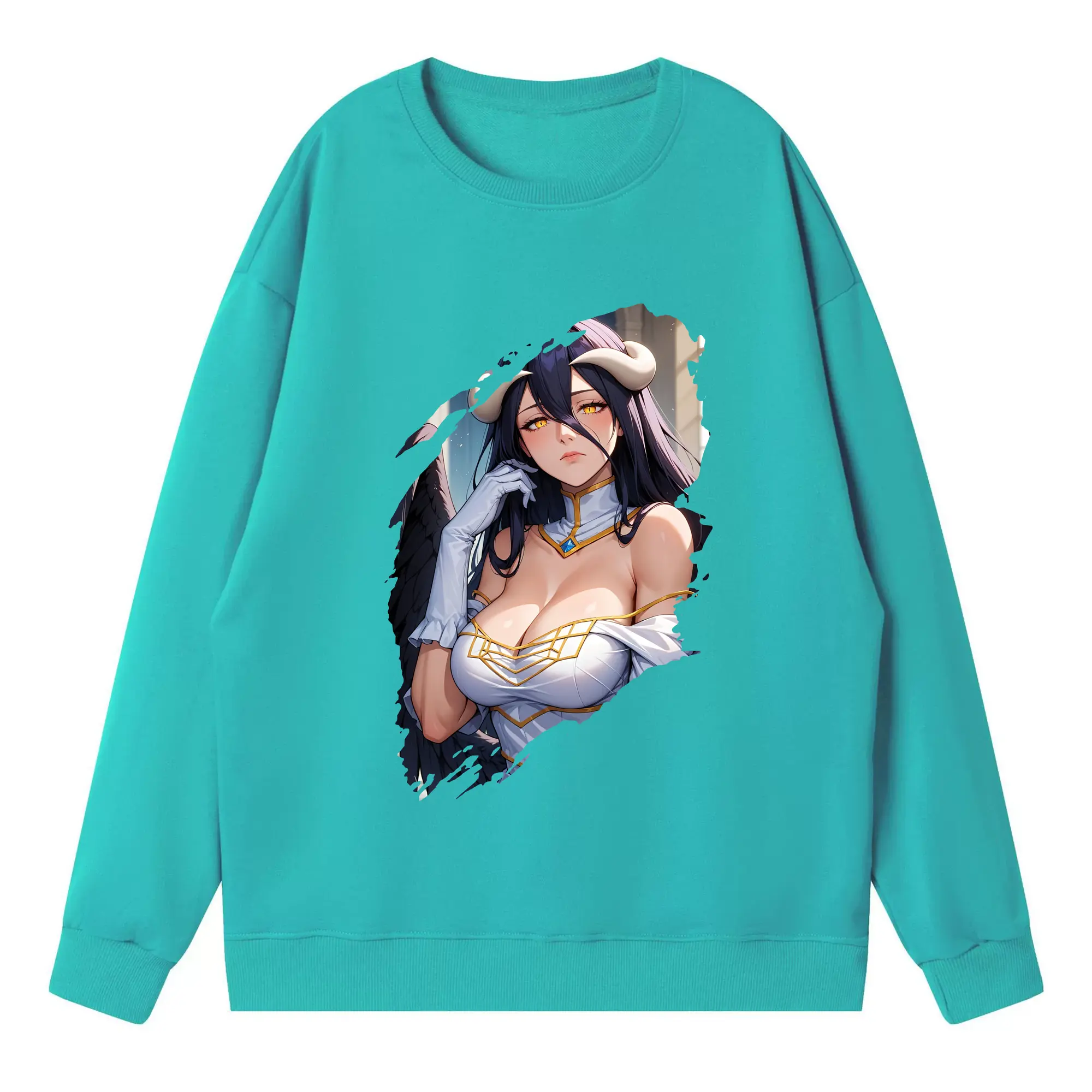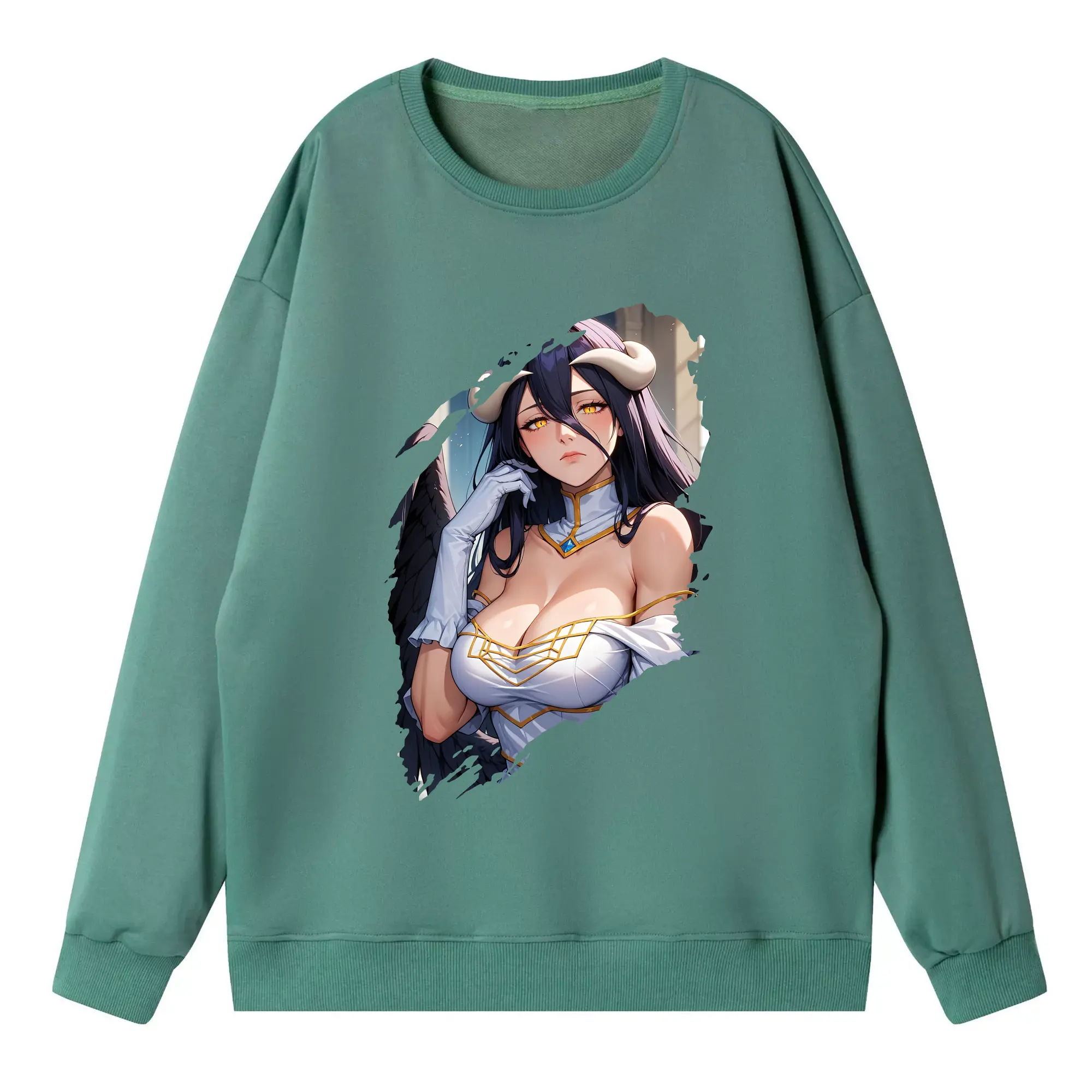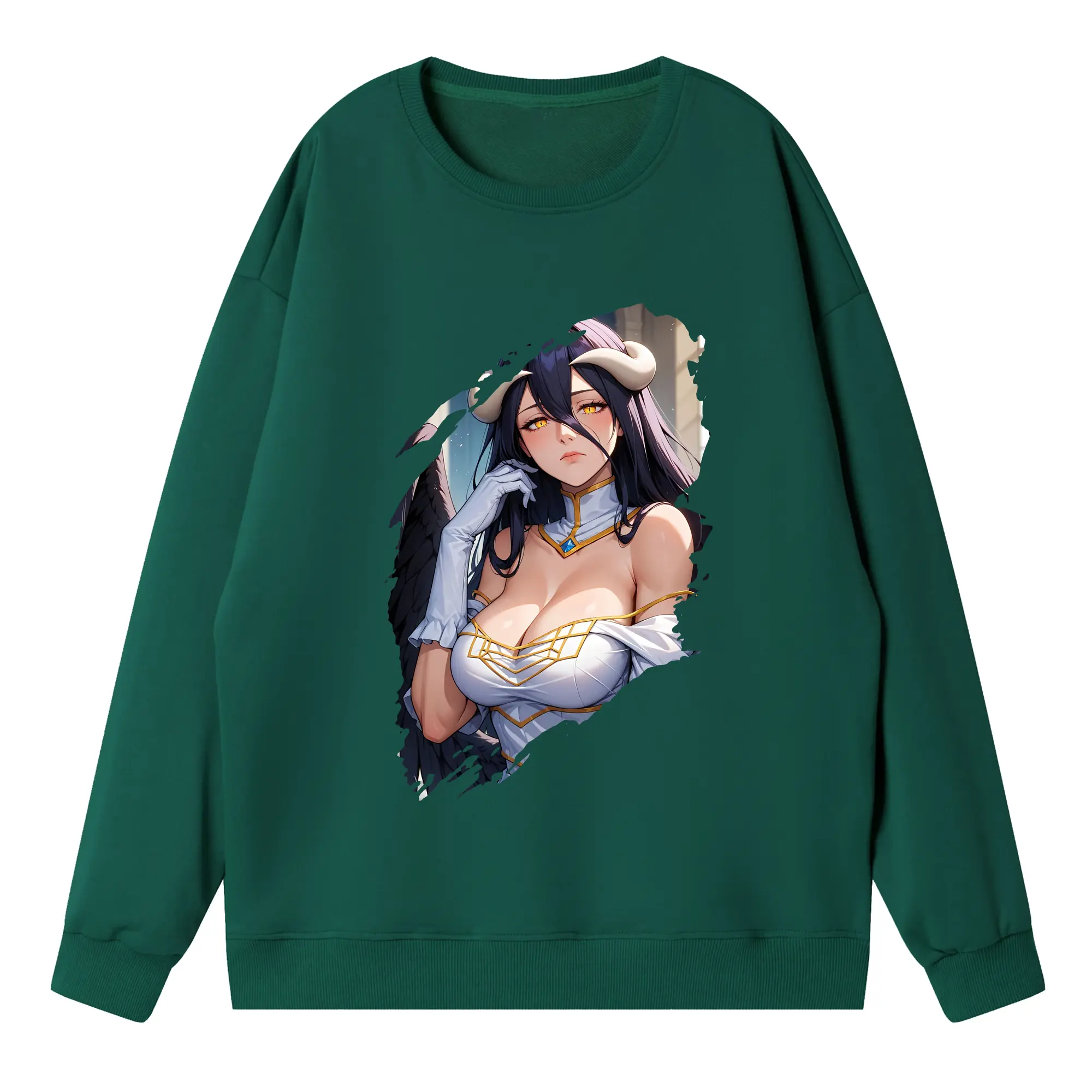 オーバーロード グッズ アルベド - 高品質 クルーネック スウェット ・ コットン59% ポリエステル41% ・ ユニセックス 長袖 トレーナー ・ カジュアル デイリー スポーツ 散歩用
