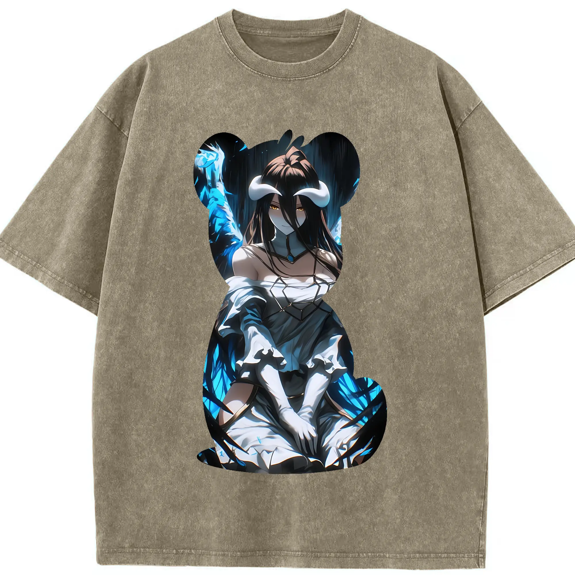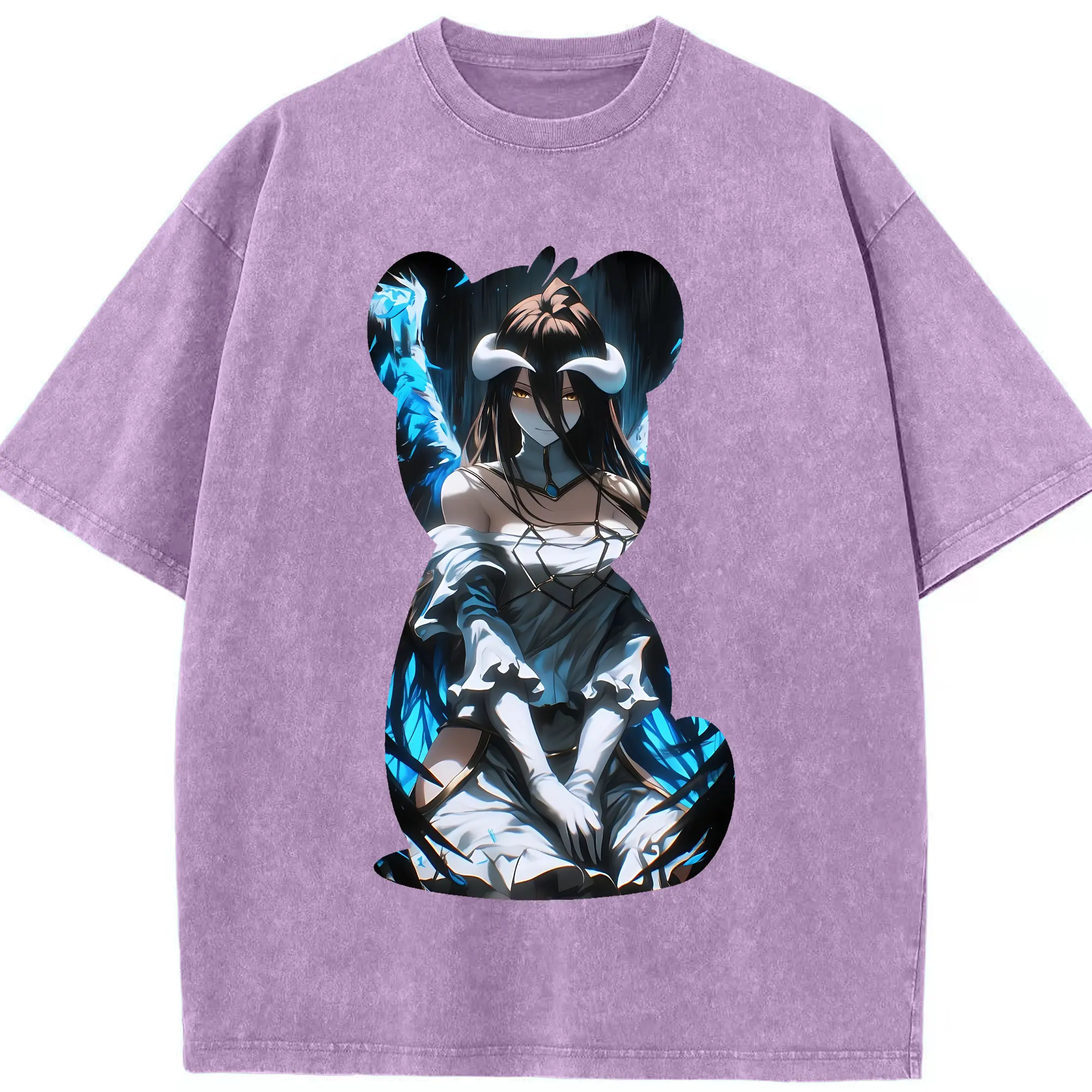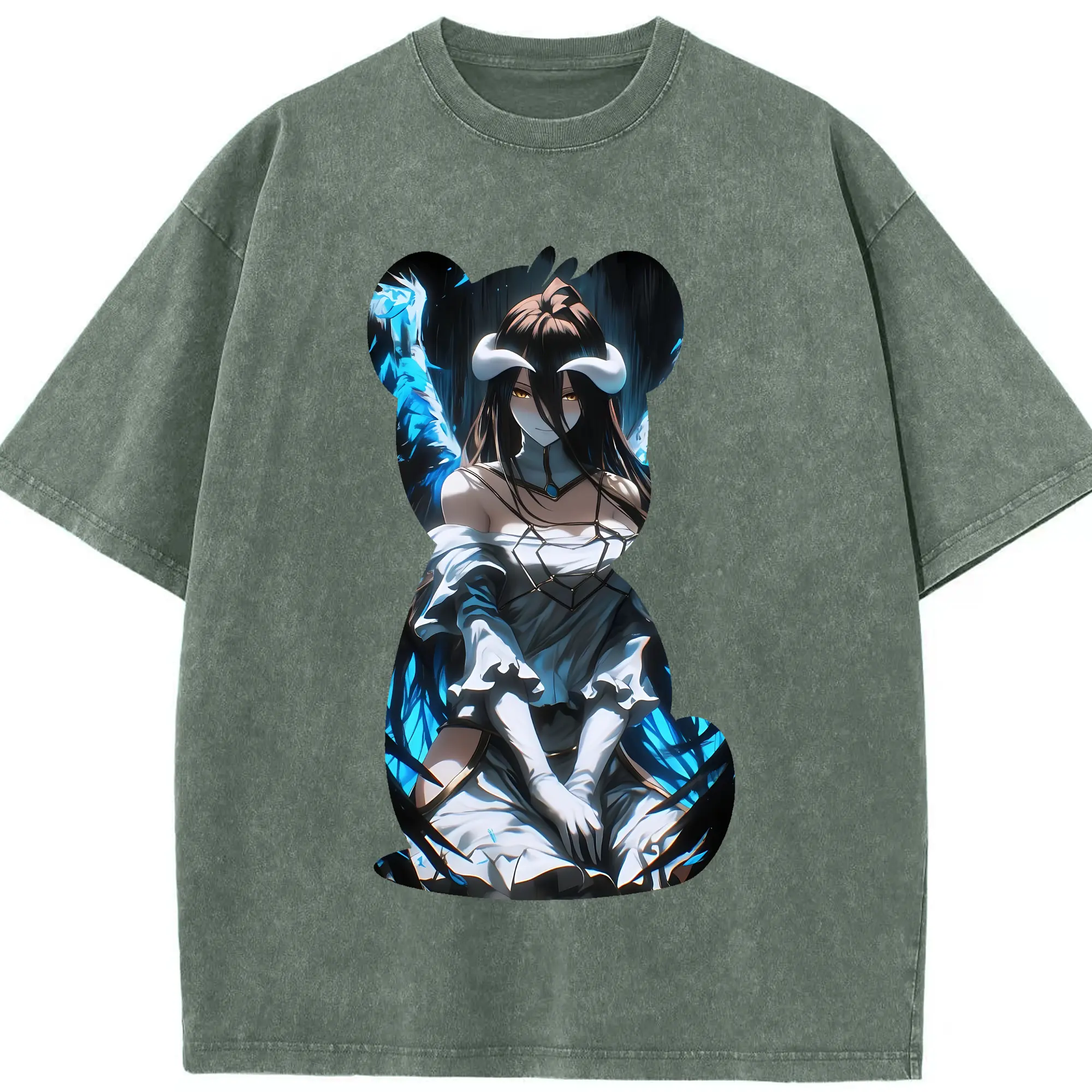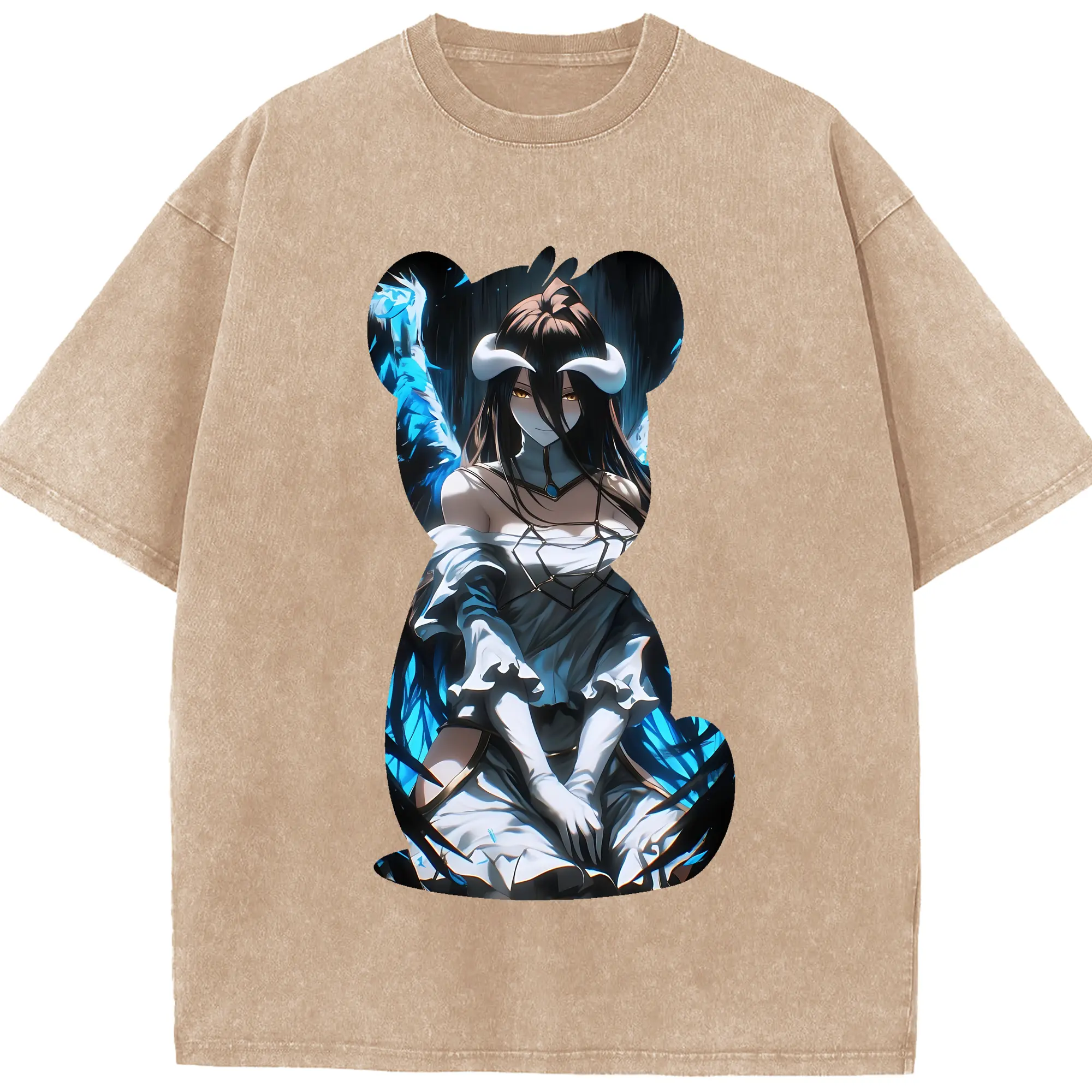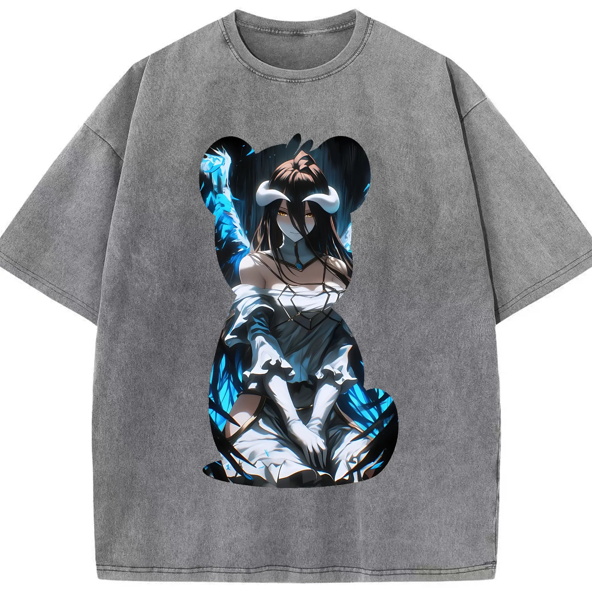 オーバーロード グッズ アルベド - 綿100% ヴィンテージ風 半袖Tシャツ ・ 背面プリント ・ 柔らか肌触り ・ 通気性 快適 ・ スポーツ カジュアル 外出用