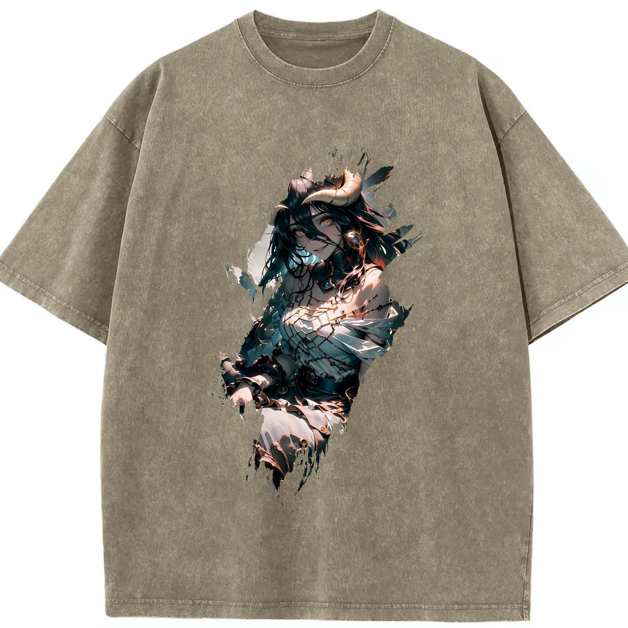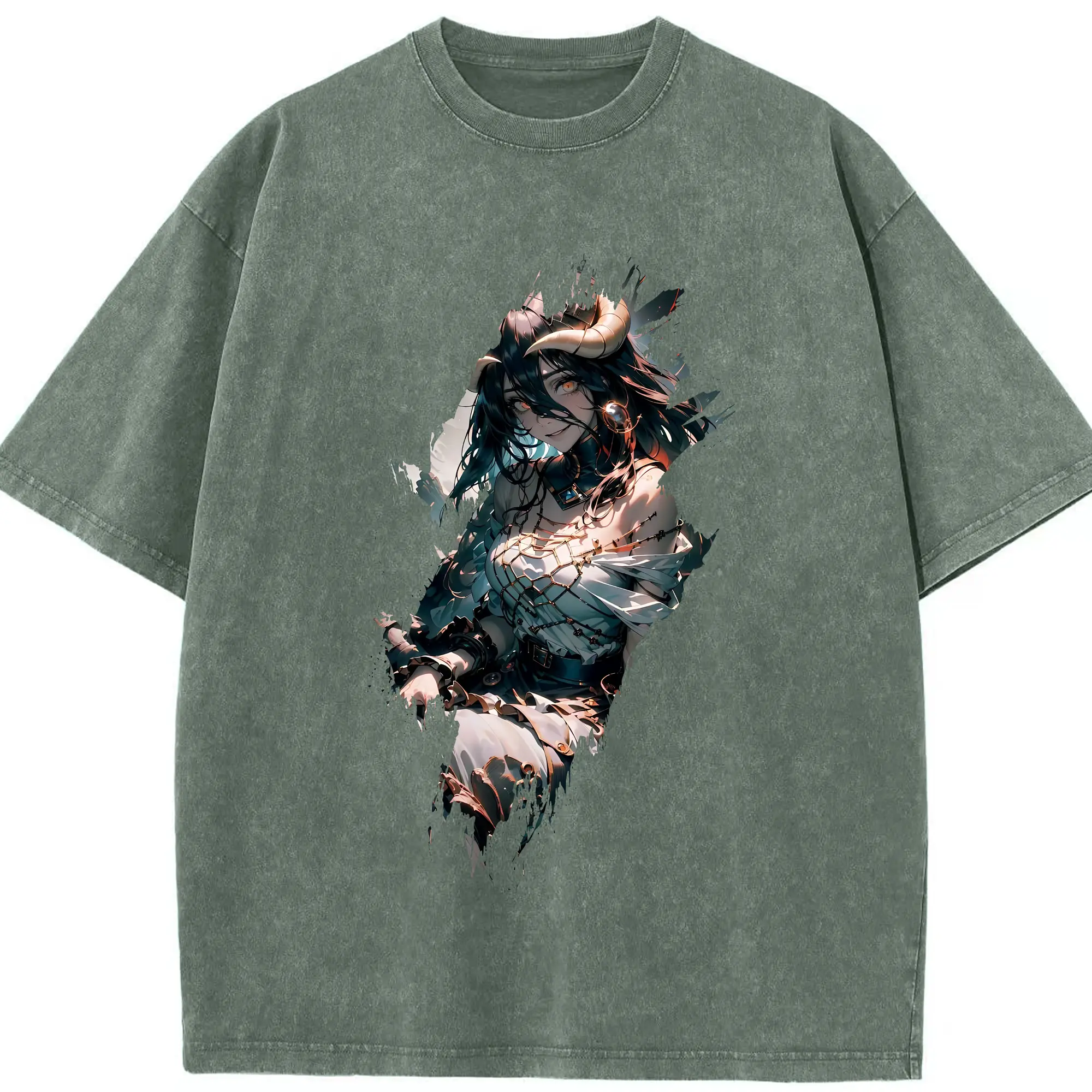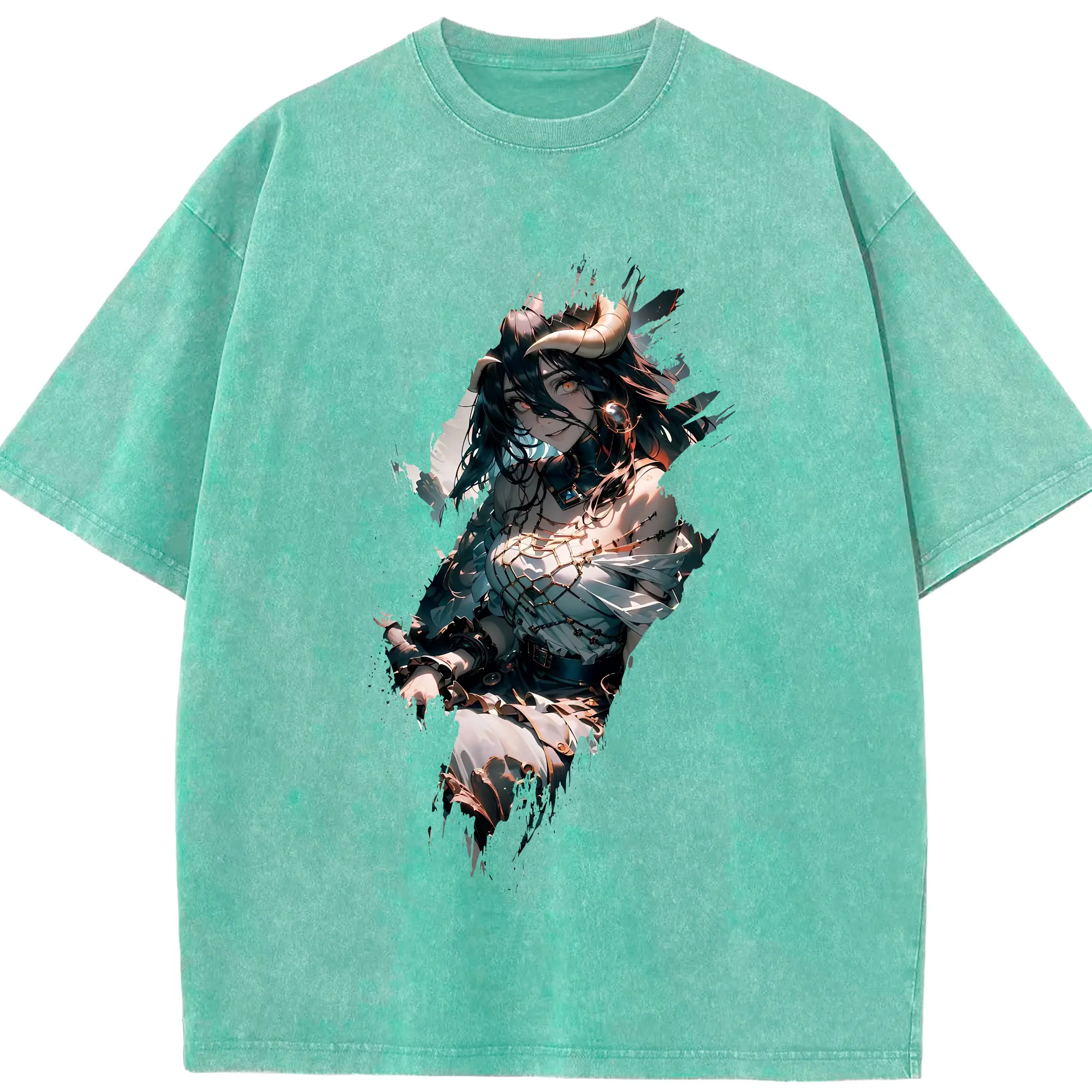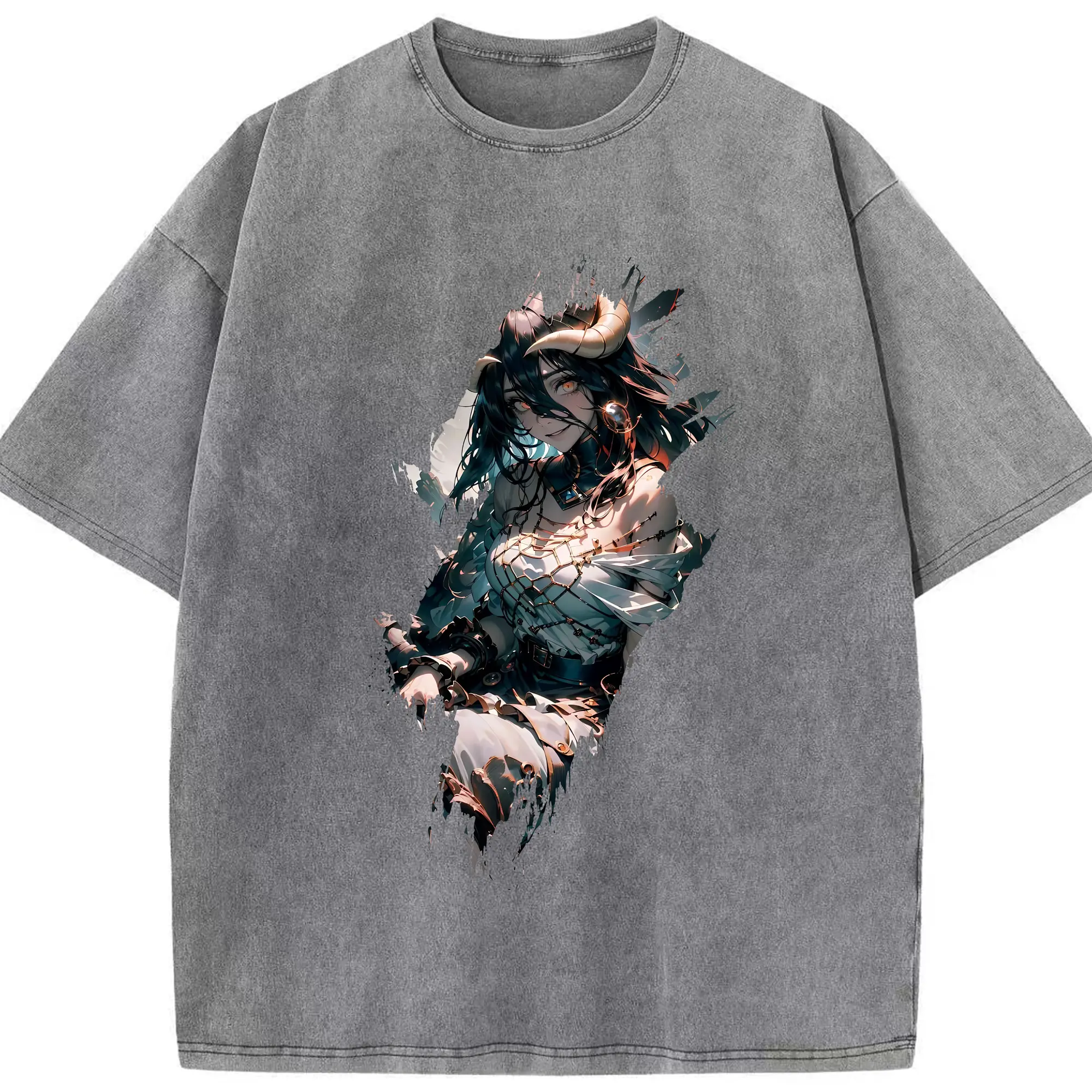オーバーロード グッズ アルベド - 綿100% ヴィンテージ風 半袖Tシャツ ・ 背面プリント ・ 柔らか肌触り ・ 通気性 快適 ・ スポーツ カジュアル 外出用
