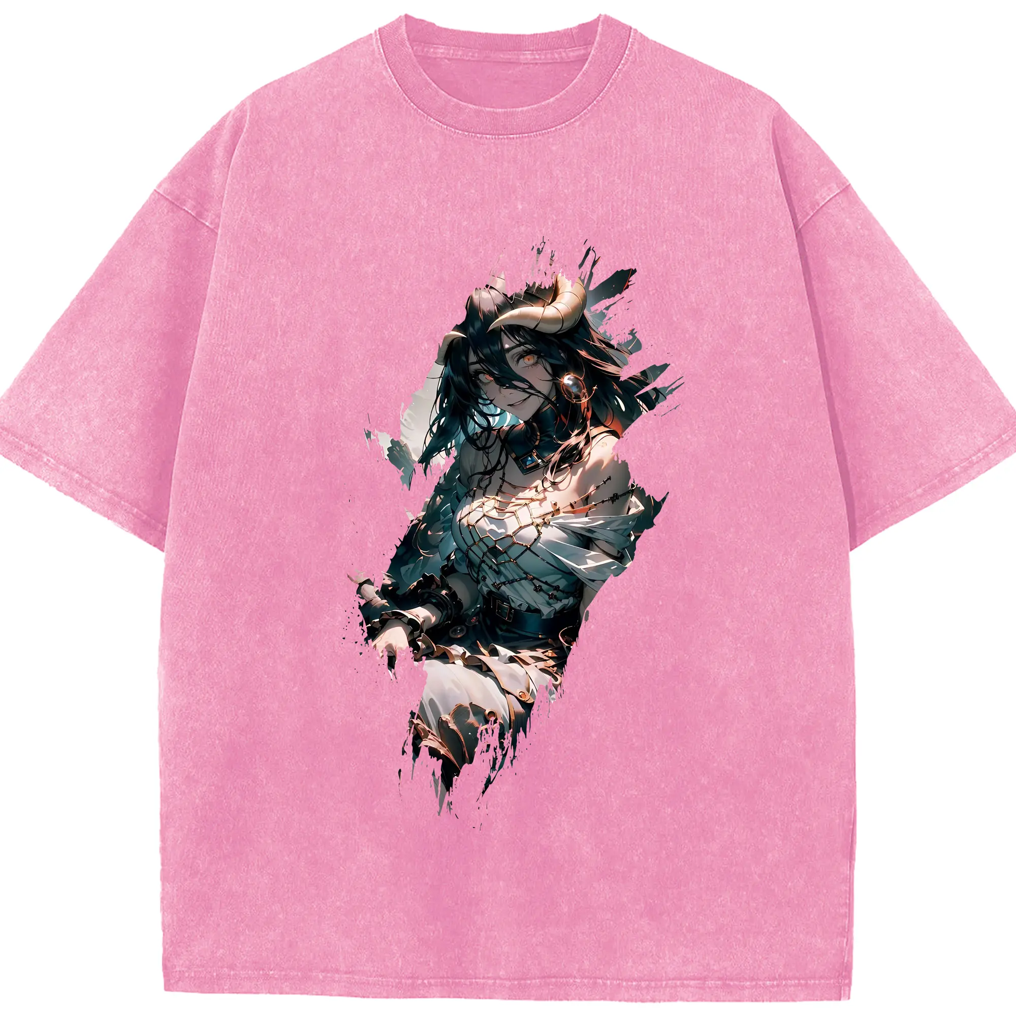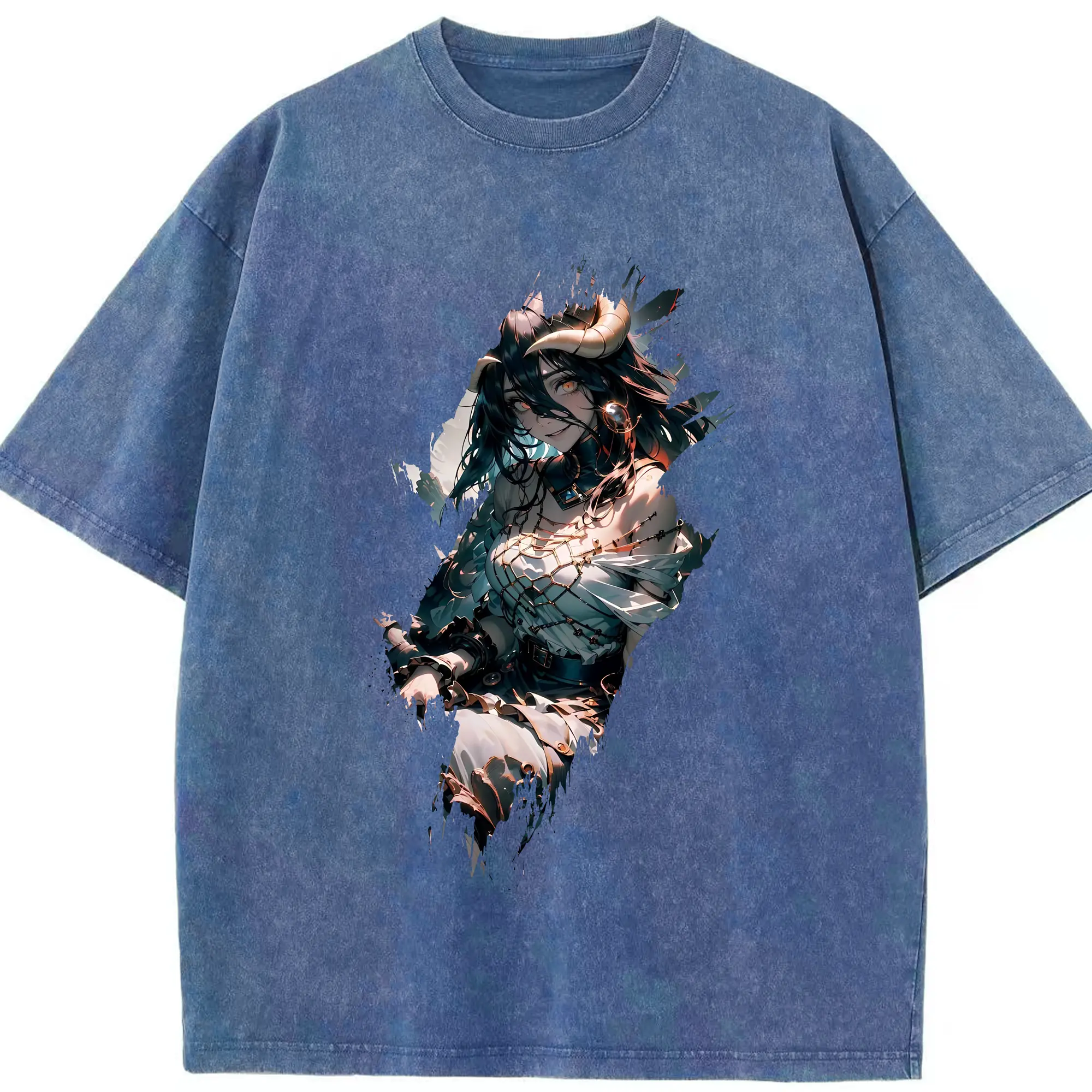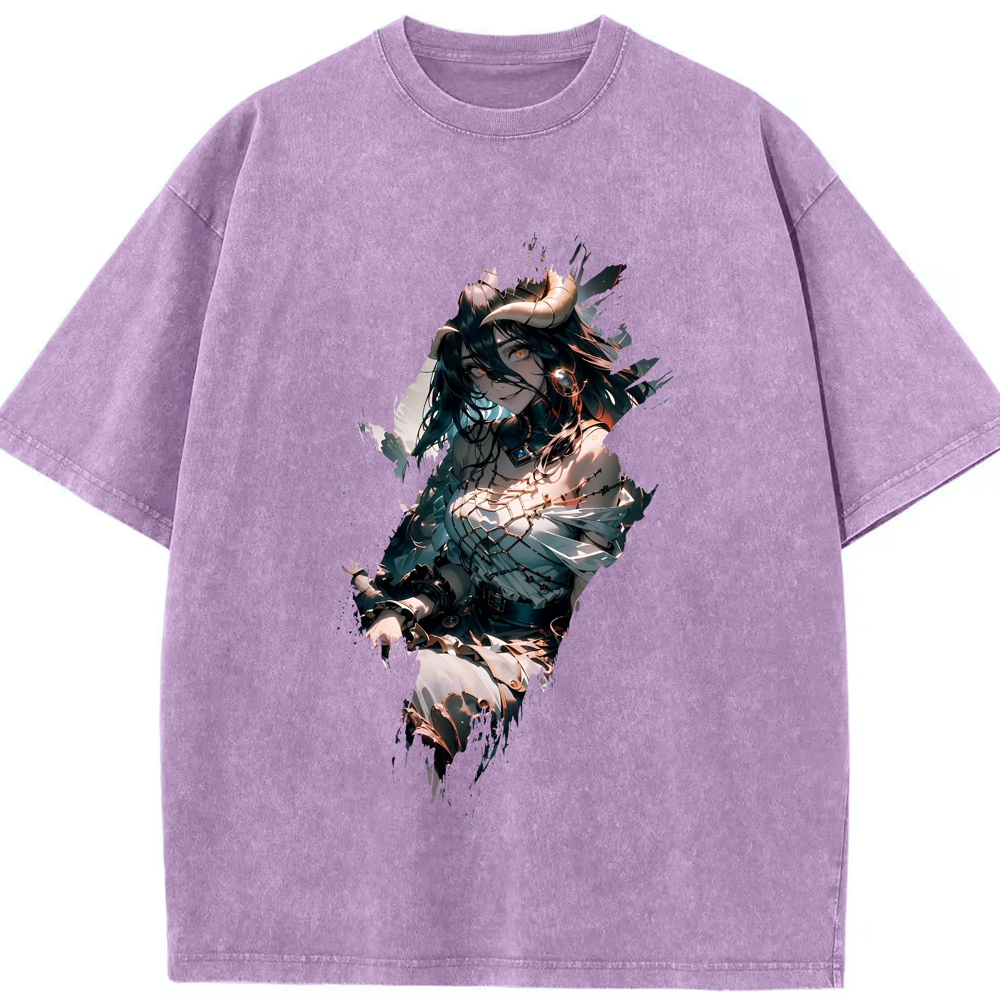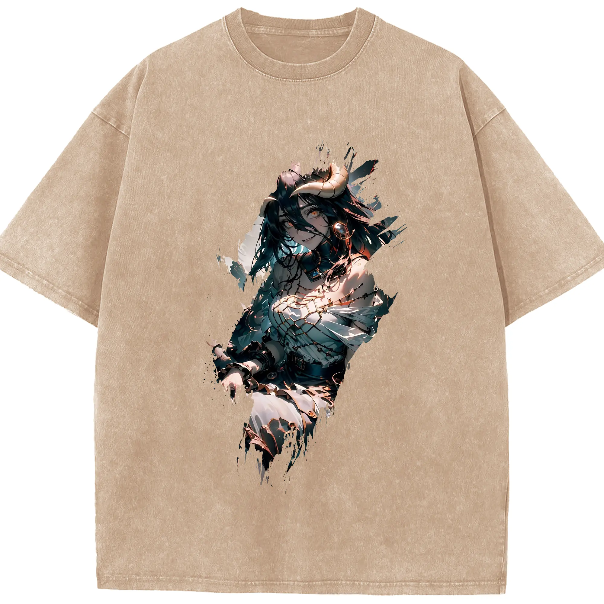 オーバーロード グッズ アルベド - 綿100% ヴィンテージ風 半袖Tシャツ ・ 背面プリント ・ 柔らか肌触り ・ 通気性 快適 ・ スポーツ カジュアル 外出用