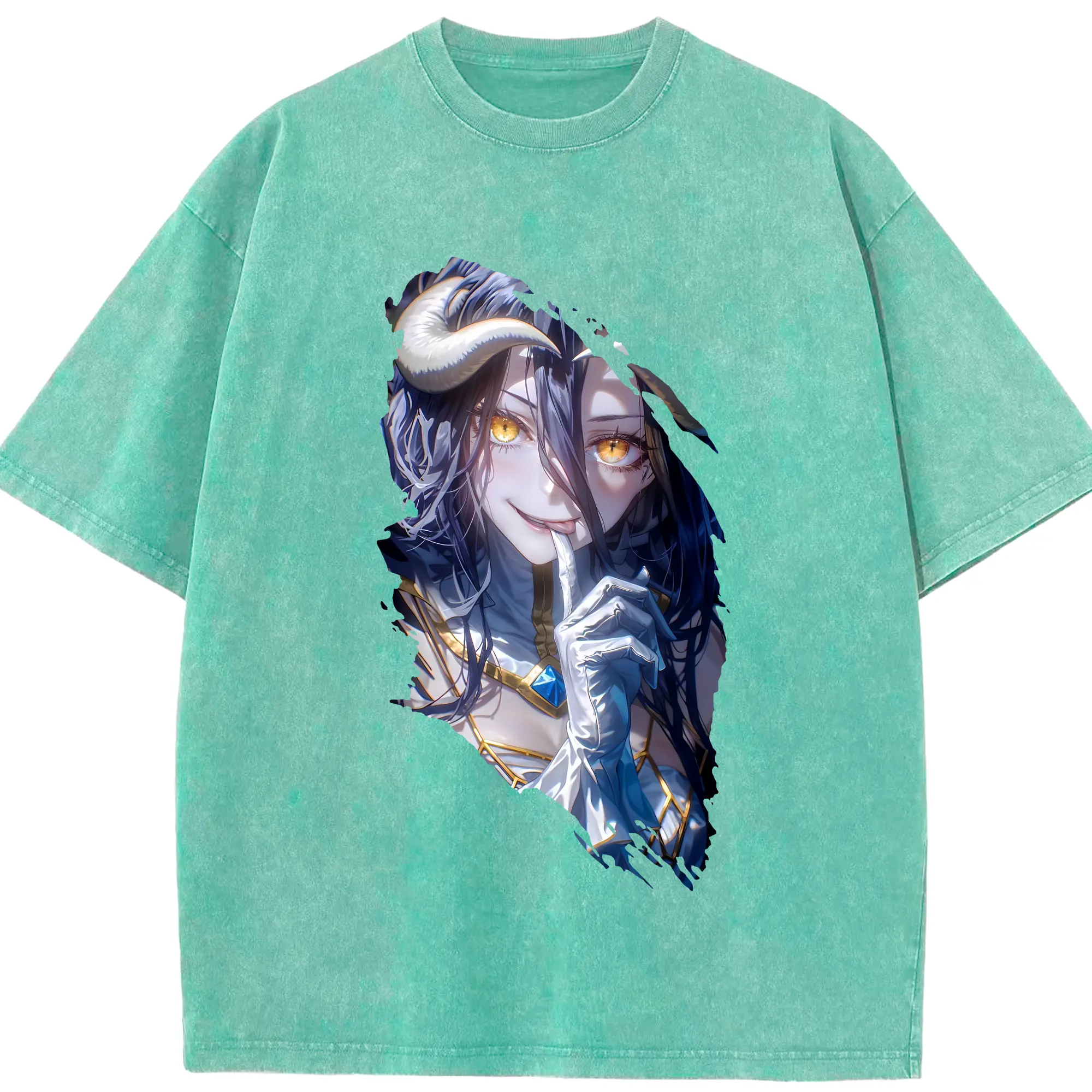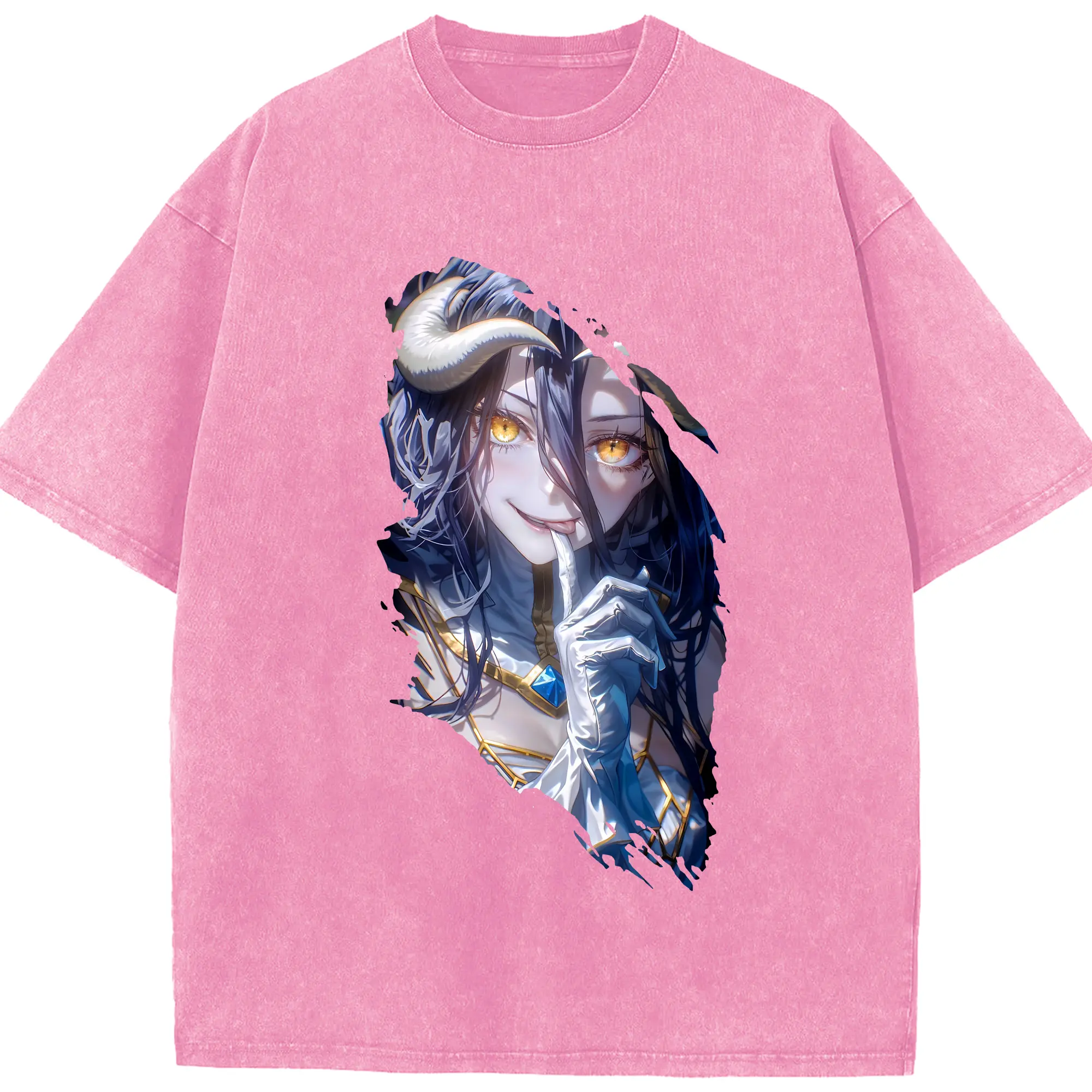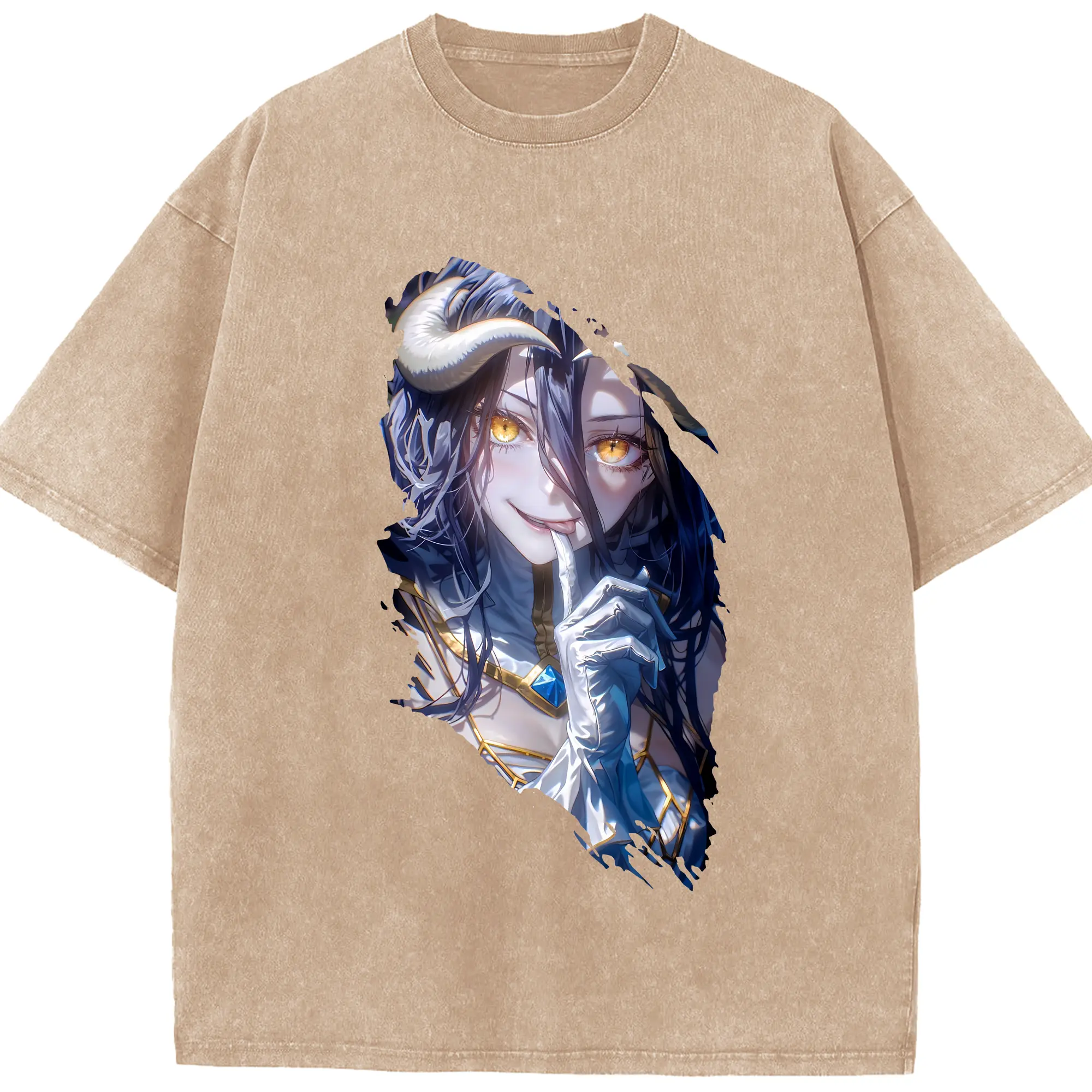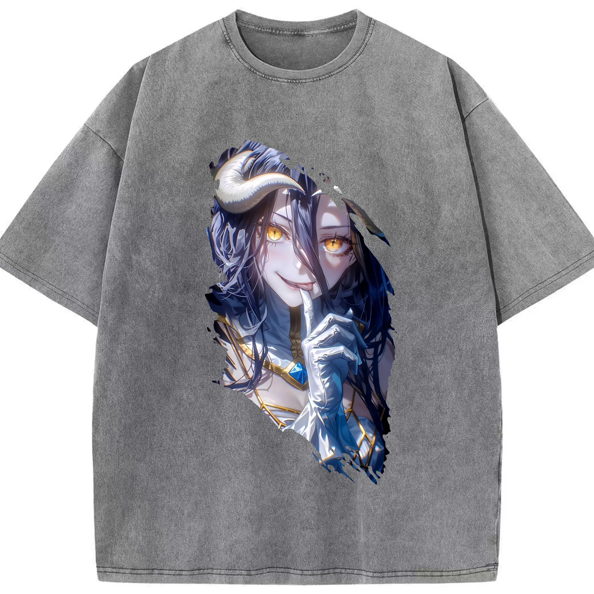 オーバーロード グッズ アルベド - 綿100% ヴィンテージ風 半袖Tシャツ ・ 背面プリント ・ 柔らか肌触り ・ 通気性 快適 ・ スポーツ カジュアル 外出用