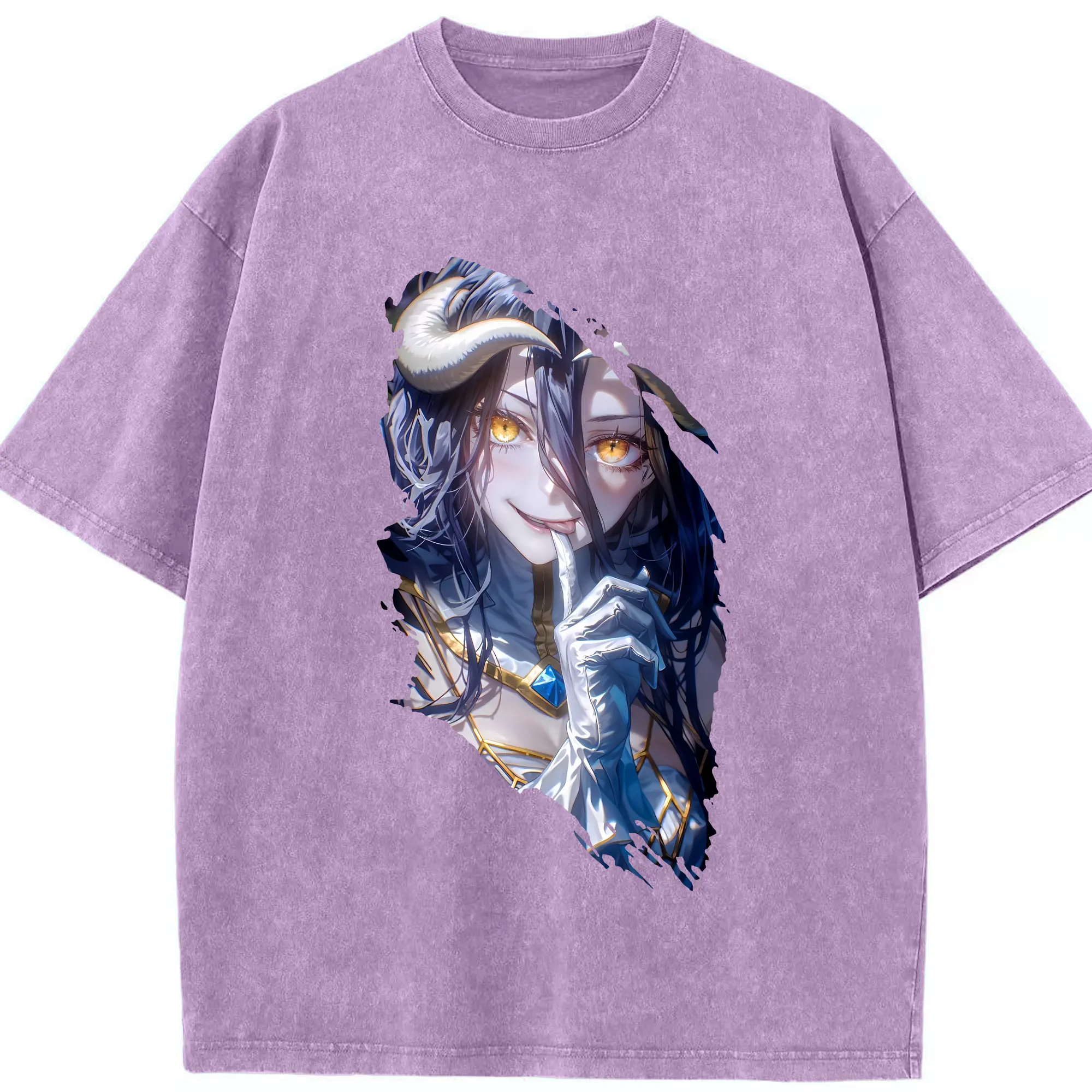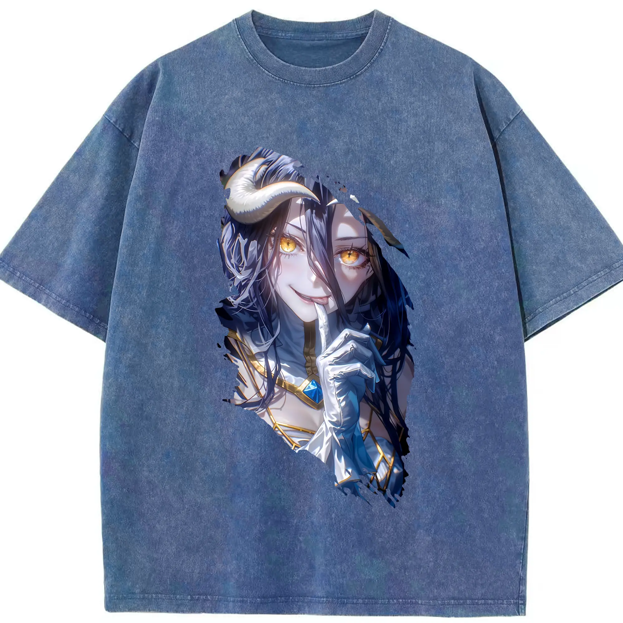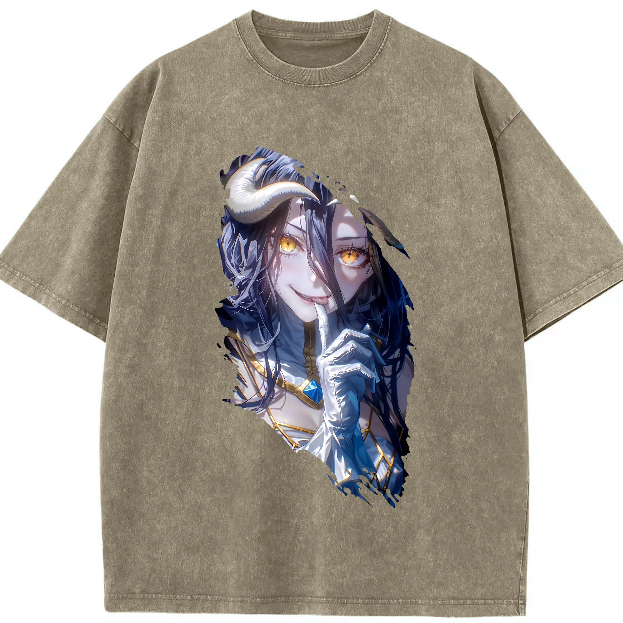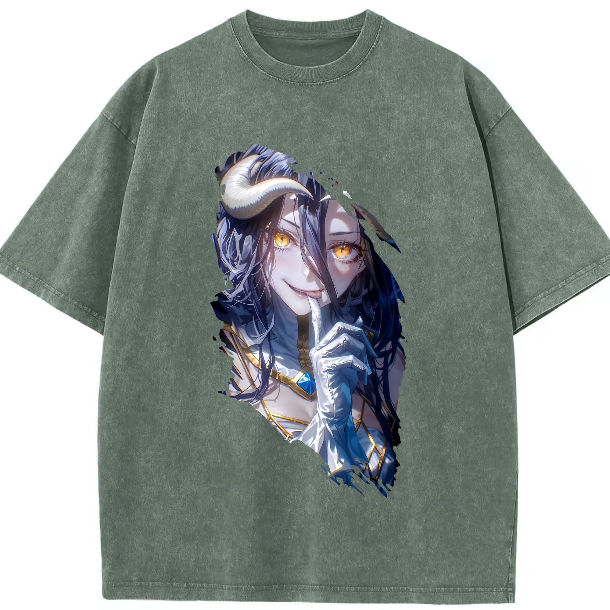 オーバーロード グッズ アルベド - 綿100% ヴィンテージ風 半袖Tシャツ ・ 背面プリント ・ 柔らか肌触り ・ 通気性 快適 ・ スポーツ カジュアル 外出用