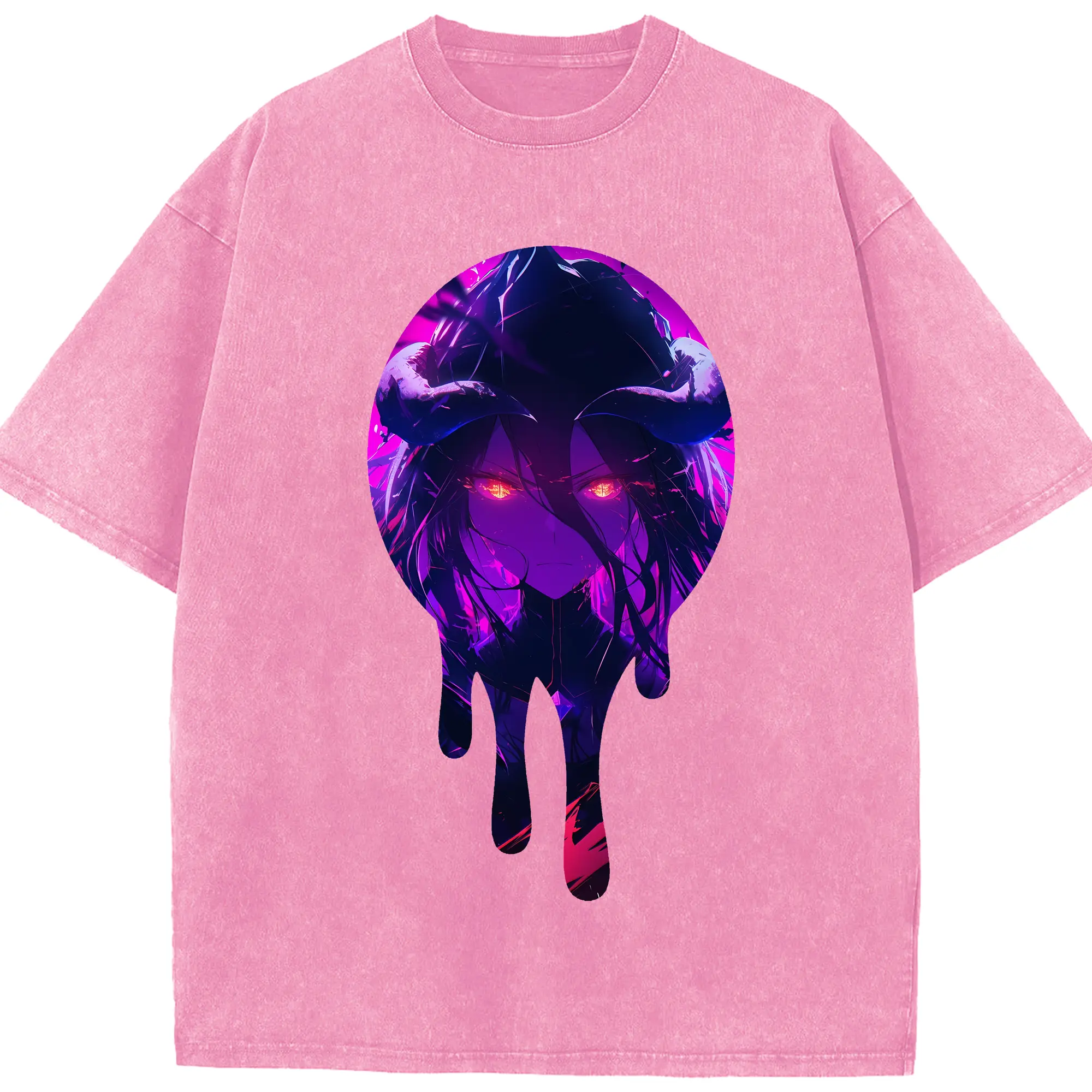 オーバーロード グッズ アルベド - 綿100% ヴィンテージ風 半袖Tシャツ ・ 背面プリント ・ 柔らか肌触り ・ 通気性 快適 ・ スポーツ カジュアル 外出用