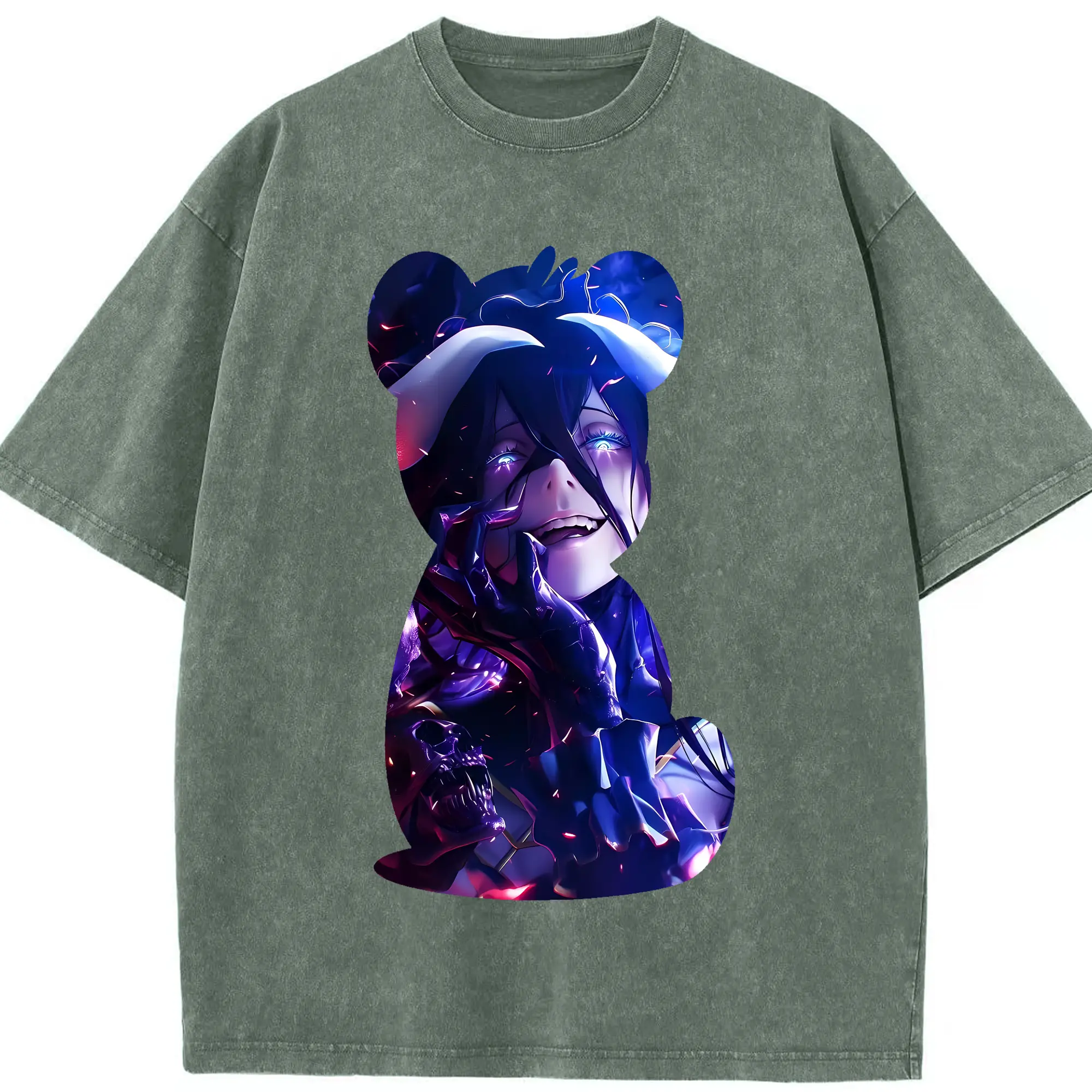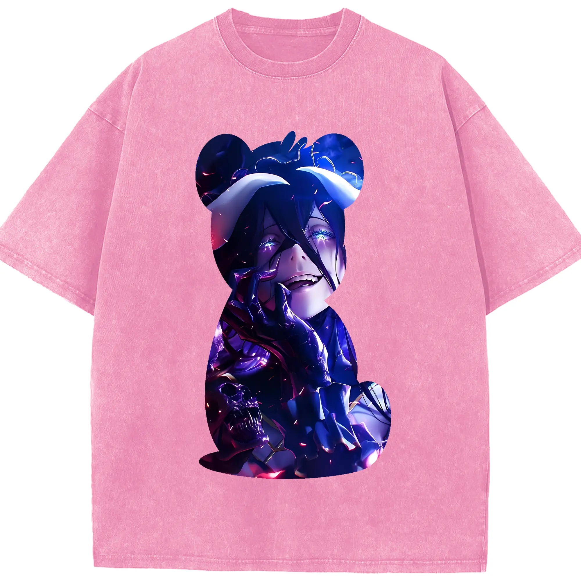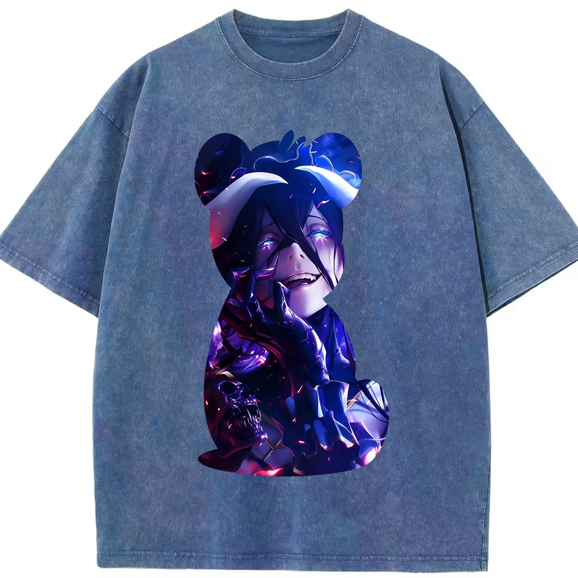 オーバーロード グッズ アルベド - 綿100% ヴィンテージ風 半袖Tシャツ ・ 背面プリント ・ 柔らか肌触り ・ 通気性 快適 ・ スポーツ カジュアル 外出用