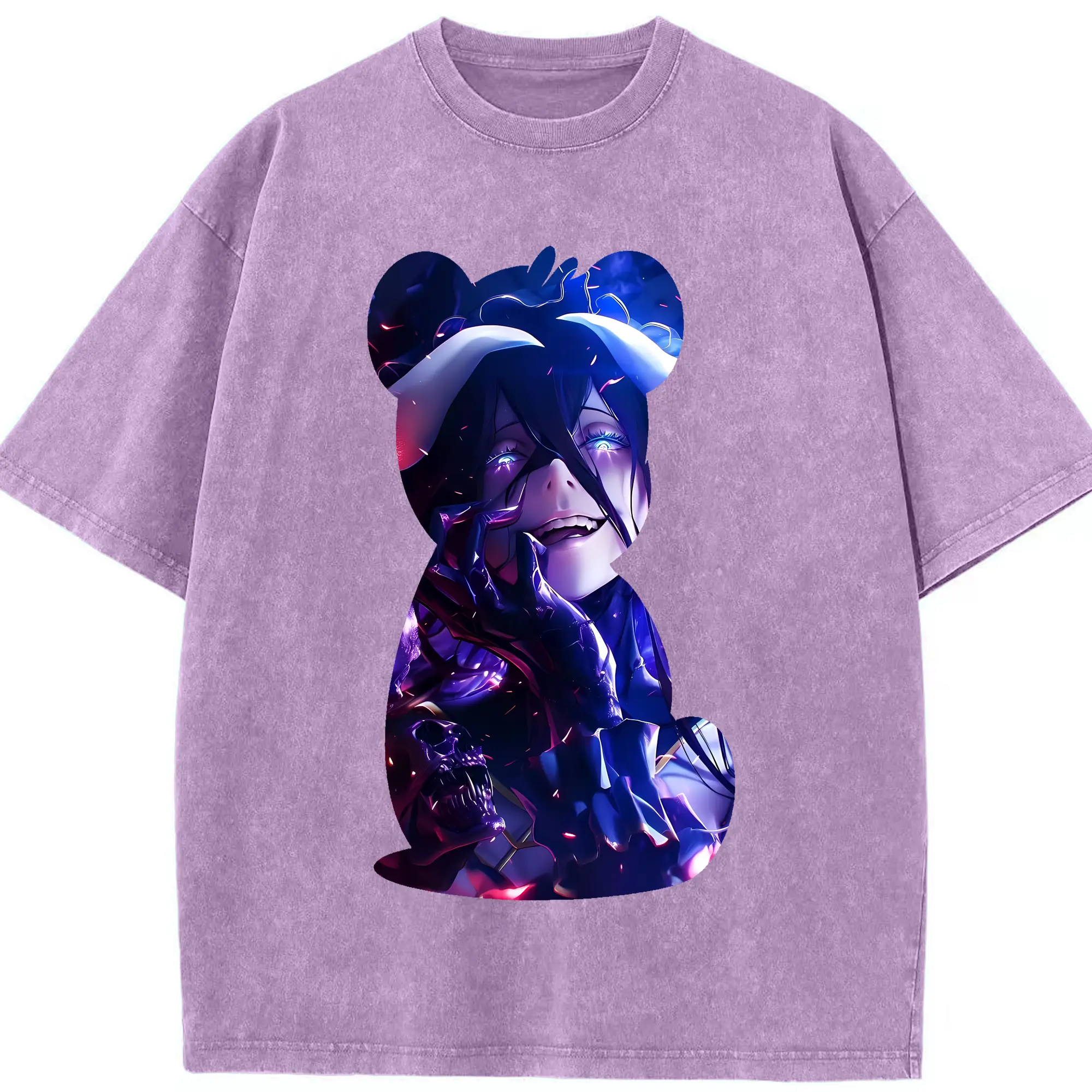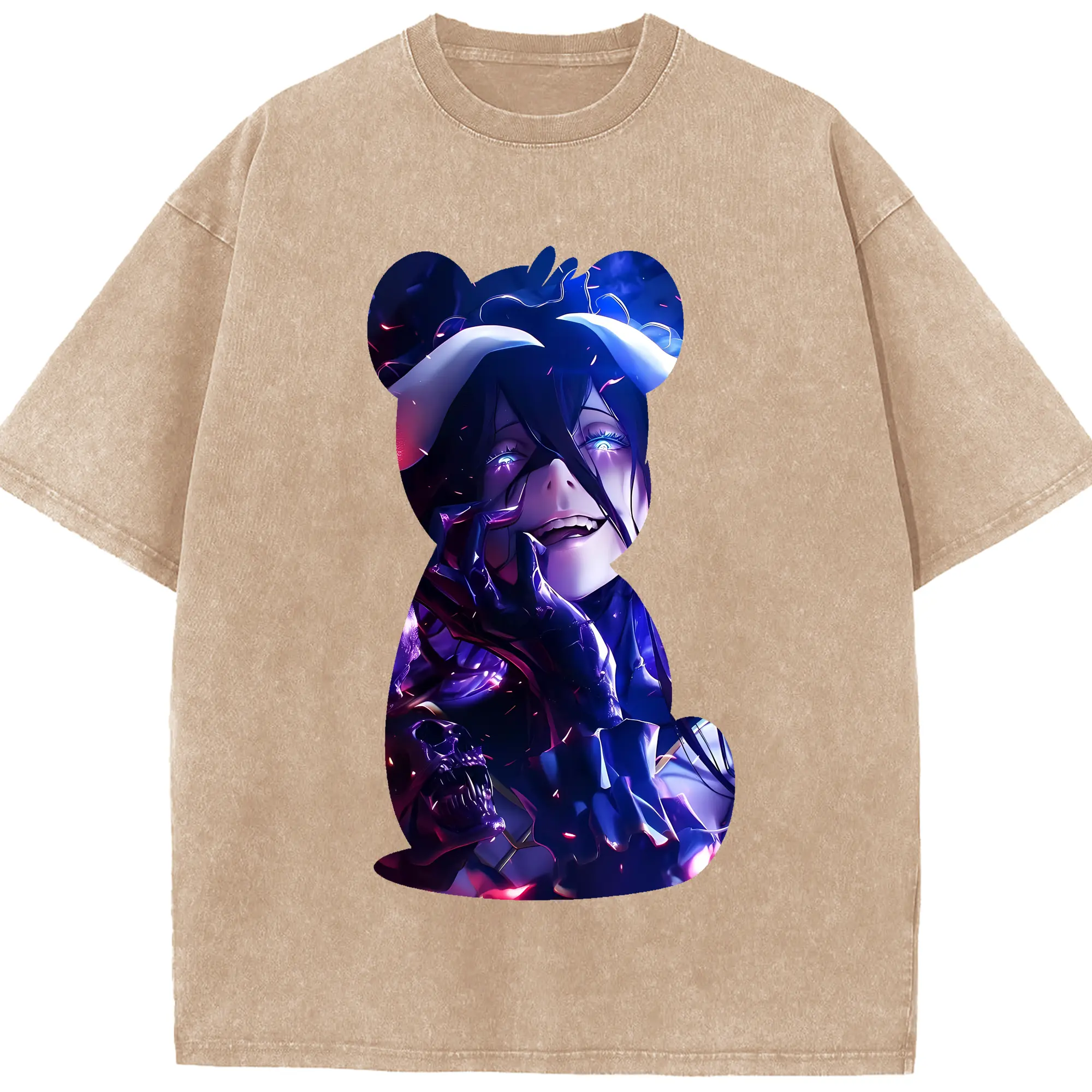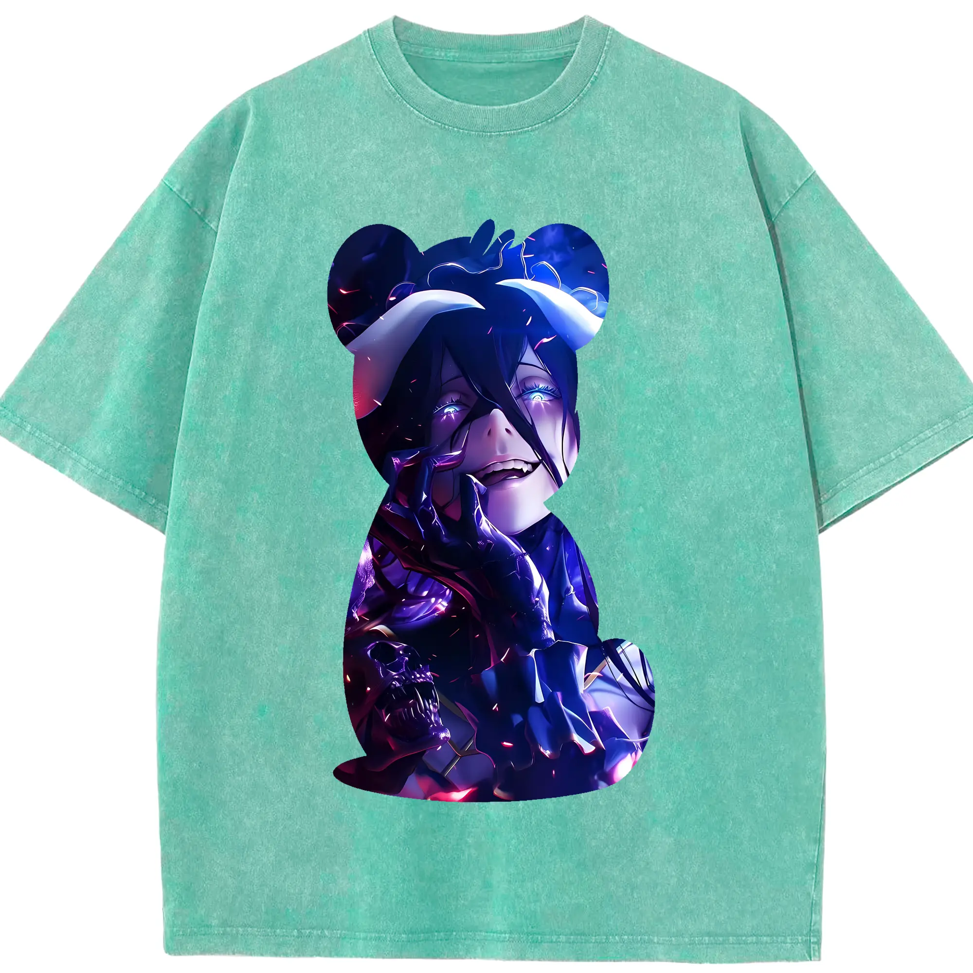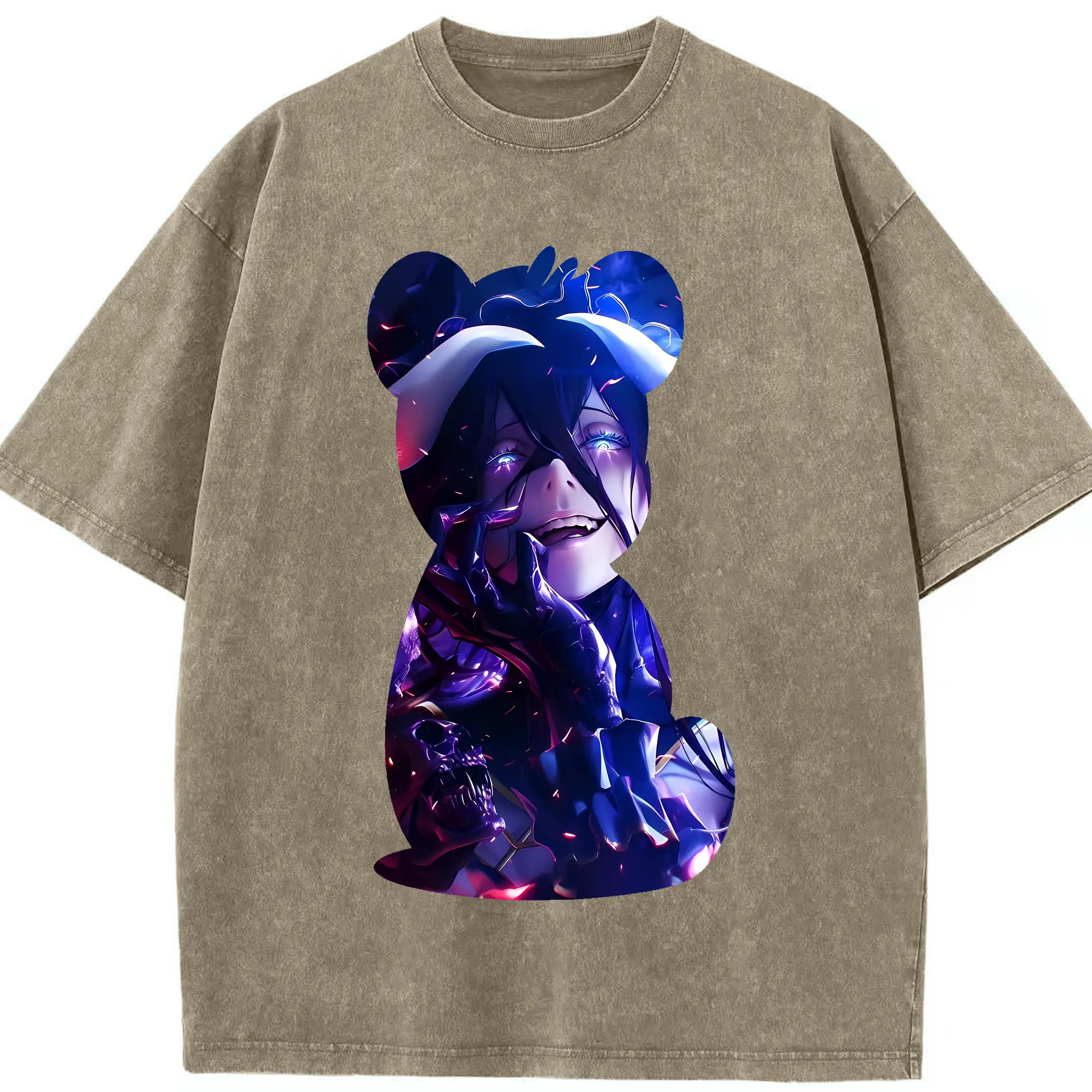 オーバーロード グッズ アルベド - 綿100% ヴィンテージ風 半袖Tシャツ ・ 背面プリント ・ 柔らか肌触り ・ 通気性 快適 ・ スポーツ カジュアル 外出用