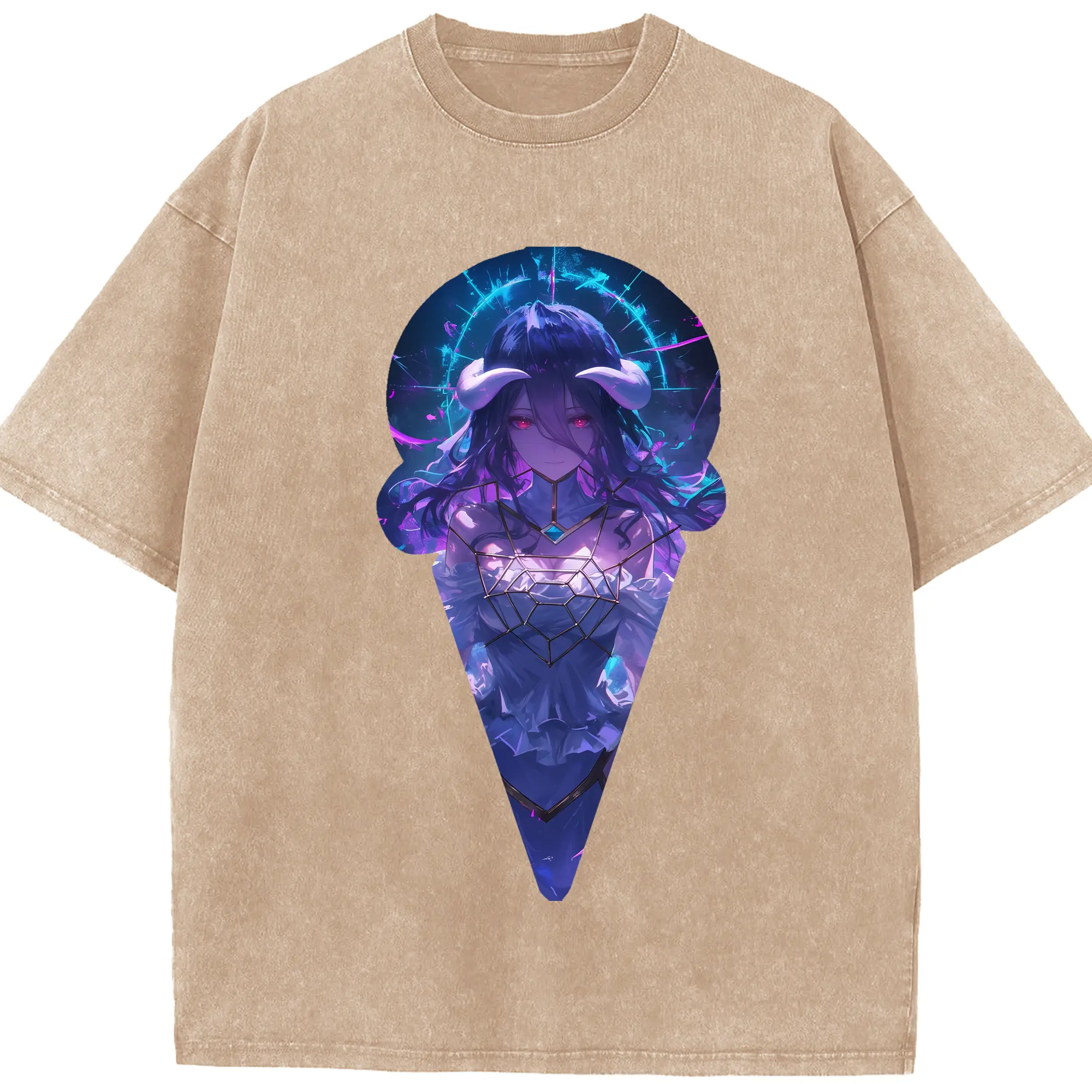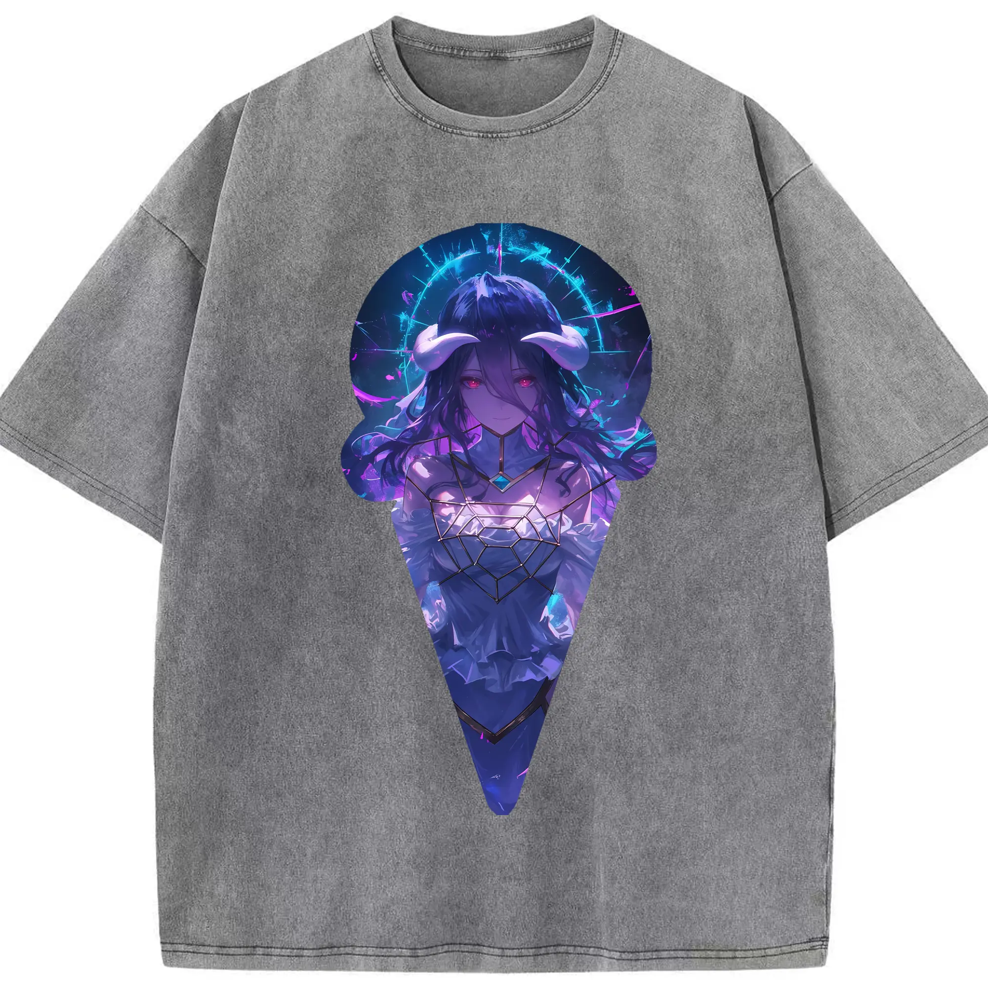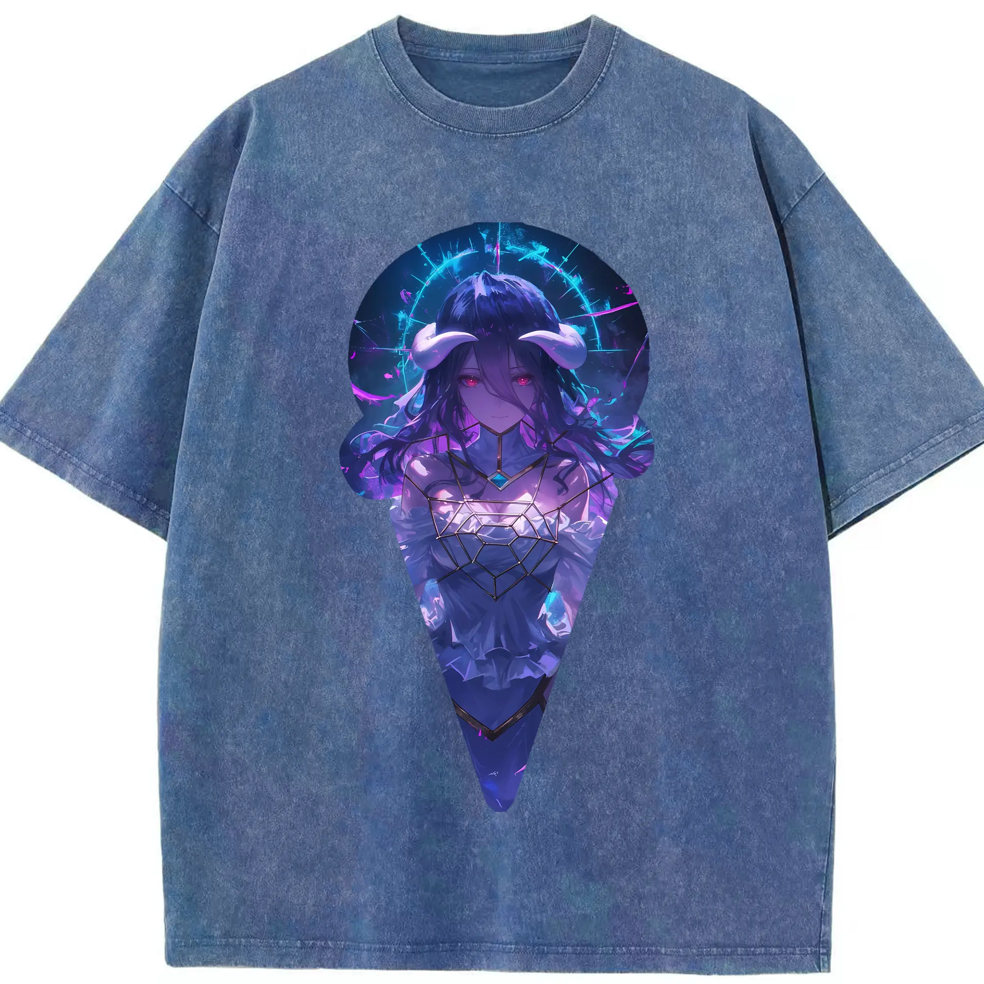 オーバーロード グッズ アルベド - 綿100% ヴィンテージ風 半袖Tシャツ ・ 背面プリント ・ 柔らか肌触り ・ 通気性 快適 ・ スポーツ カジュアル 外出用