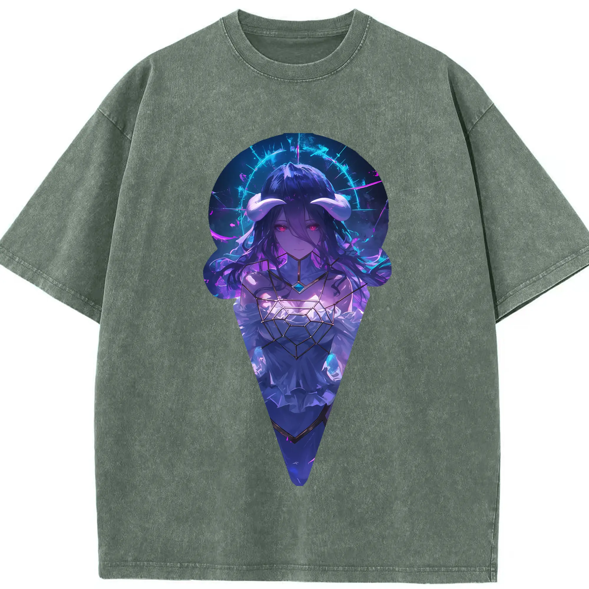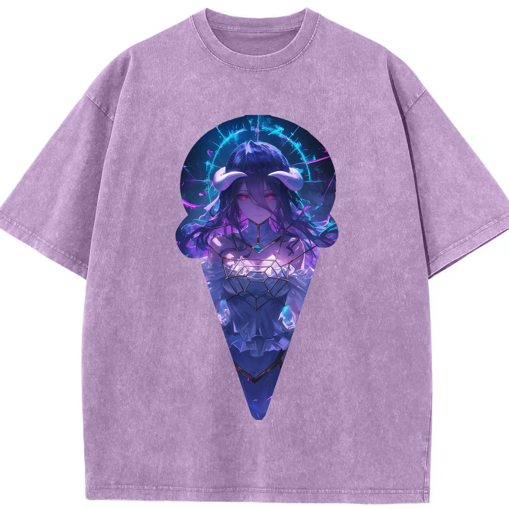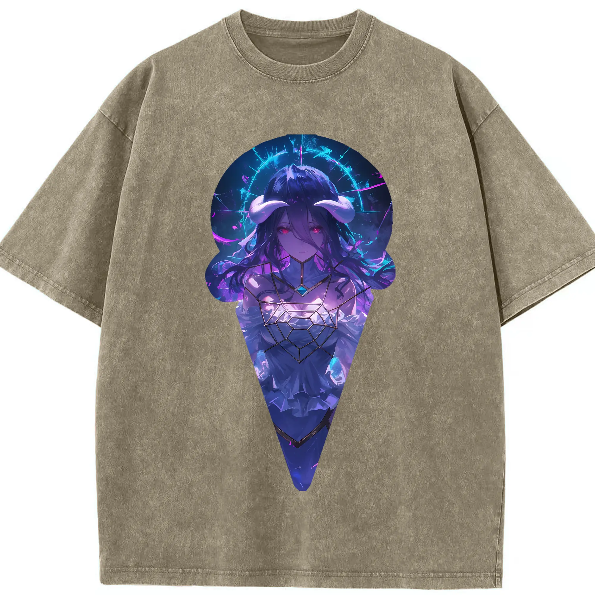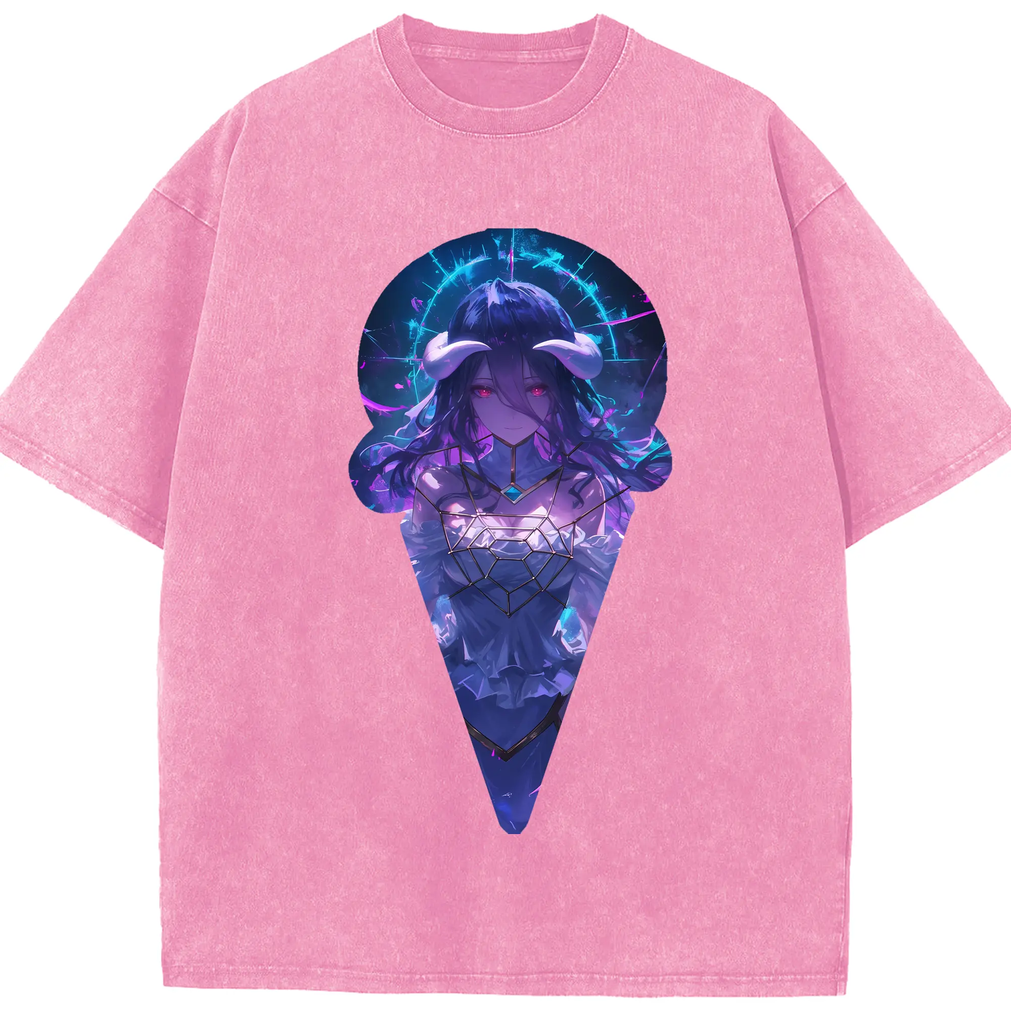 オーバーロード グッズ アルベド - 綿100% ヴィンテージ風 半袖Tシャツ ・ 背面プリント ・ 柔らか肌触り ・ 通気性 快適 ・ スポーツ カジュアル 外出用