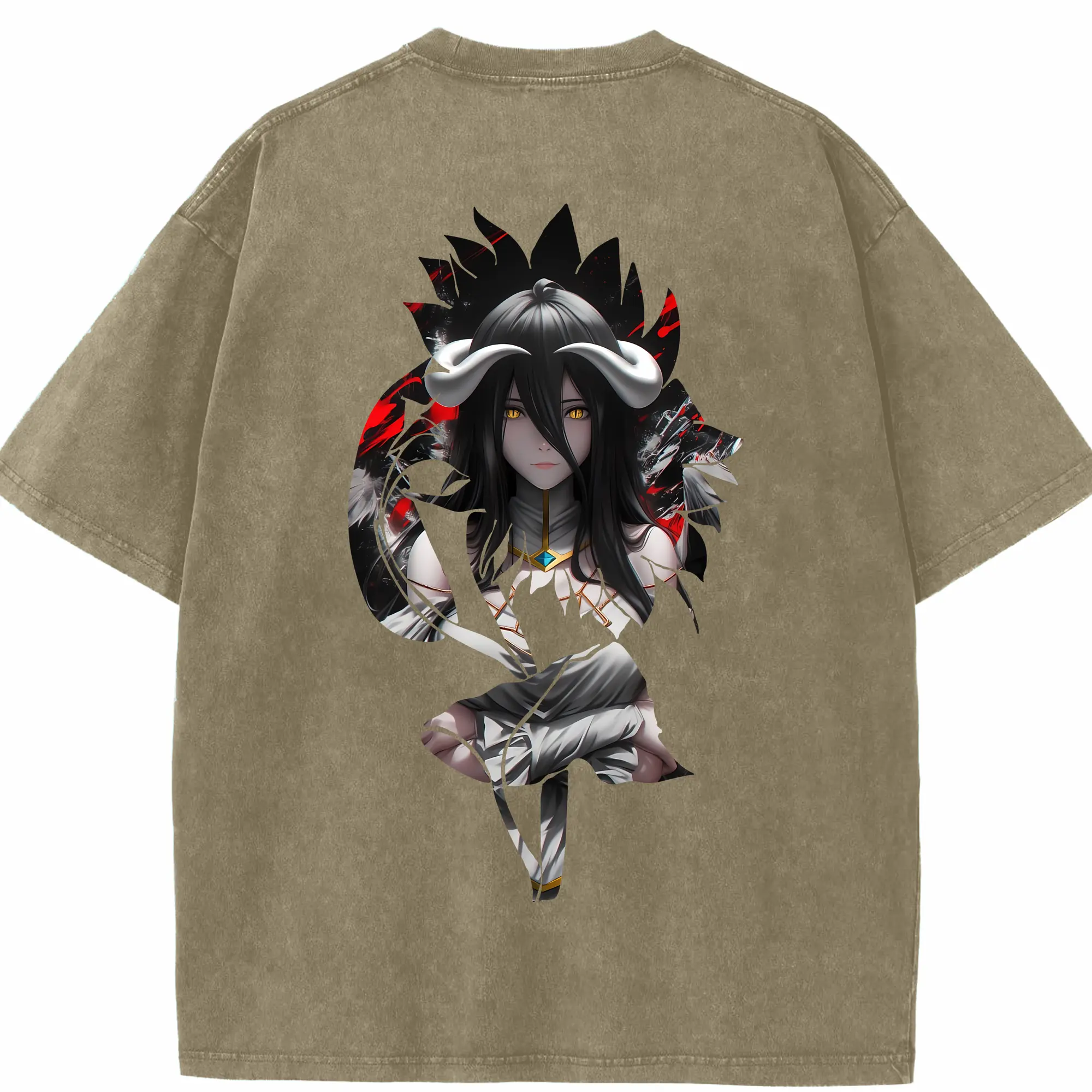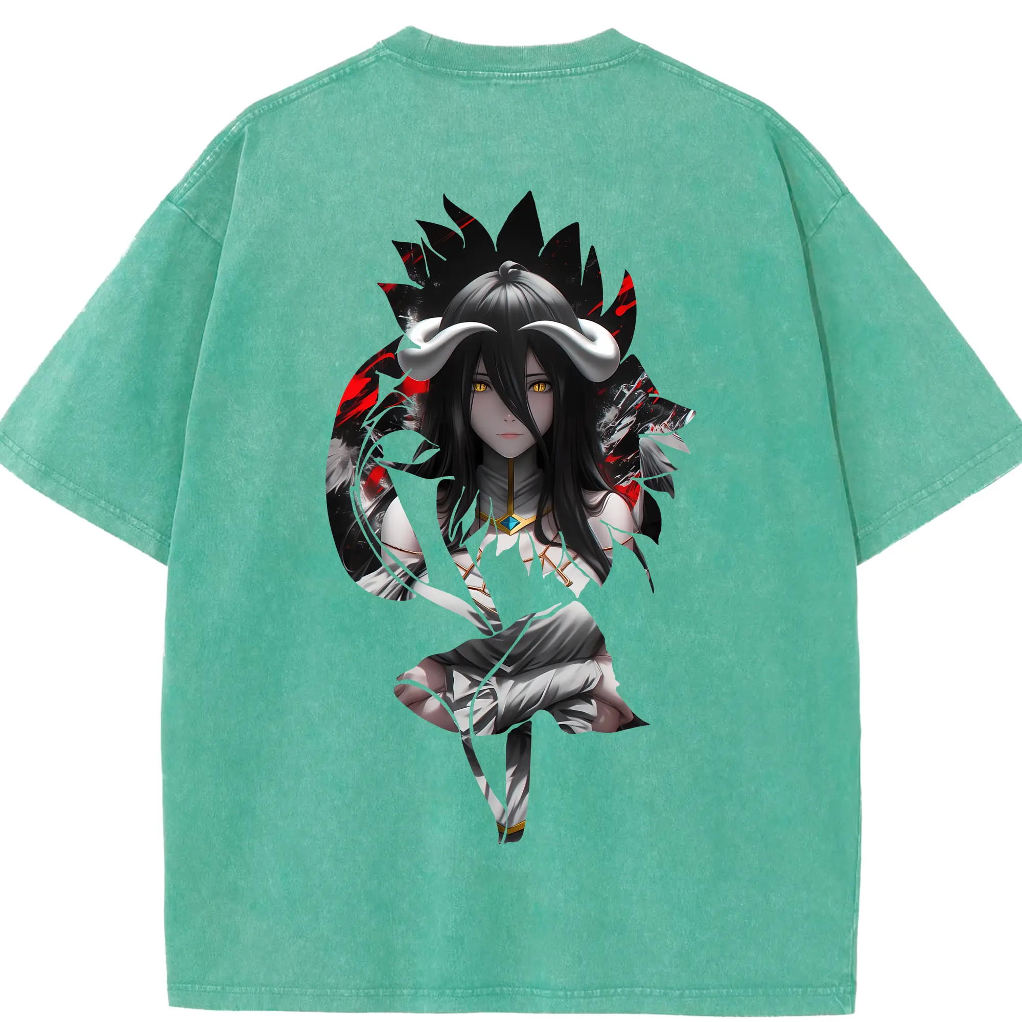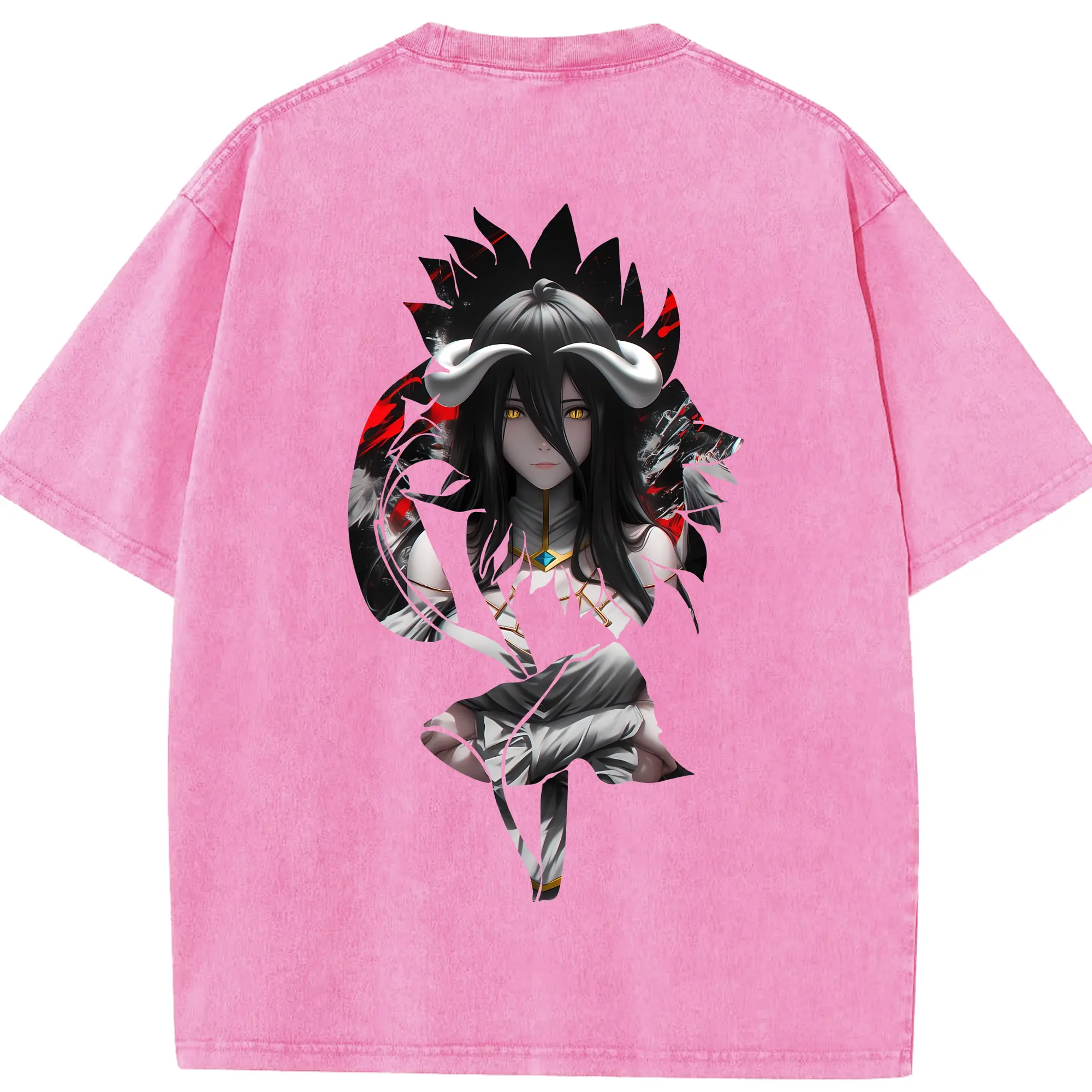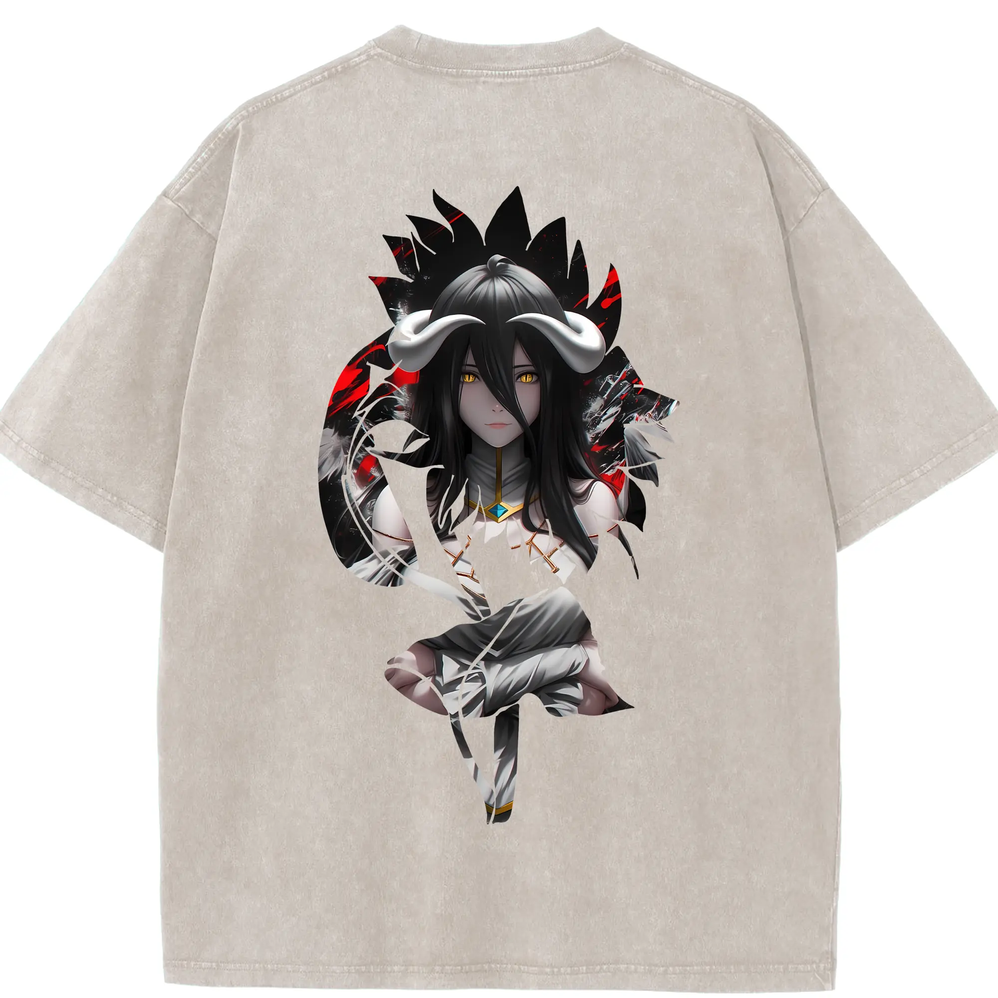 オーバーロード グッズ アルベド - 綿100% ヴィンテージ風 半袖Tシャツ ・ フロントプリント ・ 柔らか肌触り ・ 通気性 快適 ・ スポーツ カジュアル 外出用