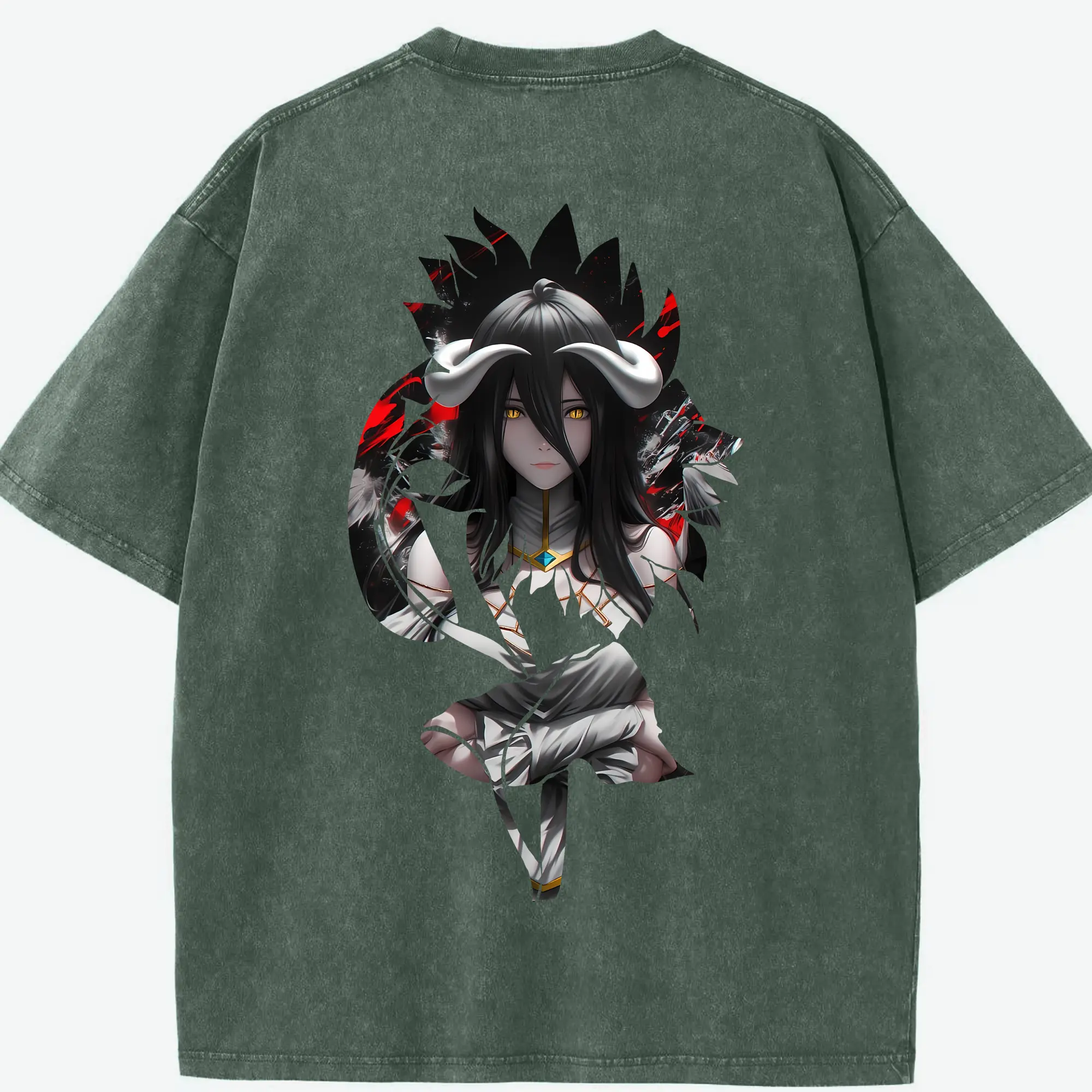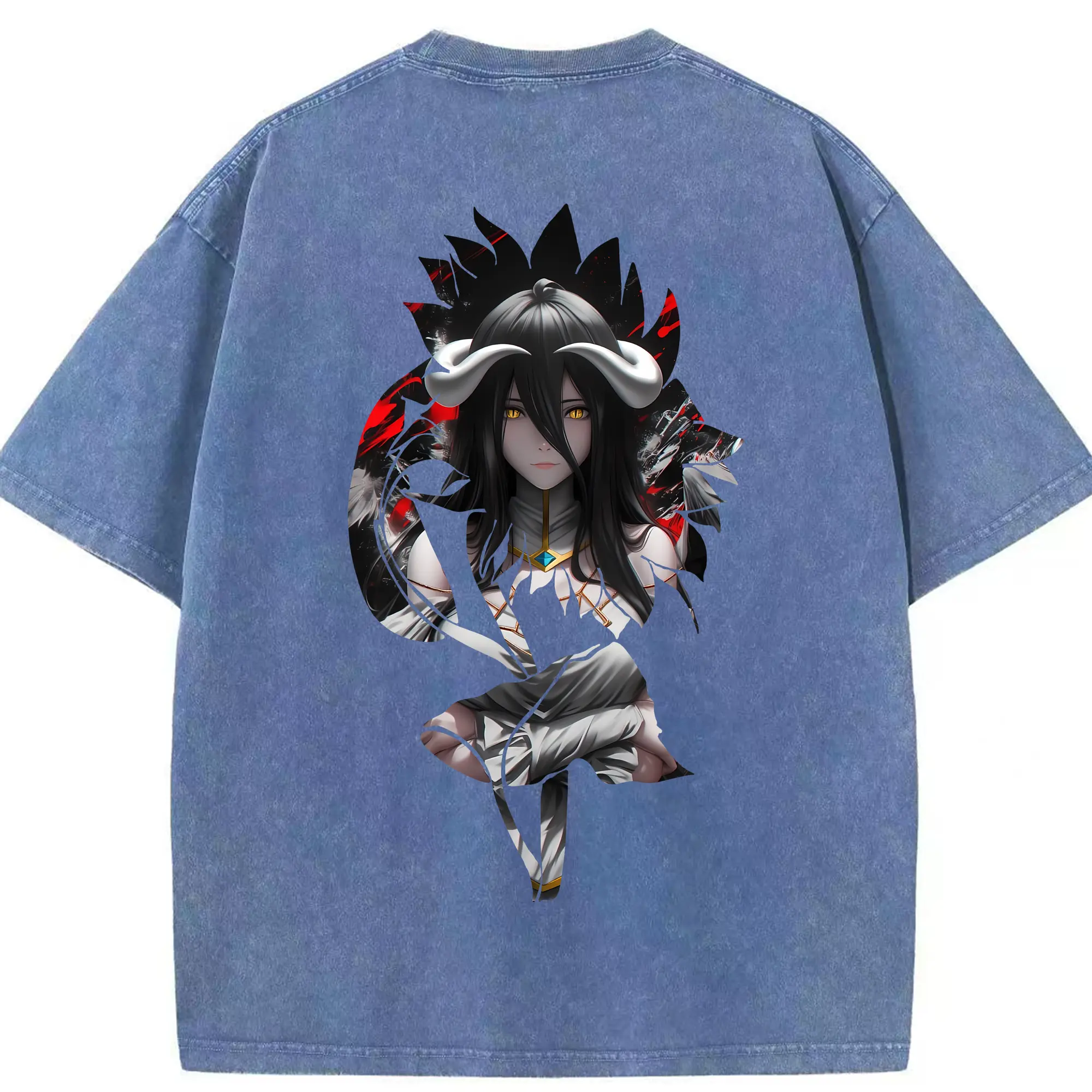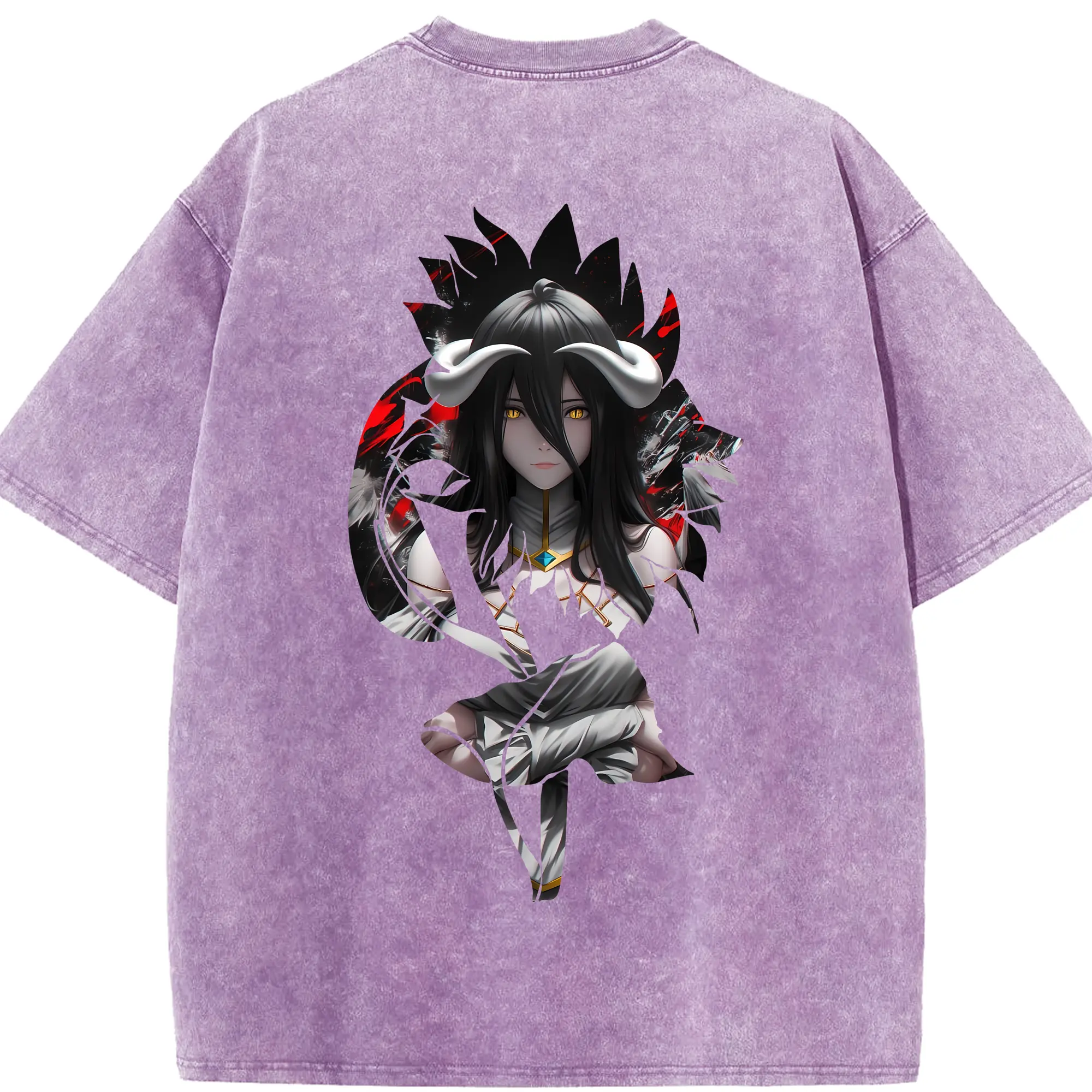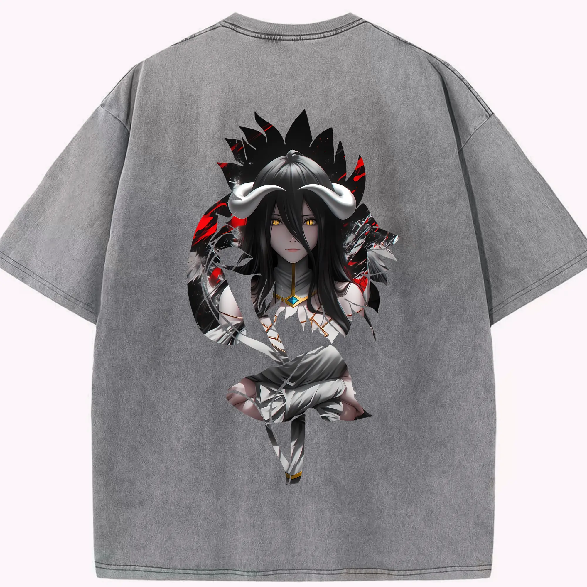 オーバーロード グッズ アルベド - 綿100% ヴィンテージ風 半袖Tシャツ ・ フロントプリント ・ 柔らか肌触り ・ 通気性 快適 ・ スポーツ カジュアル 外出用