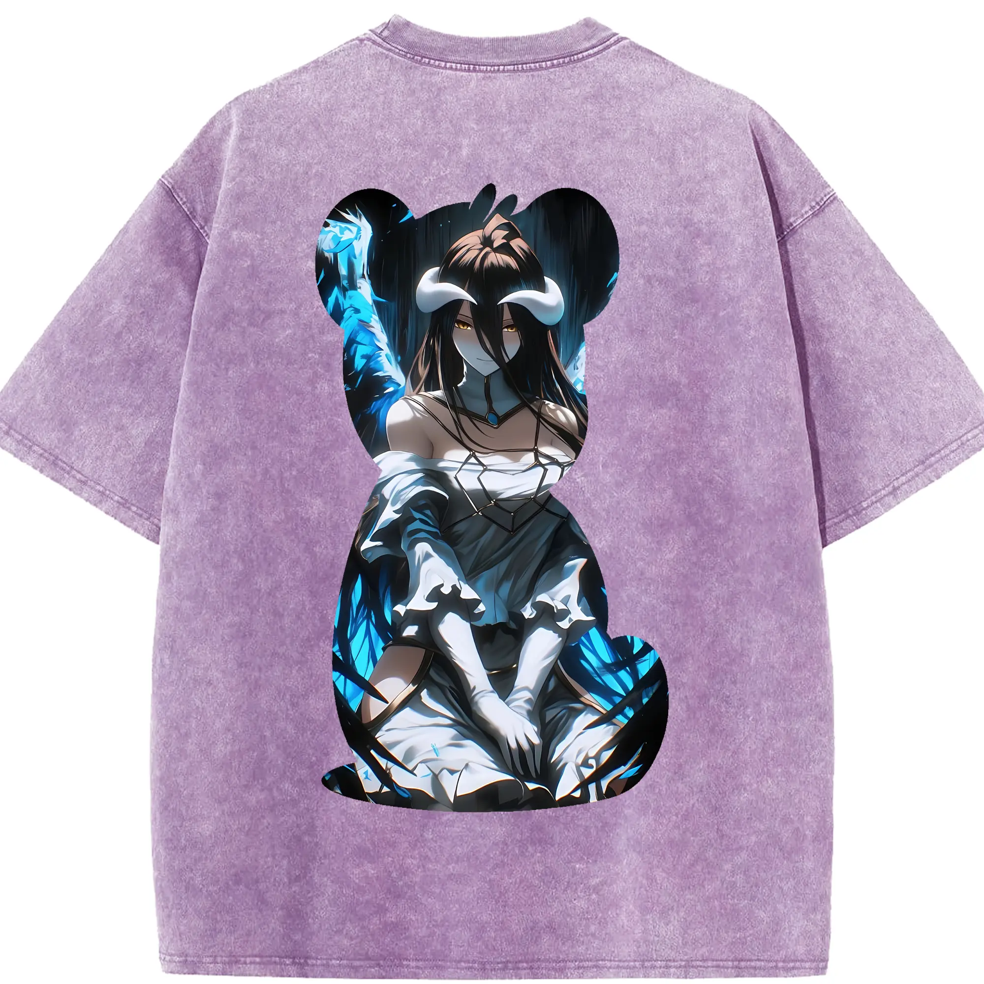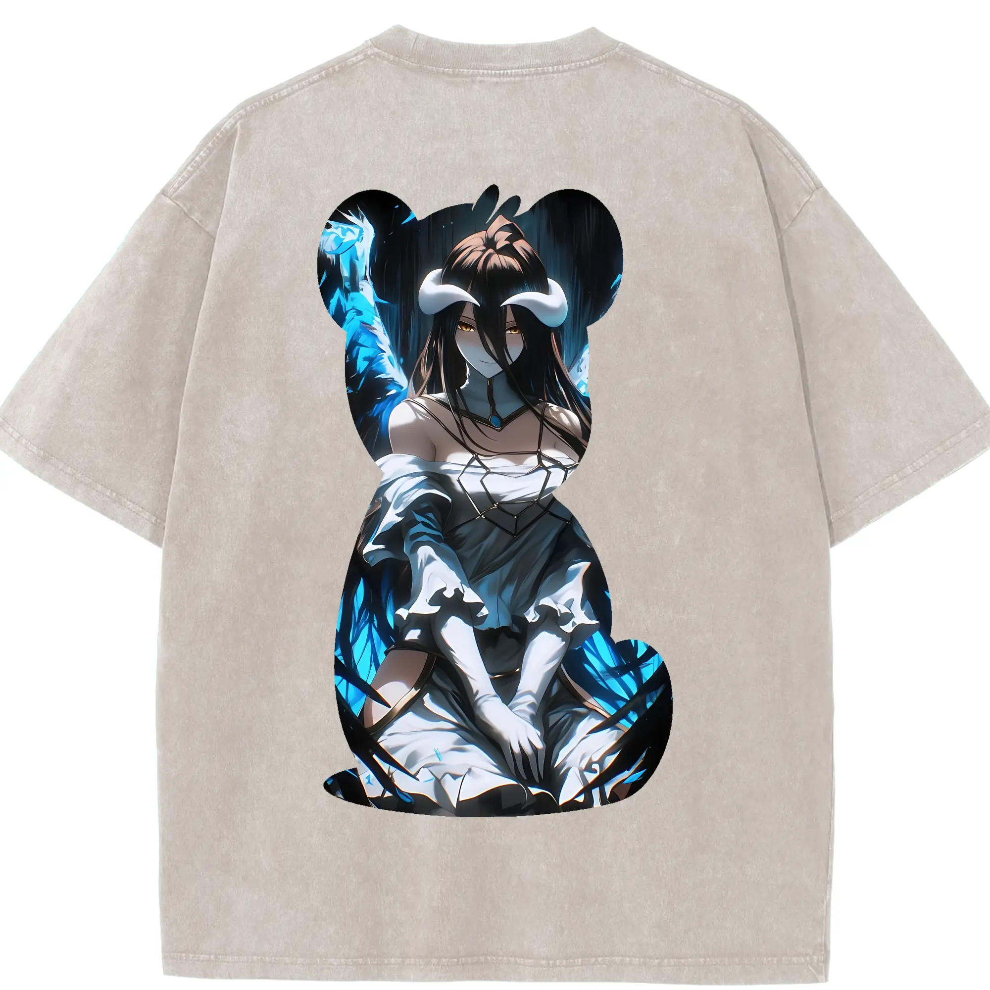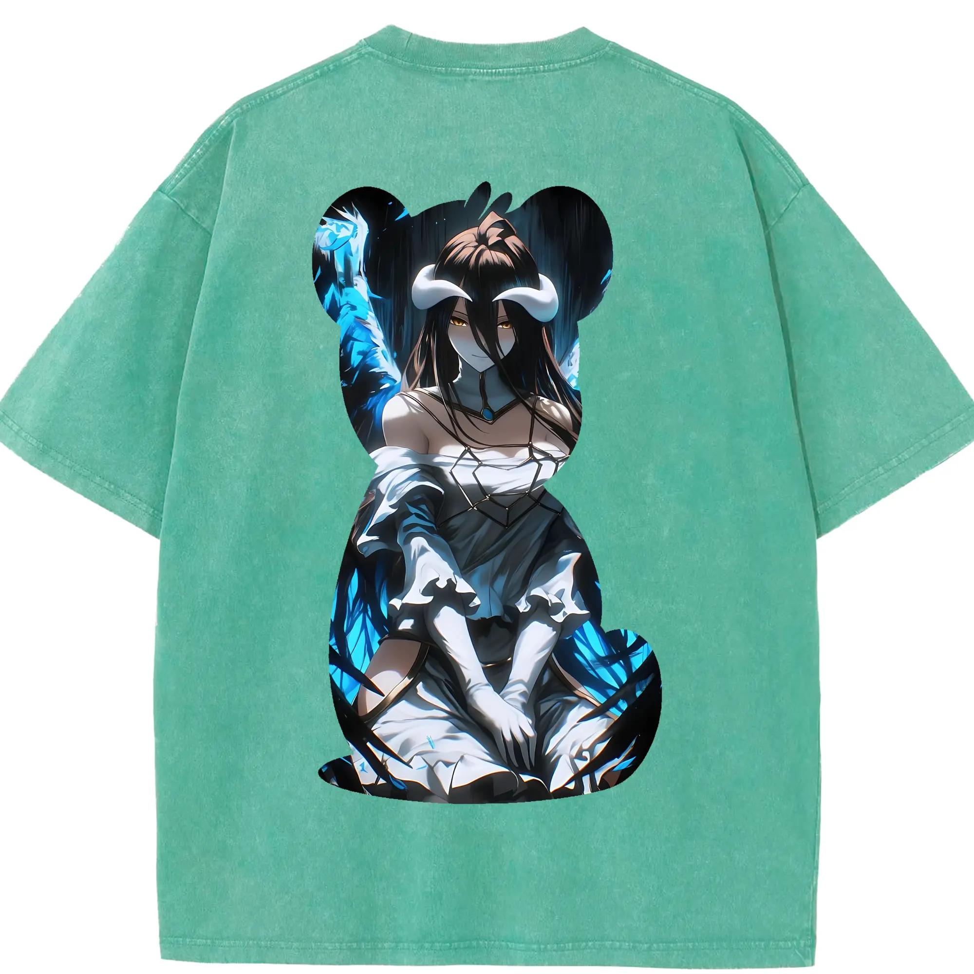 オーバーロード グッズ アルベド - 綿100% ヴィンテージ風 半袖Tシャツ ・ フロントプリント ・ 柔らか肌触り ・ 通気性 快適 ・ スポーツ カジュアル 外出用