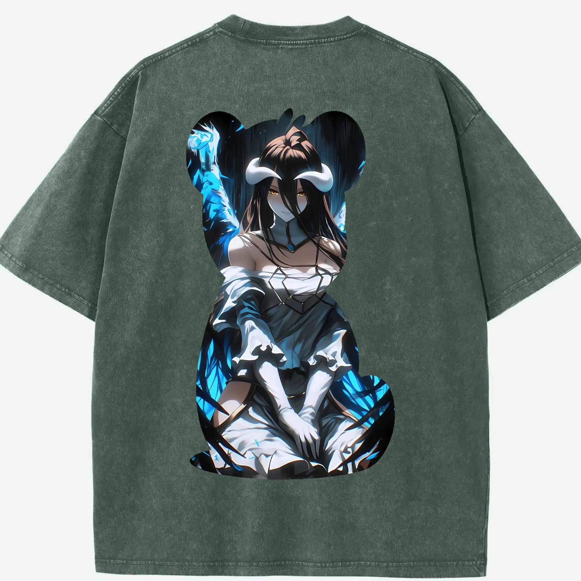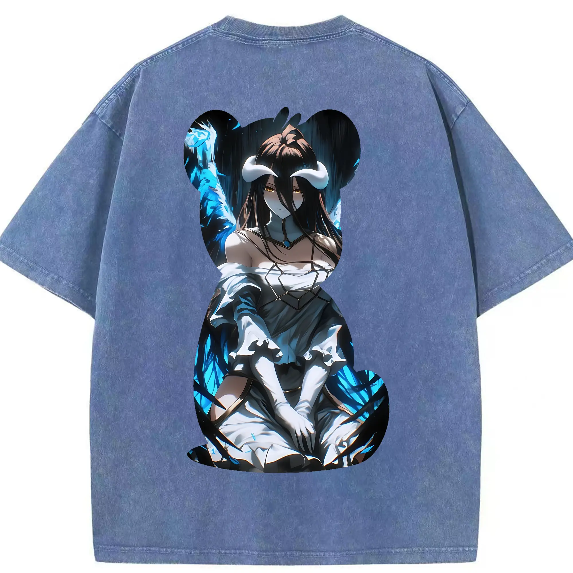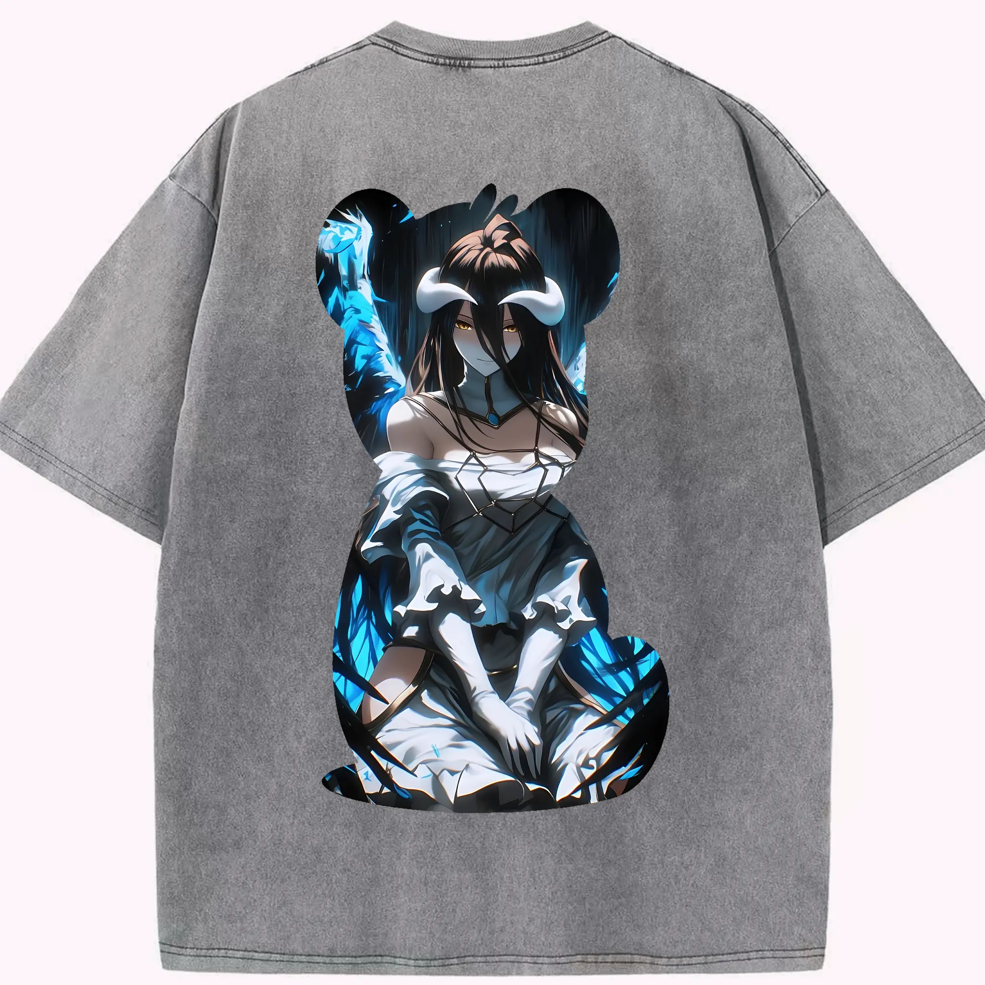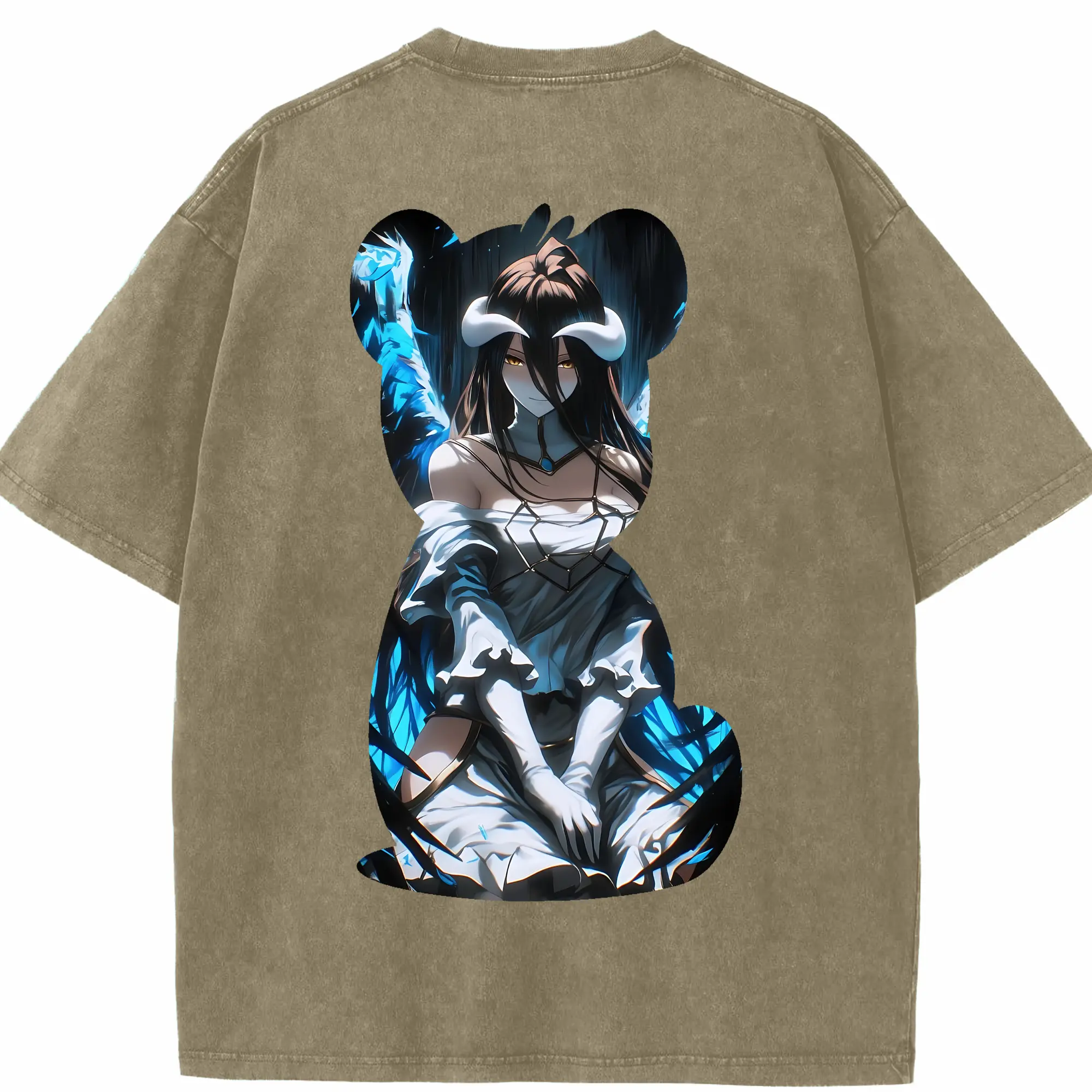 オーバーロード グッズ アルベド - 綿100% ヴィンテージ風 半袖Tシャツ ・ フロントプリント ・ 柔らか肌触り ・ 通気性 快適 ・ スポーツ カジュアル 外出用