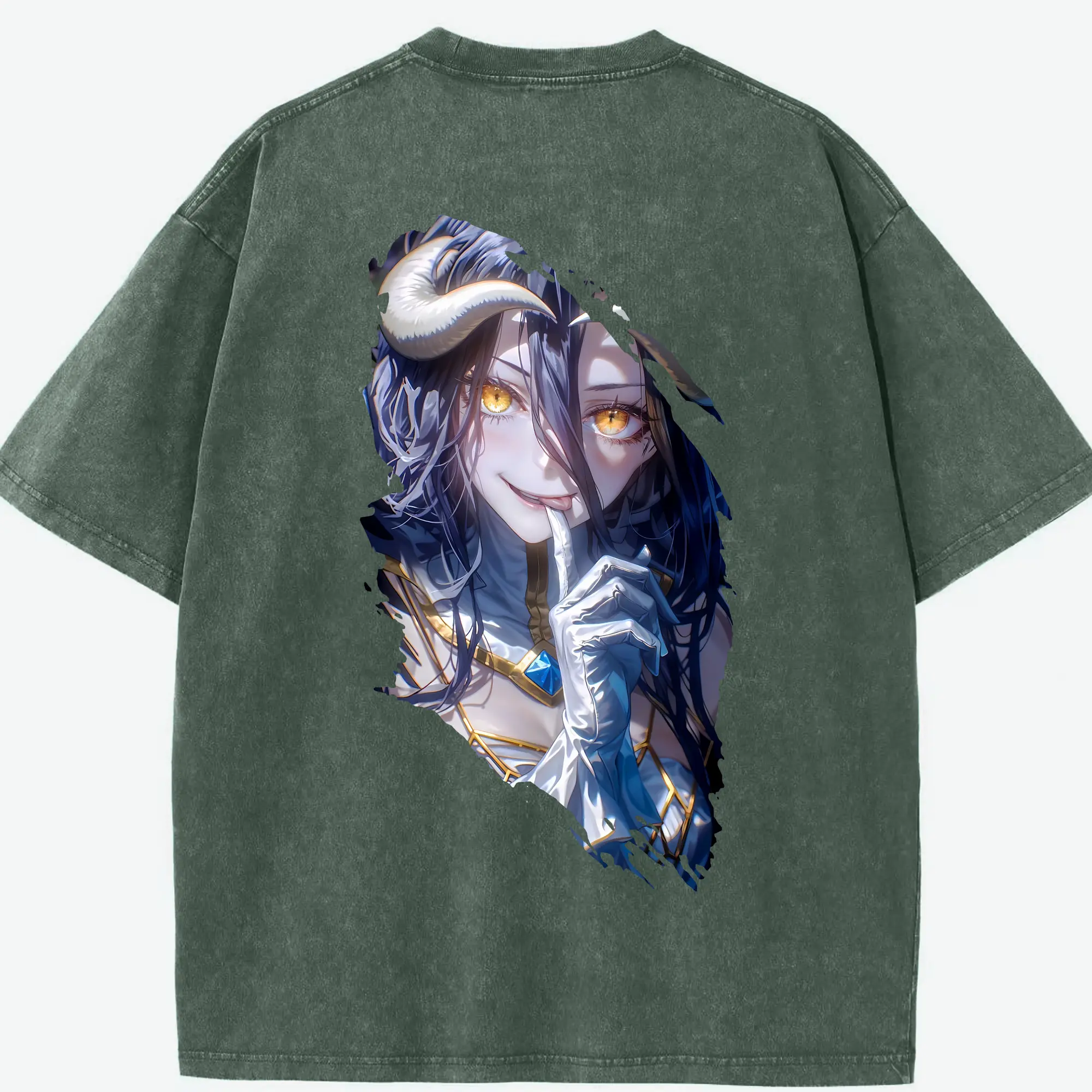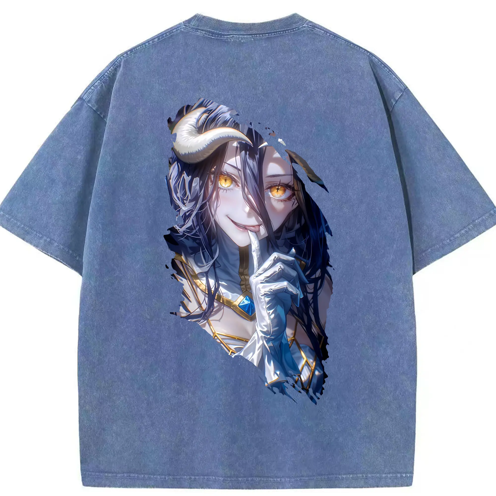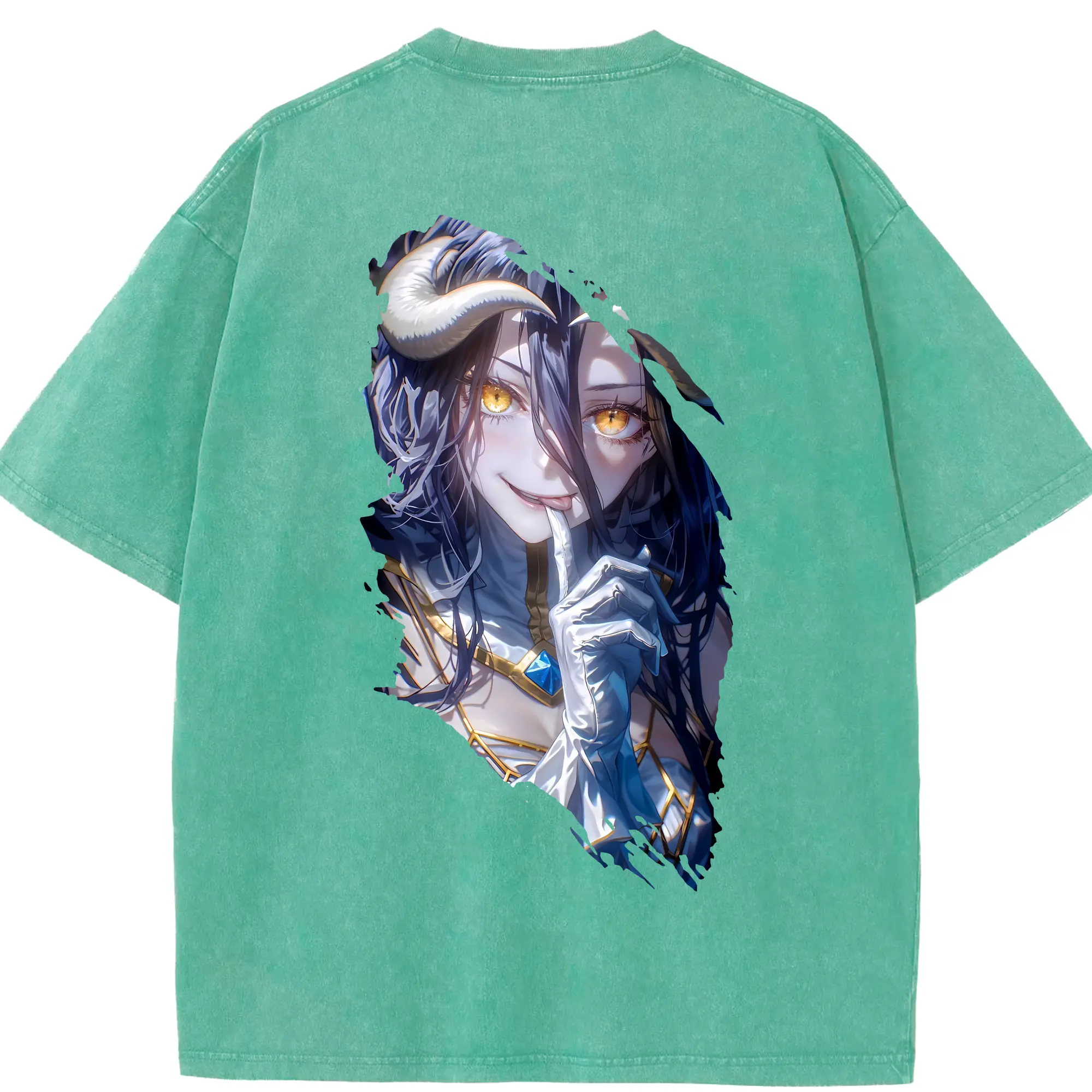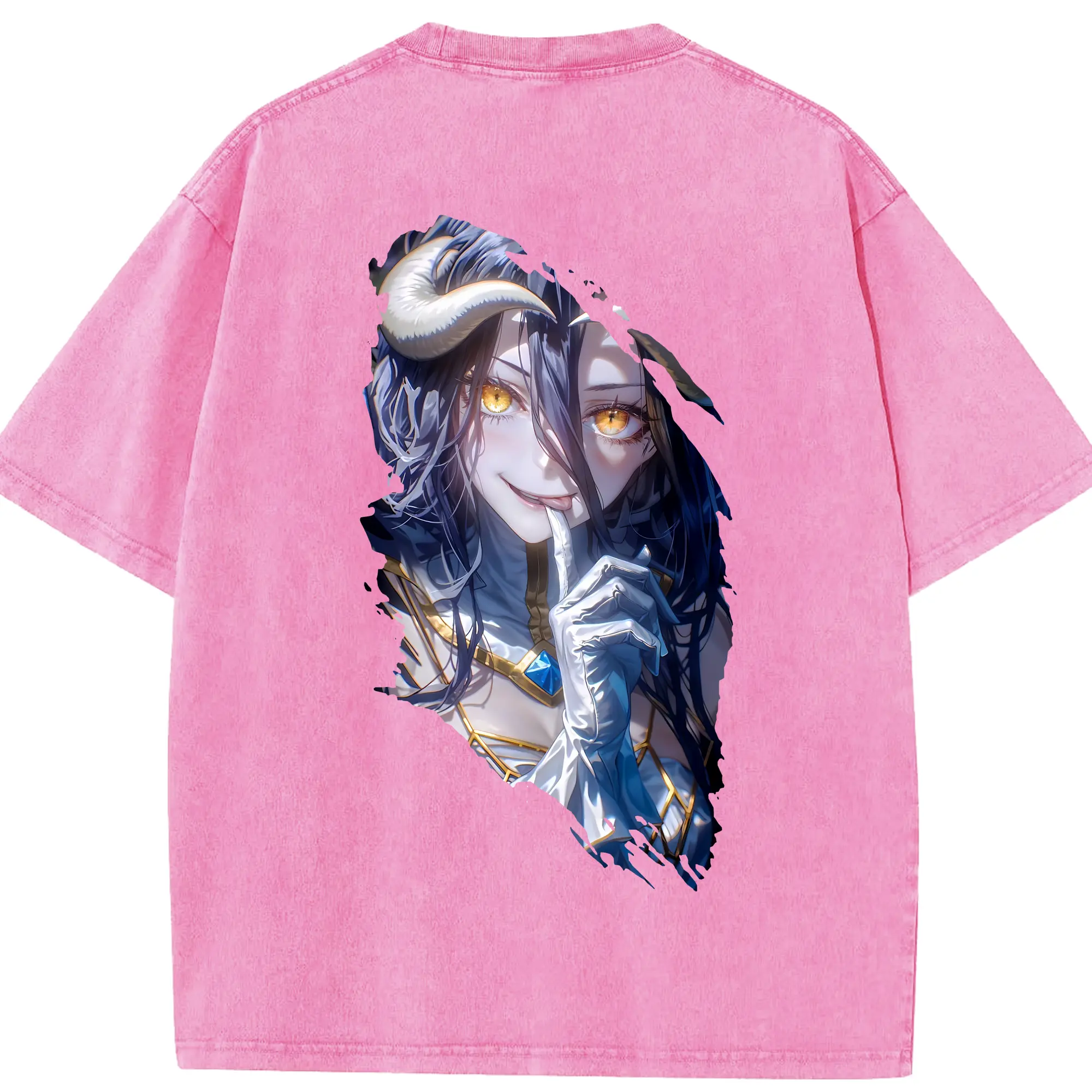 オーバーロード グッズ アルベド - 綿100% ヴィンテージ風 半袖Tシャツ ・ フロントプリント ・ 柔らか肌触り ・ 通気性 快適 ・ スポーツ カジュアル 外出用