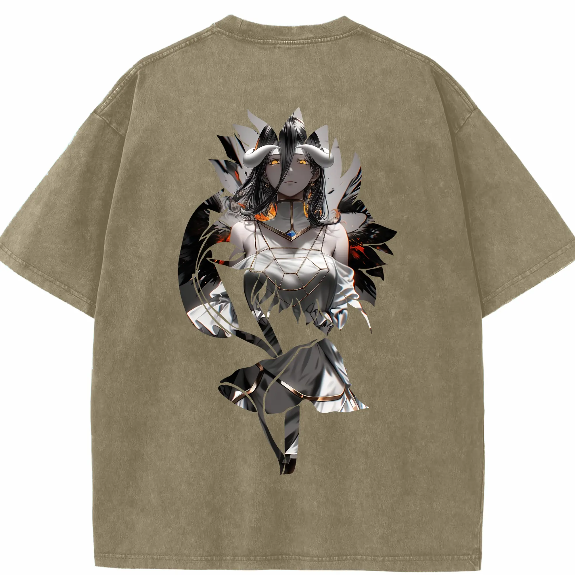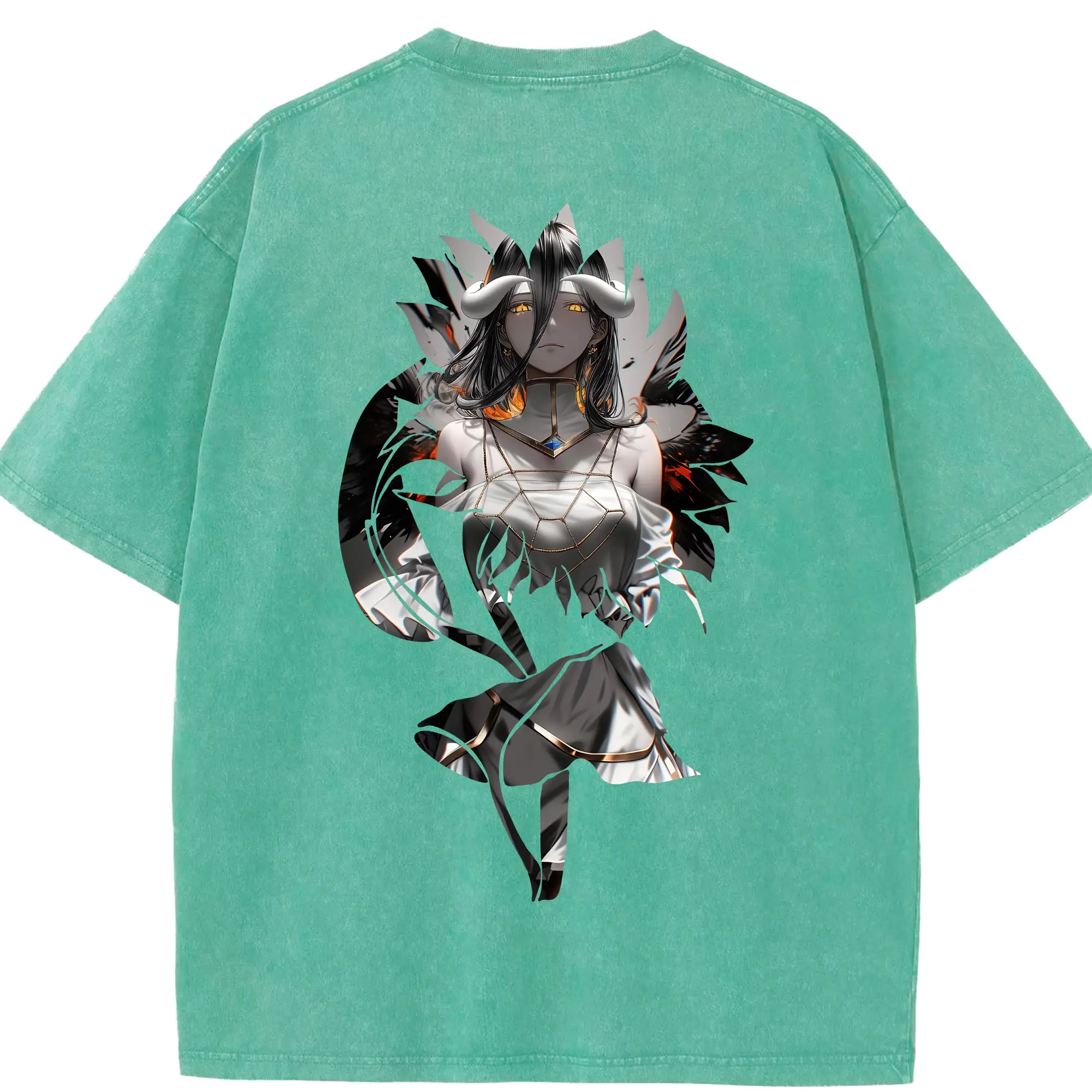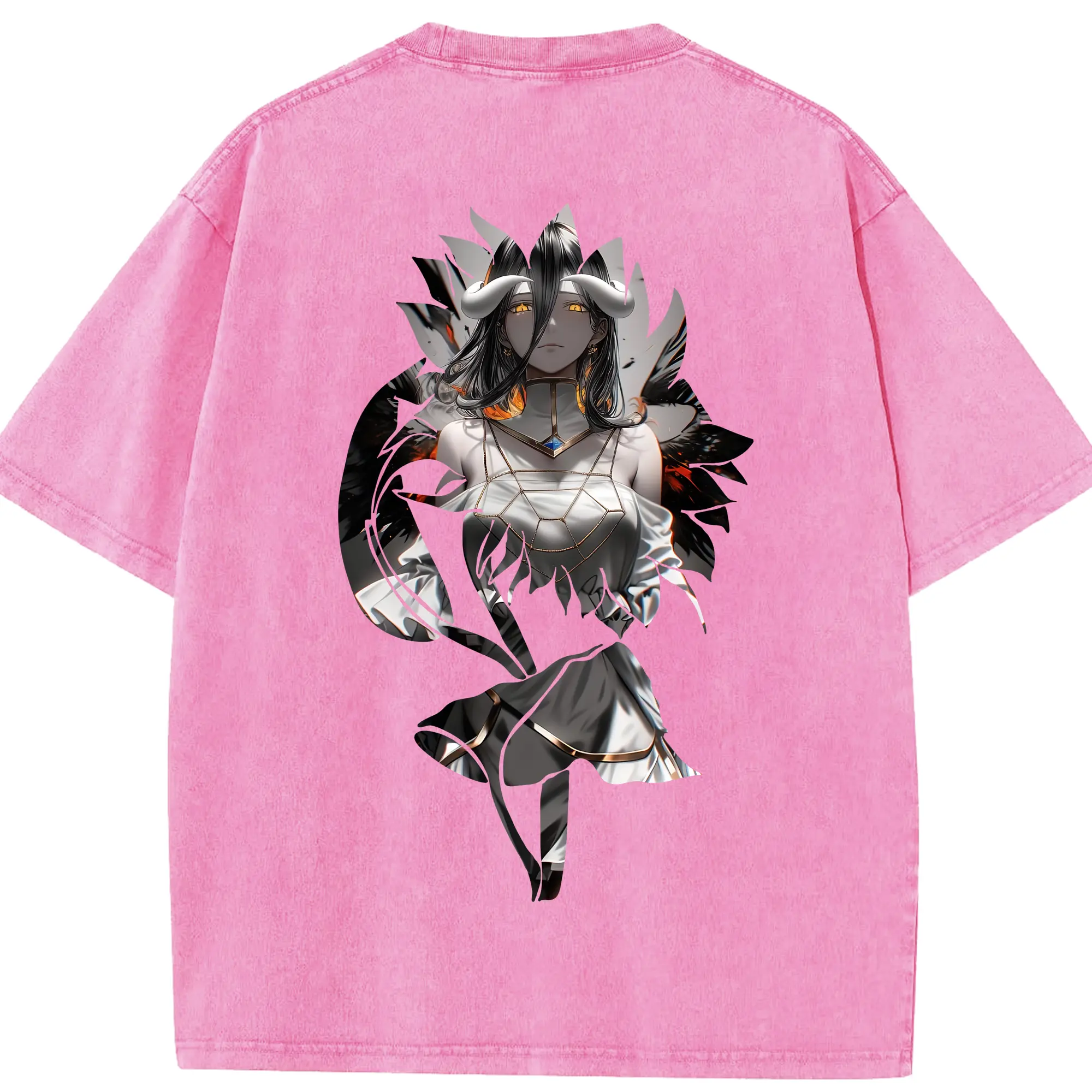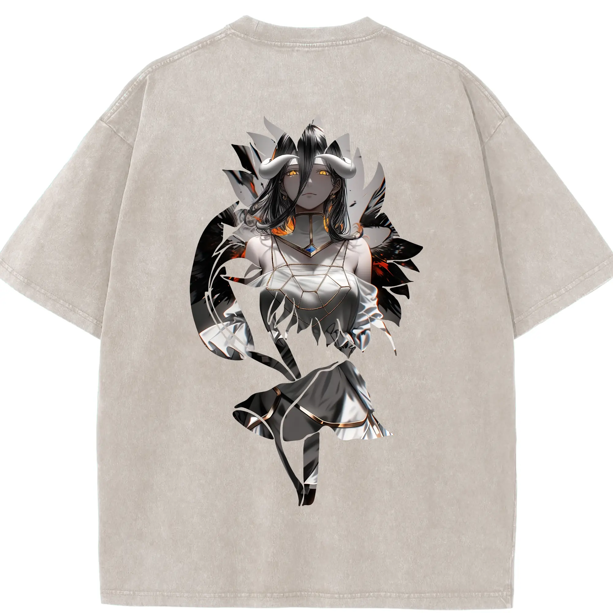 オーバーロード グッズ アルベド - 綿100% ヴィンテージ風 半袖Tシャツ ・ フロントプリント ・ 柔らか肌触り ・ 通気性 快適 ・ スポーツ カジュアル 外出用