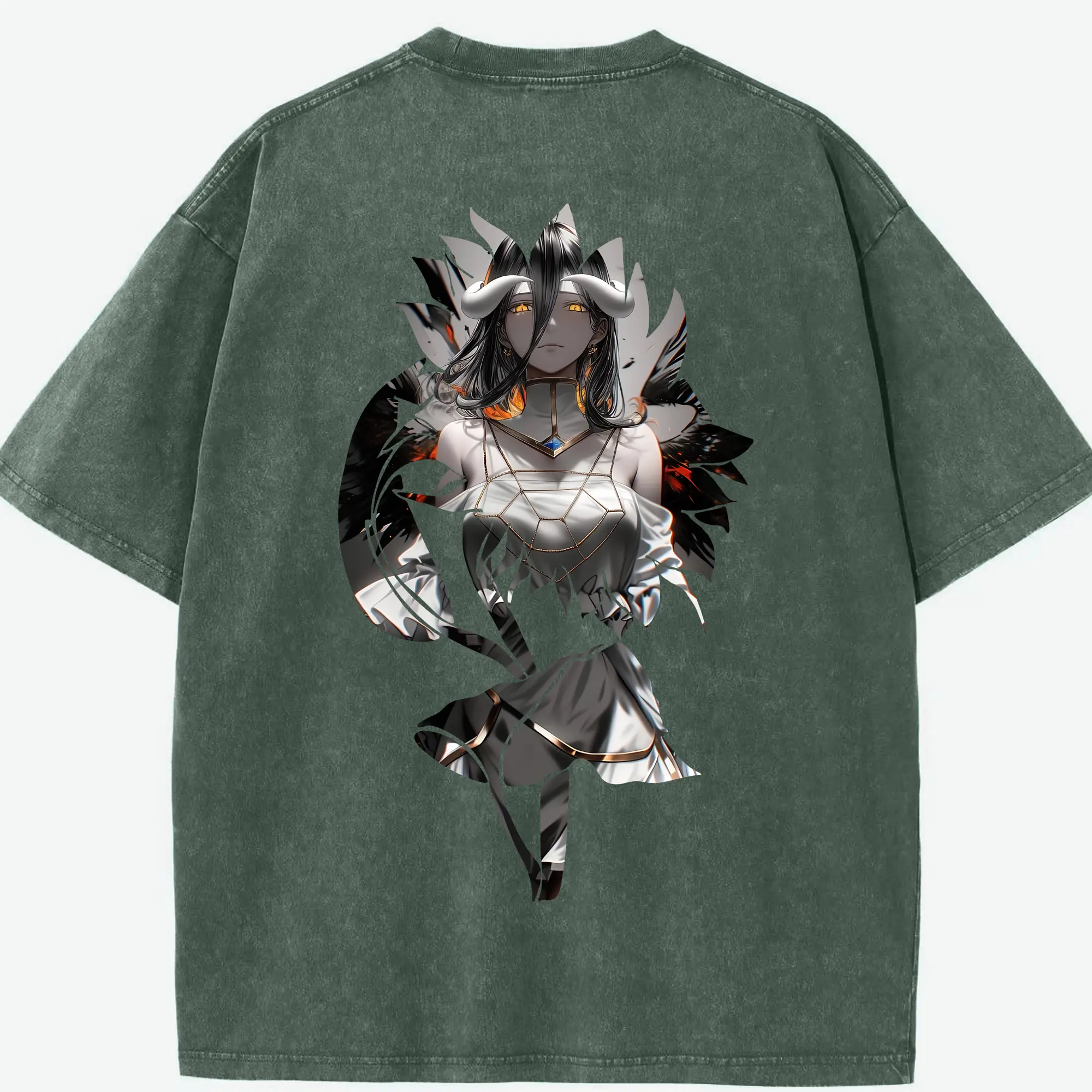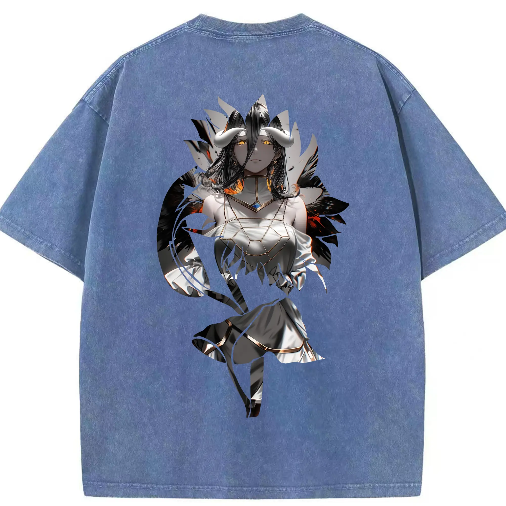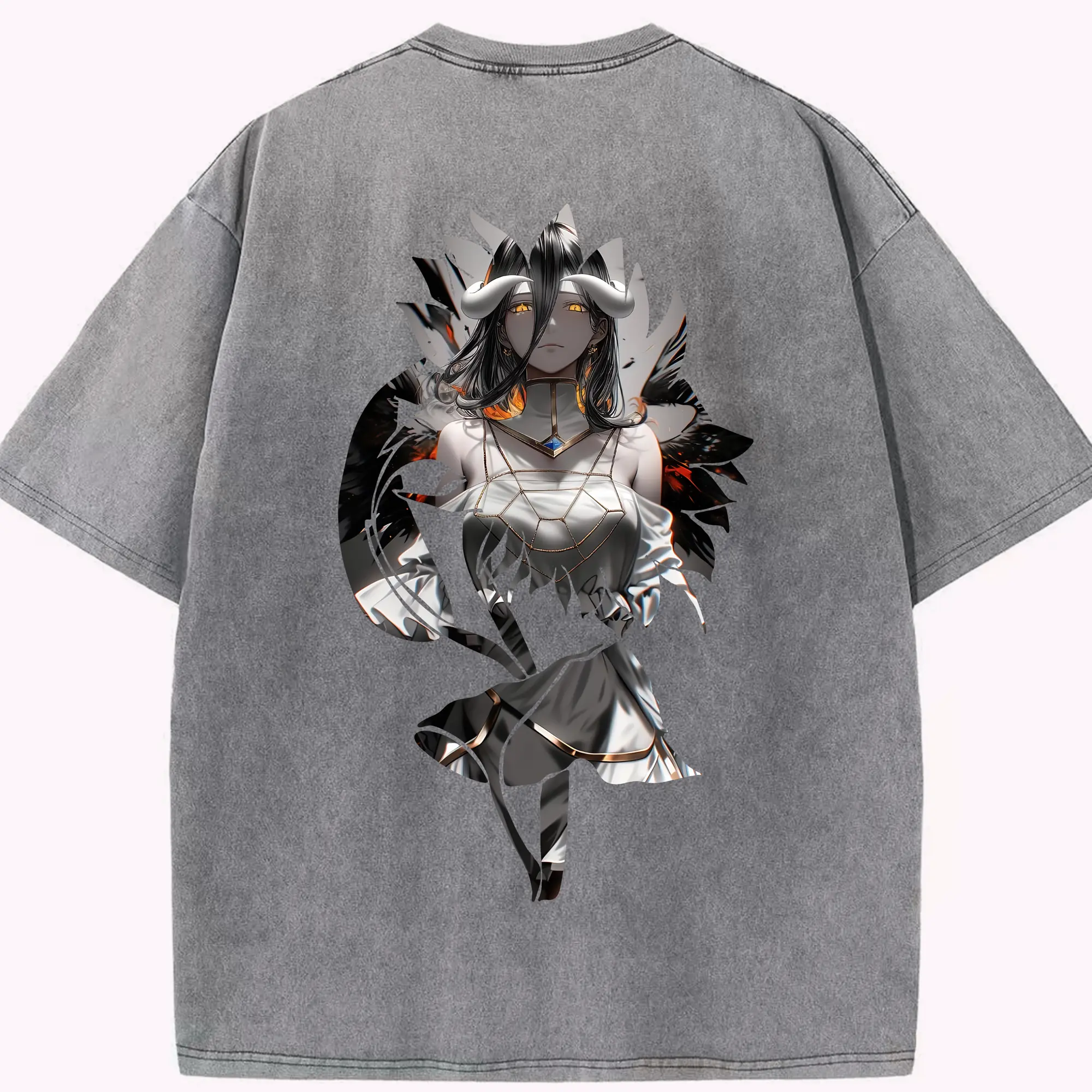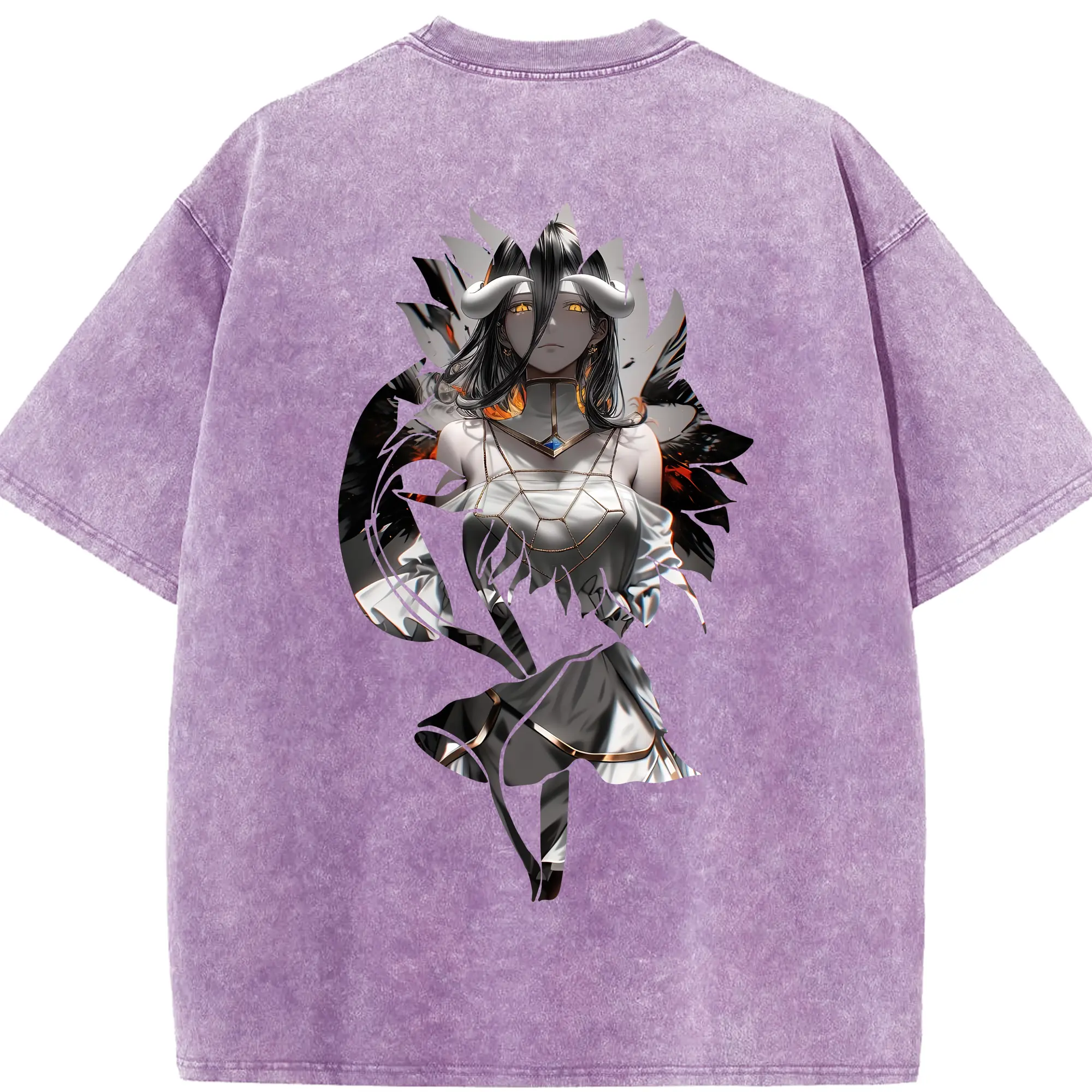 オーバーロード グッズ アルベド - 綿100% ヴィンテージ風 半袖Tシャツ ・ フロントプリント ・ 柔らか肌触り ・ 通気性 快適 ・ スポーツ カジュアル 外出用