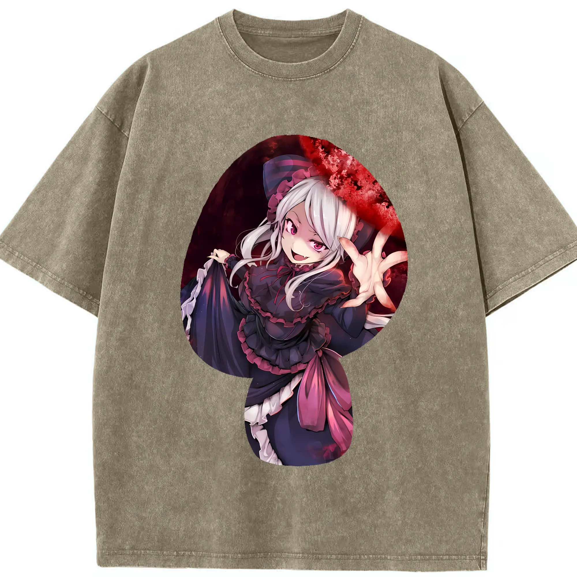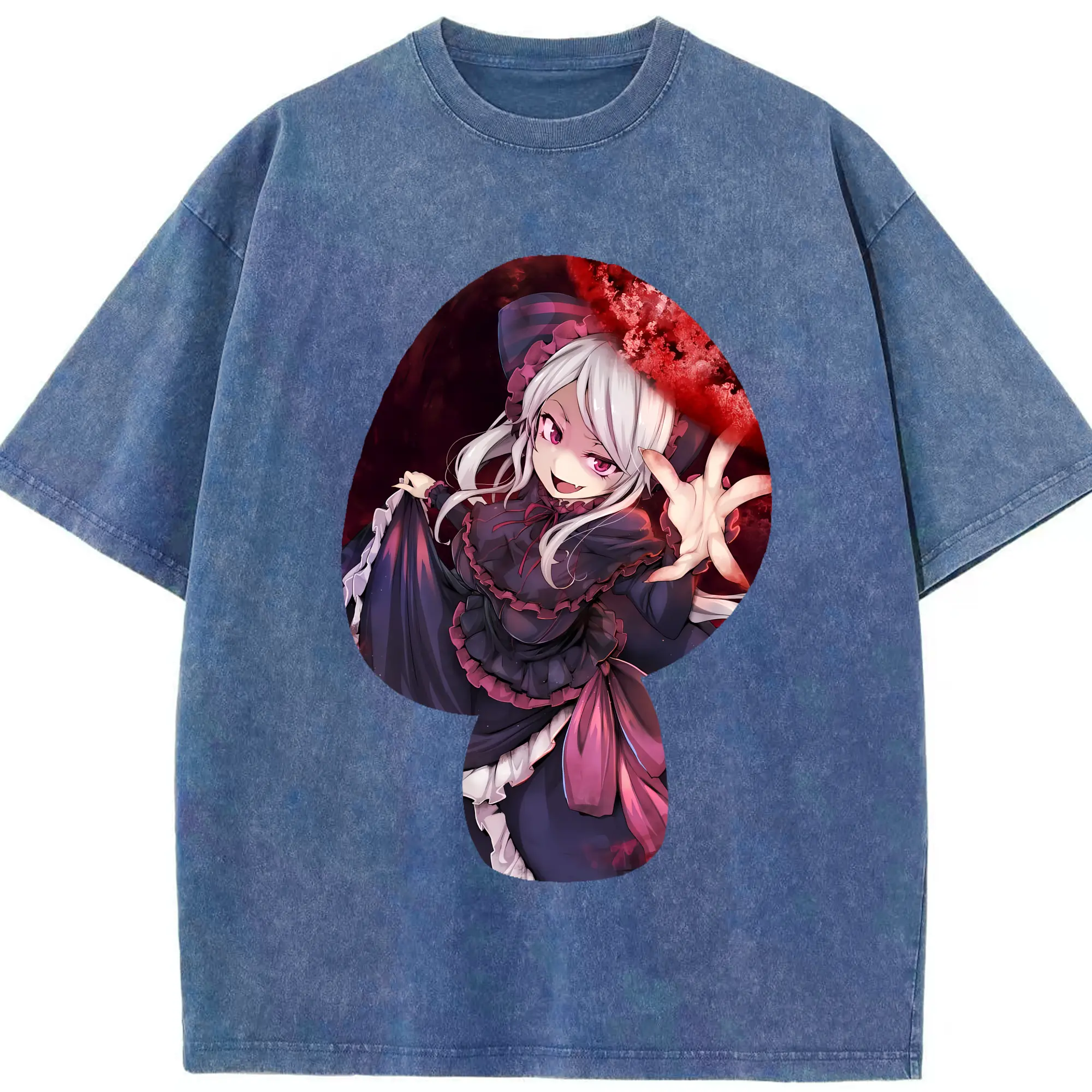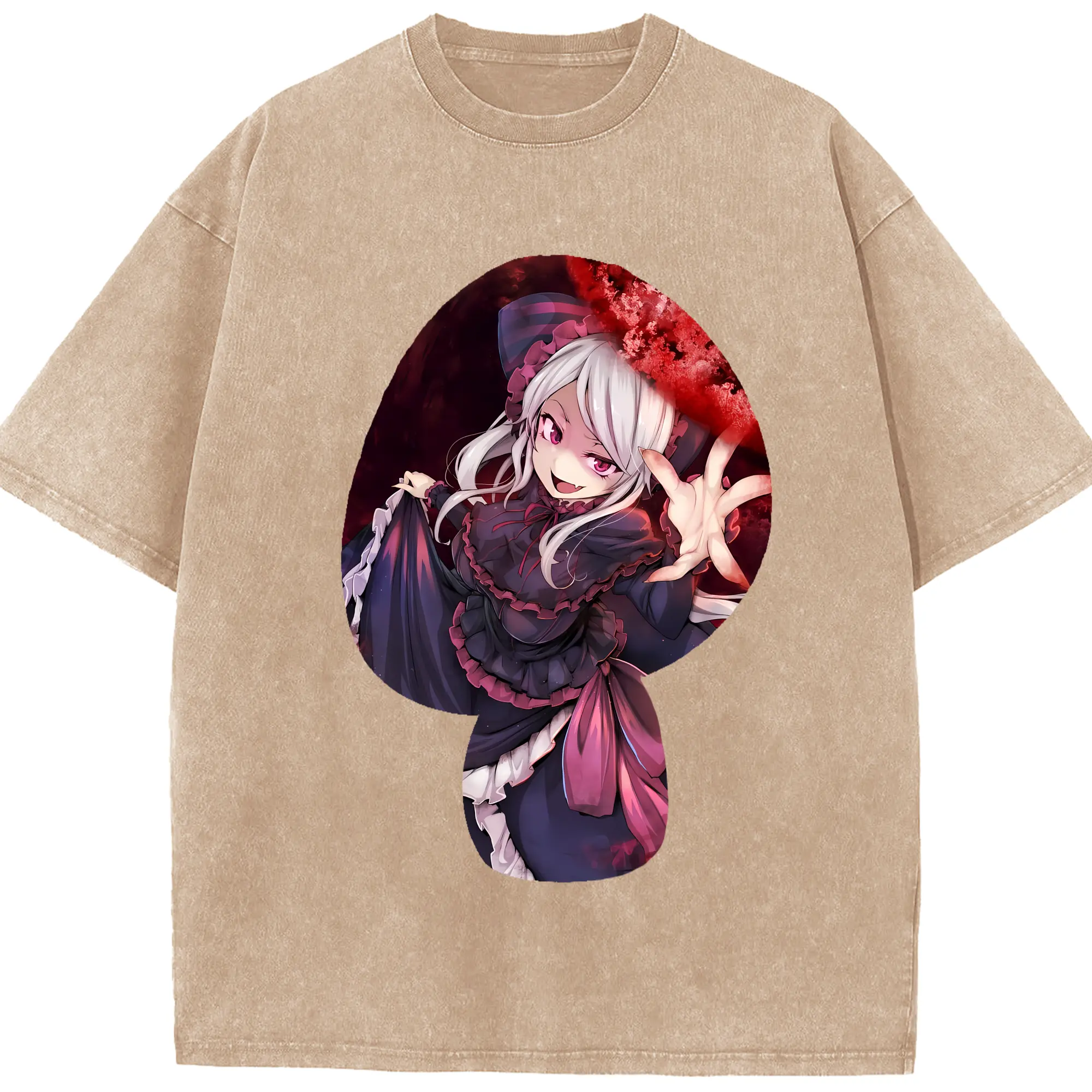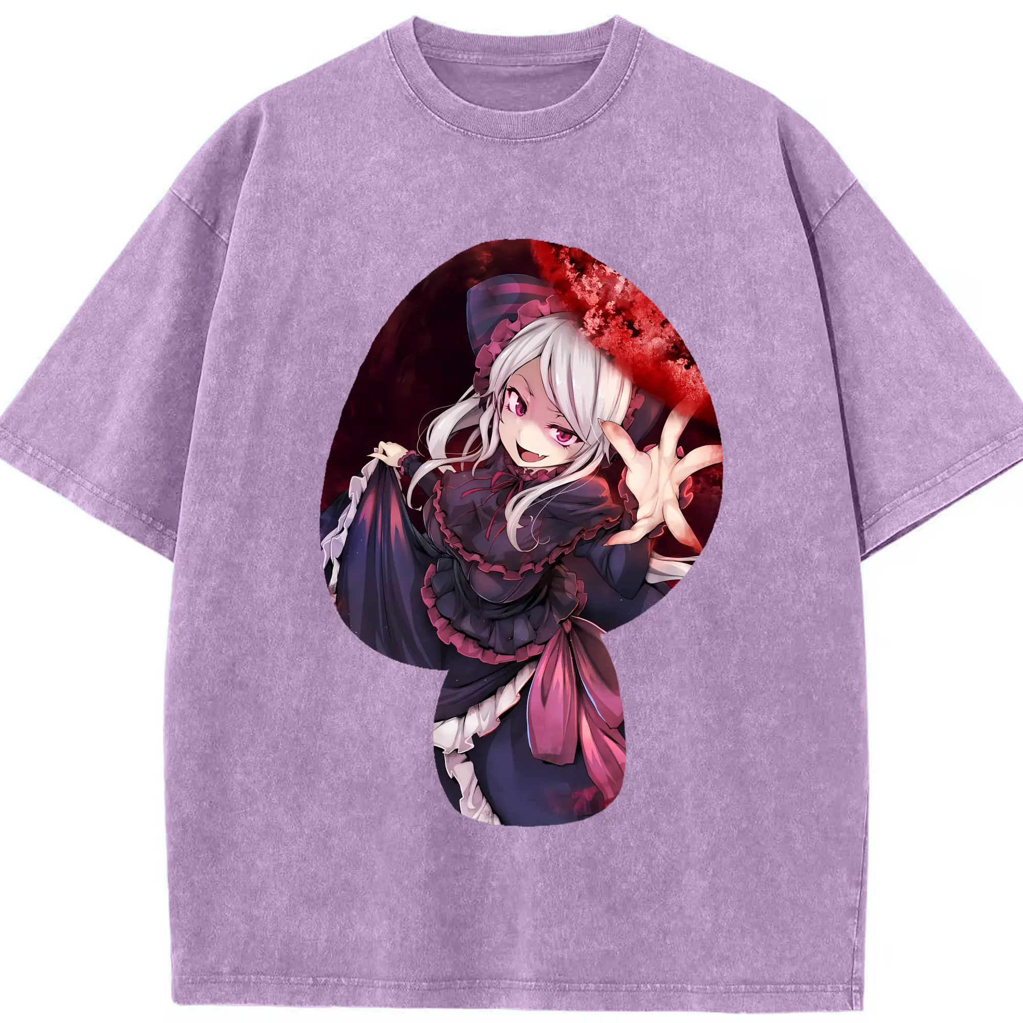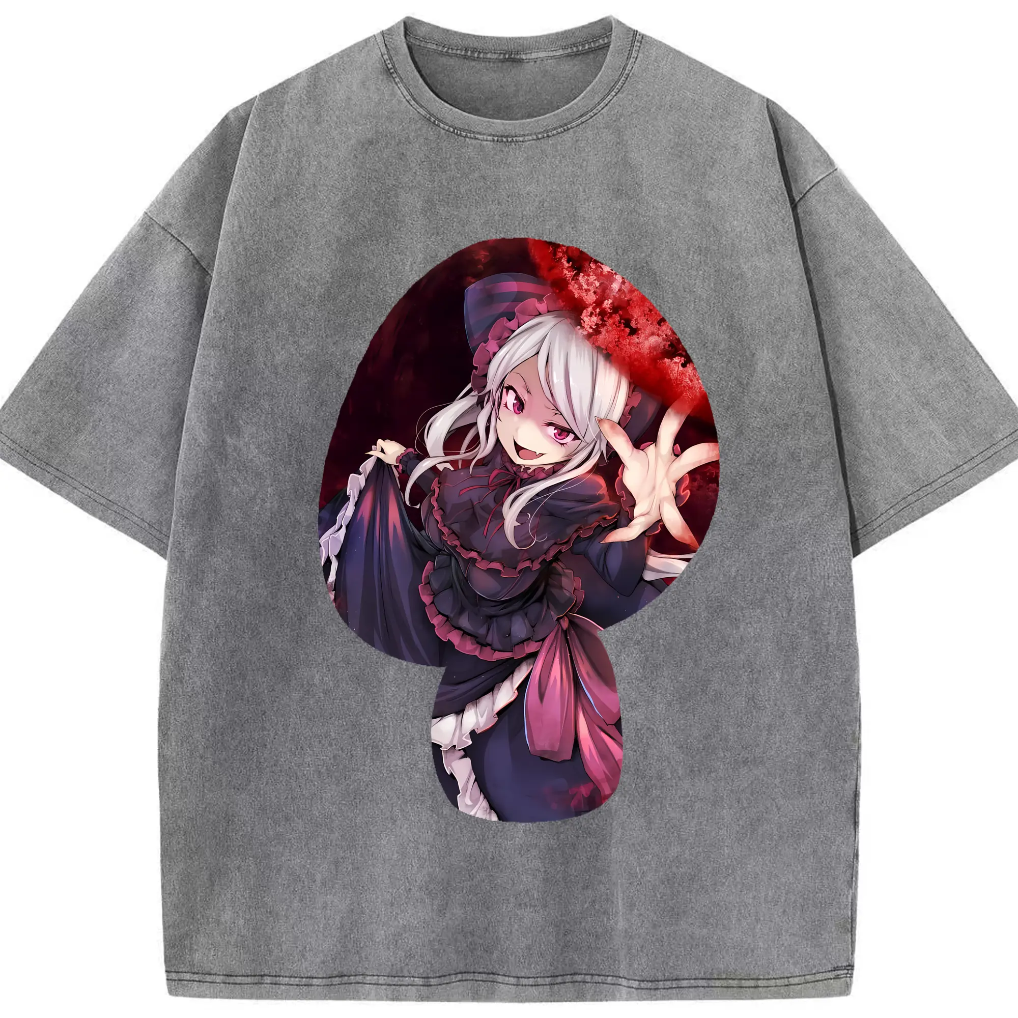 オーバーロード グッズ シャルティア・ブラッドフォールン - 綿100% ヴィンテージ風 半袖Tシャツ ・ 背面プリント ・ 柔らか肌触り ・ 通気性 快適 ・ スポーツ カジュアル 外出用