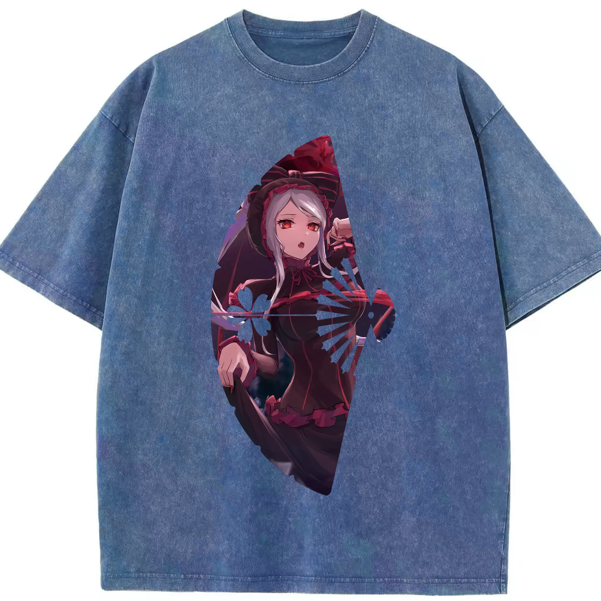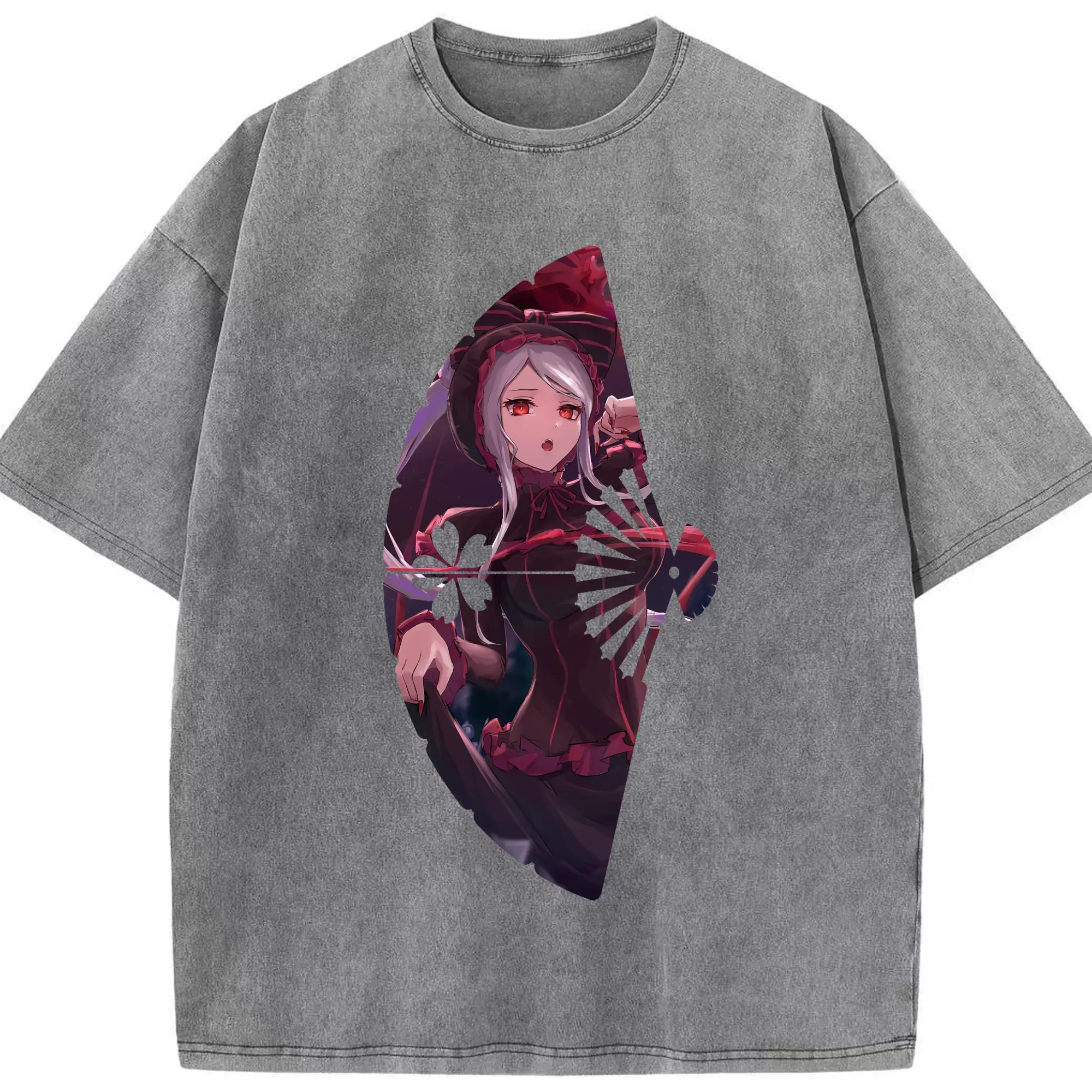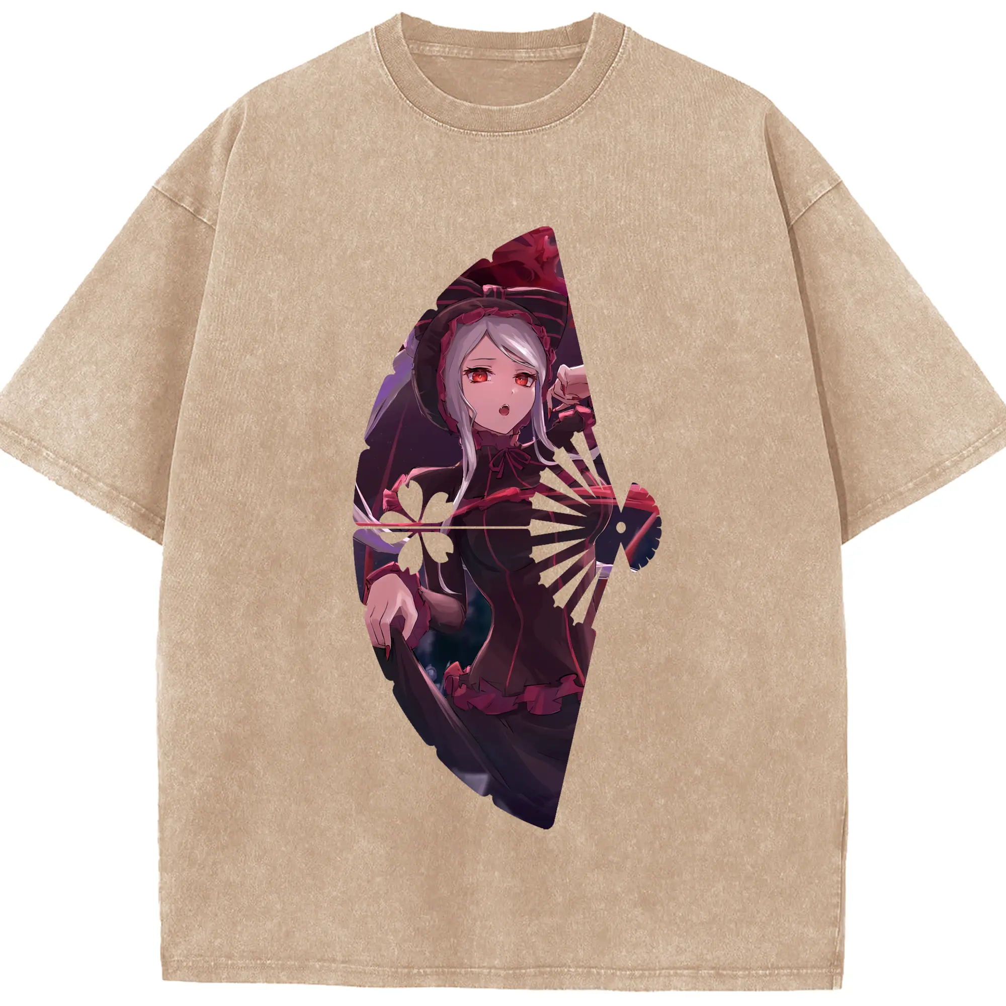 オーバーロード グッズ シャルティア・ブラッドフォールン - 綿100% ヴィンテージ風 半袖Tシャツ ・ 背面プリント ・ 柔らか肌触り ・ 通気性 快適 ・ スポーツ カジュアル 外出用