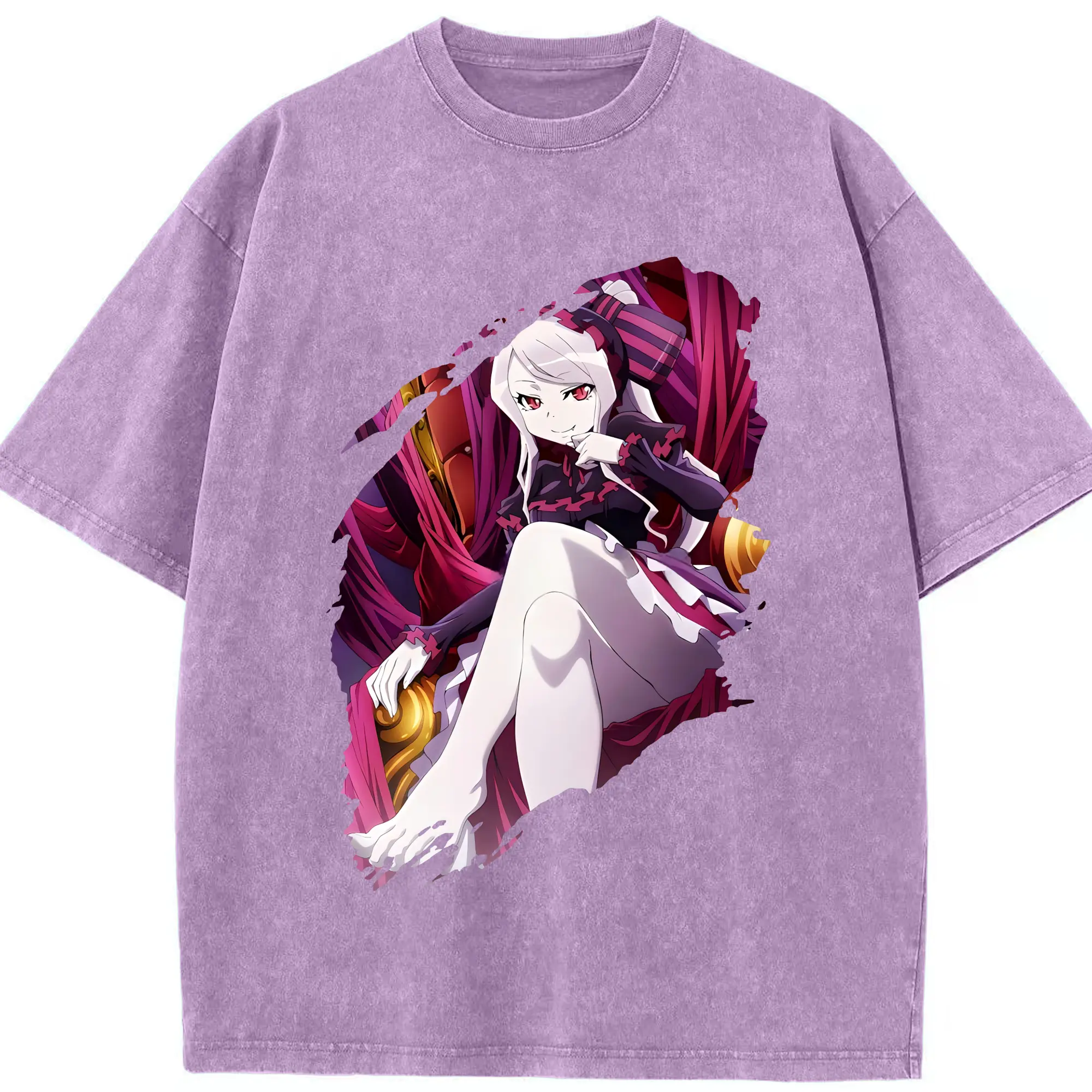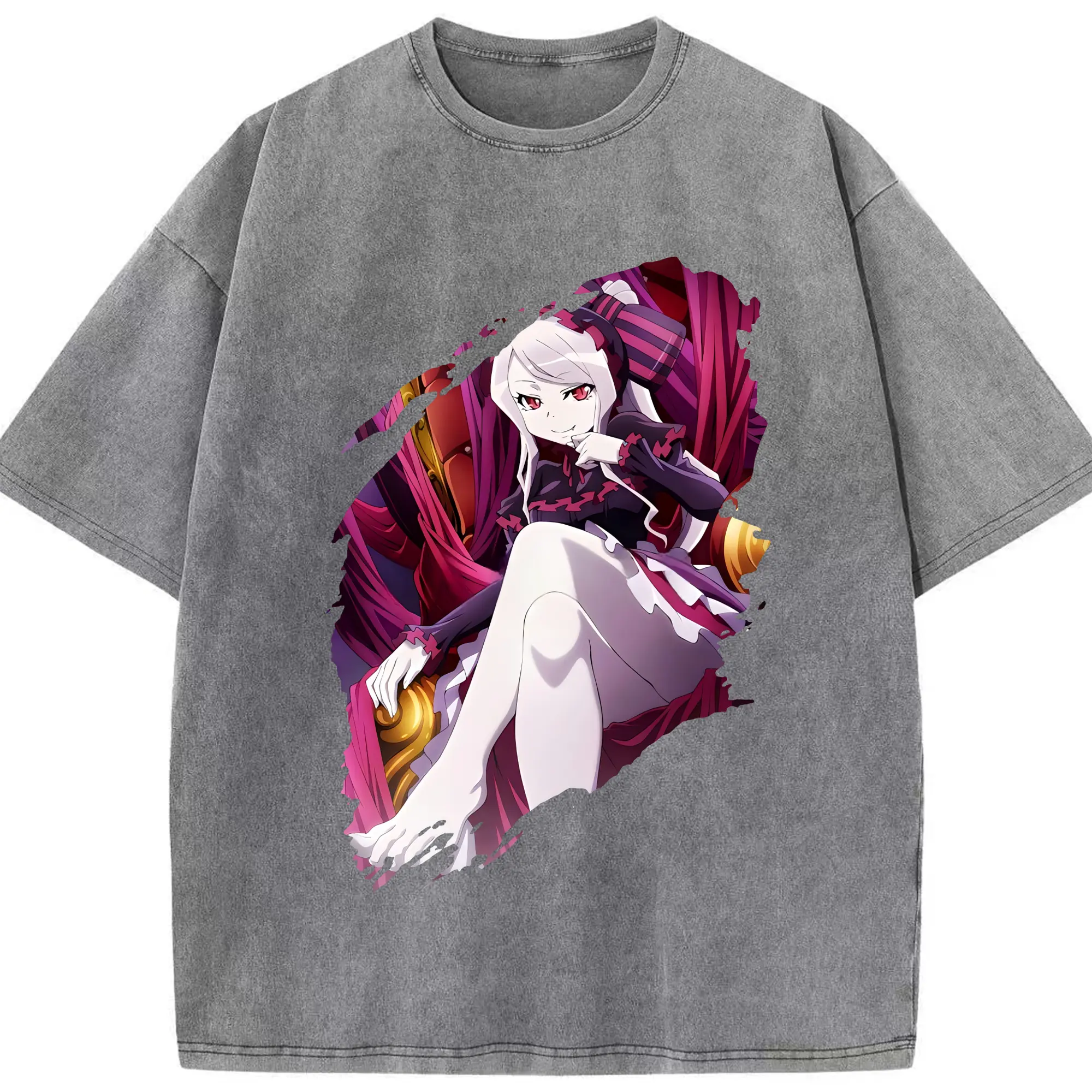 オーバーロード グッズ シャルティア・ブラッドフォールン - 綿100% ヴィンテージ風 半袖Tシャツ ・ 背面プリント ・ 柔らか肌触り ・ 通気性 快適 ・ スポーツ カジュアル 外出用