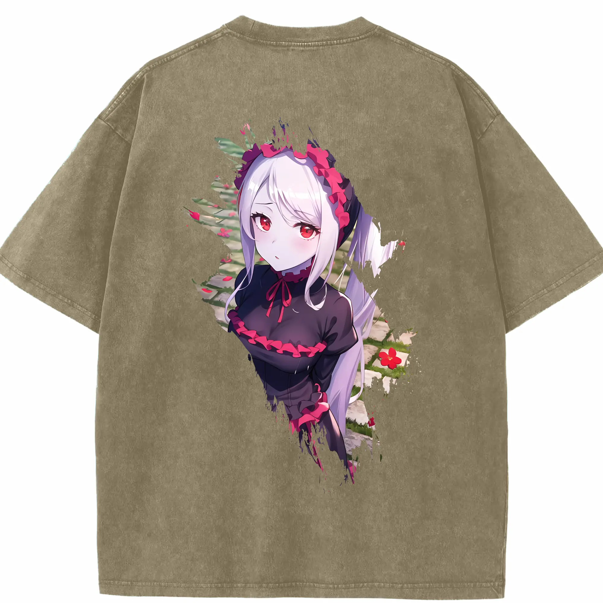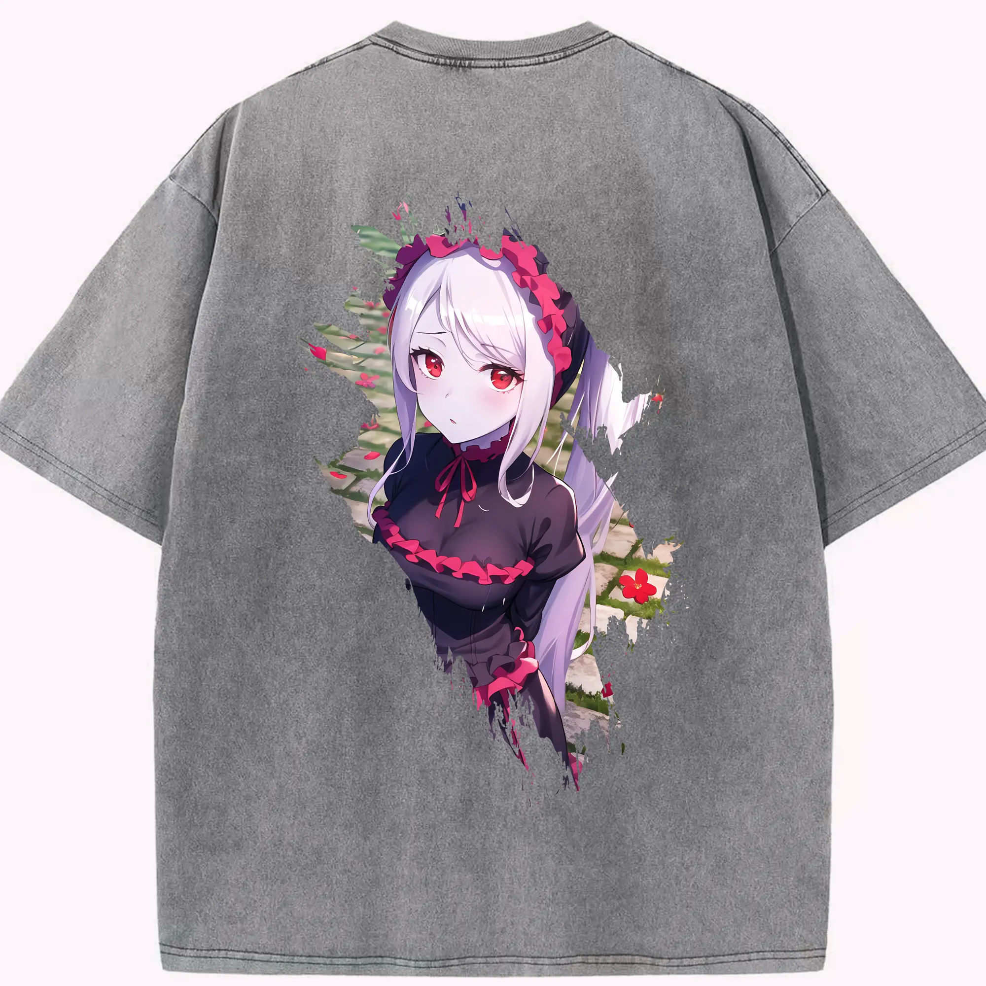 オーバーロード グッズ シャルティア・ブラッドフォールン - 綿100% ヴィンテージ風 半袖Tシャツ ・ フロントプリント ・ 柔らか肌触り ・ 通気性 快適 ・ スポーツ カジュアル 外出用
