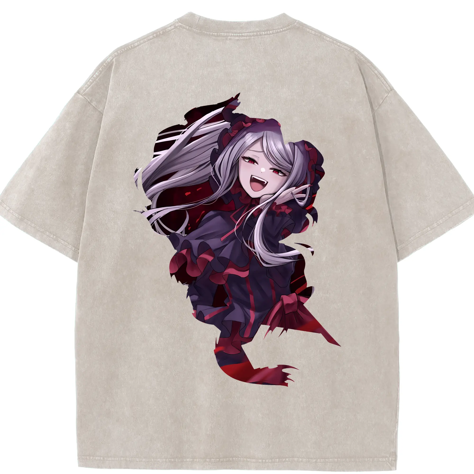 オーバーロード グッズ シャルティア・ブラッドフォールン - 綿100% ヴィンテージ風 半袖Tシャツ ・ フロントプリント ・ 柔らか肌触り ・ 通気性 快適 ・ スポーツ カジュアル 外出用