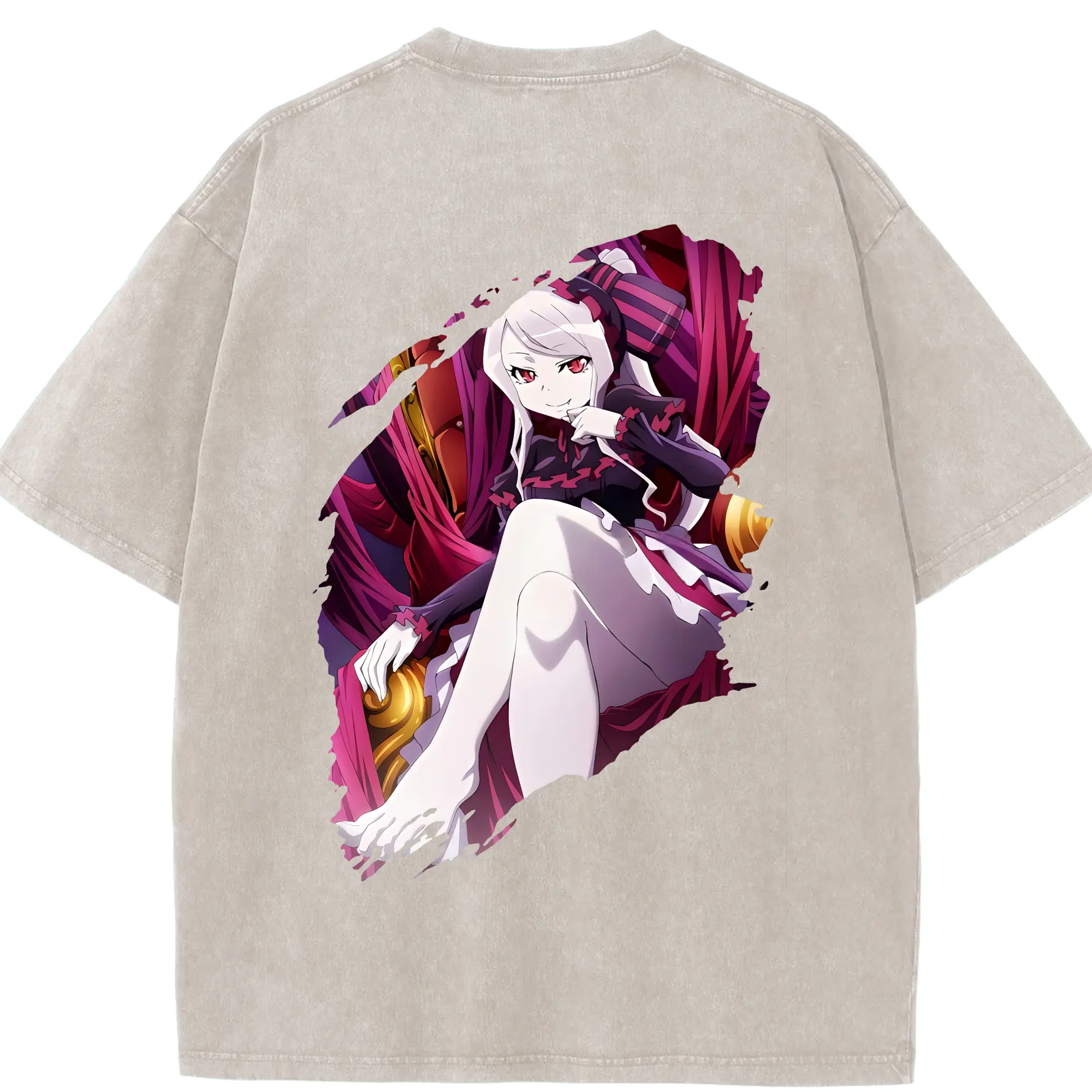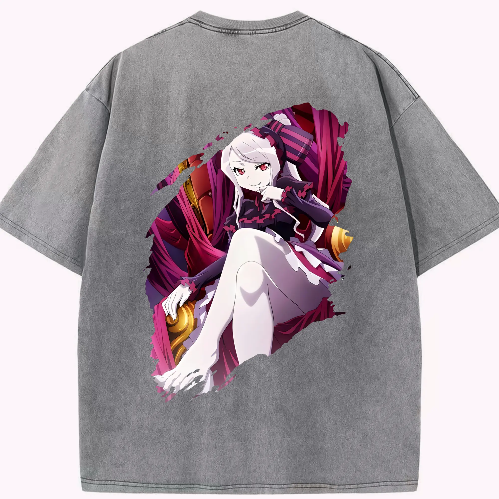 オーバーロード グッズ シャルティア・ブラッドフォールン - 綿100% ヴィンテージ風 半袖Tシャツ ・ フロントプリント ・ 柔らか肌触り ・ 通気性 快適 ・ スポーツ カジュアル 外出用