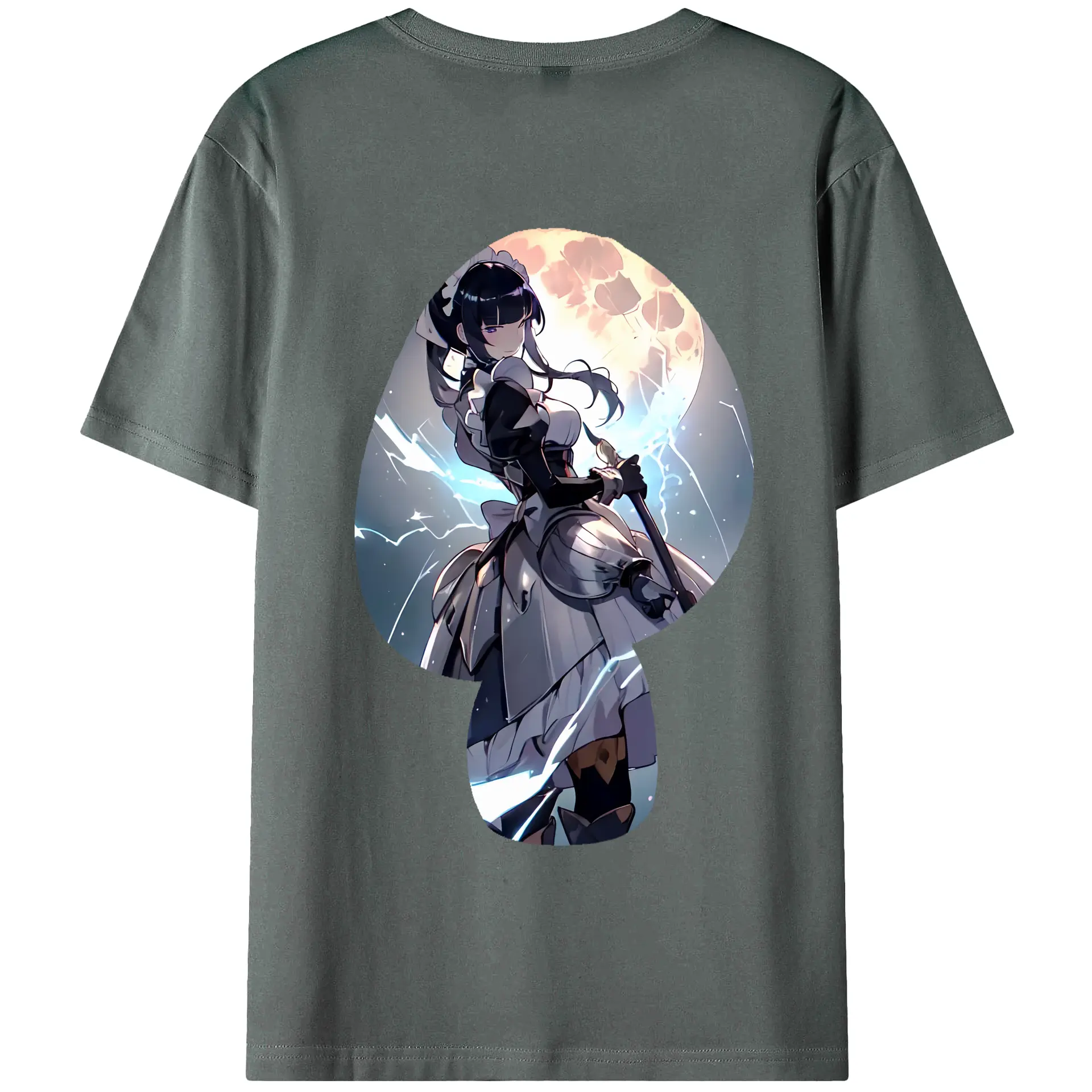 オーバーロード グッズ ナーベラル・ガンマ - 綿100% ヴィンテージ風 半袖Tシャツ ・ 背面プリント ・ 柔らか肌触り ・ 通気性 快適 ・ スポーツ カジュアル 外出用